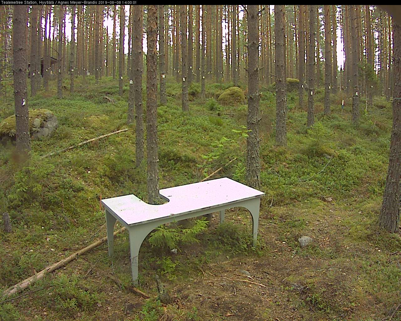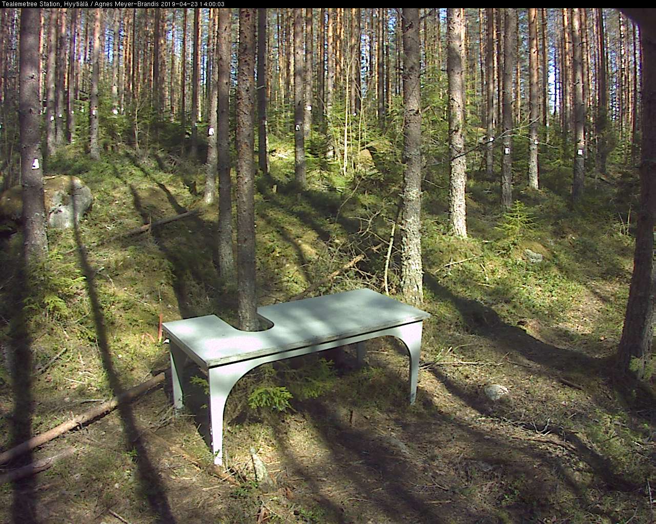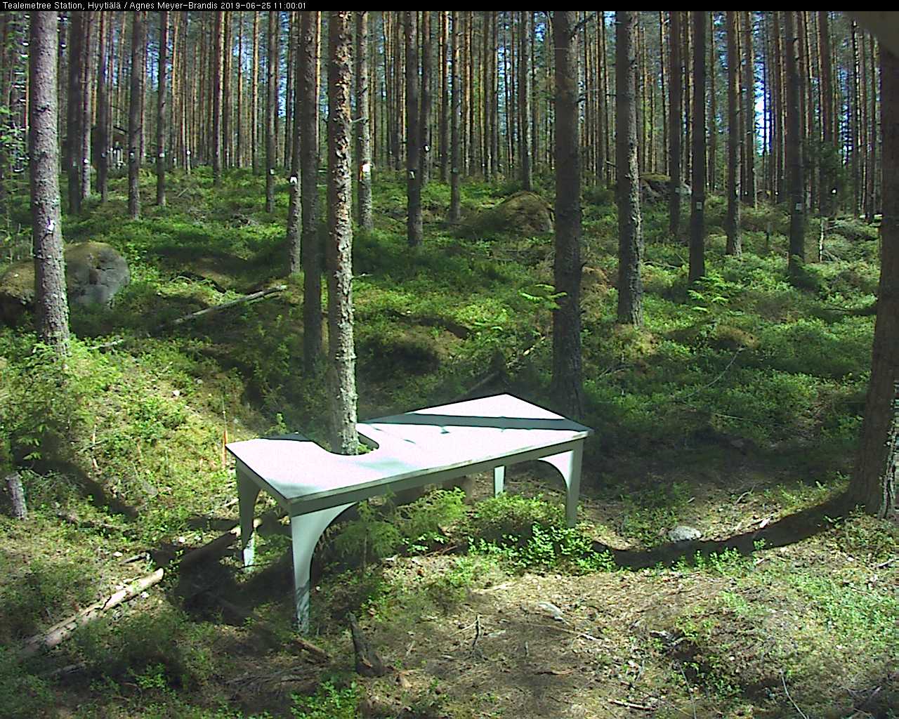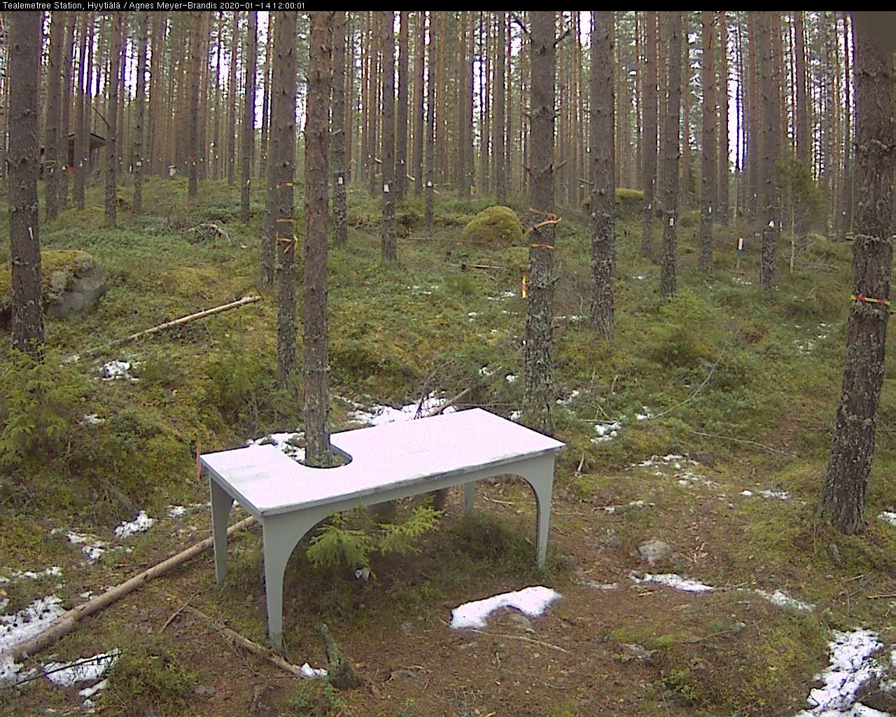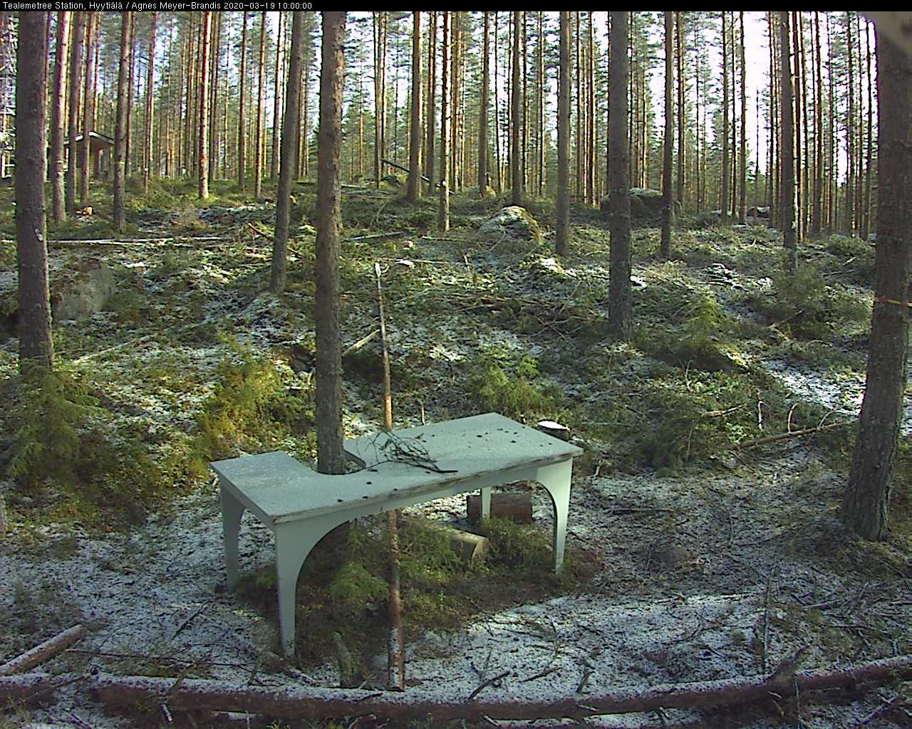 Agnes Meyer-Brandiksen työ Hyytiälässä alkoi tutustumalla aseman muihin tutkijoihin. Pystyäkseen tapaamaan ihmisiä metsässä, hän rakensi pöydän, josta muodostui kohtauspiste ja paikka teehetkille Agneksen ja puun kanssa.