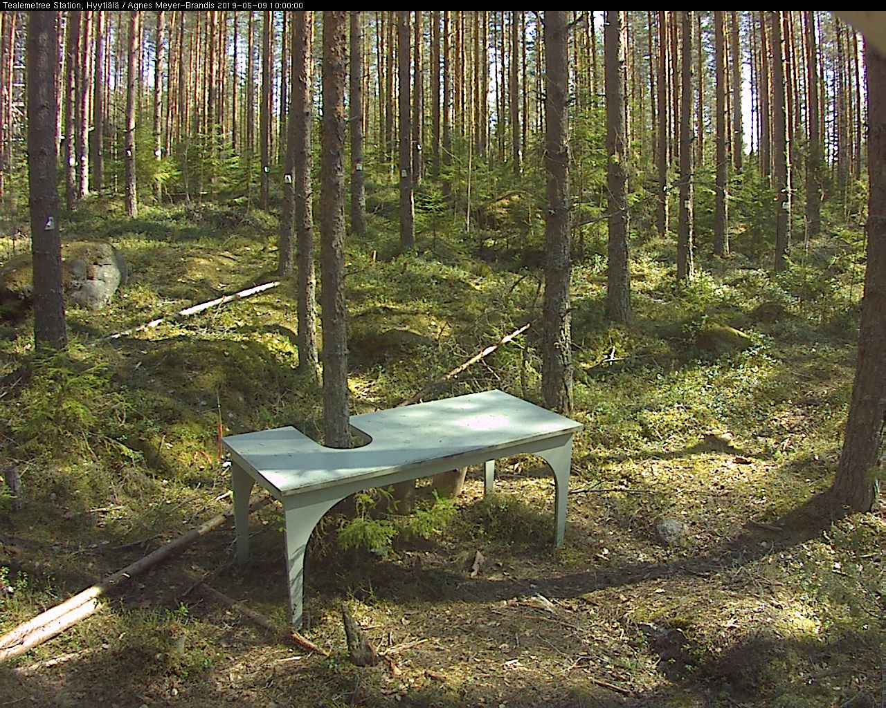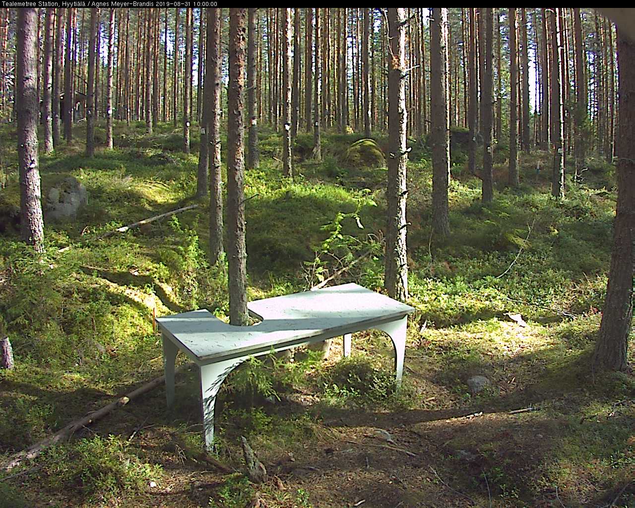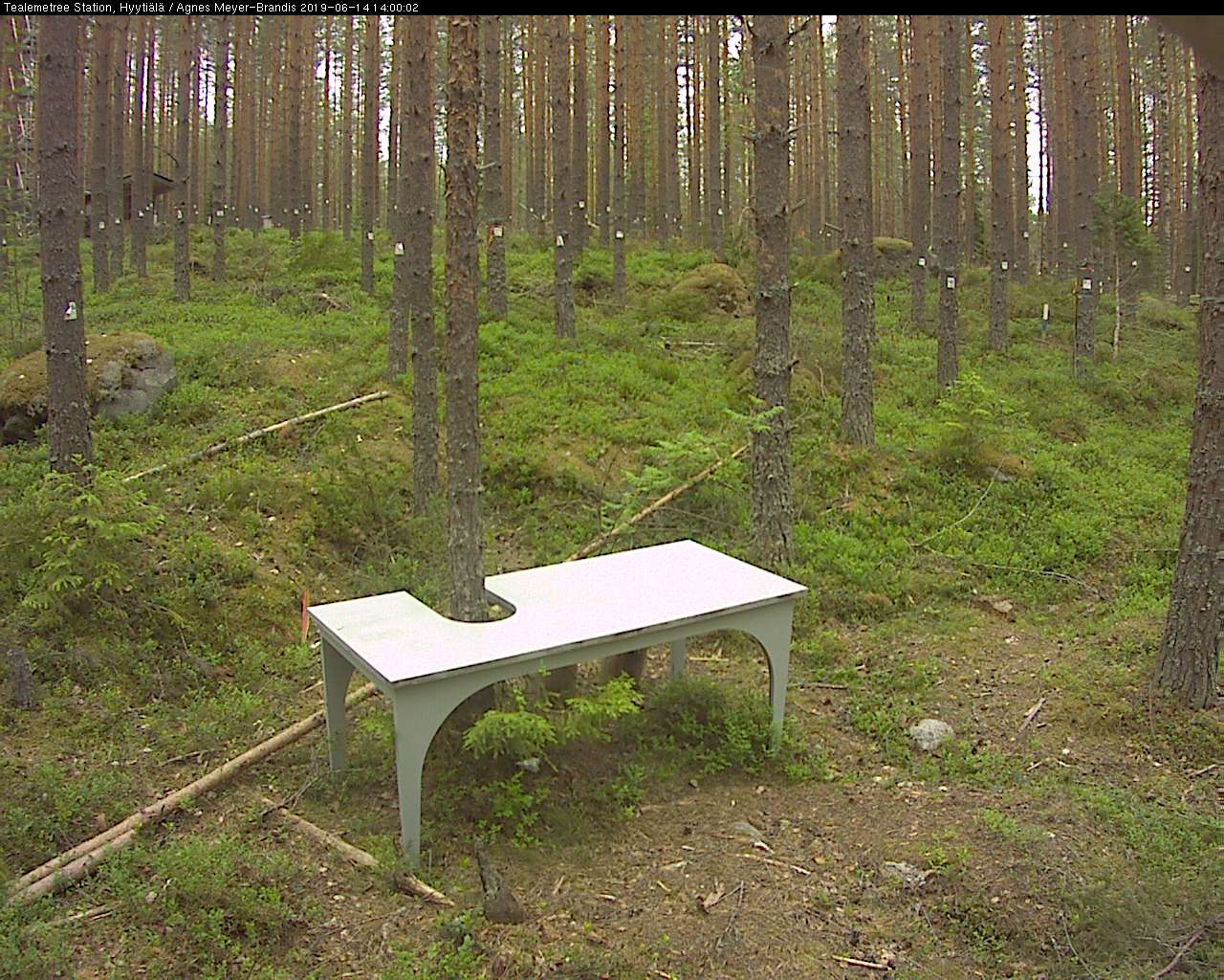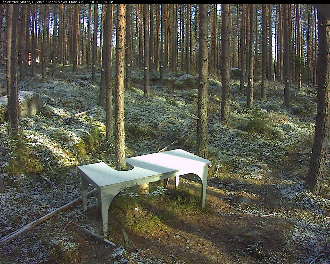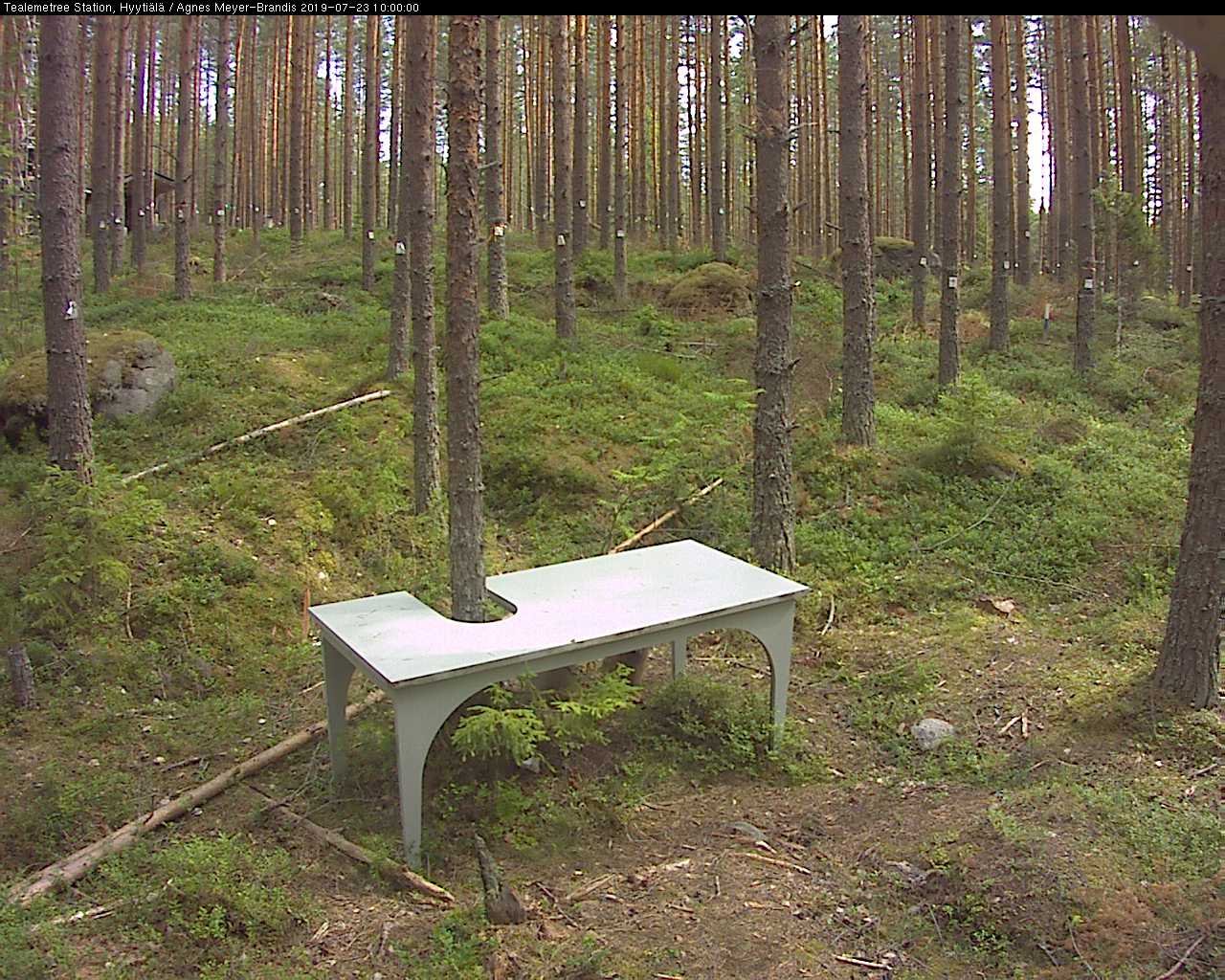 Agnes Meyer-Brandiksen työ Hyytiälässä alkoi tutustumalla aseman muihin tutkijoihin. Pystyäkseen tapaamaan ihmisiä metsässä, hän rakensi pöydän, josta muodostui kohtauspiste ja paikka teehetkille Agneksen ja puun kanssa.
