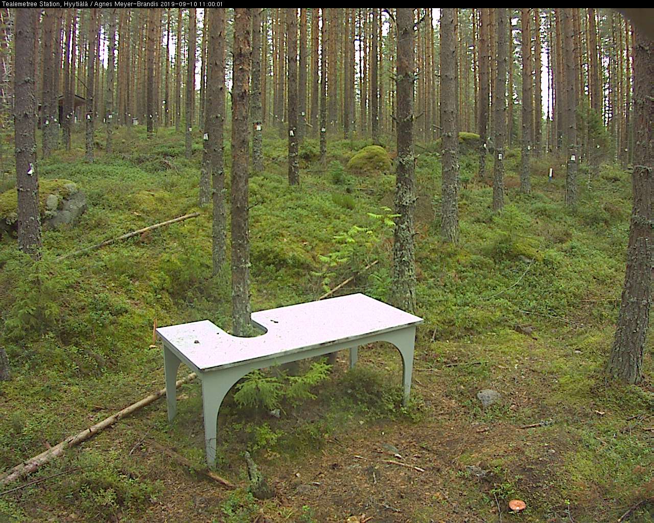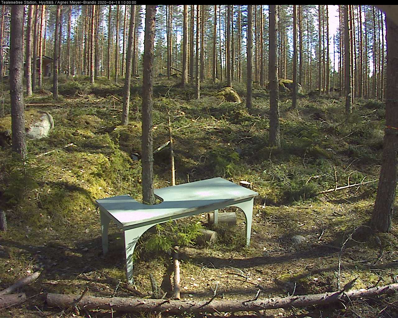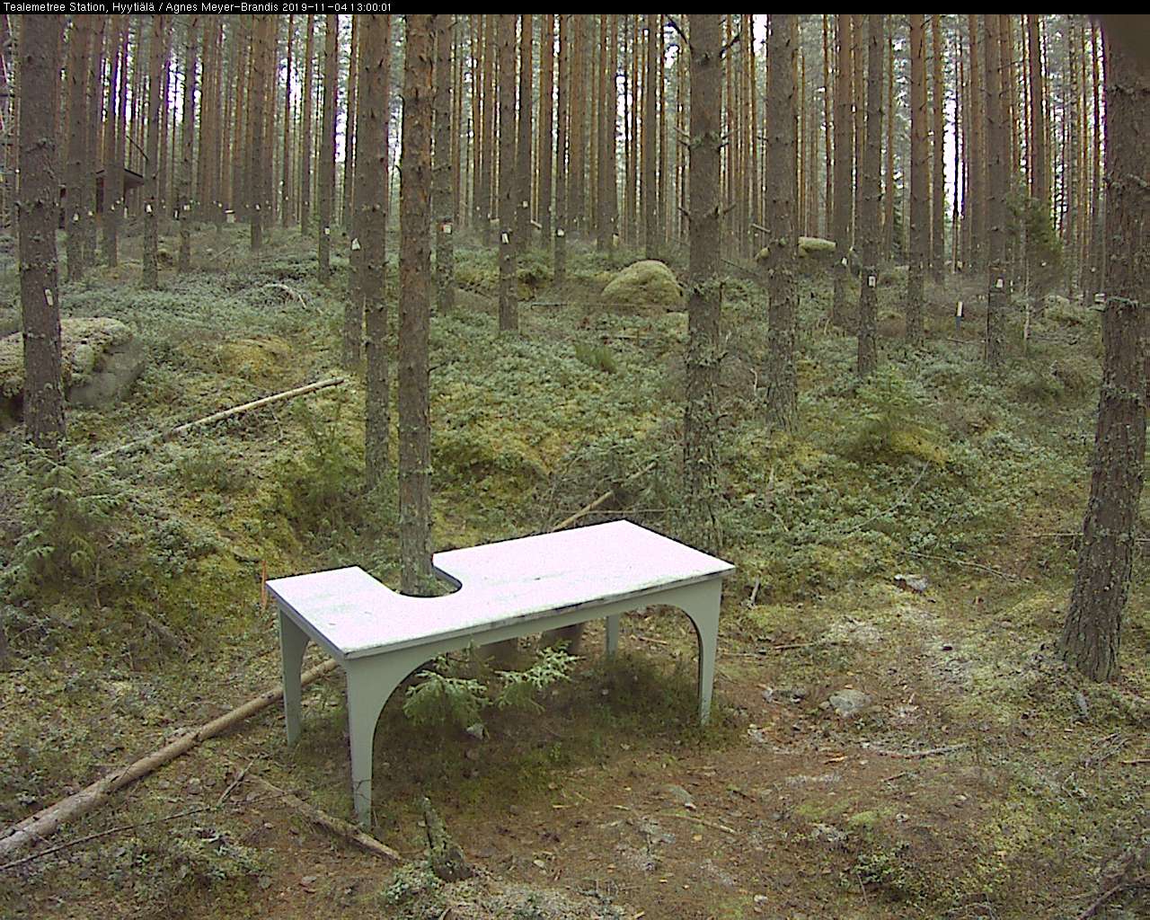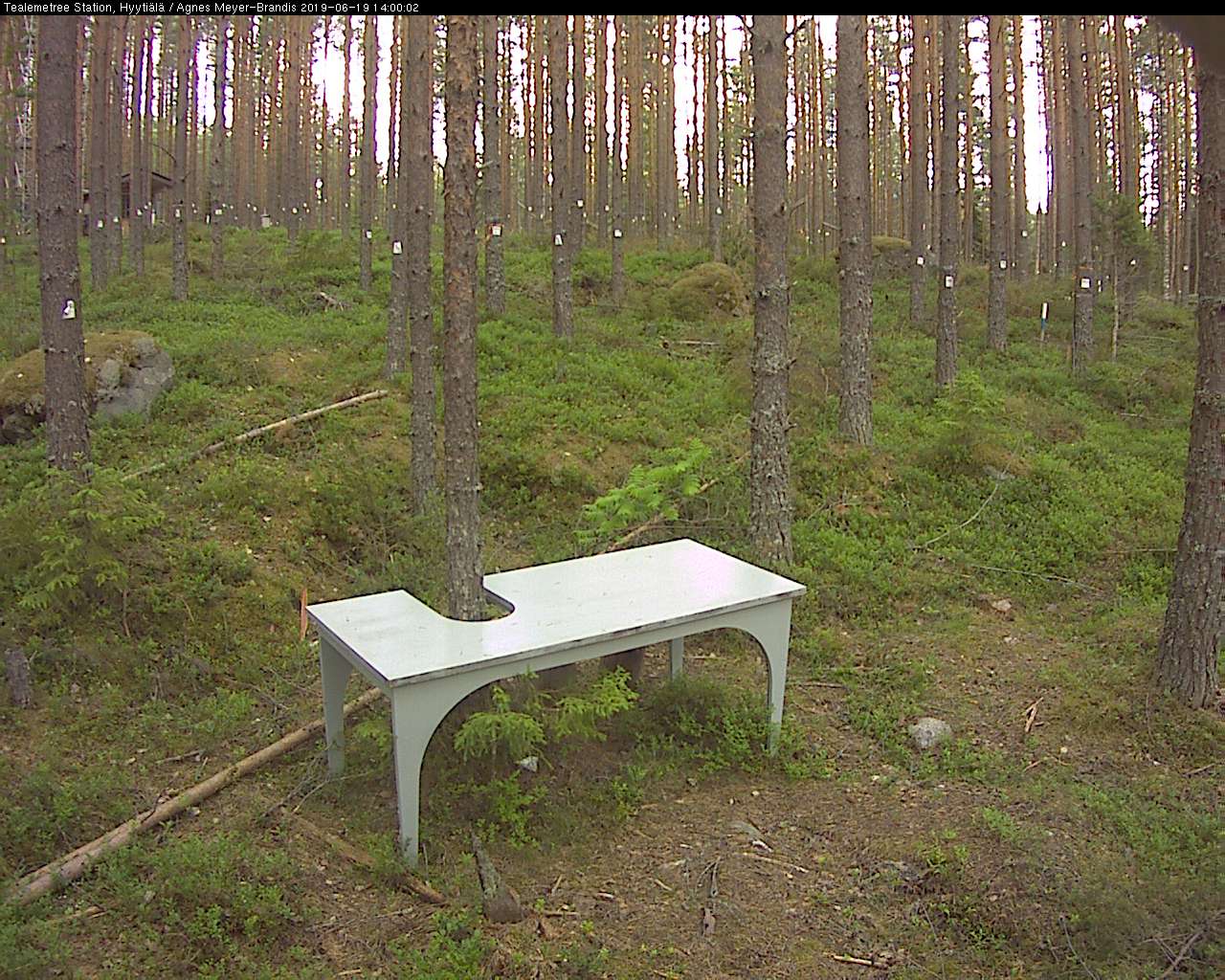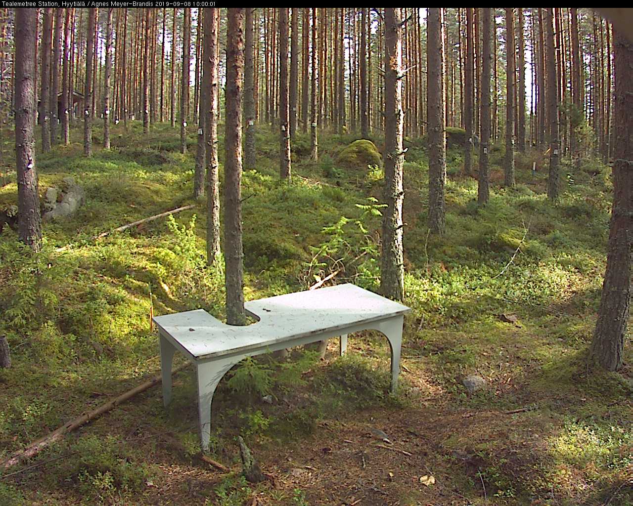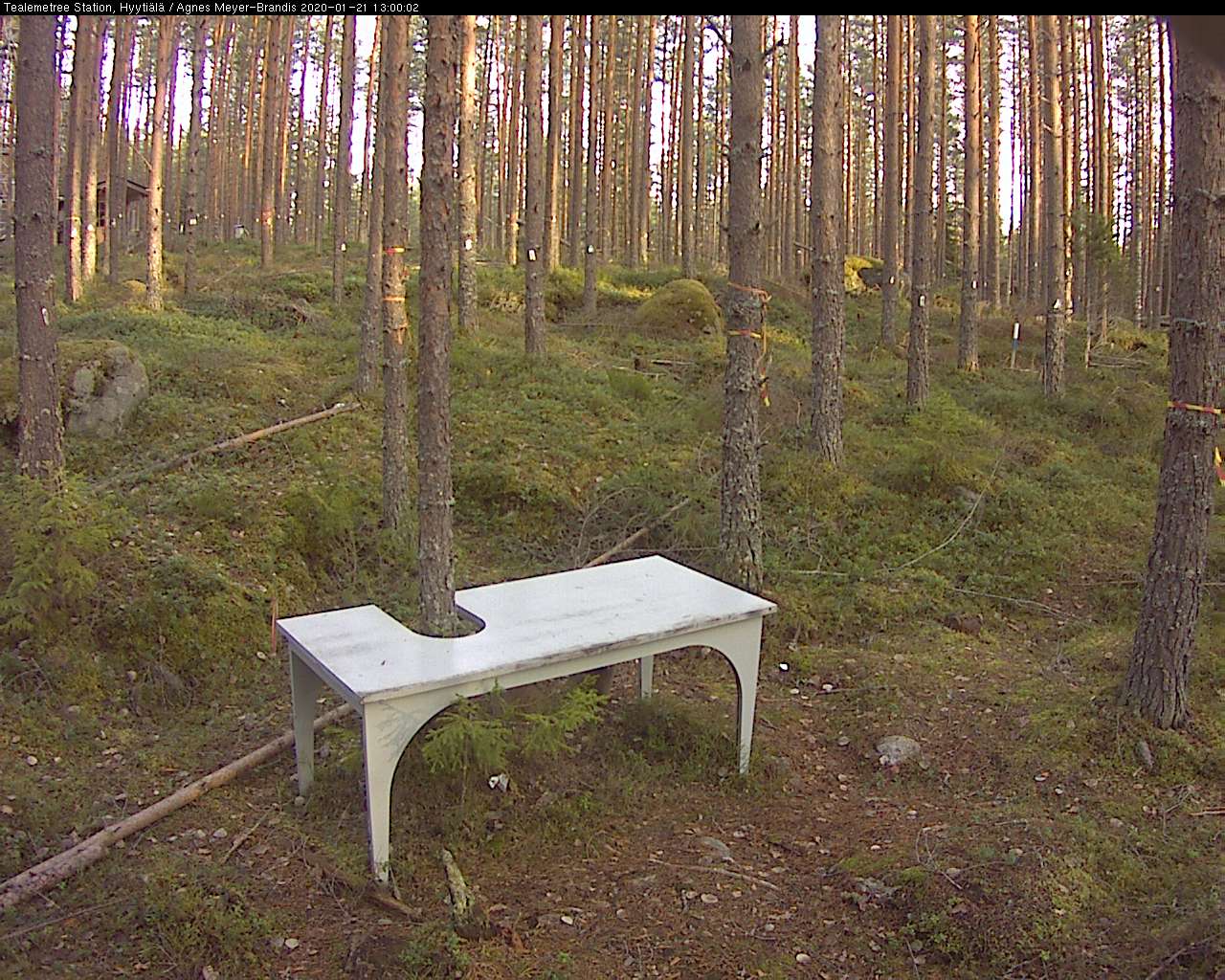 Agnes Meyer-Brandiksen työ Hyytiälässä alkoi tutustumalla aseman muihin tutkijoihin. Pystyäkseen tapaamaan ihmisiä metsässä, hän rakensi pöydän, josta muodostui kohtauspiste ja paikka teehetkille Agneksen ja puun kanssa.
