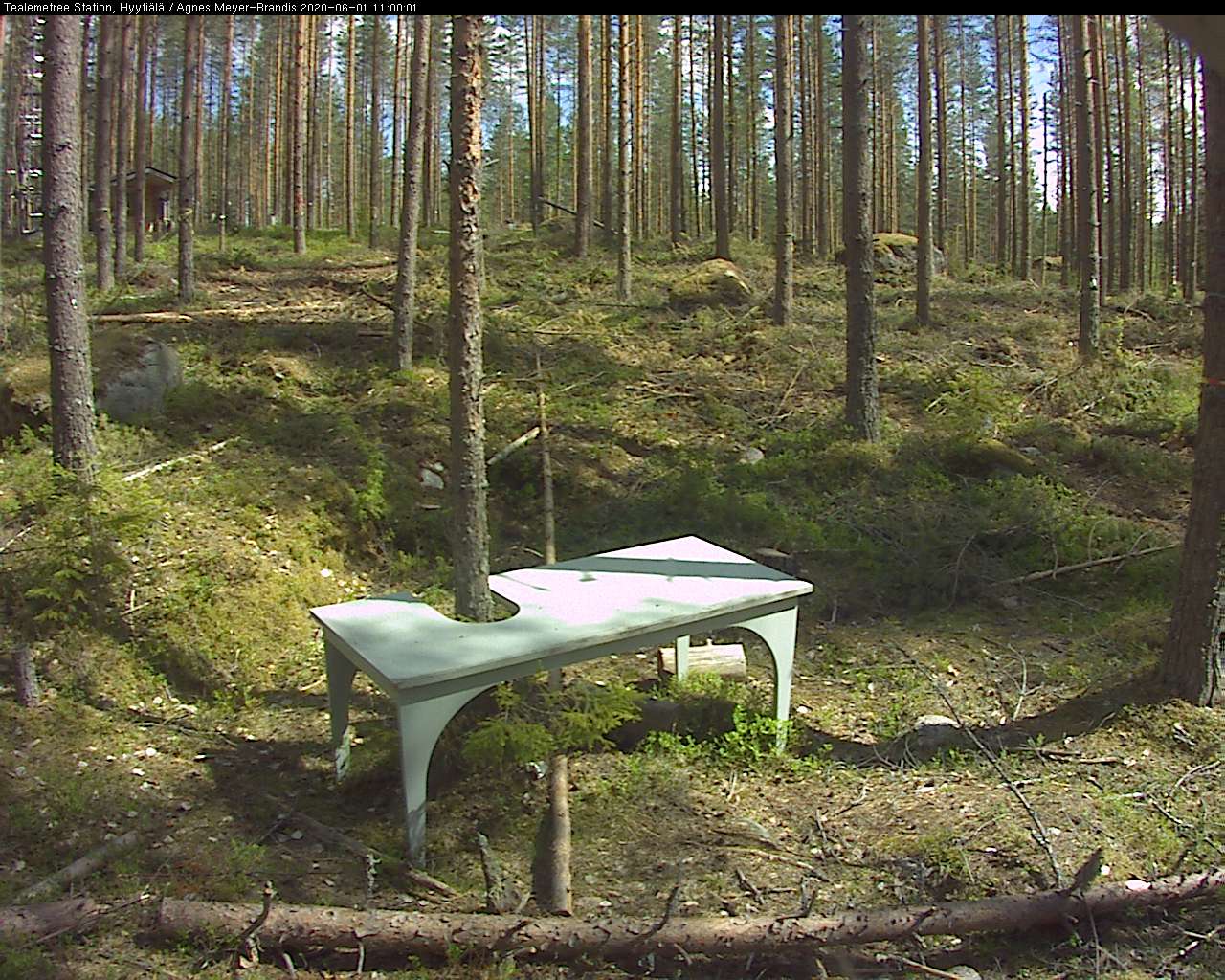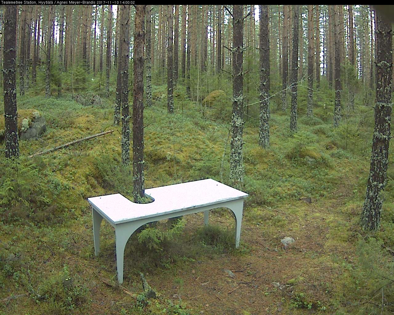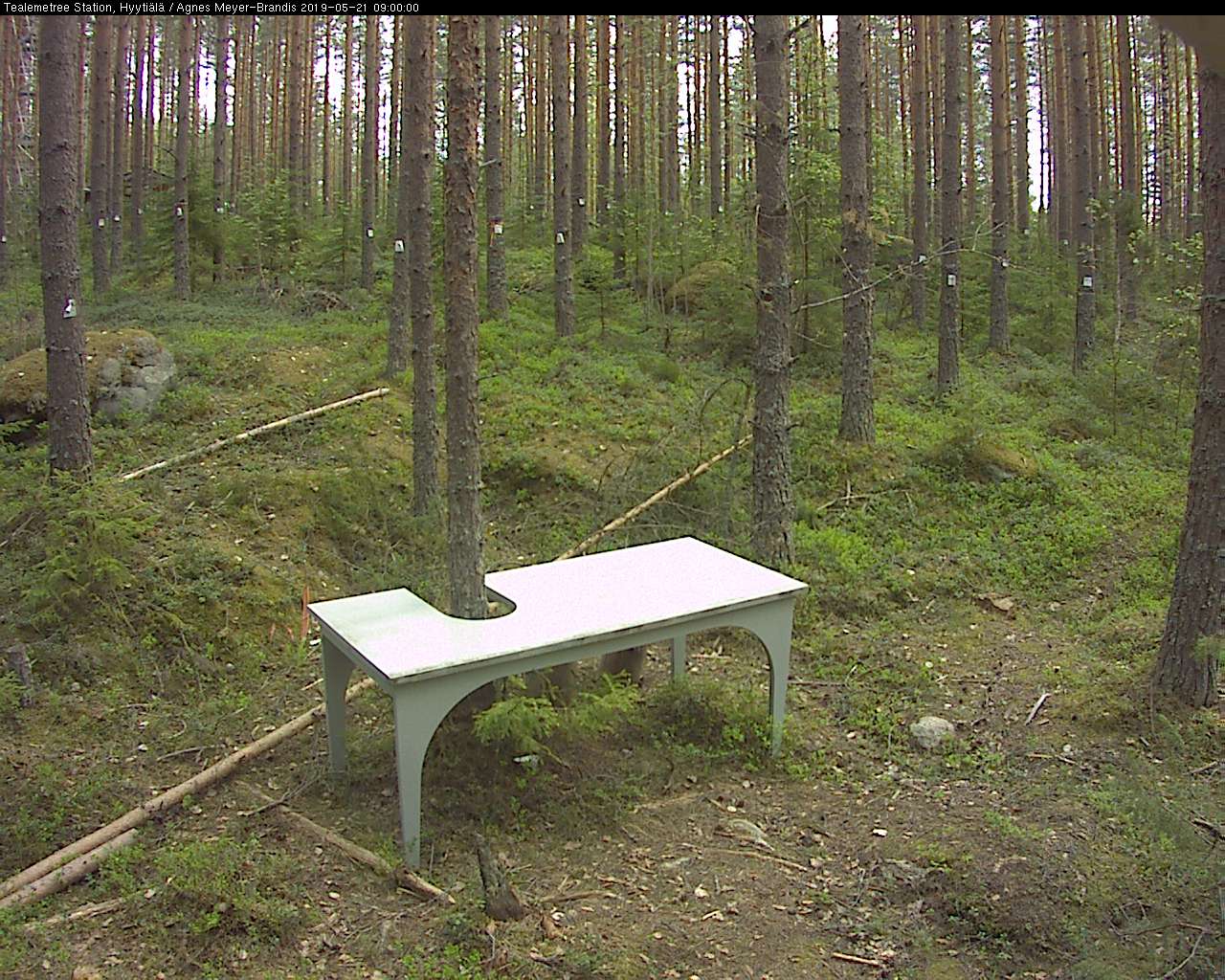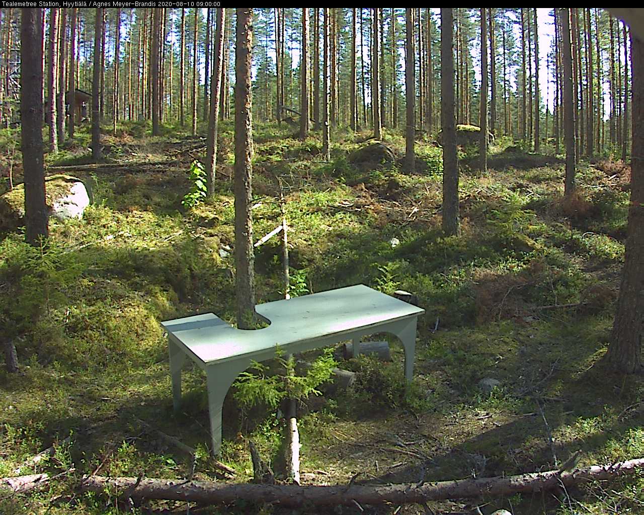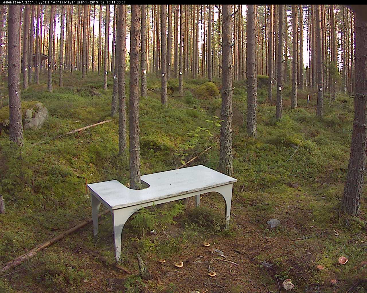 Agnes Meyer-Brandiksen työ Hyytiälässä alkoi tutustumalla aseman muihin tutkijoihin. Pystyäkseen tapaamaan ihmisiä metsässä, hän rakensi pöydän, josta muodostui kohtauspiste ja paikka teehetkille Agneksen ja puun kanssa.