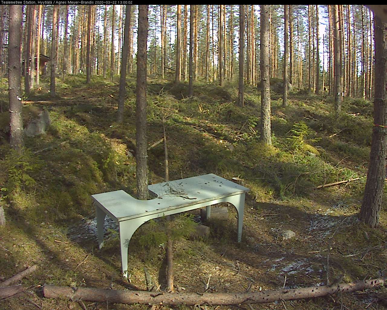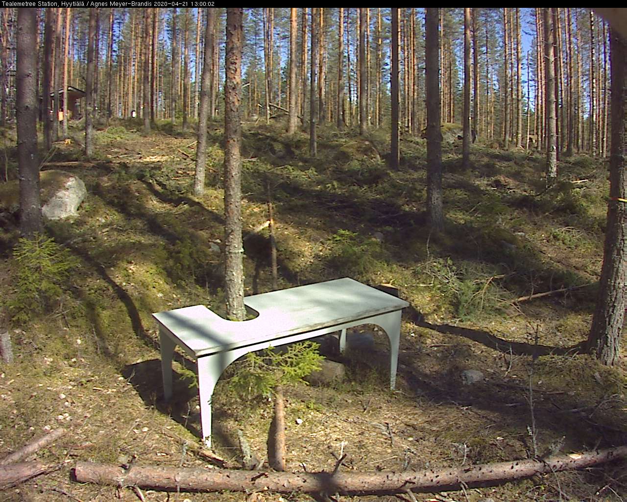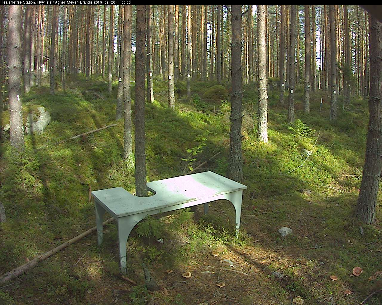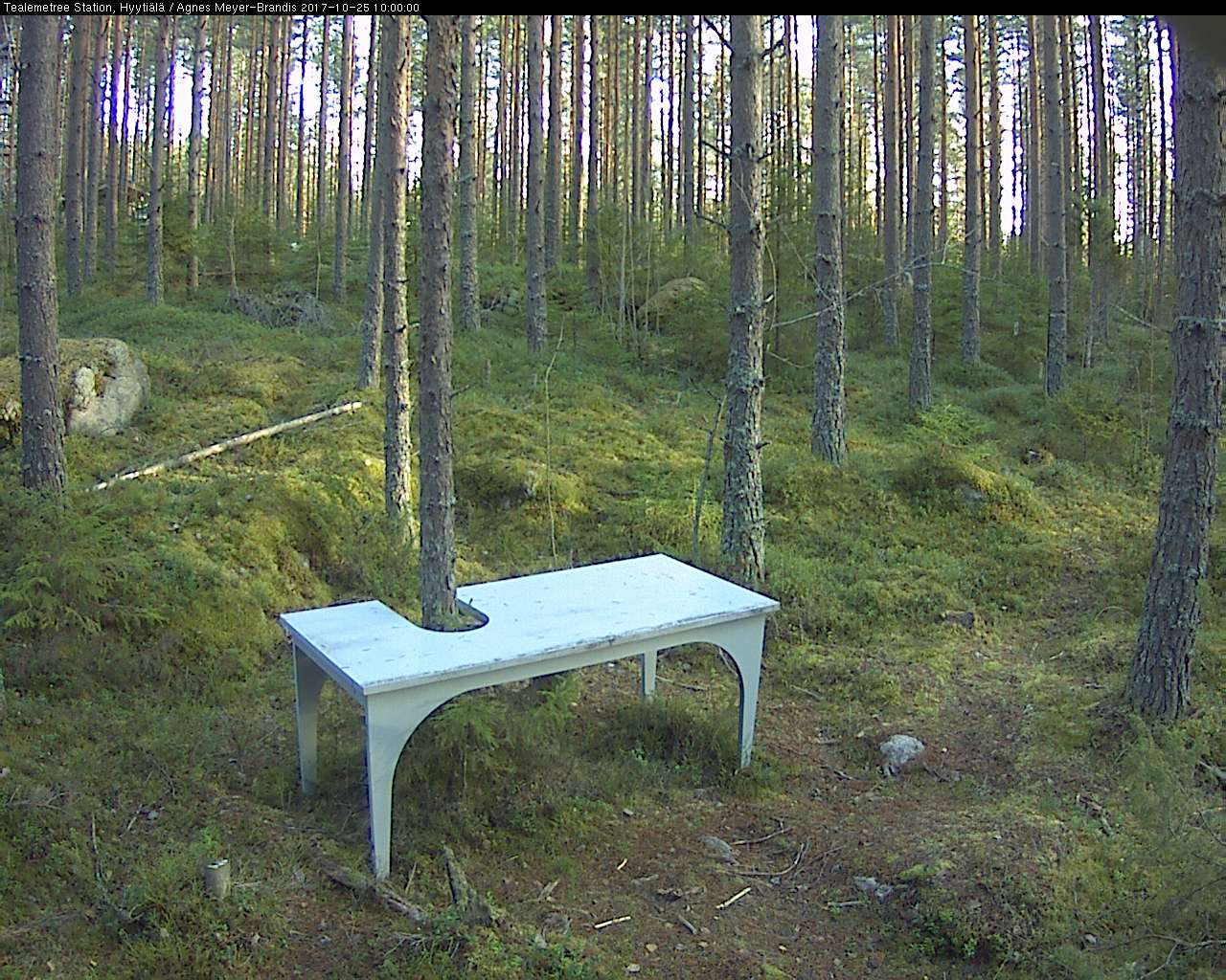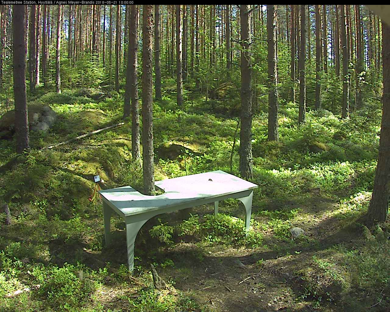 Agnes Meyer-Brandiksen työ Hyytiälässä alkoi tutustumalla aseman muihin tutkijoihin. Pystyäkseen tapaamaan ihmisiä metsässä, hän rakensi pöydän, josta muodostui kohtauspiste ja paikka teehetkille Agneksen ja puun kanssa.