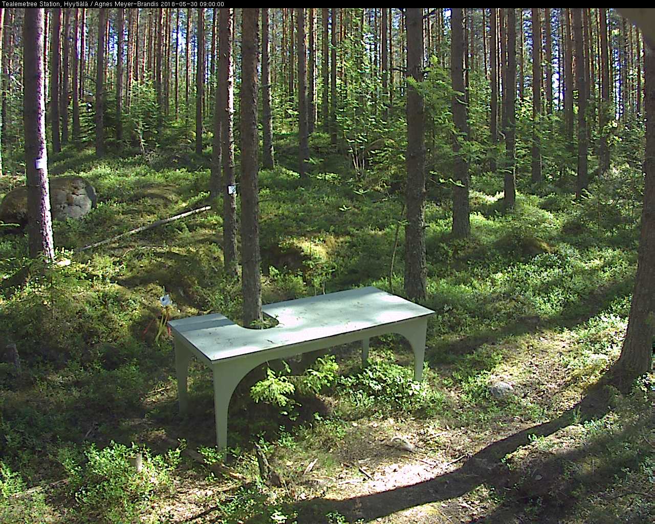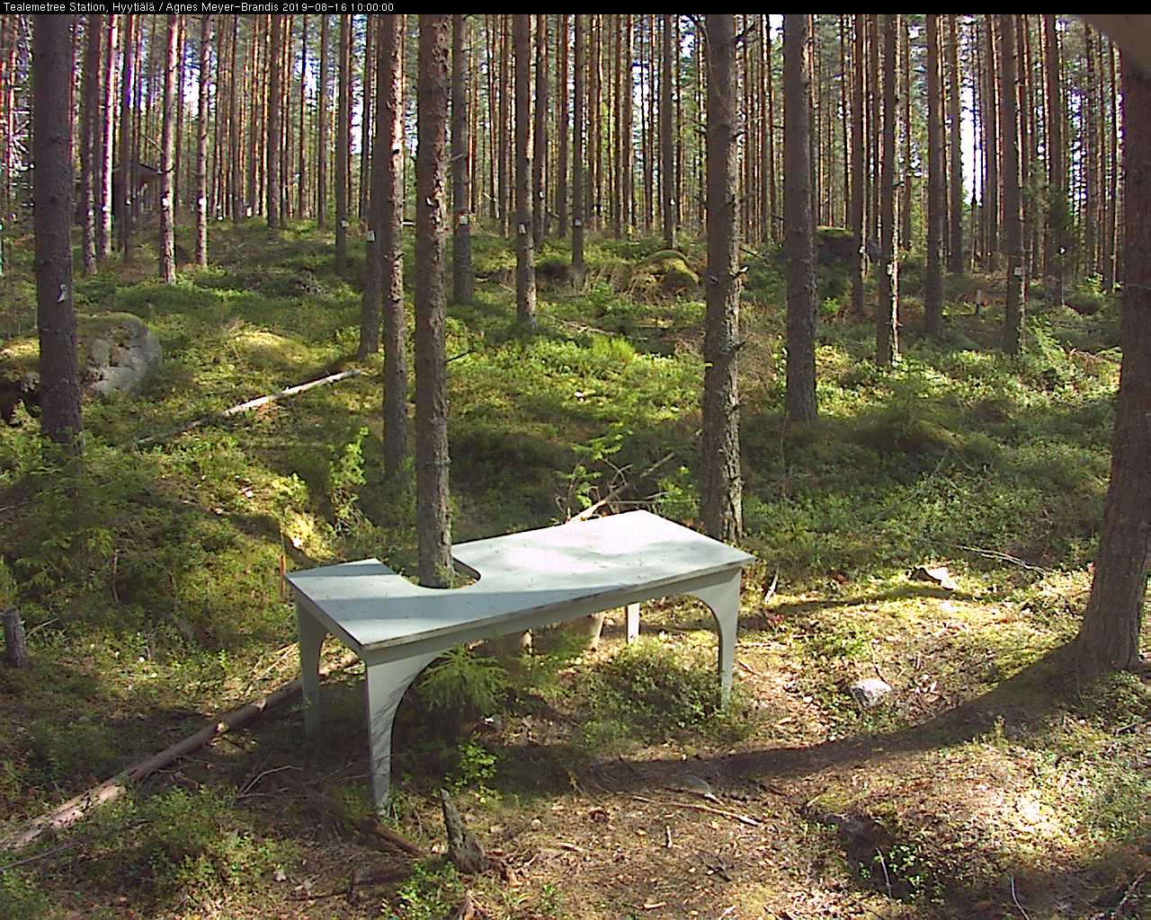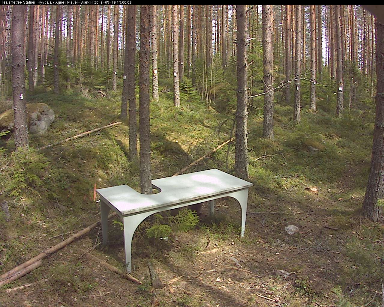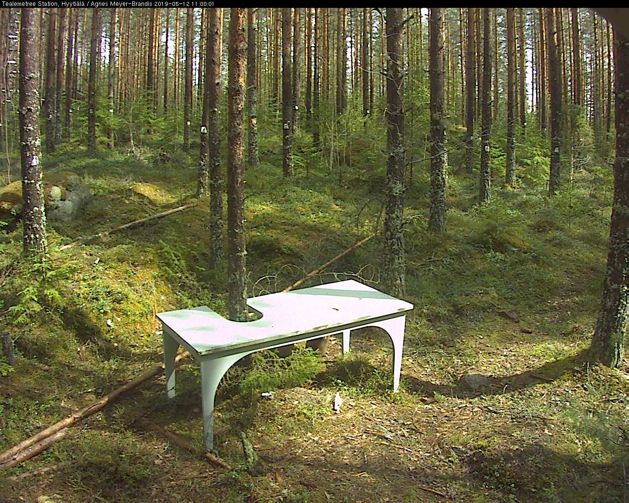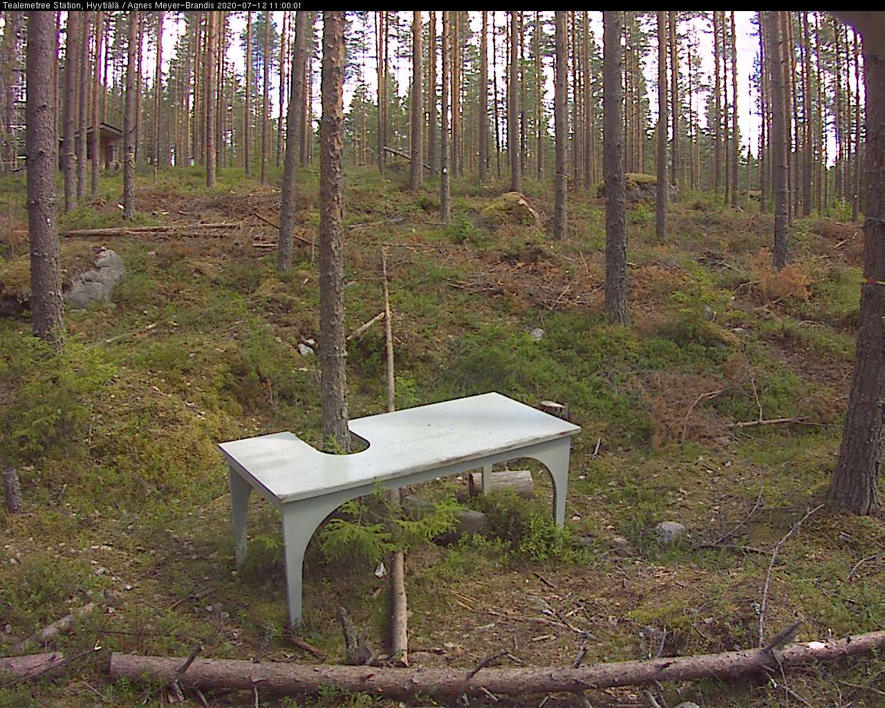 Agnes Meyer-Brandiksen työ Hyytiälässä alkoi tutustumalla aseman muihin tutkijoihin. Pystyäkseen tapaamaan ihmisiä metsässä, hän rakensi pöydän, josta muodostui kohtauspiste ja paikka teehetkille Agneksen ja puun kanssa.