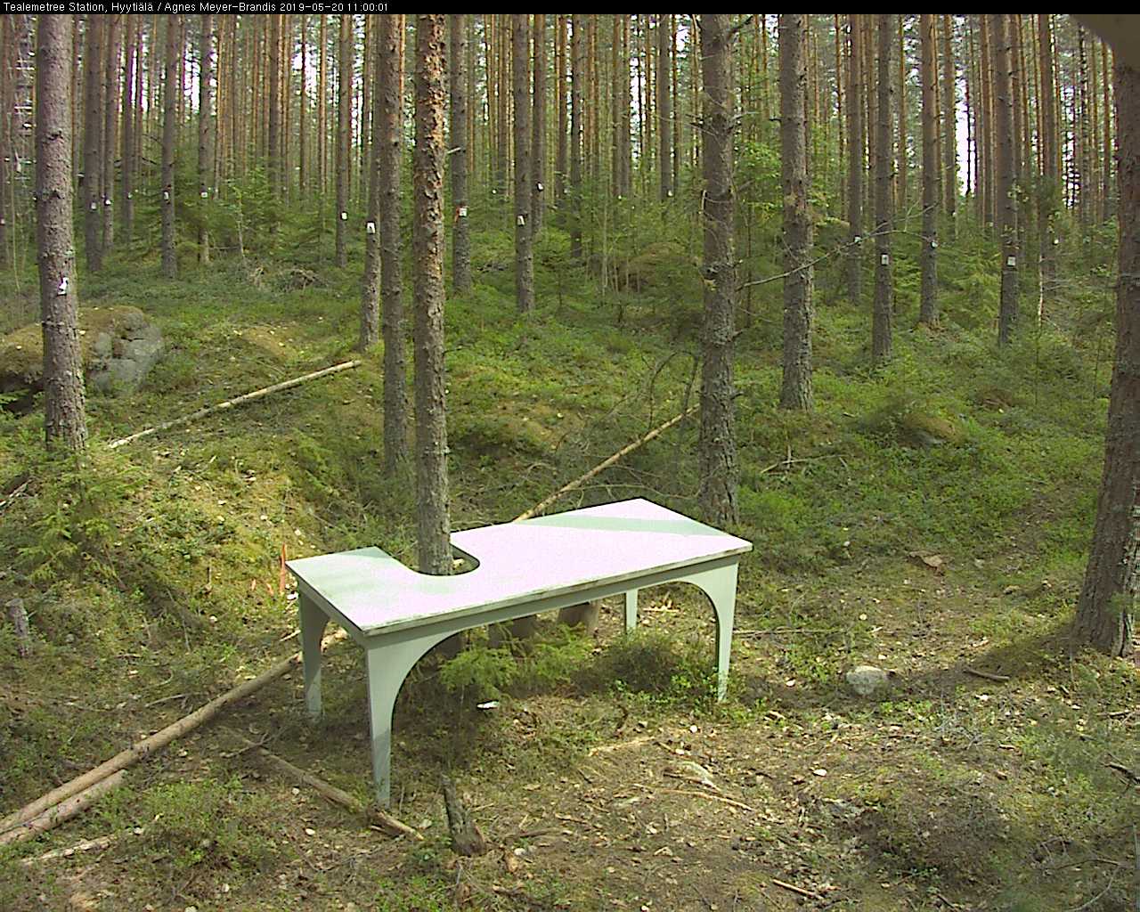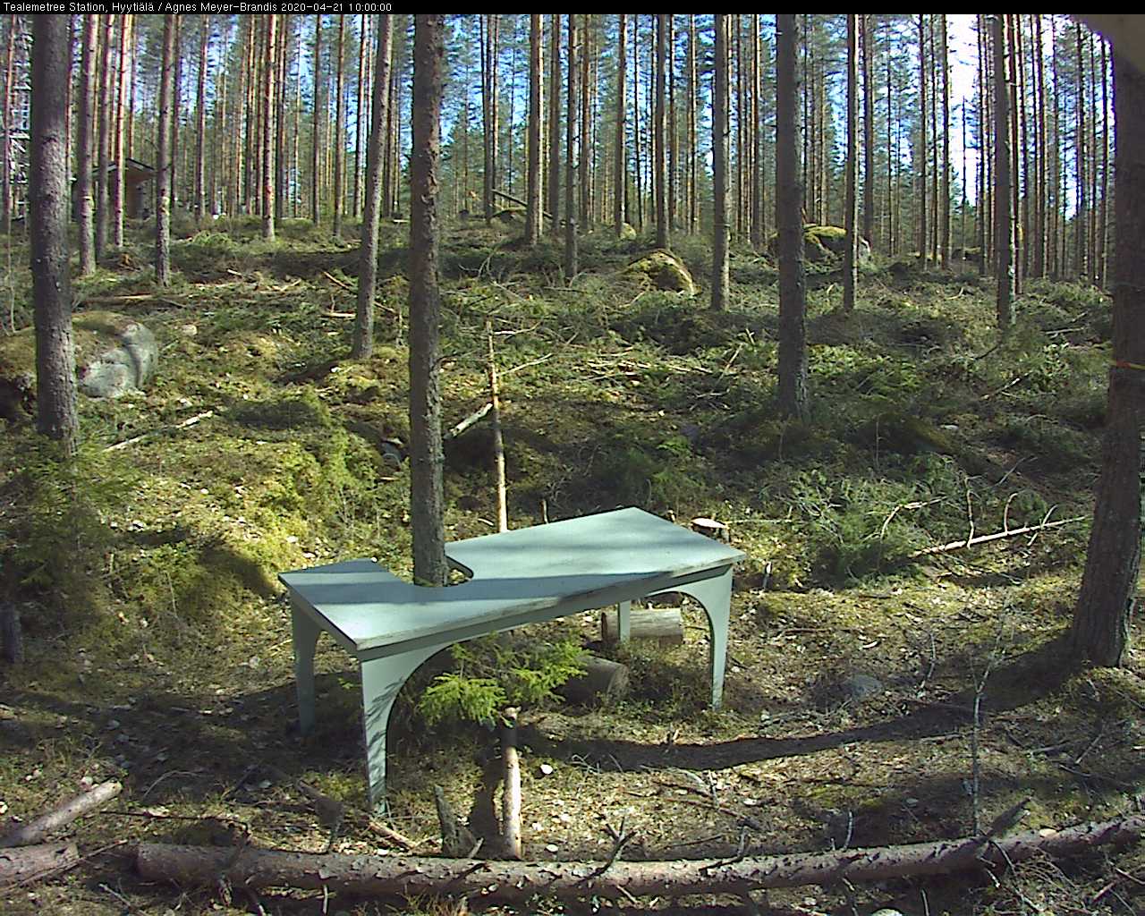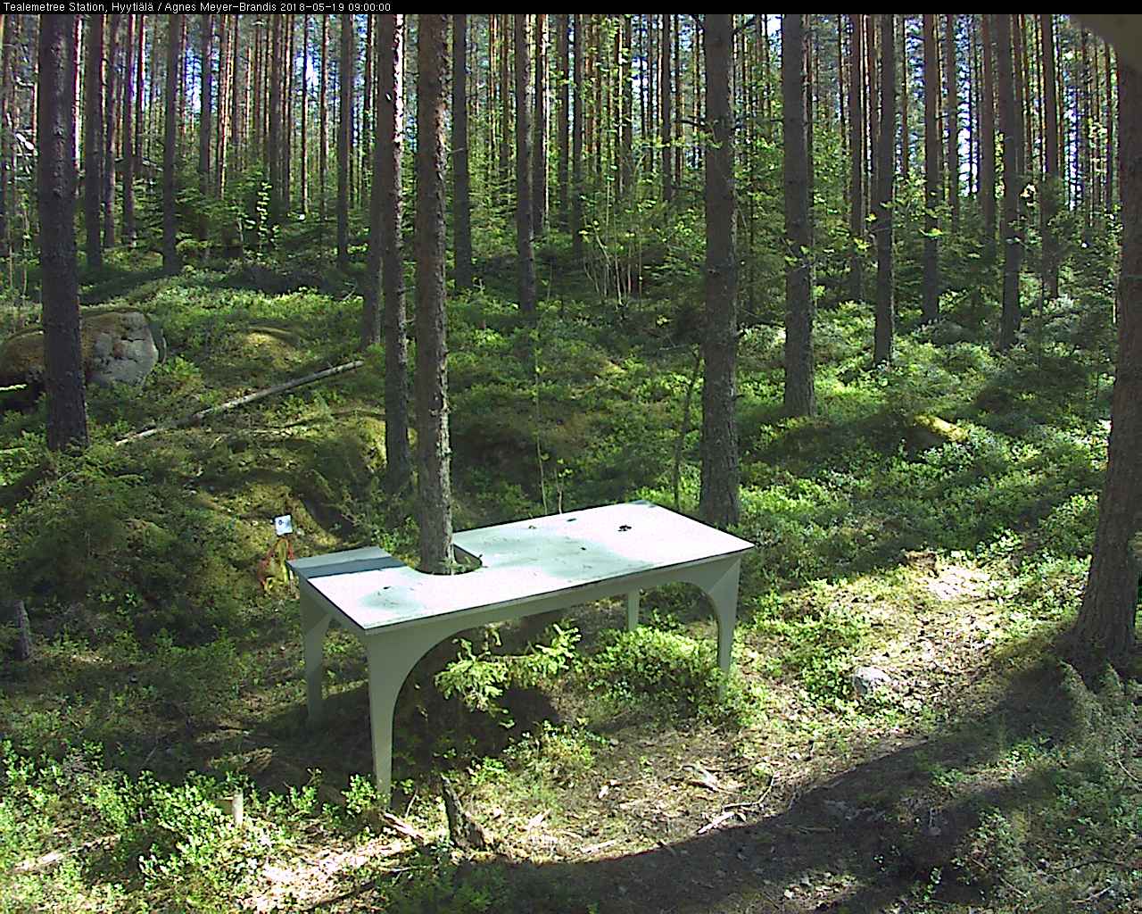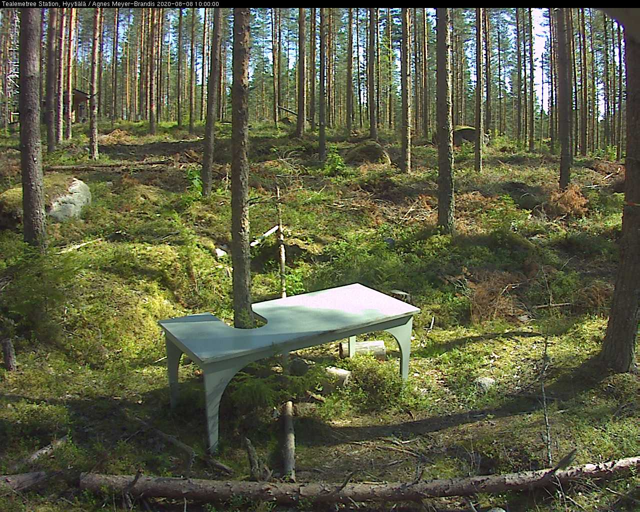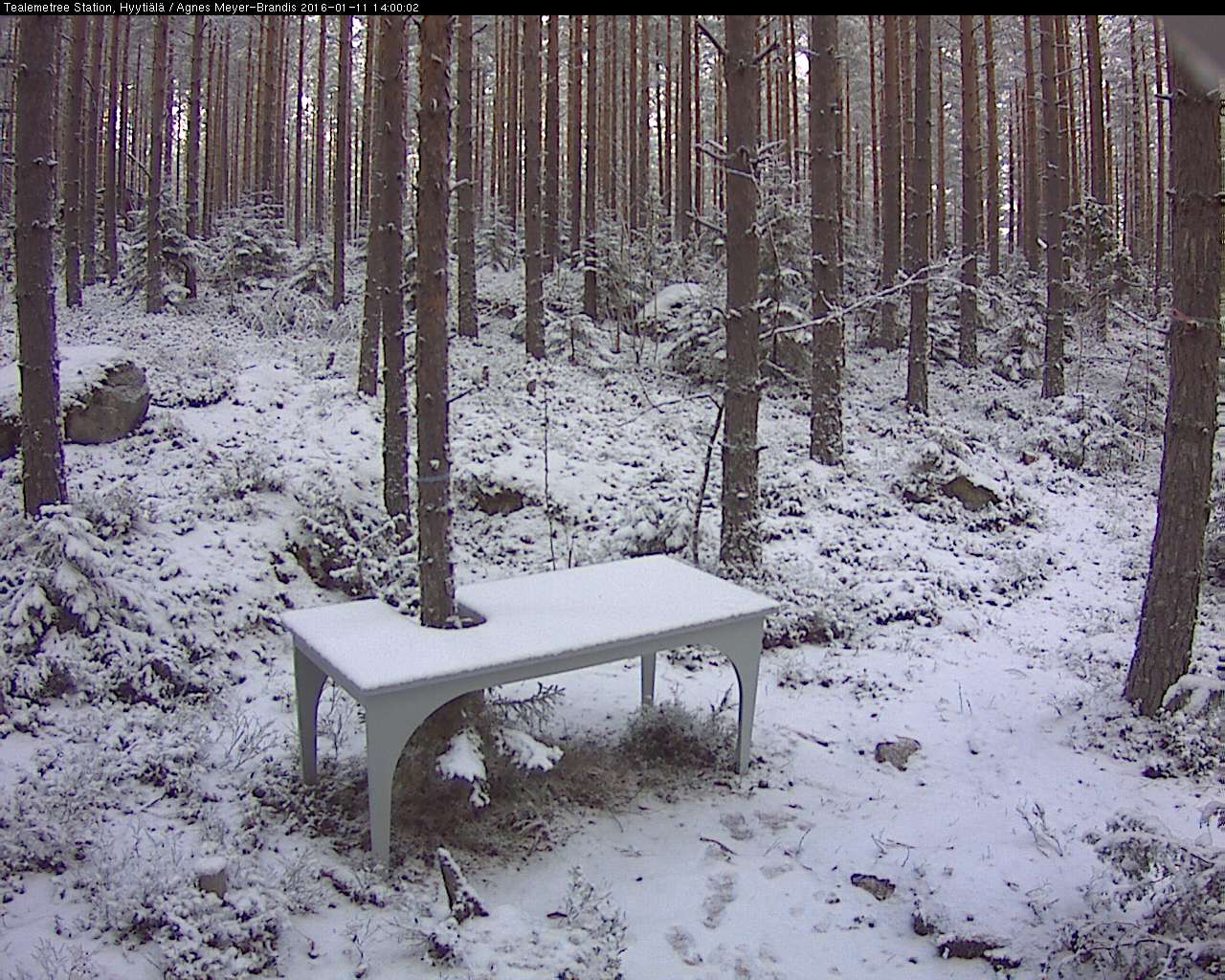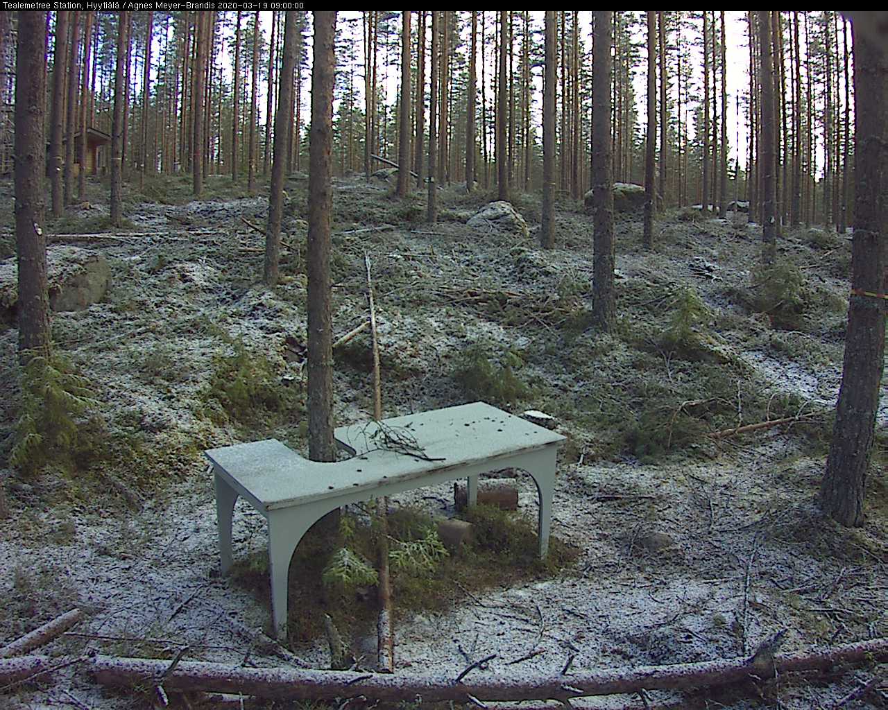 Agnes Meyer-Brandiksen työ Hyytiälässä alkoi tutustumalla aseman muihin tutkijoihin. Pystyäkseen tapaamaan ihmisiä metsässä, hän rakensi pöydän, josta muodostui kohtauspiste ja paikka teehetkille Agneksen ja puun kanssa.