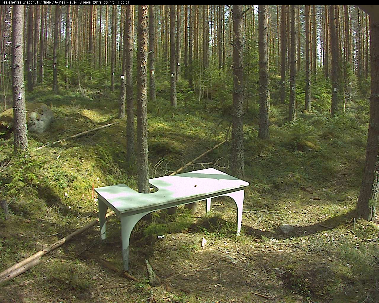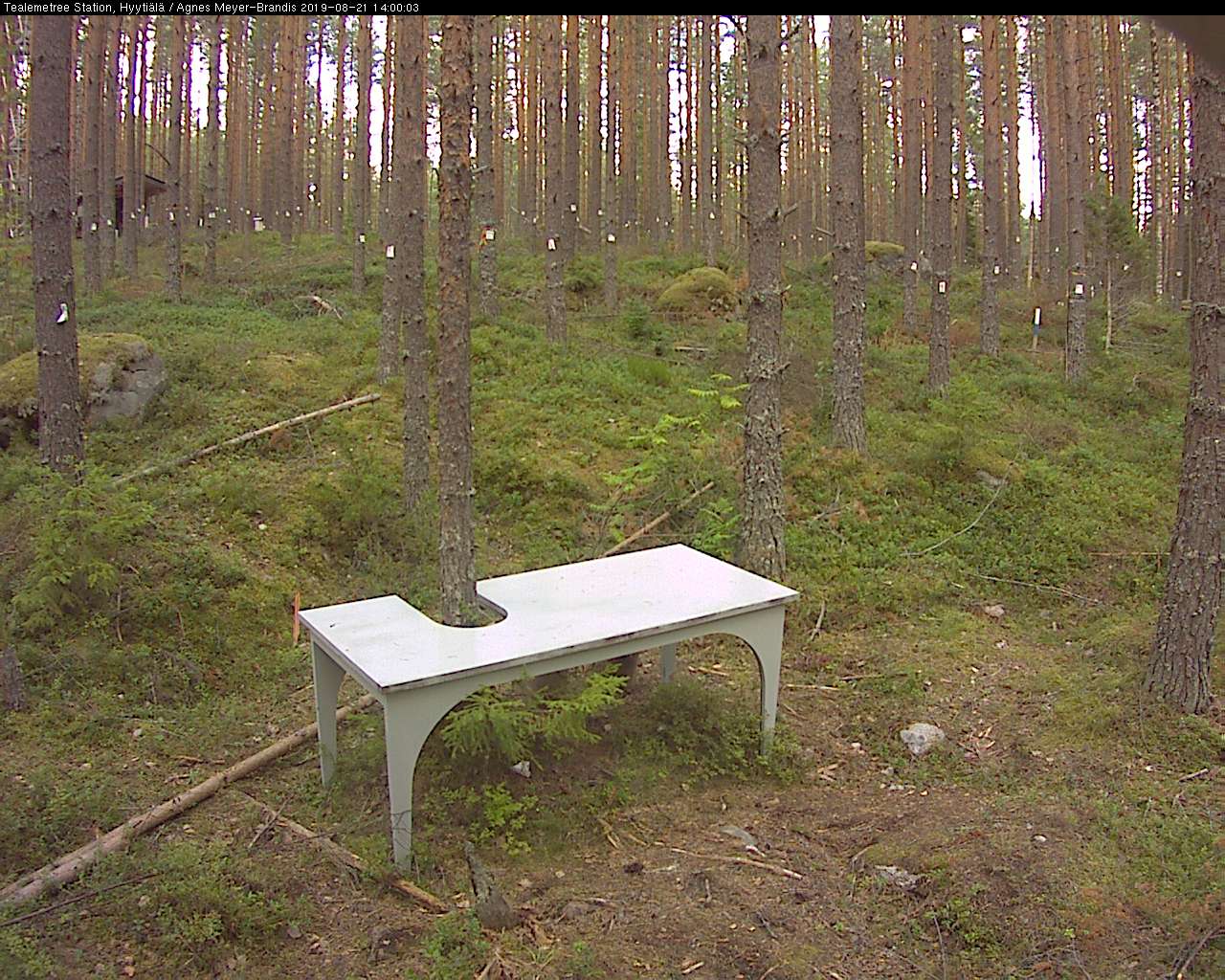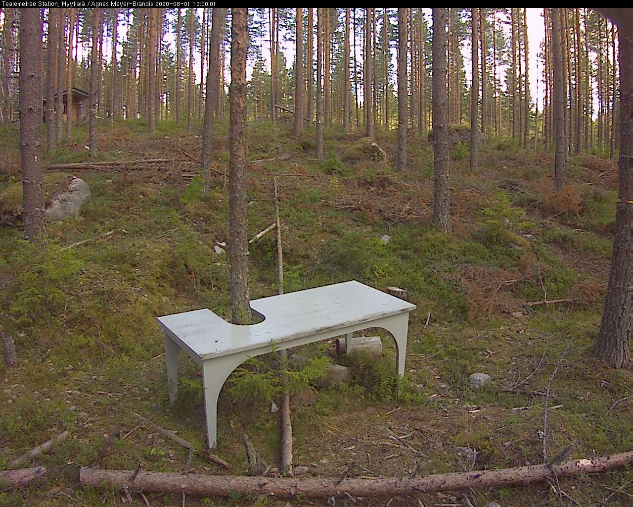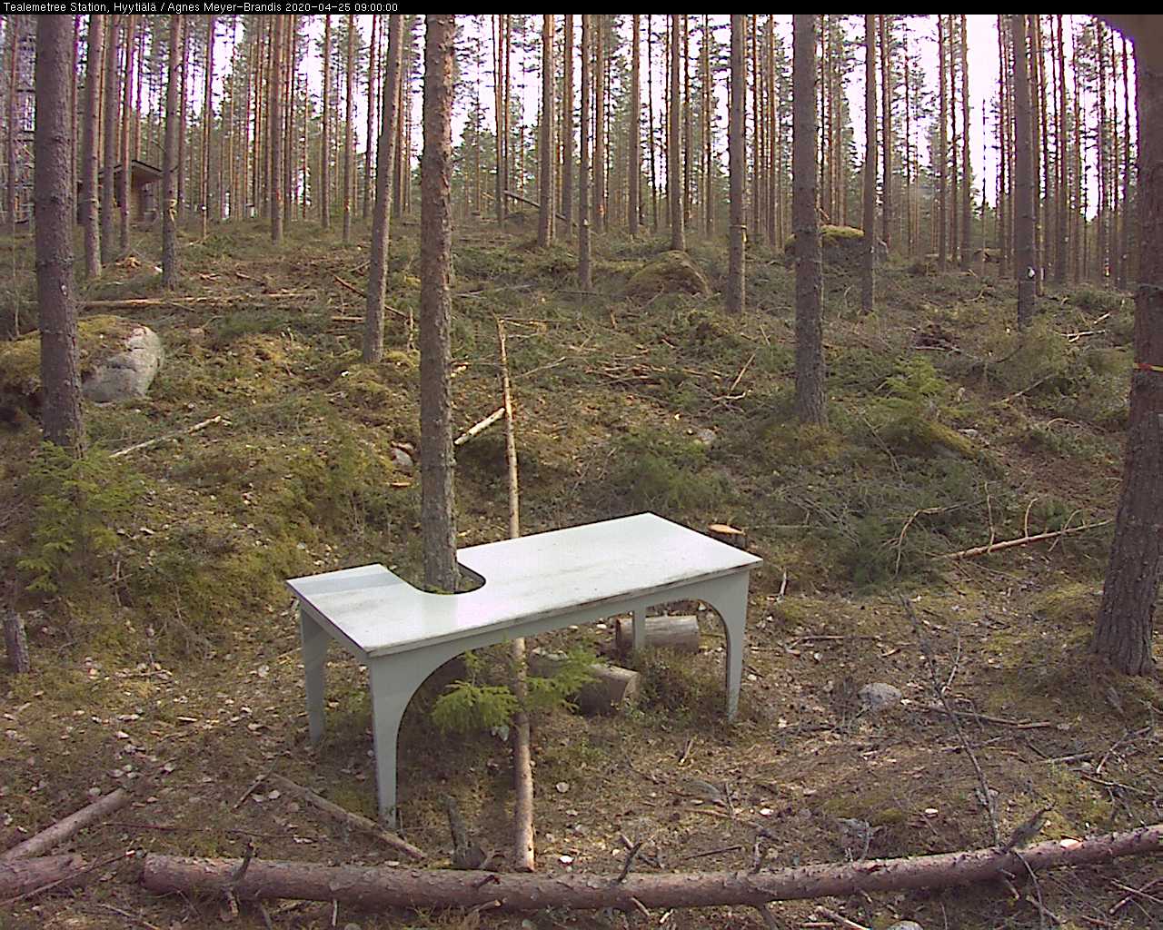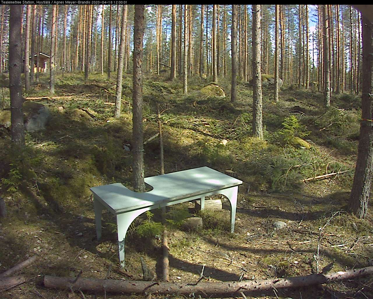 Agnes Meyer-Brandiksen työ Hyytiälässä alkoi tutustumalla aseman muihin tutkijoihin. Pystyäkseen tapaamaan ihmisiä metsässä, hän rakensi pöydän, josta muodostui kohtauspiste ja paikka teehetkille Agneksen ja puun kanssa.