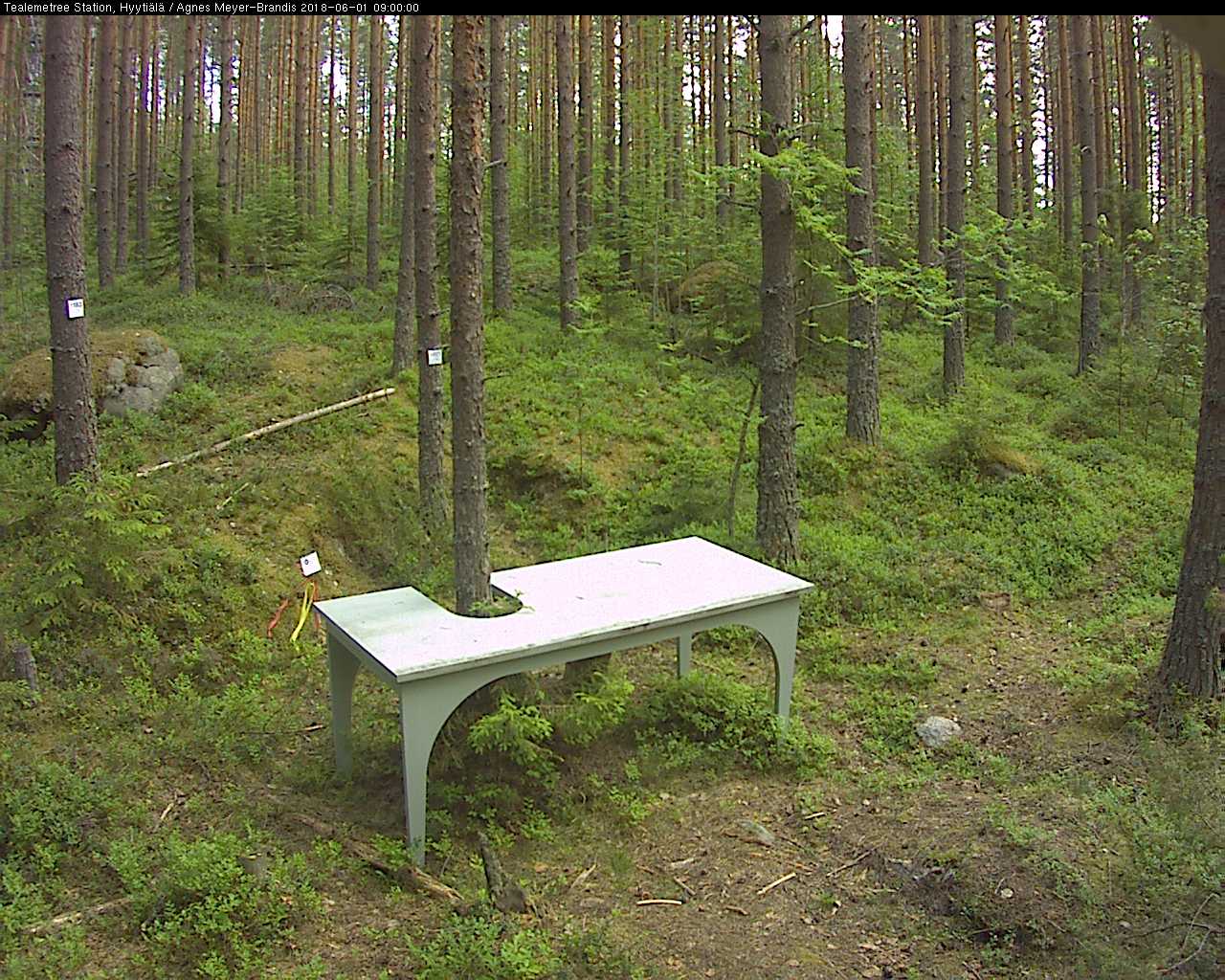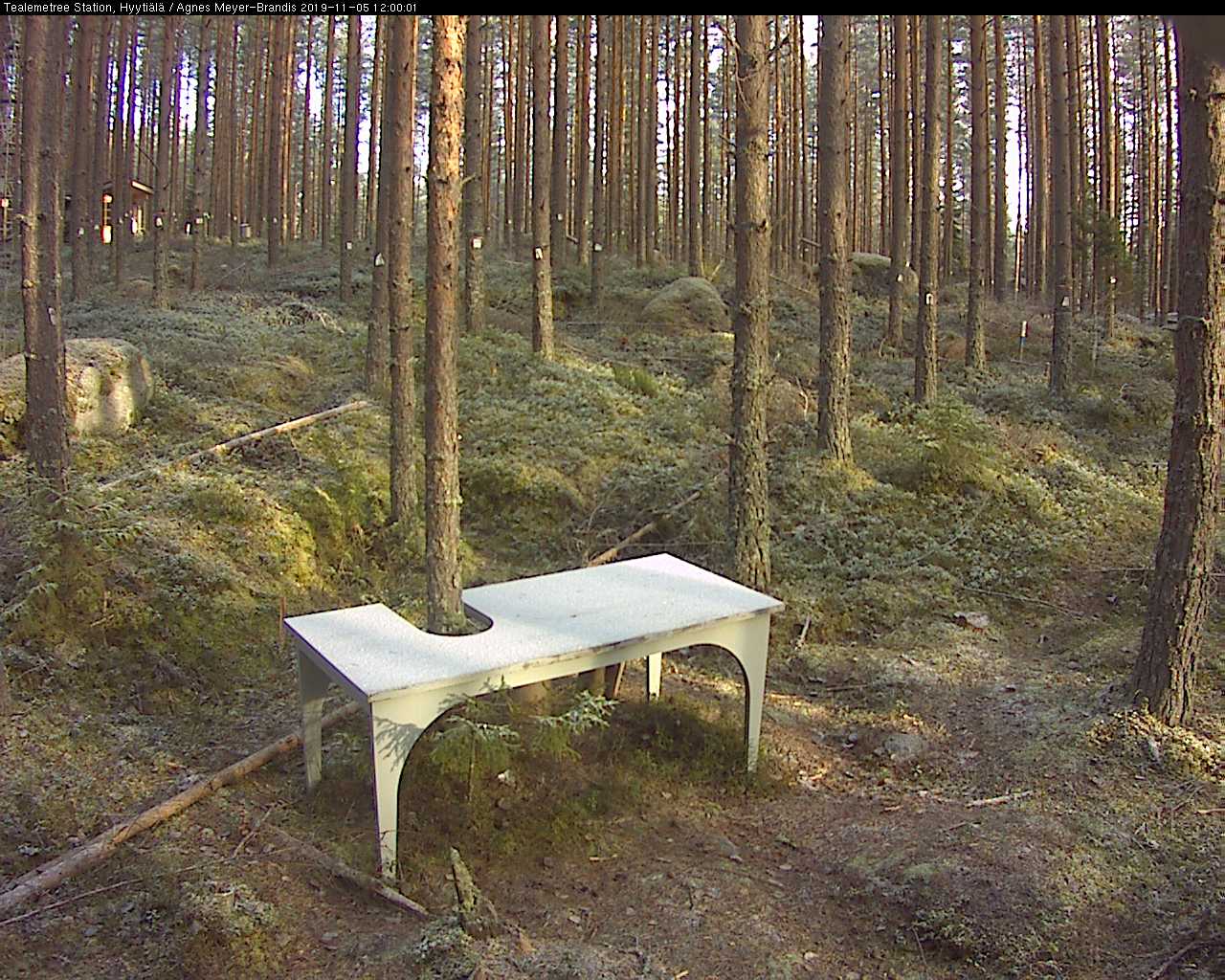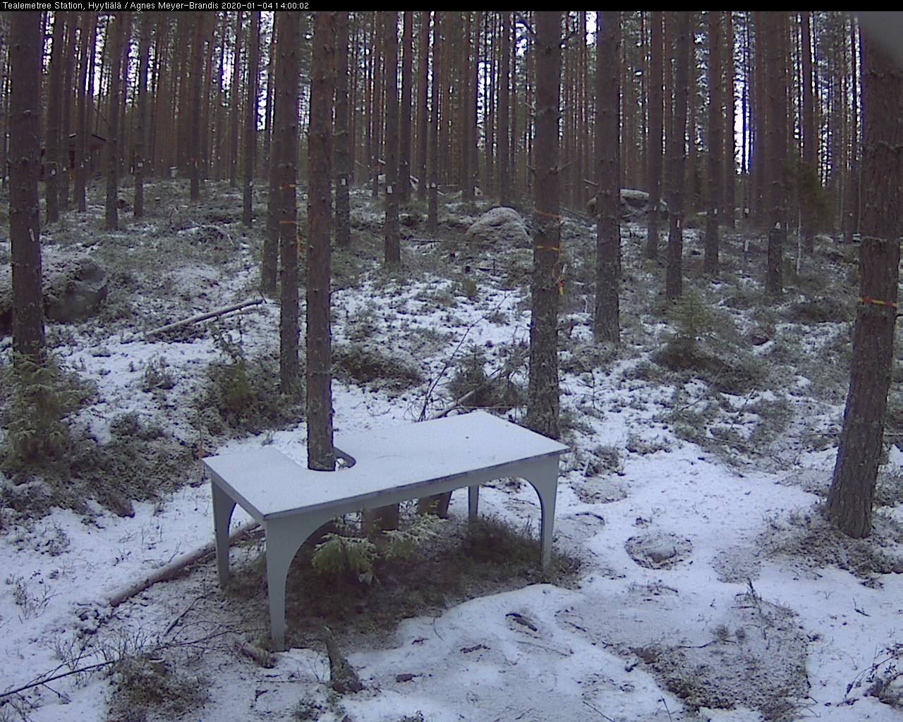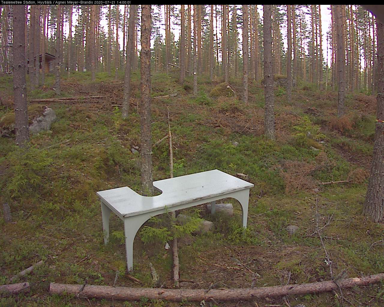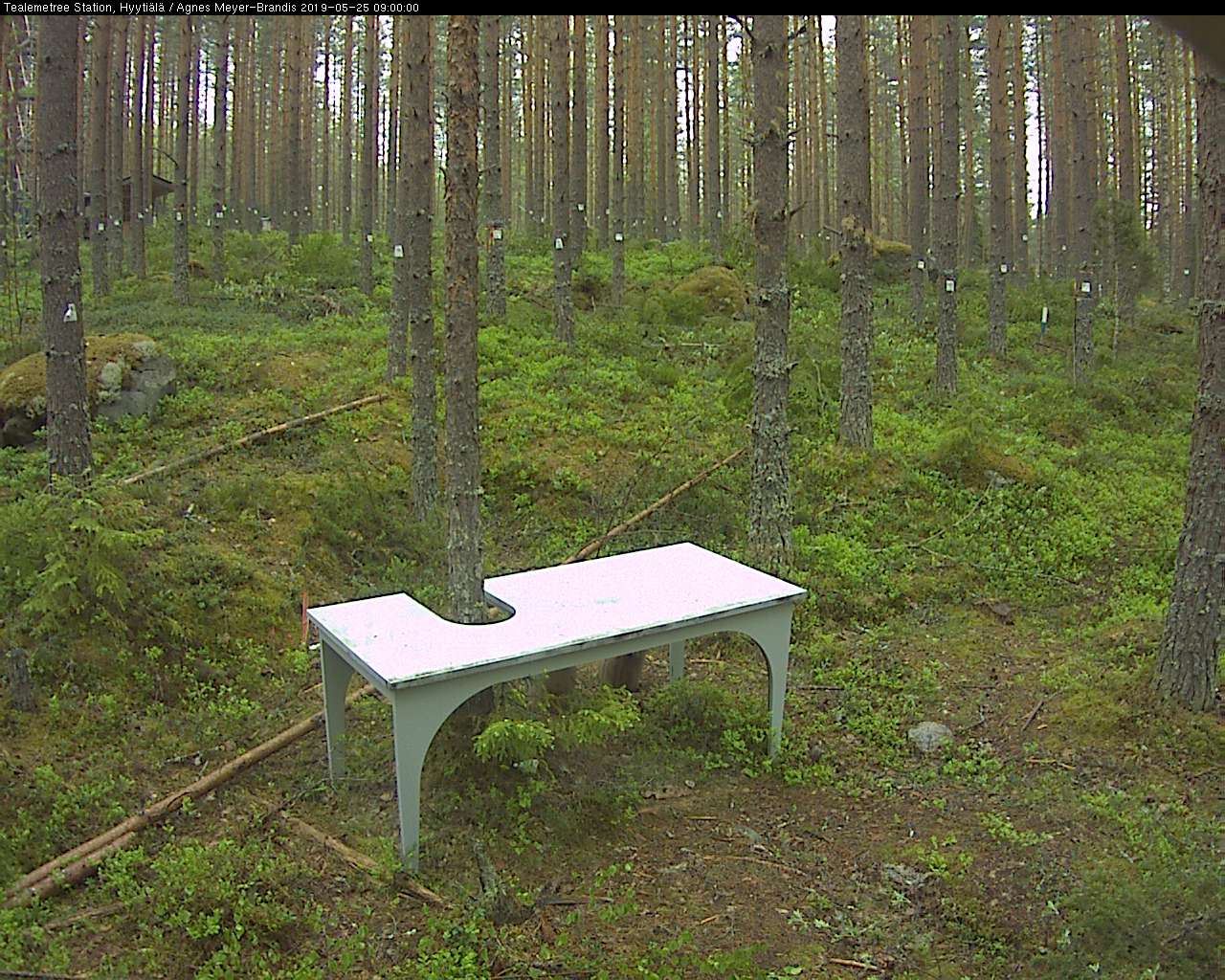 Agnes Meyer-Brandiksen työ Hyytiälässä alkoi tutustumalla aseman muihin tutkijoihin. Pystyäkseen tapaamaan ihmisiä metsässä, hän rakensi pöydän, josta muodostui kohtauspiste ja paikka teehetkille Agneksen ja puun kanssa.