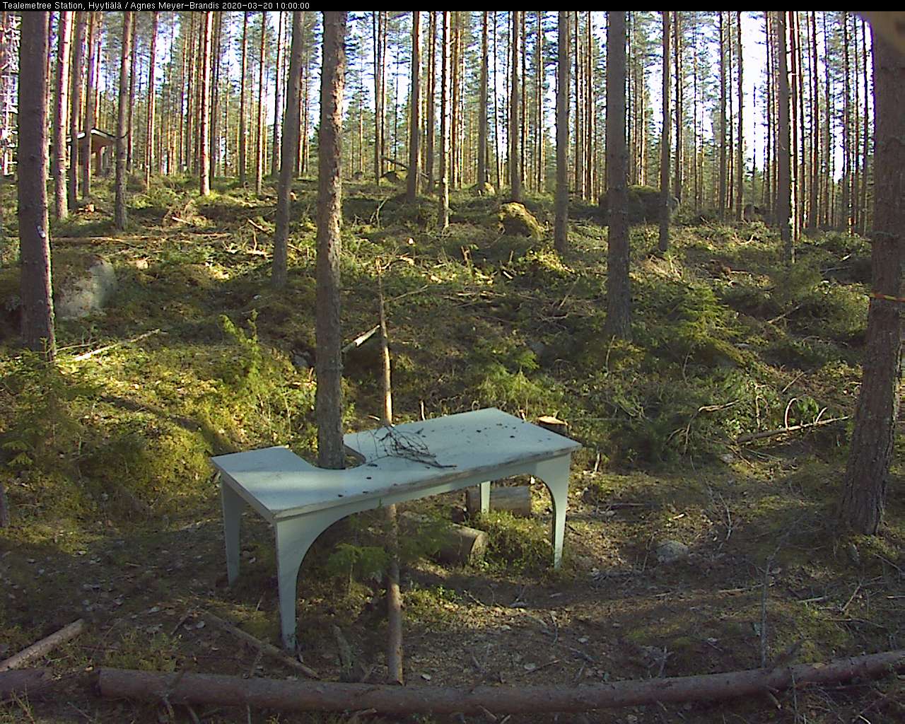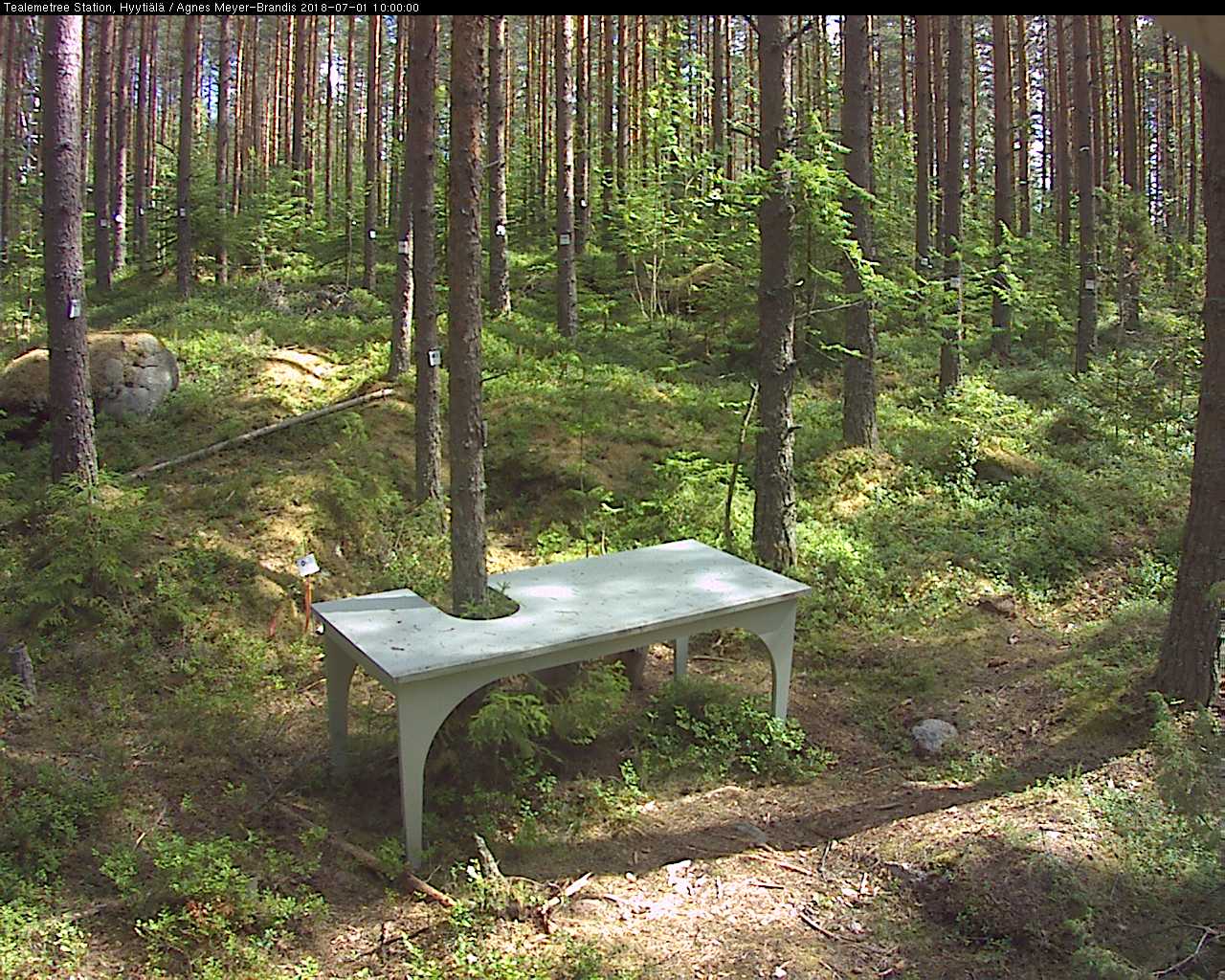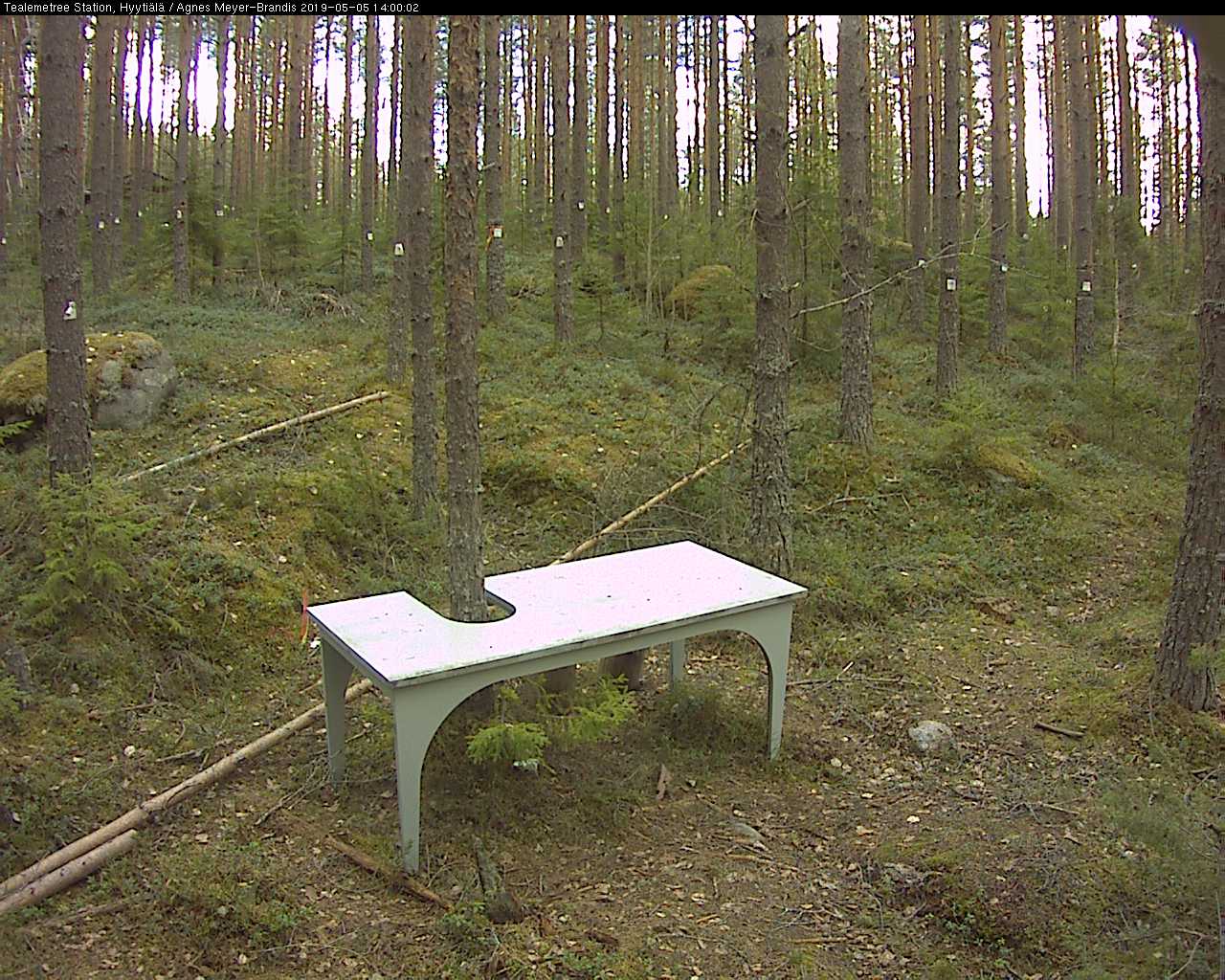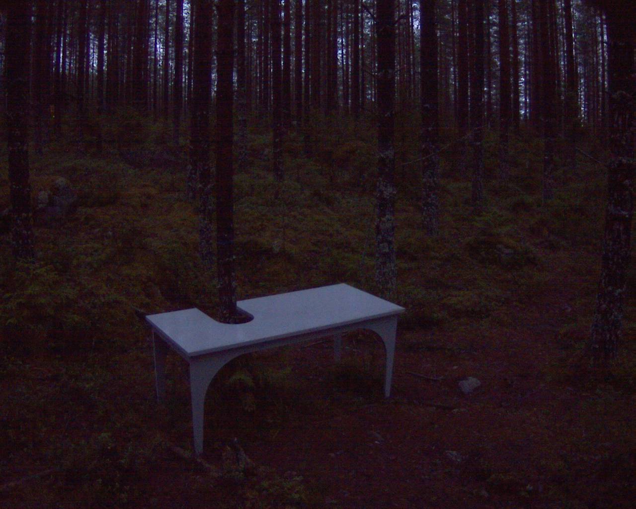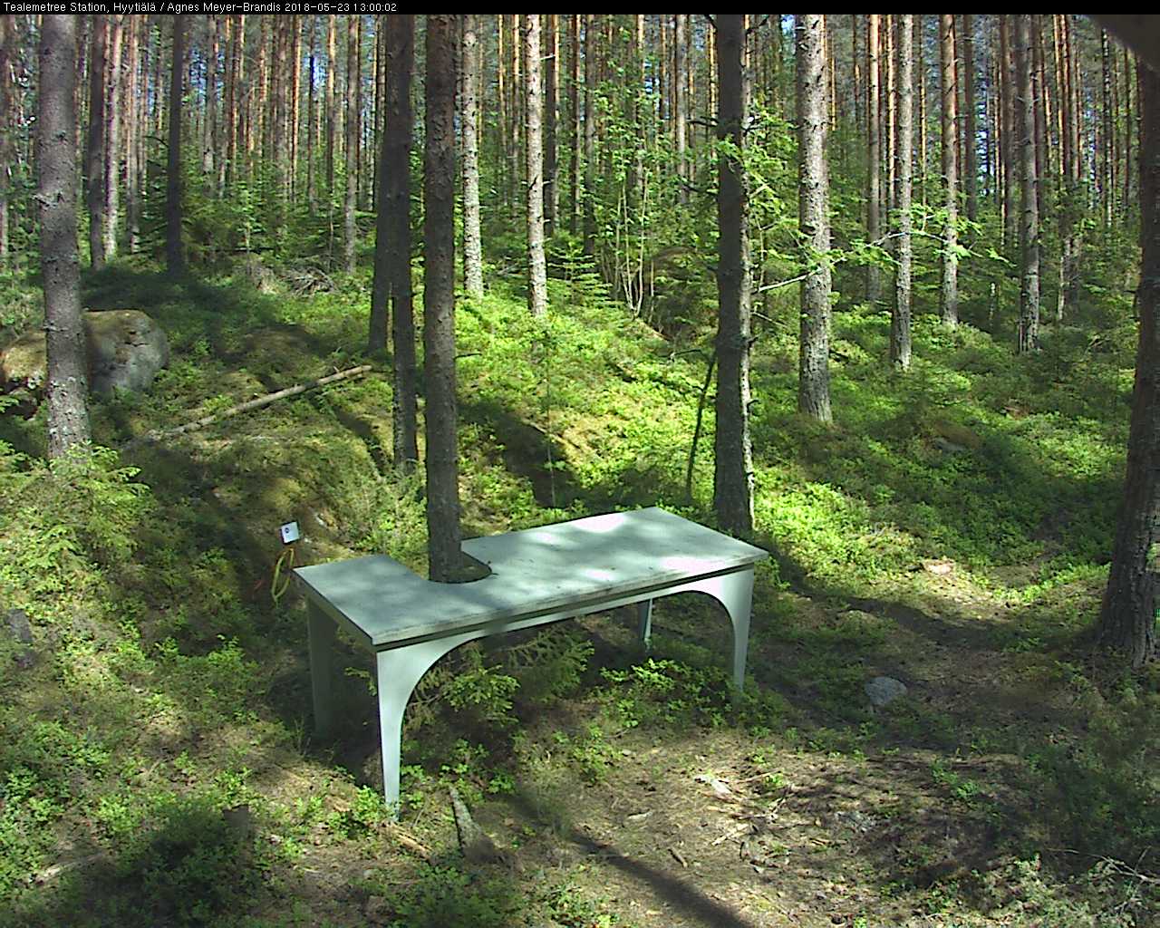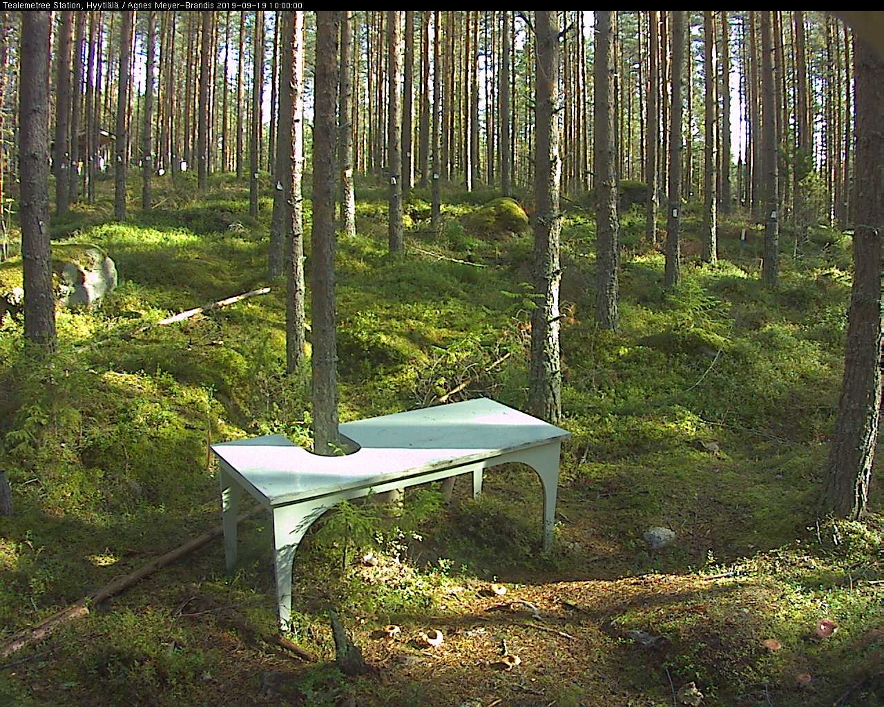 Agnes Meyer-Brandiksen työ Hyytiälässä alkoi tutustumalla aseman muihin tutkijoihin. Pystyäkseen tapaamaan ihmisiä metsässä, hän rakensi pöydän, josta muodostui kohtauspiste ja paikka teehetkille Agneksen ja puun kanssa.