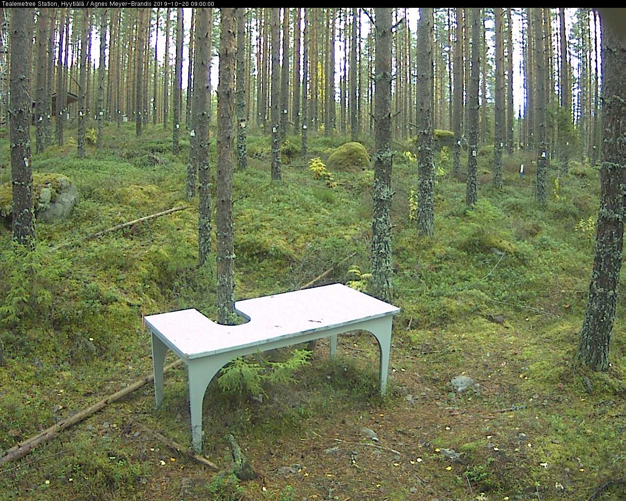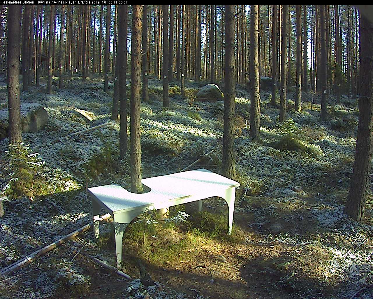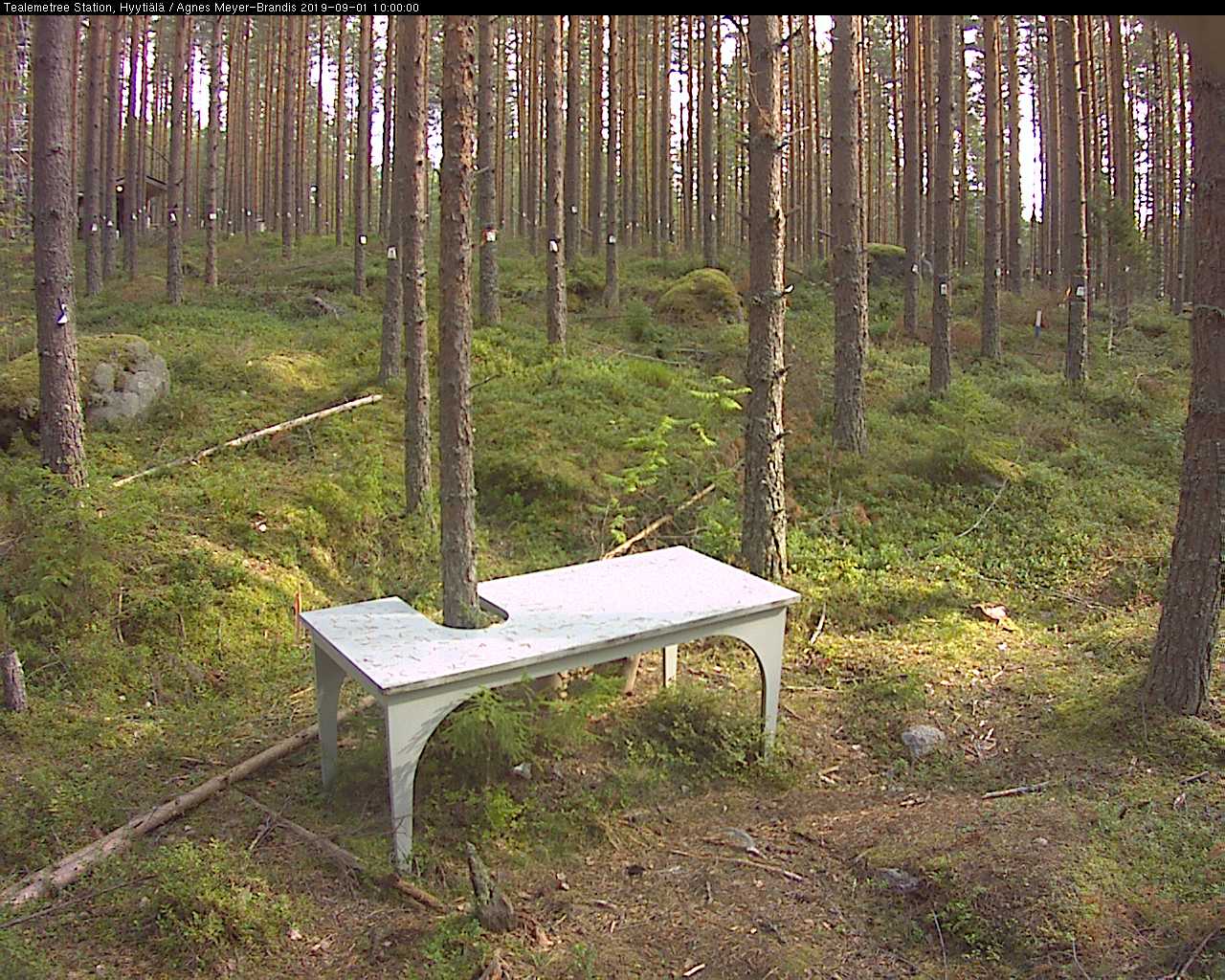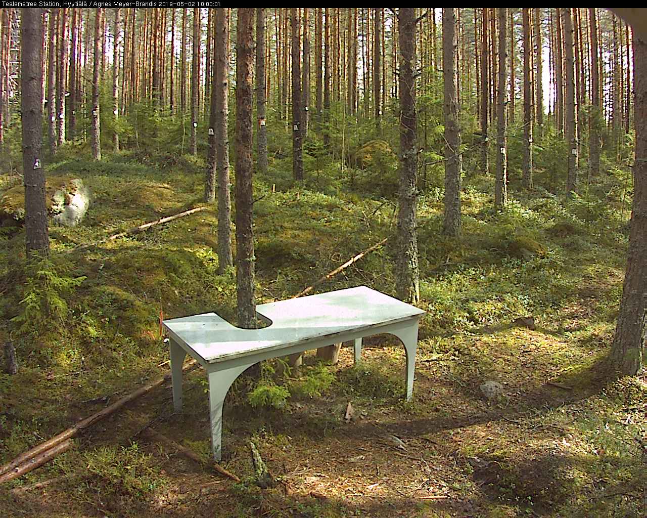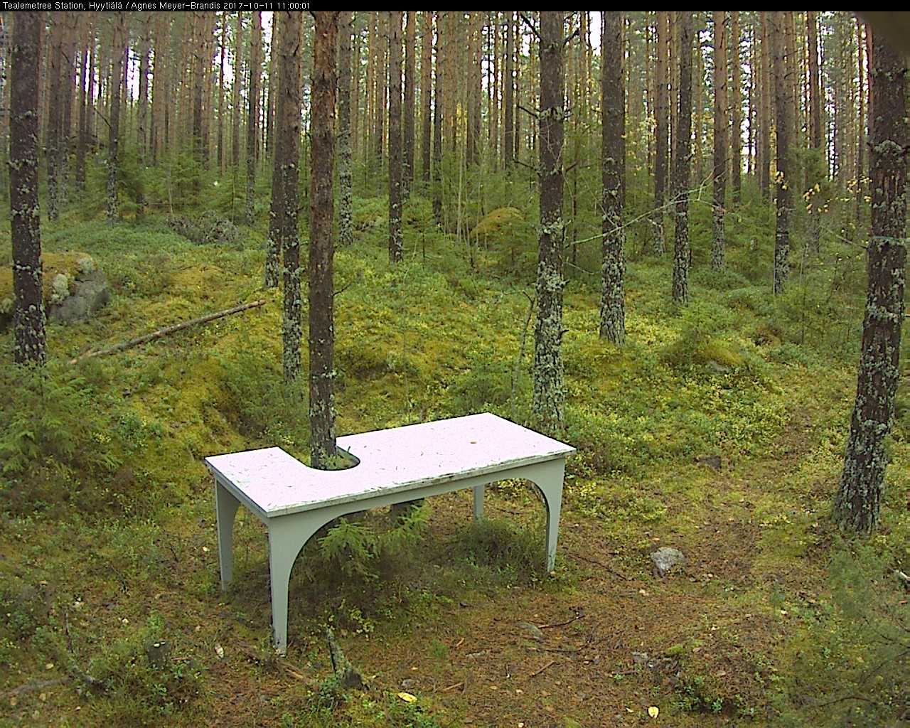 Agnes Meyer-Brandiksen työ Hyytiälässä alkoi tutustumalla aseman muihin tutkijoihin. Pystyäkseen tapaamaan ihmisiä metsässä, hän rakensi pöydän, josta muodostui kohtauspiste ja paikka teehetkille Agneksen ja puun kanssa.