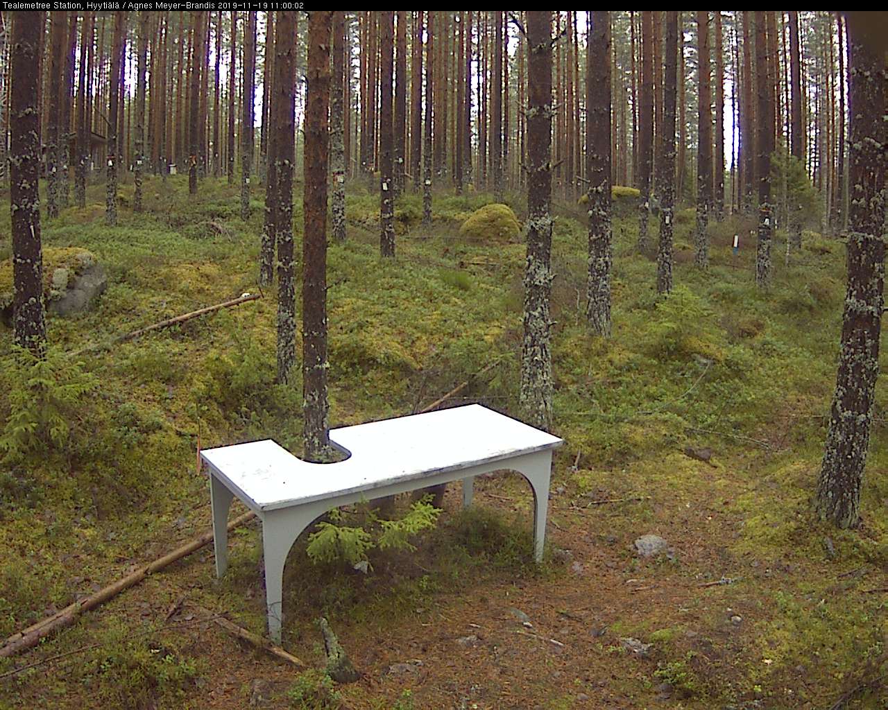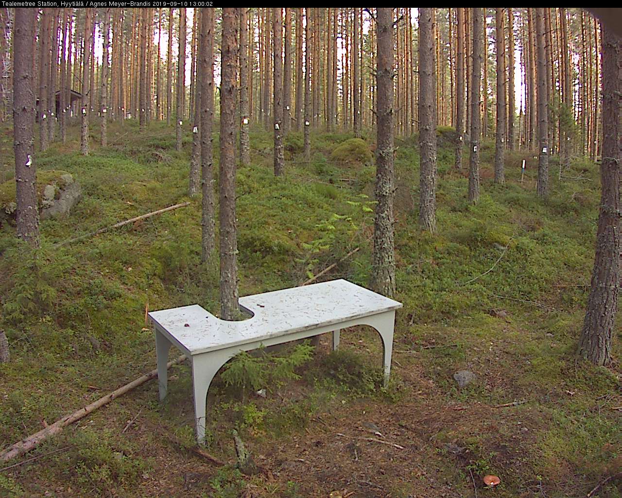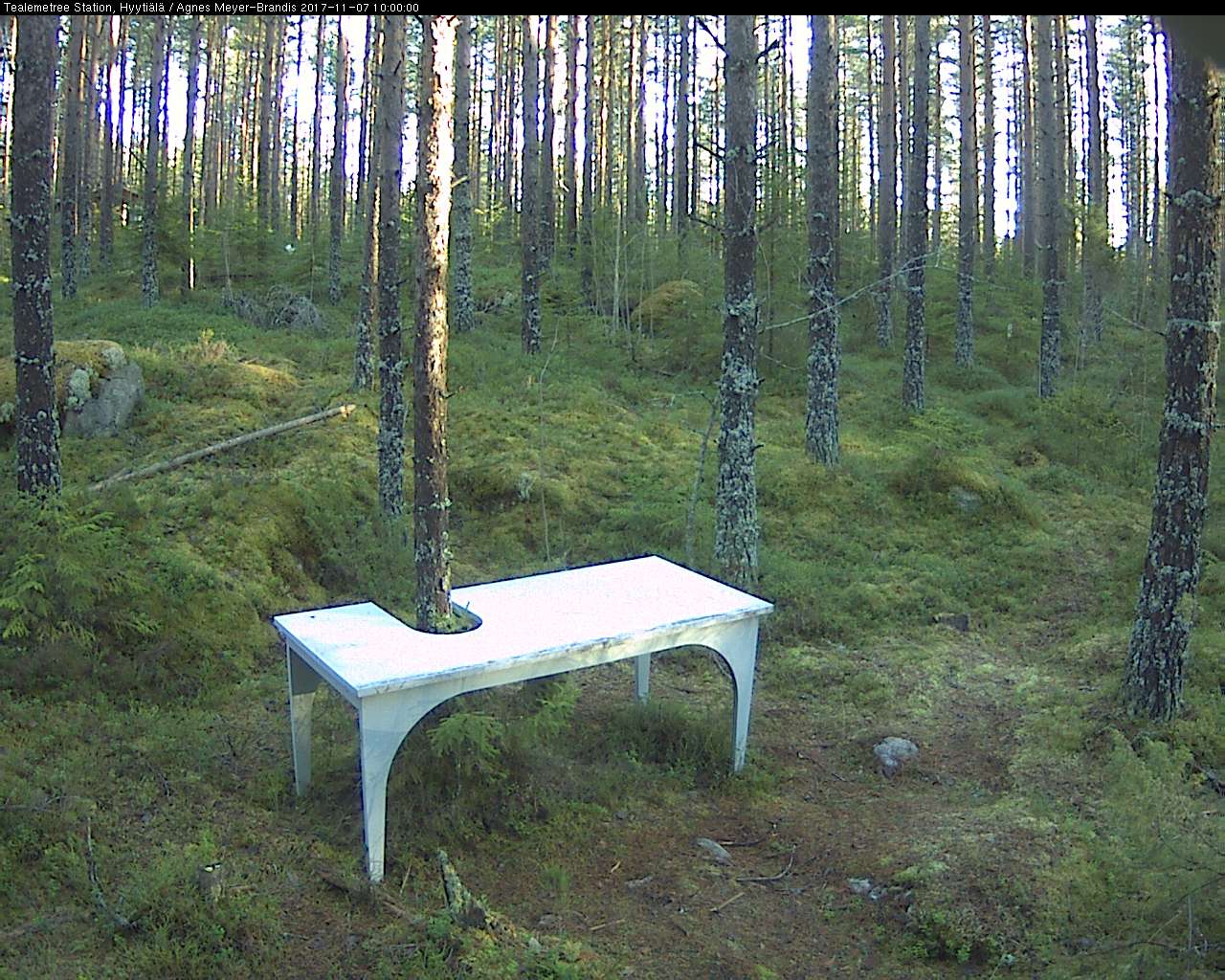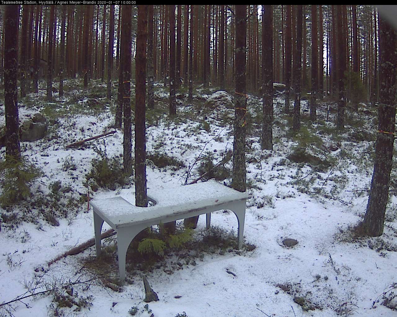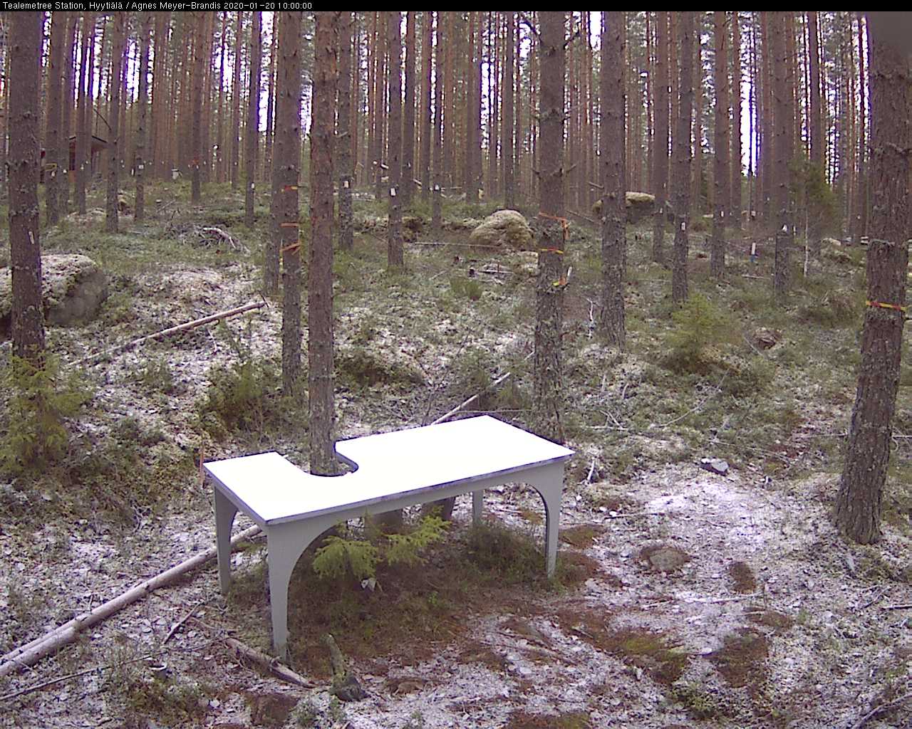 Agnes Meyer-Brandiksen työ Hyytiälässä alkoi tutustumalla aseman muihin tutkijoihin. Pystyäkseen tapaamaan ihmisiä metsässä, hän rakensi pöydän, josta muodostui kohtauspiste ja paikka teehetkille Agneksen ja puun kanssa.