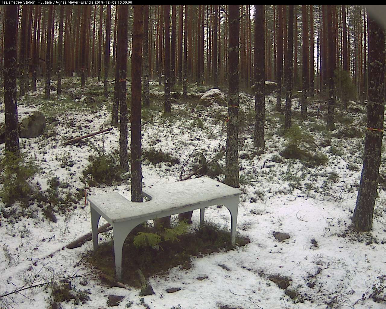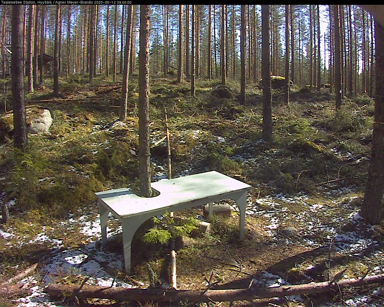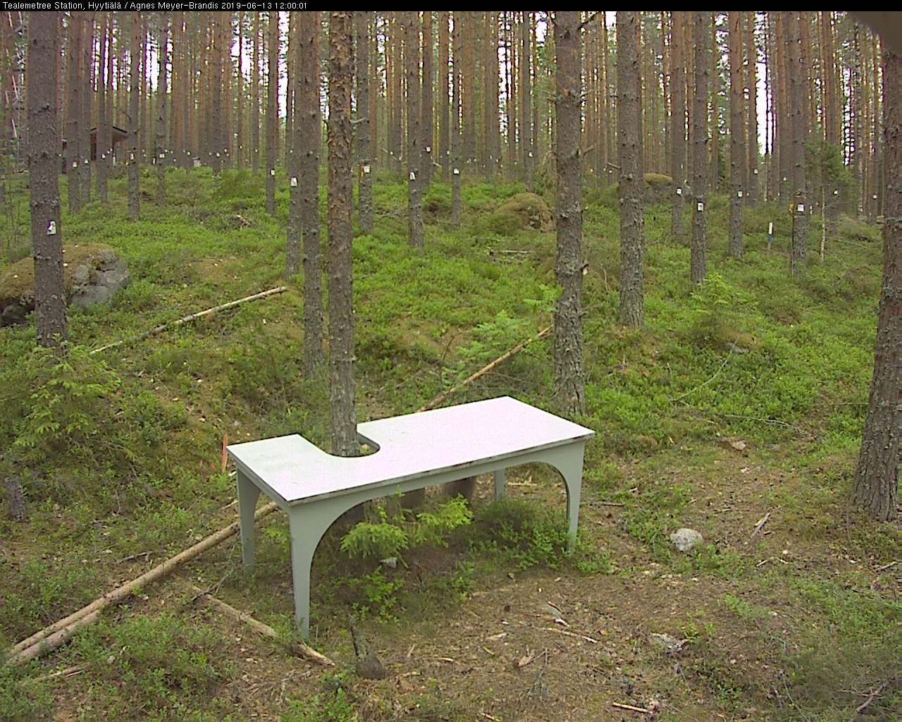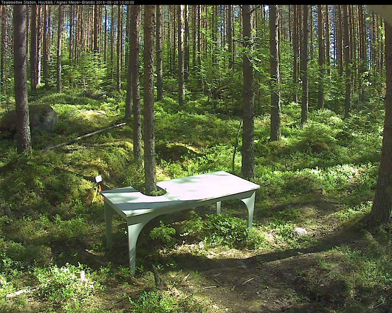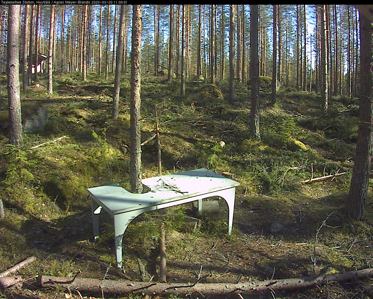 Agnes Meyer-Brandiksen työ Hyytiälässä alkoi tutustumalla aseman muihin tutkijoihin. Pystyäkseen tapaamaan ihmisiä metsässä, hän rakensi pöydän, josta muodostui kohtauspiste ja paikka teehetkille Agneksen ja puun kanssa.