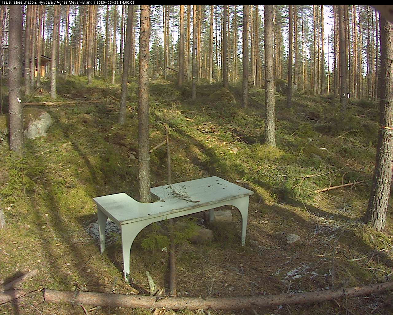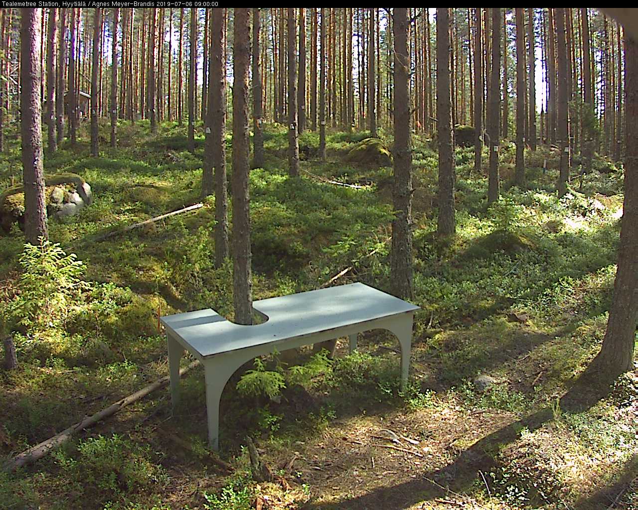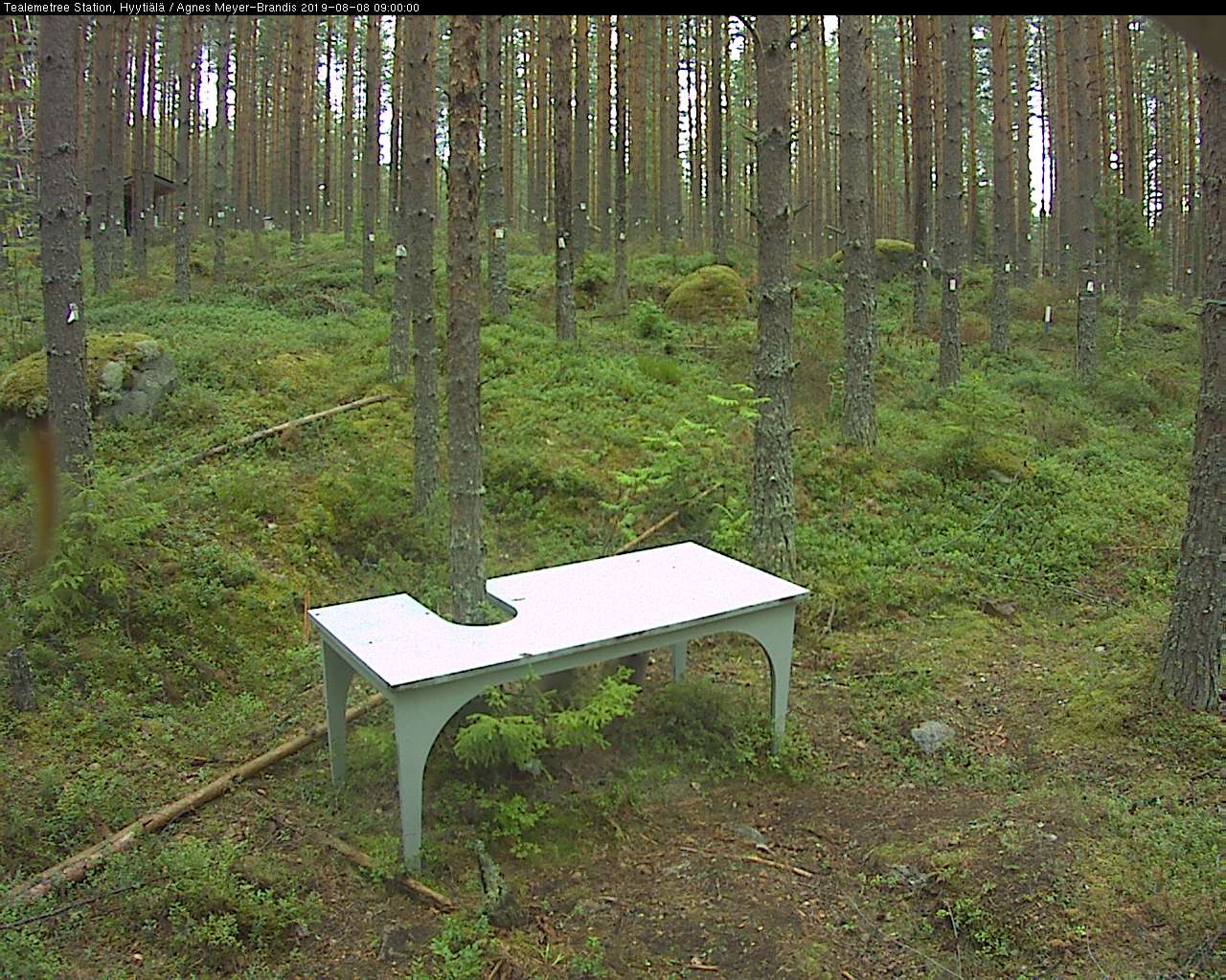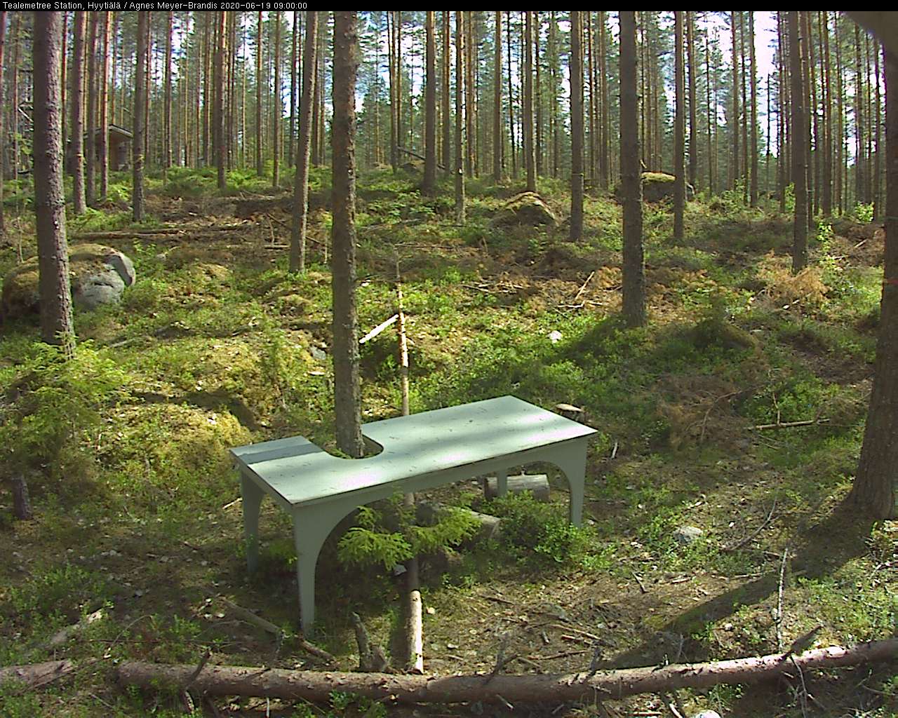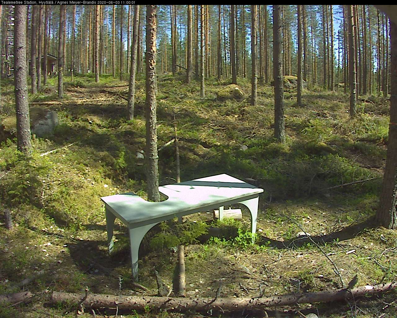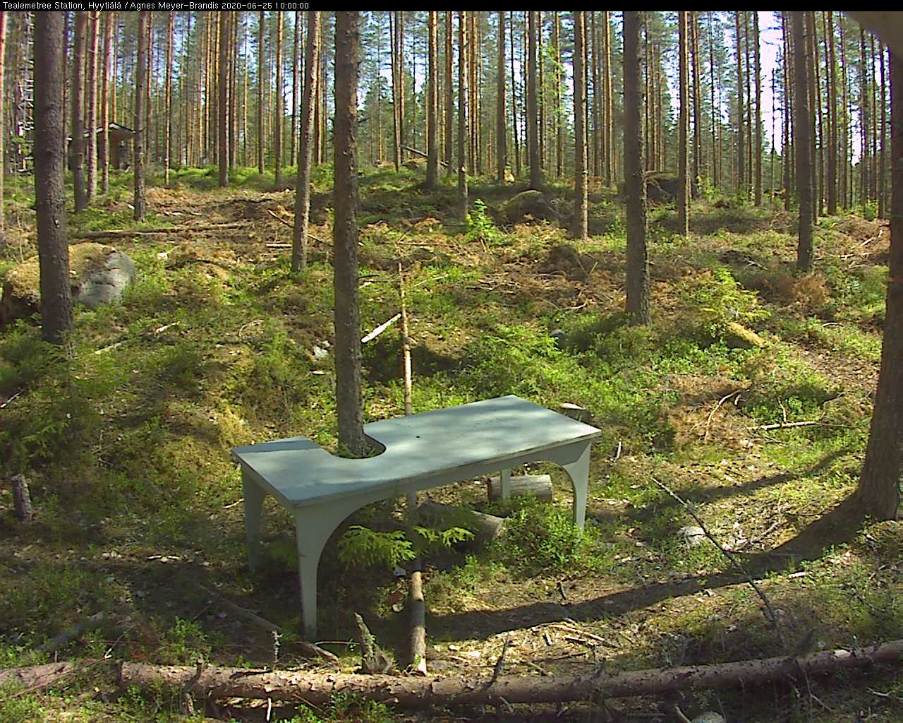 Agnes Meyer-Brandiksen työ Hyytiälässä alkoi tutustumalla aseman muihin tutkijoihin. Pystyäkseen tapaamaan ihmisiä metsässä, hän rakensi pöydän, josta muodostui kohtauspiste ja paikka teehetkille Agneksen ja puun kanssa.