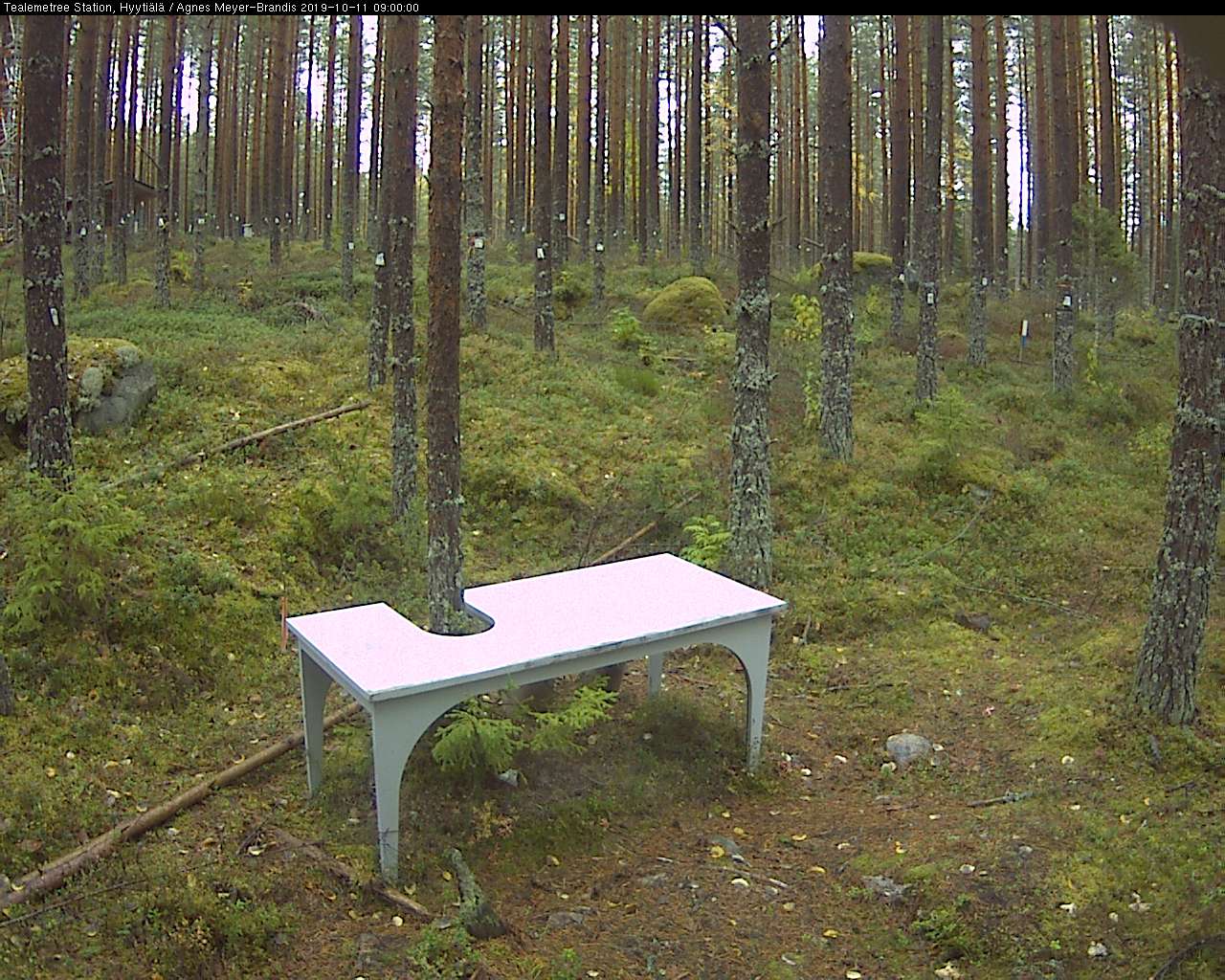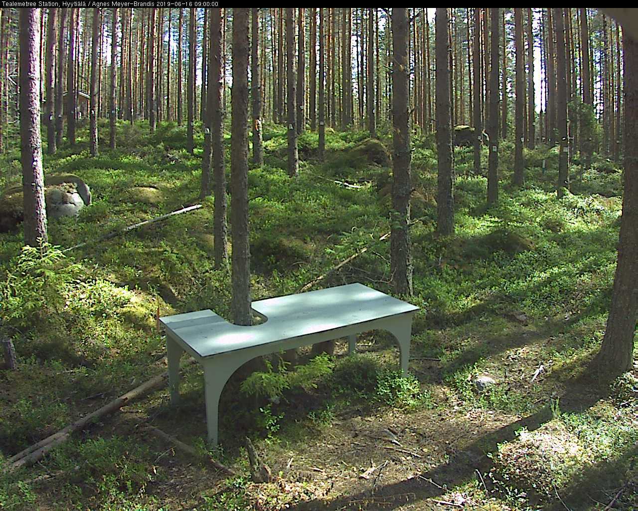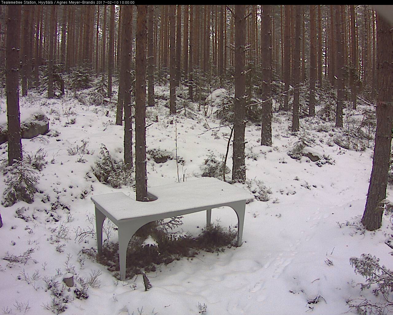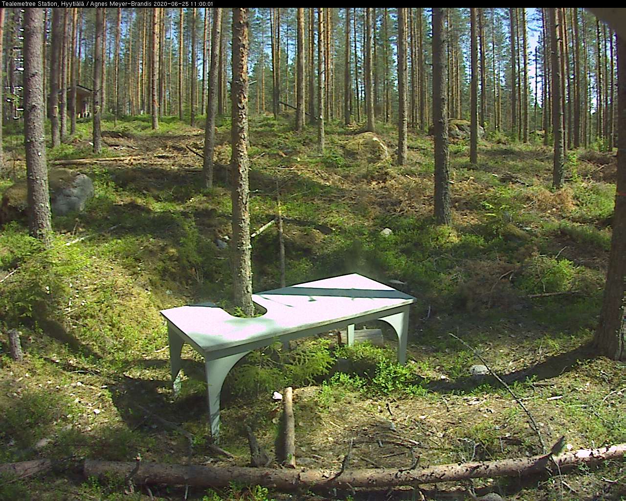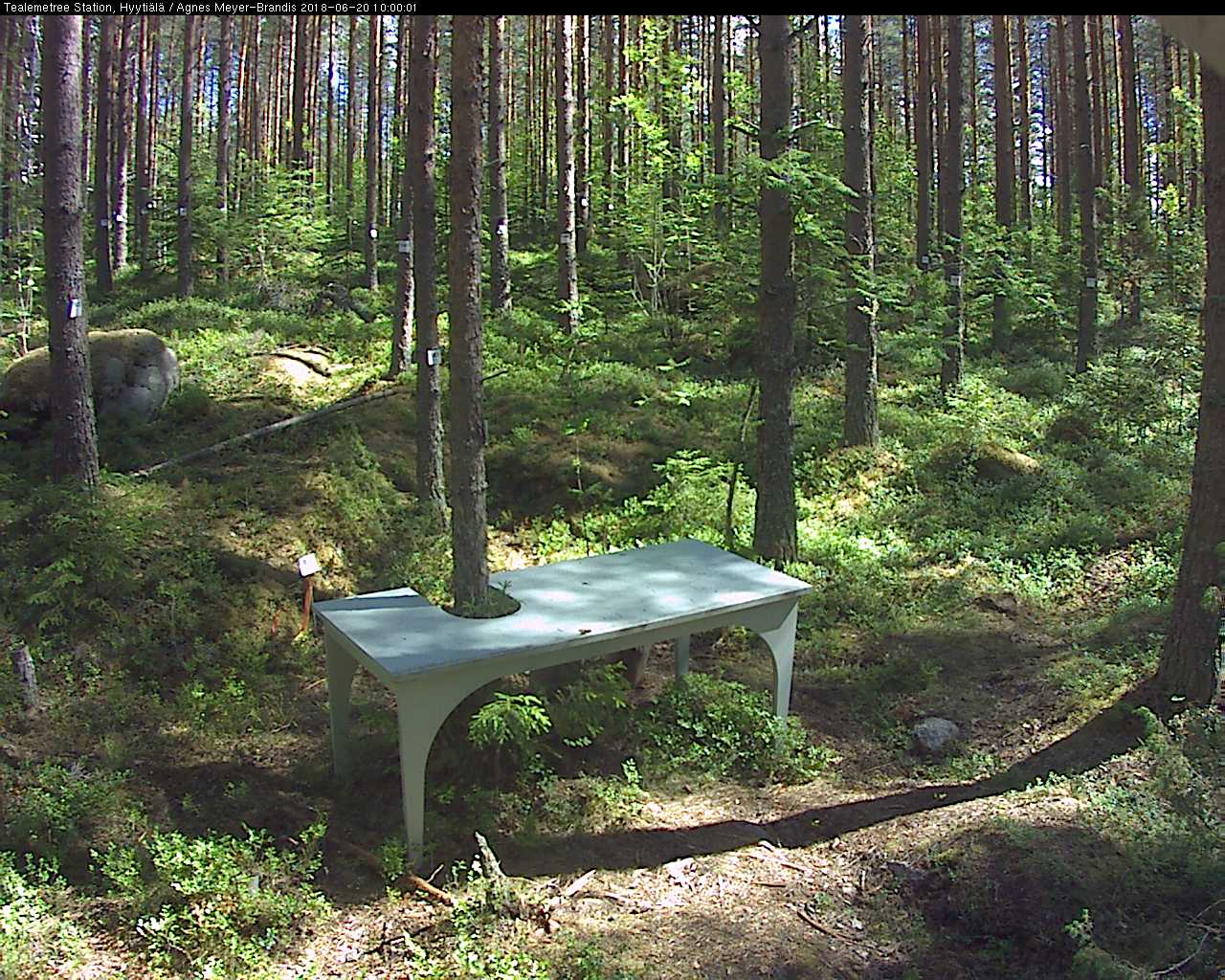Agnes Meyer-Brandiksen työ Hyytiälässä alkoi tutustumalla aseman muihin tutkijoihin. Pystyäkseen tapaamaan ihmisiä metsässä, hän rakensi pöydän, josta muodostui kohtauspiste ja paikka teehetkille Agneksen ja puun kanssa.