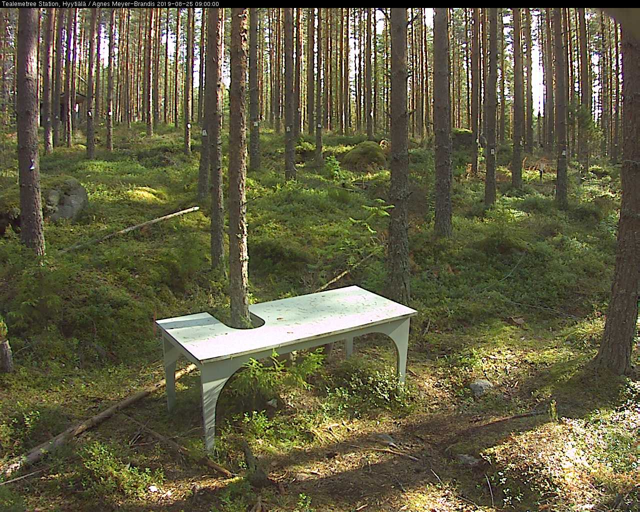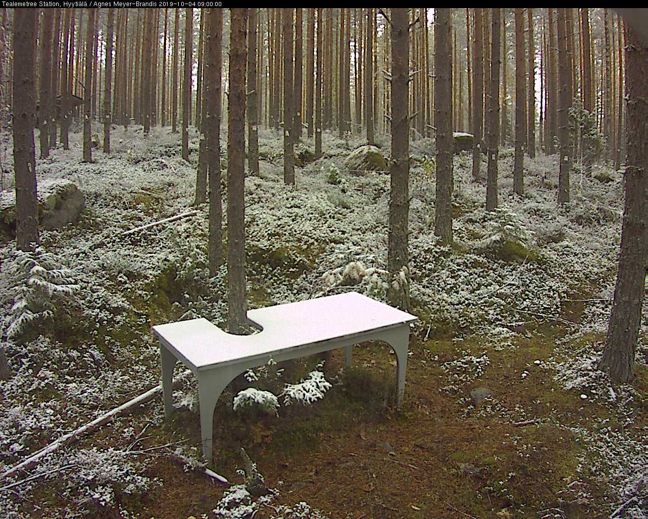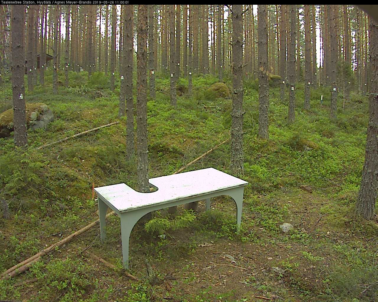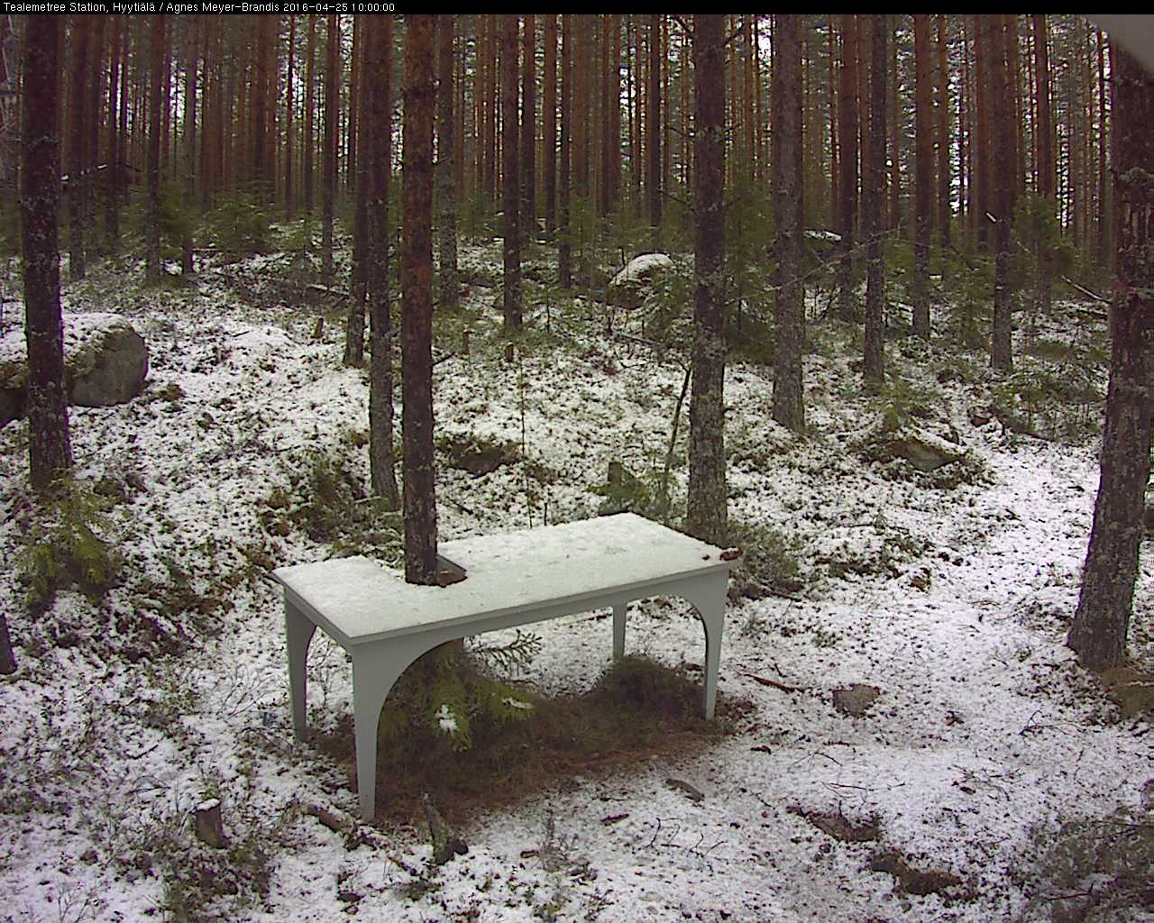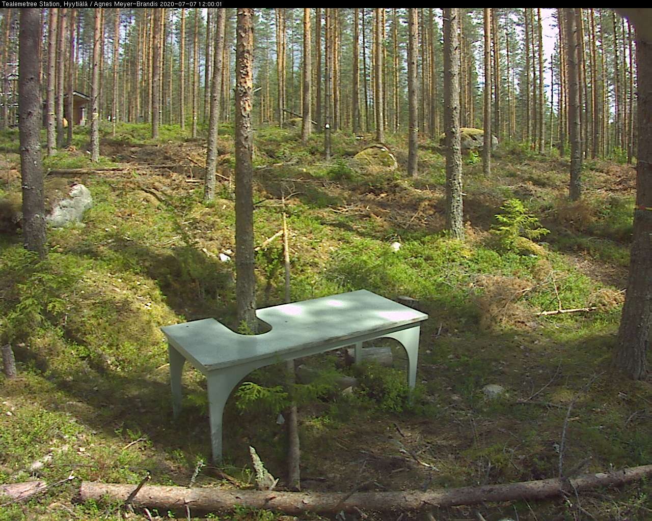 Agnes Meyer-Brandiksen työ Hyytiälässä alkoi tutustumalla aseman muihin tutkijoihin. Pystyäkseen tapaamaan ihmisiä metsässä, hän rakensi pöydän, josta muodostui kohtauspiste ja paikka teehetkille Agneksen ja puun kanssa.
