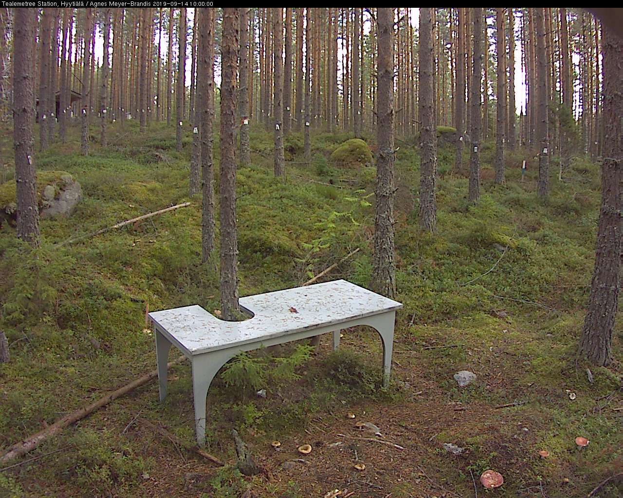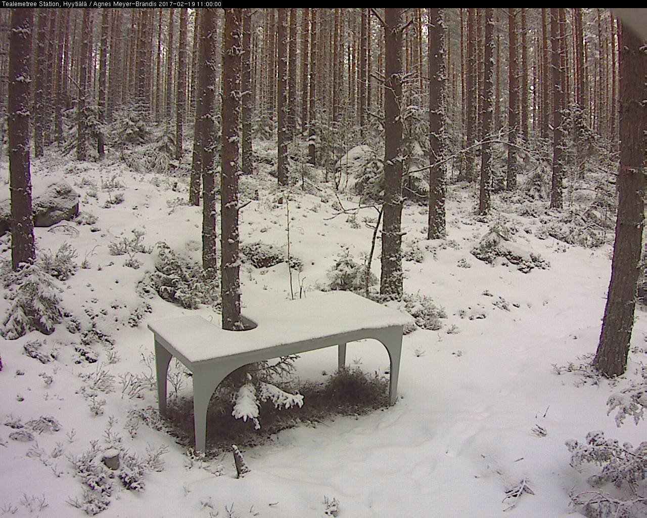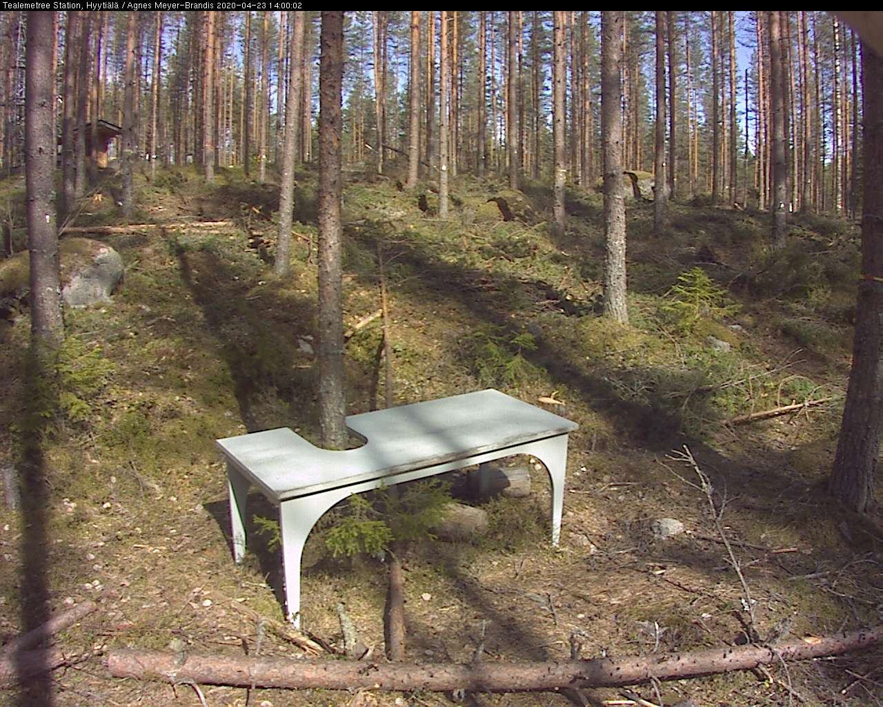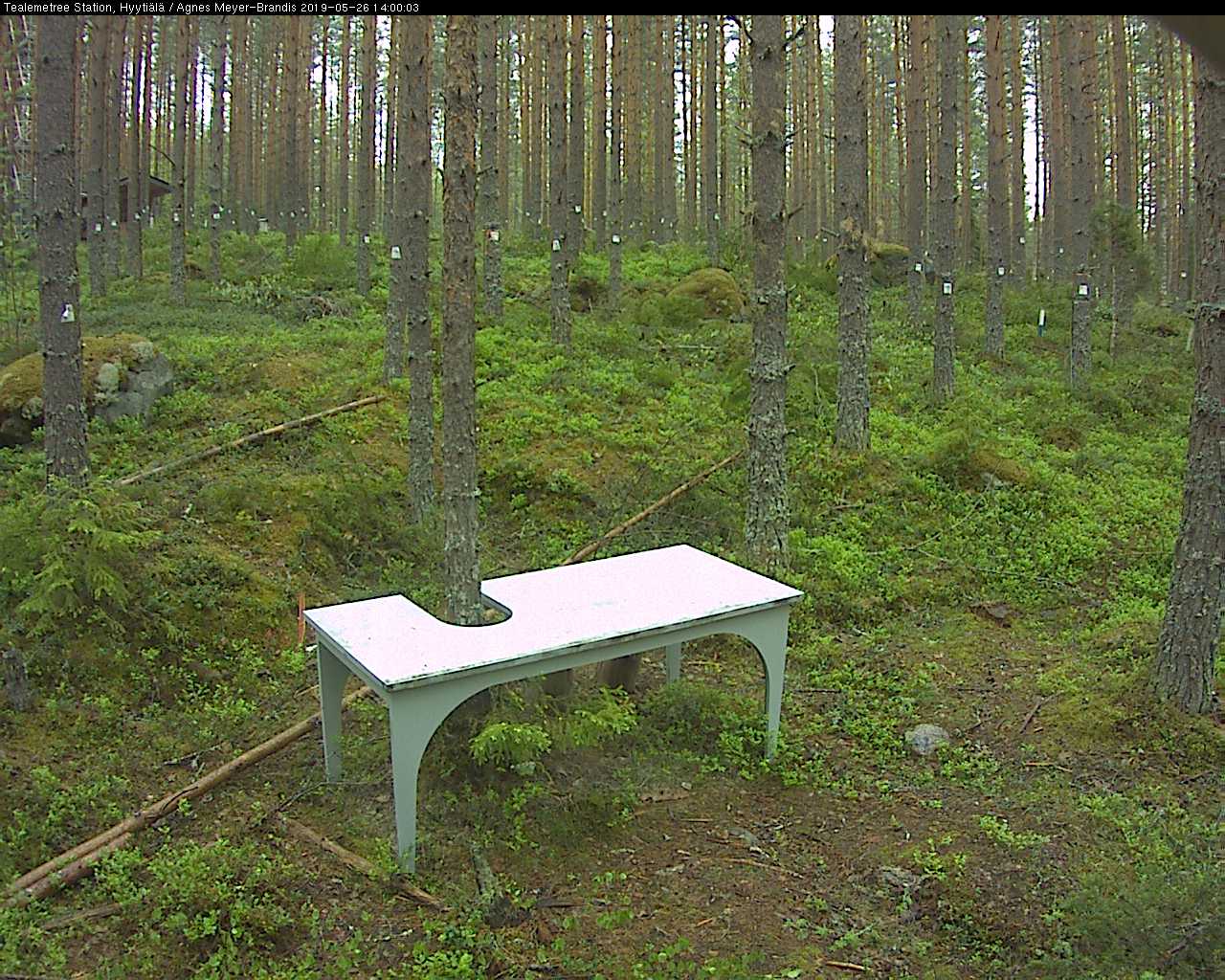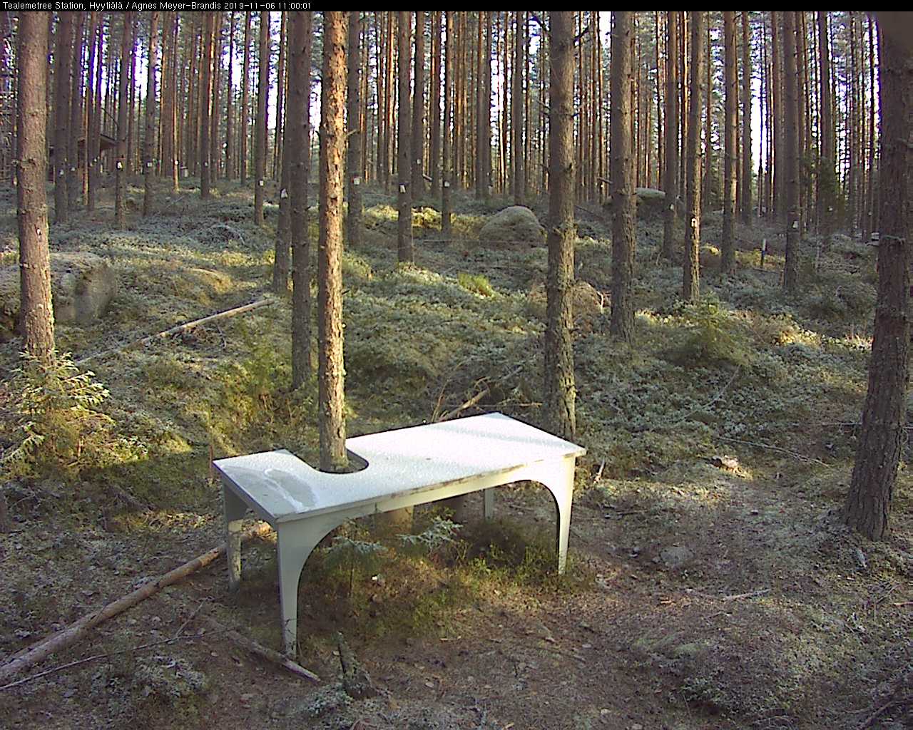 Agnes Meyer-Brandiksen työ Hyytiälässä alkoi tutustumalla aseman muihin tutkijoihin. Pystyäkseen tapaamaan ihmisiä metsässä, hän rakensi pöydän, josta muodostui kohtauspiste ja paikka teehetkille Agneksen ja puun kanssa.
