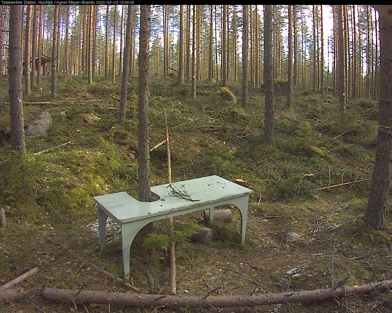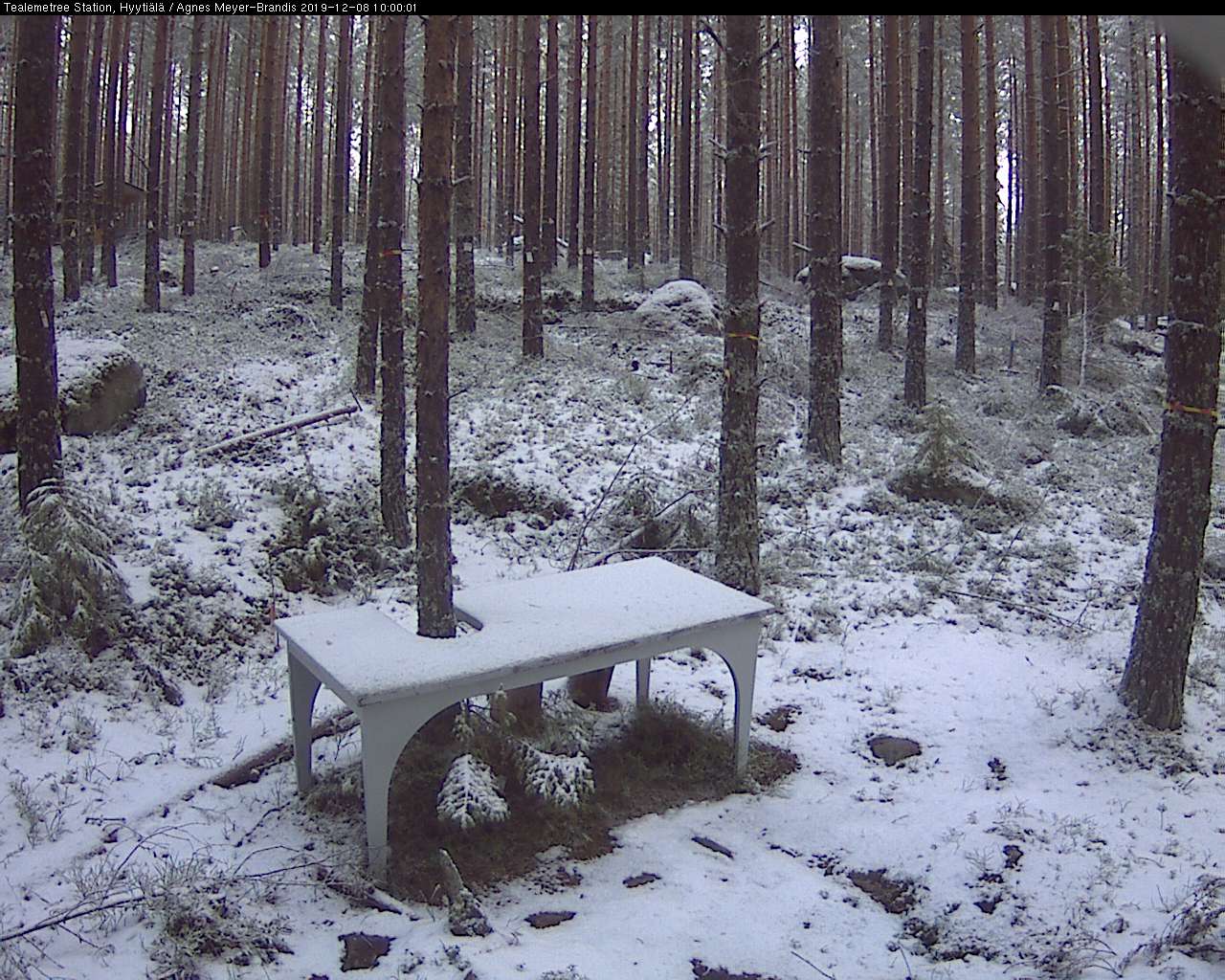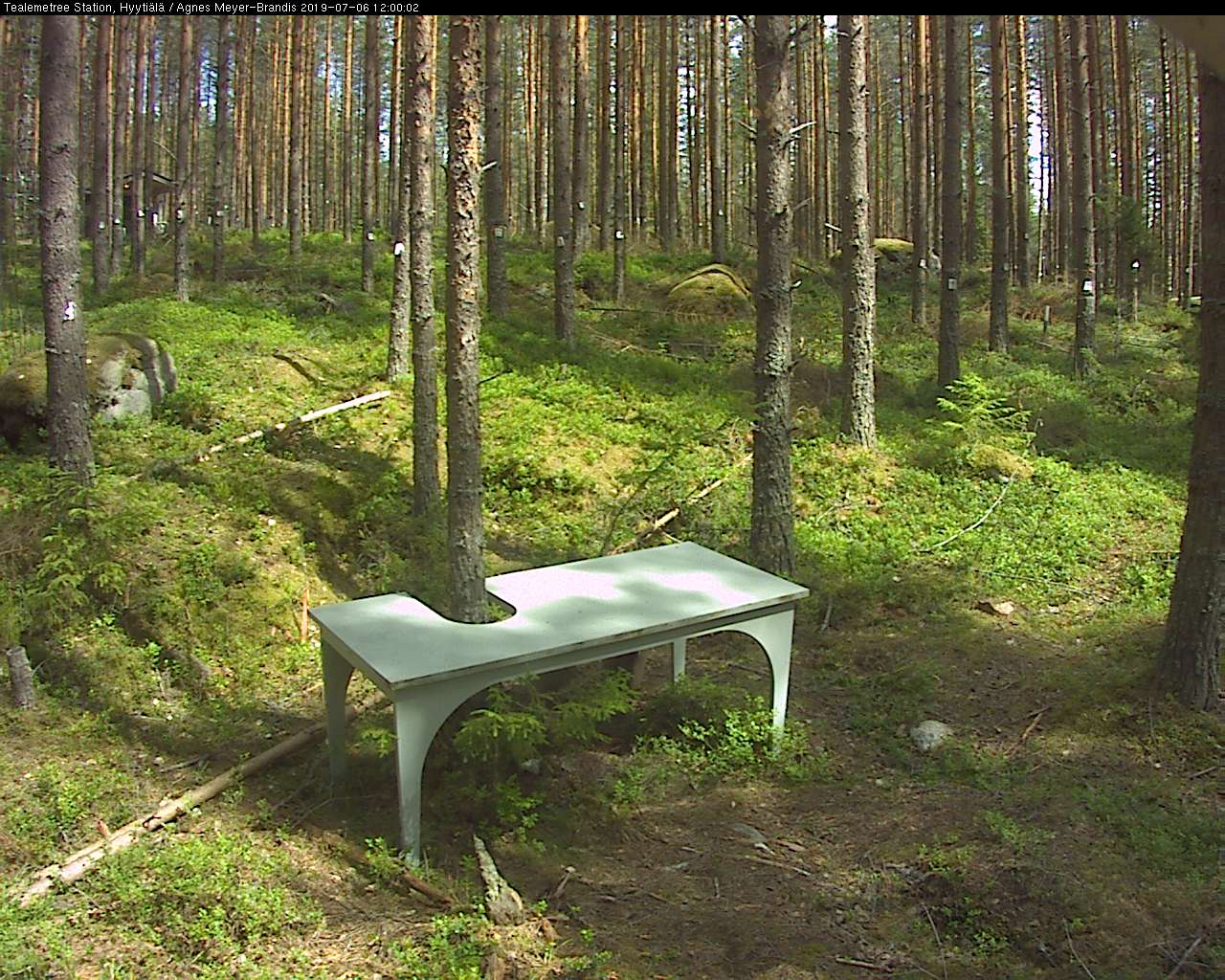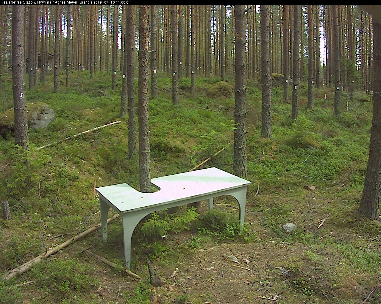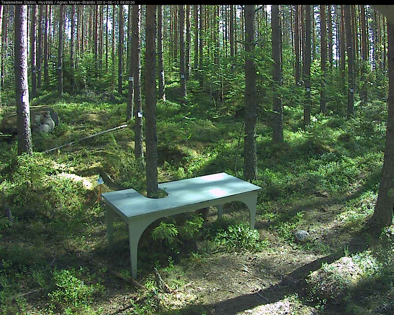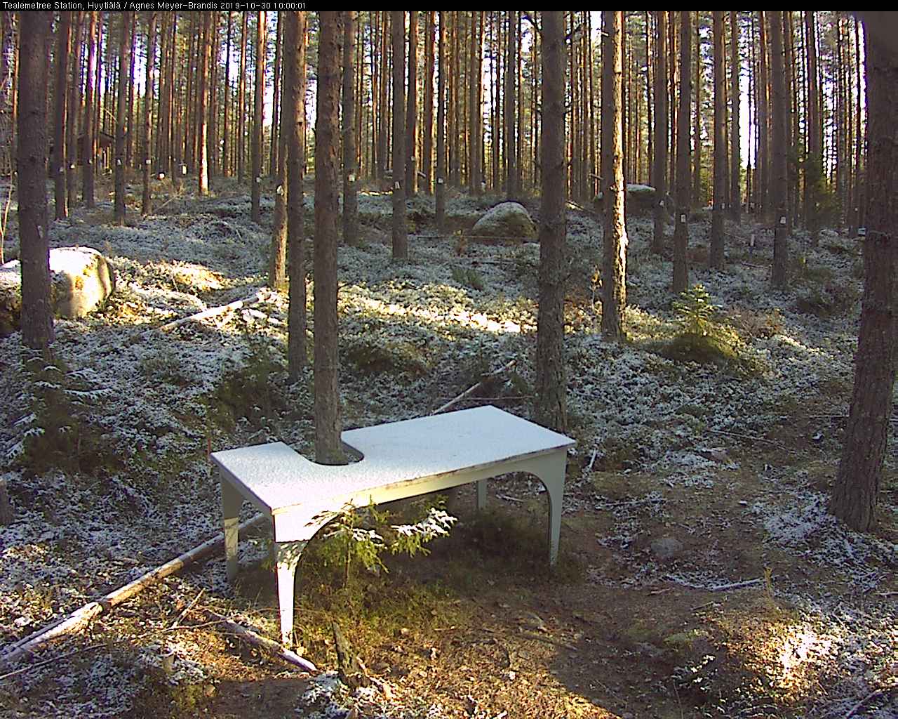 Agnes Meyer-Brandiksen työ Hyytiälässä alkoi tutustumalla aseman muihin tutkijoihin. Pystyäkseen tapaamaan ihmisiä metsässä, hän rakensi pöydän, josta muodostui kohtauspiste ja paikka teehetkille Agneksen ja puun kanssa.