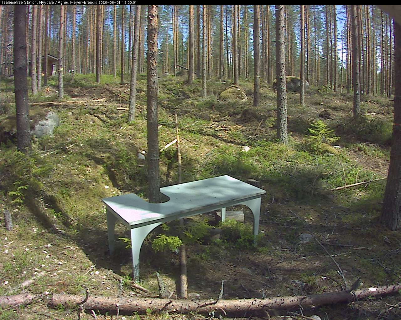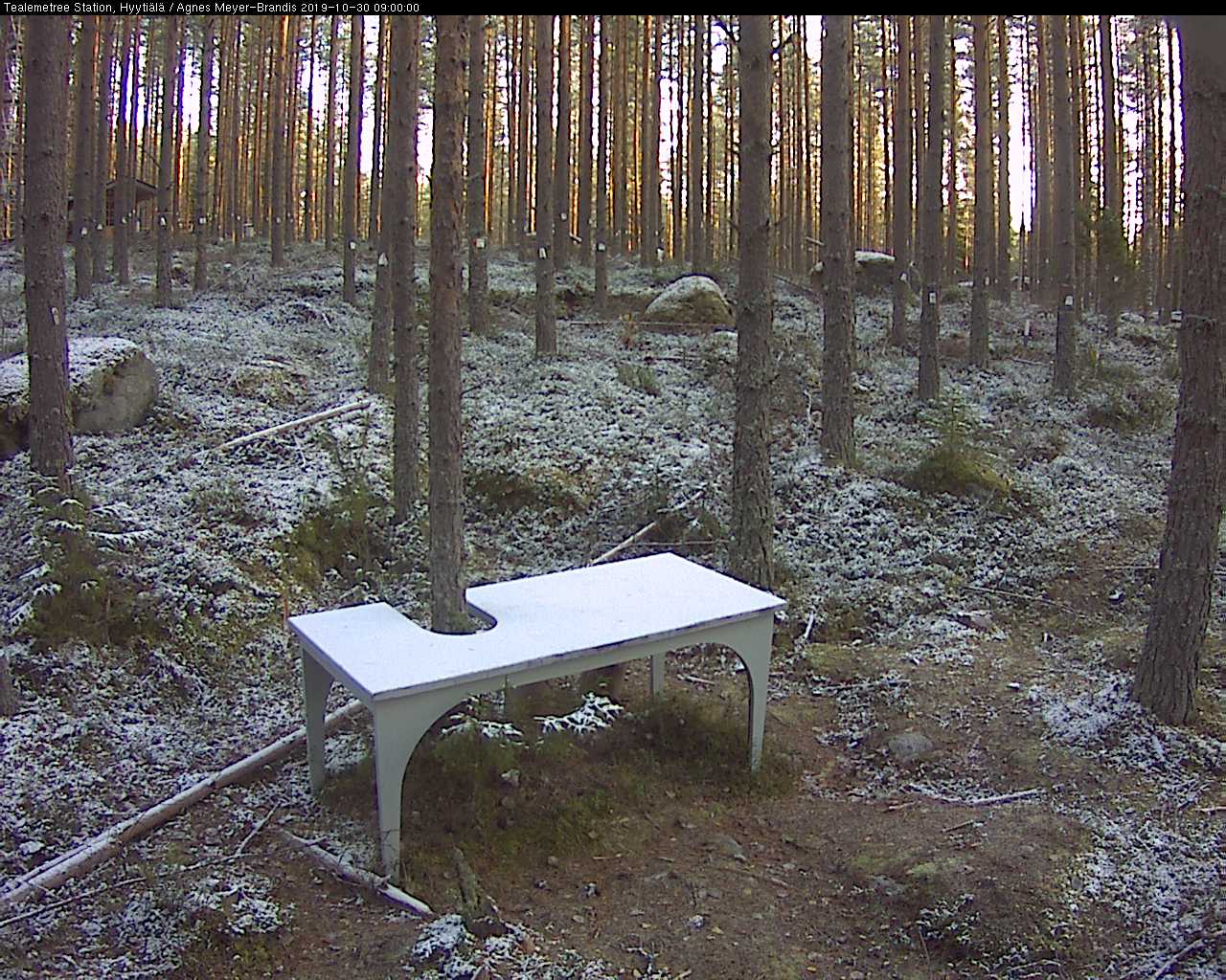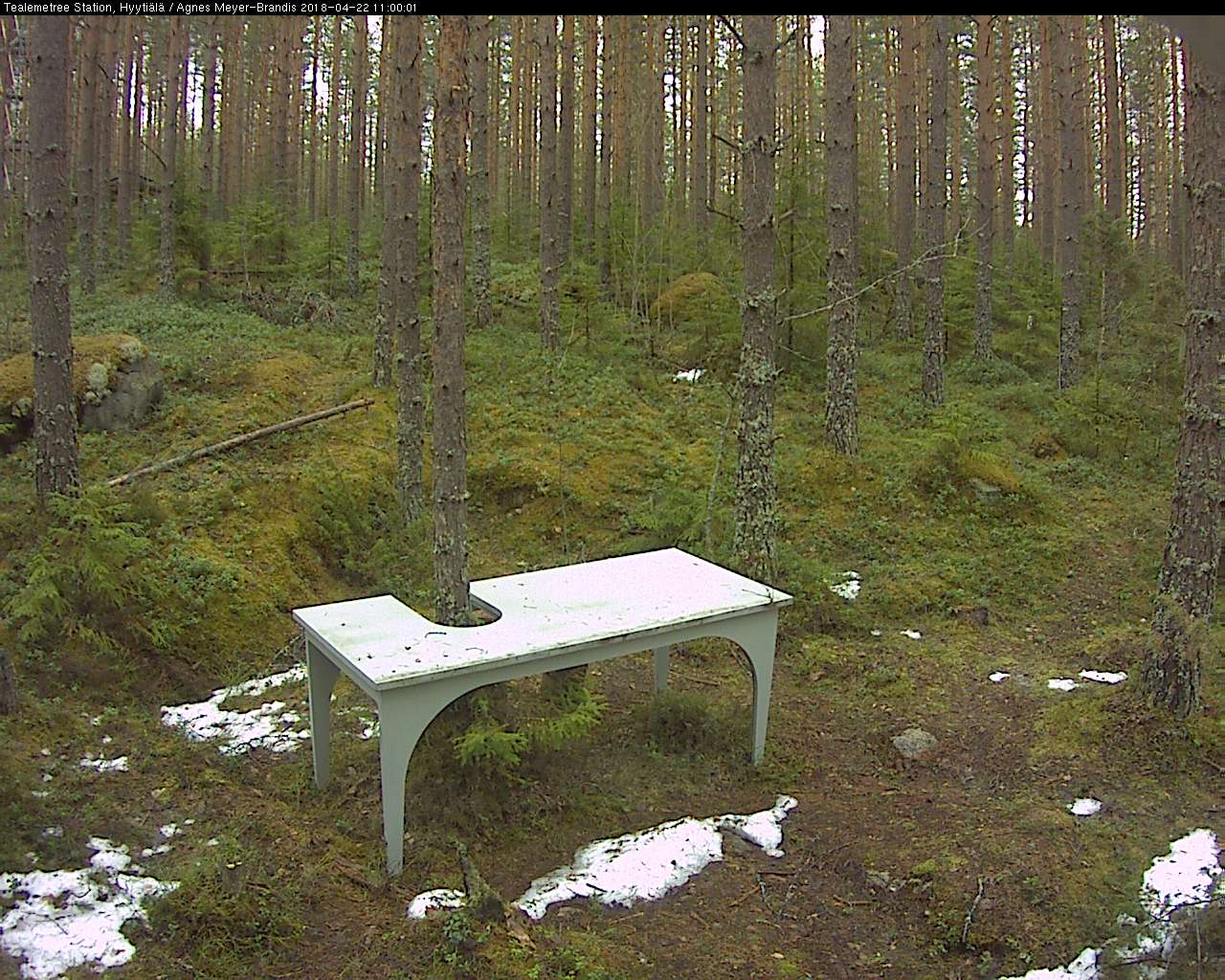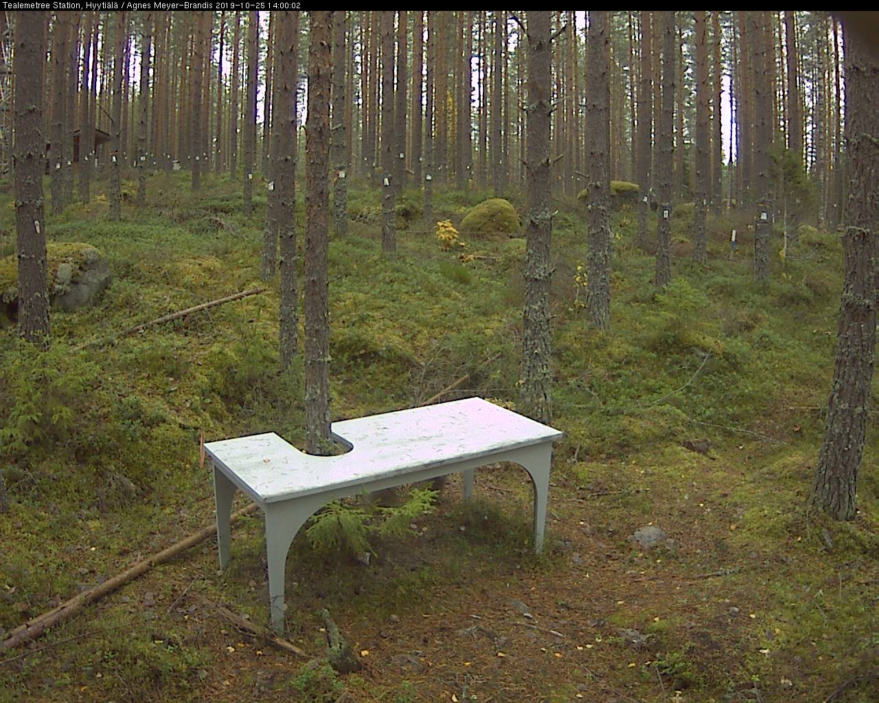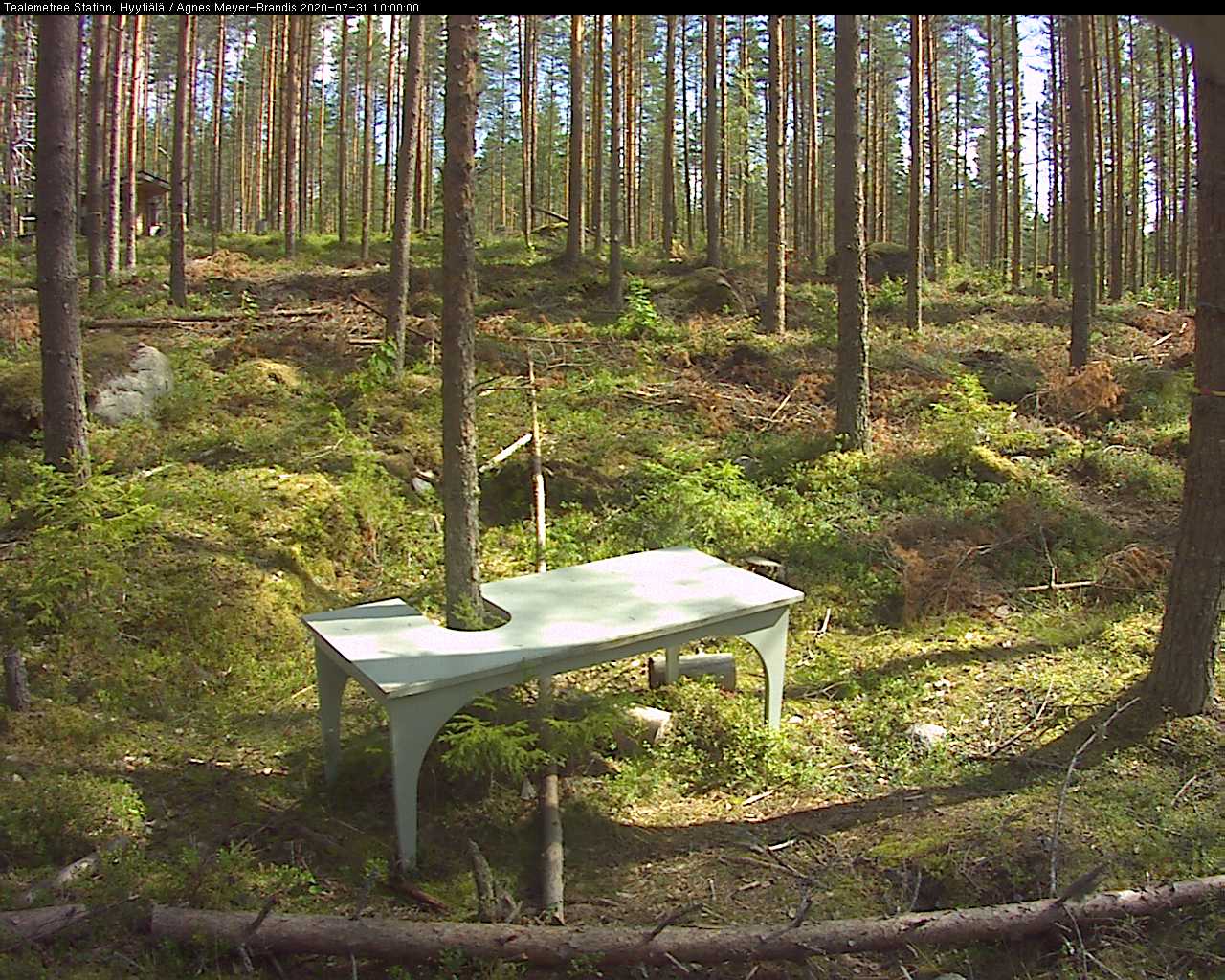 Agnes Meyer-Brandiksen työ Hyytiälässä alkoi tutustumalla aseman muihin tutkijoihin. Pystyäkseen tapaamaan ihmisiä metsässä, hän rakensi pöydän, josta muodostui kohtauspiste ja paikka teehetkille Agneksen ja puun kanssa.