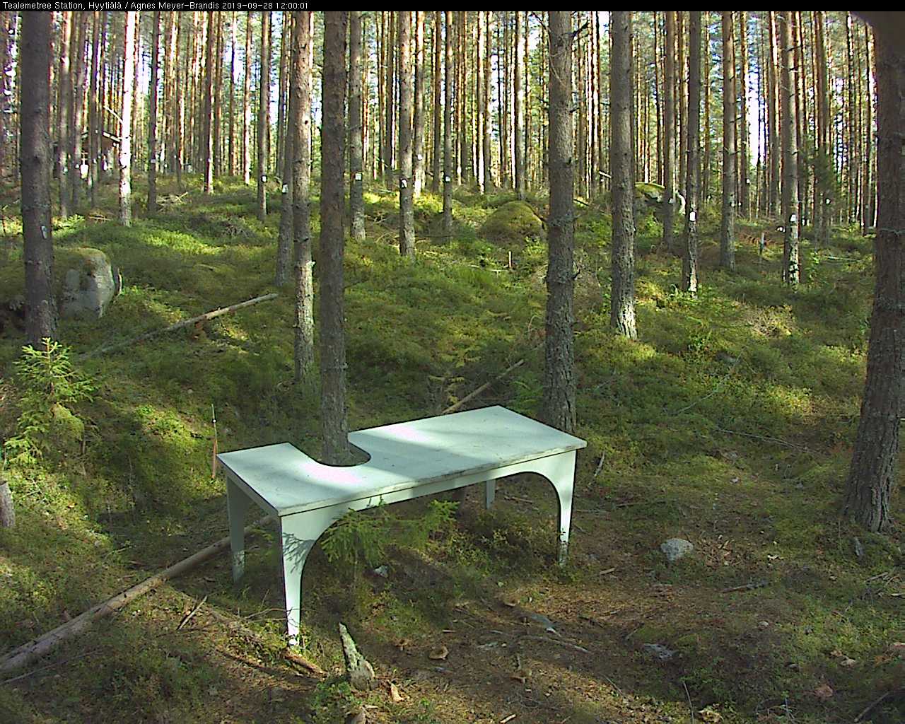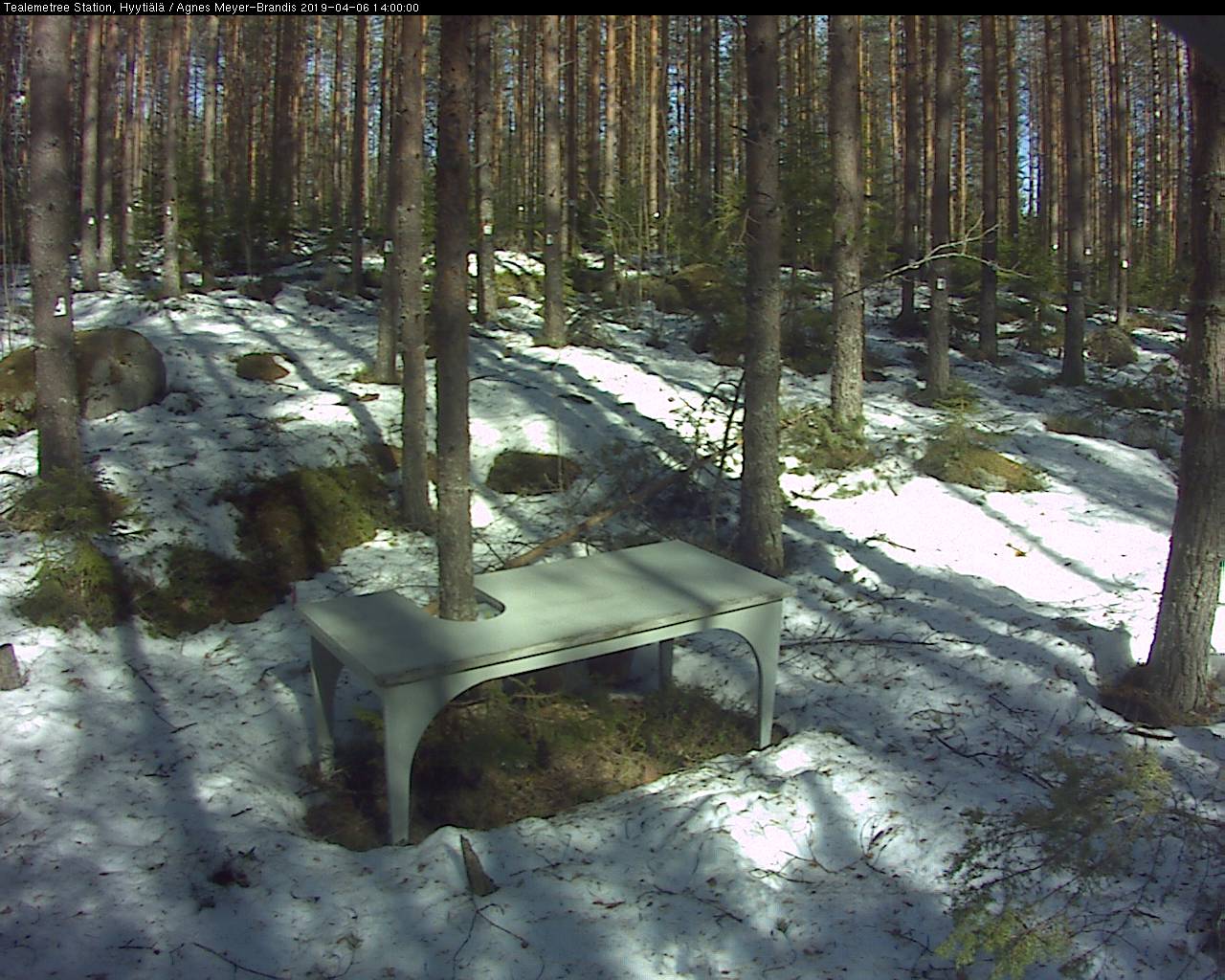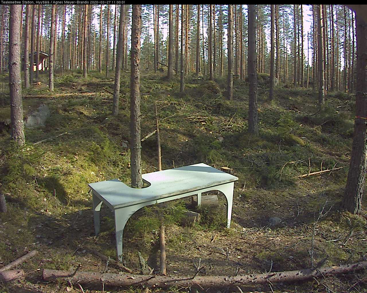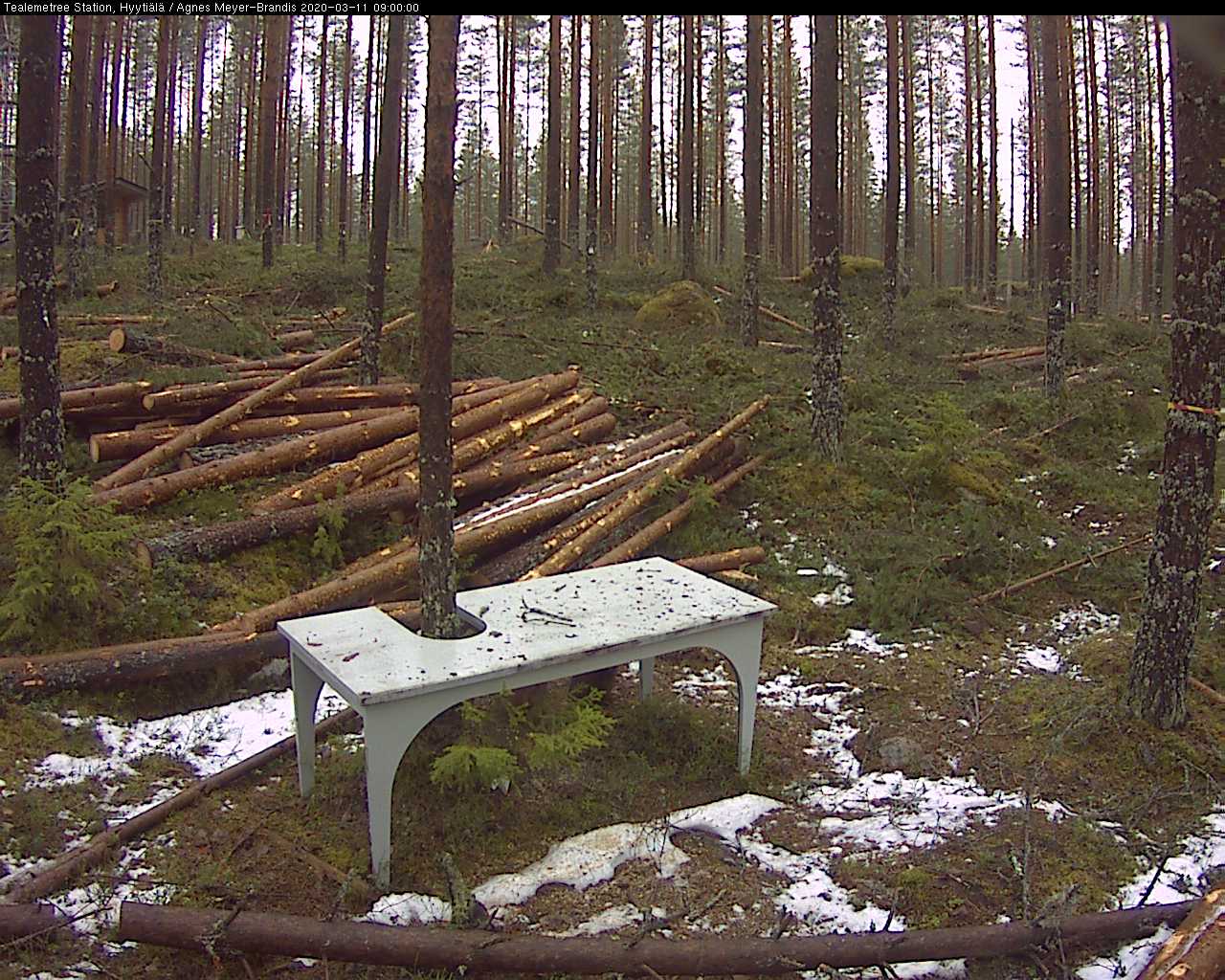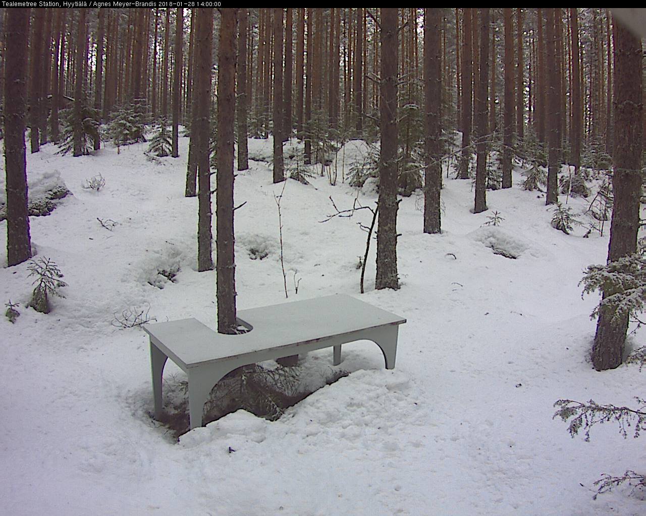 Agnes Meyer-Brandiksen työ Hyytiälässä alkoi tutustumalla aseman muihin tutkijoihin. Pystyäkseen tapaamaan ihmisiä metsässä, hän rakensi pöydän, josta muodostui kohtauspiste ja paikka teehetkille Agneksen ja puun kanssa.