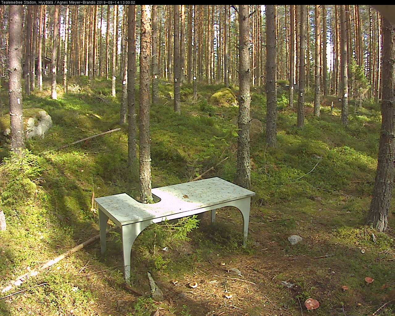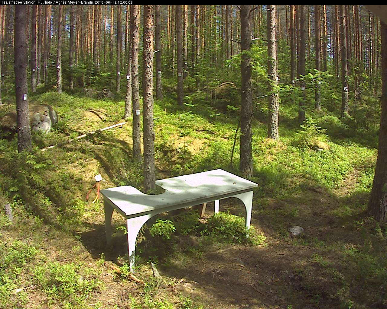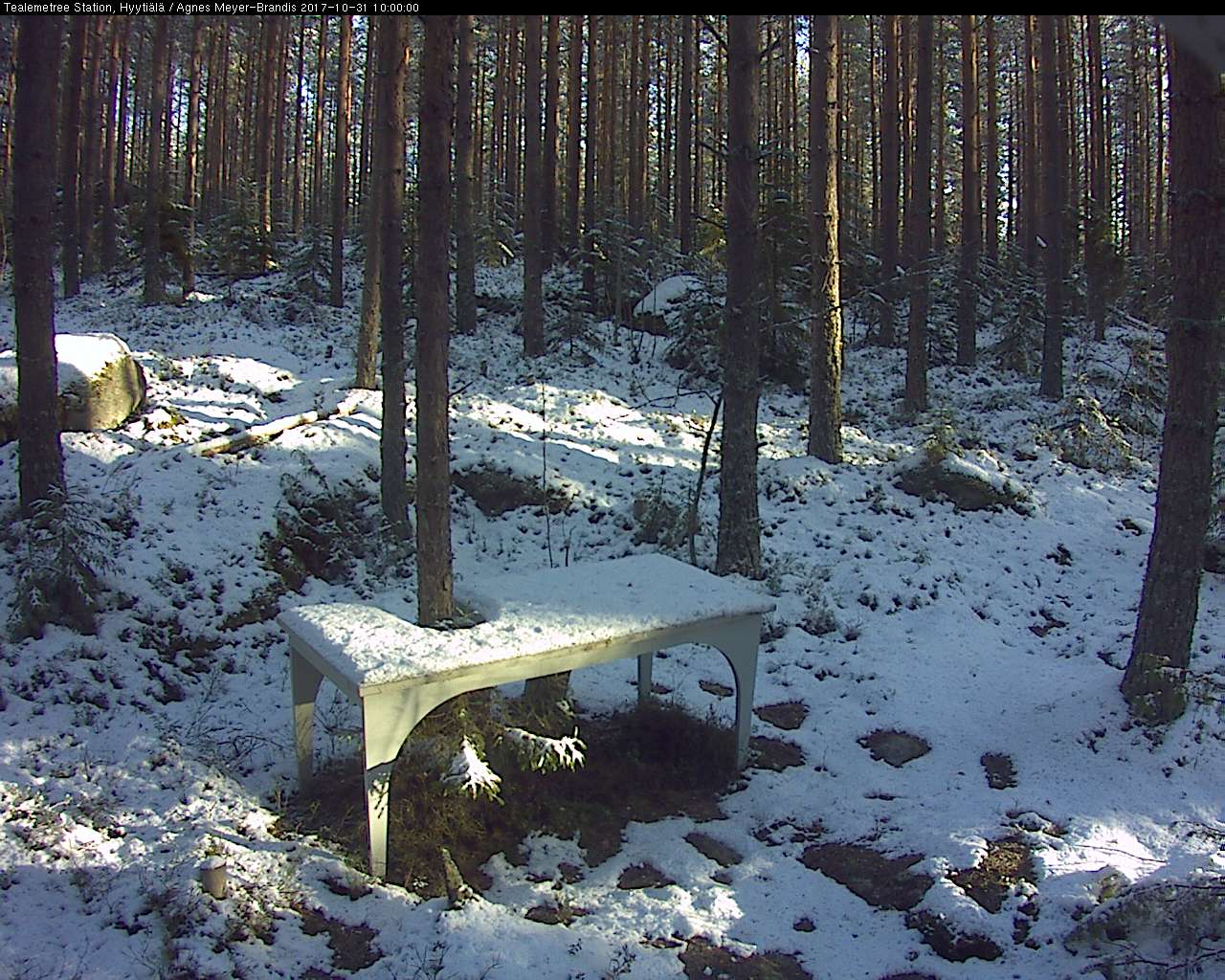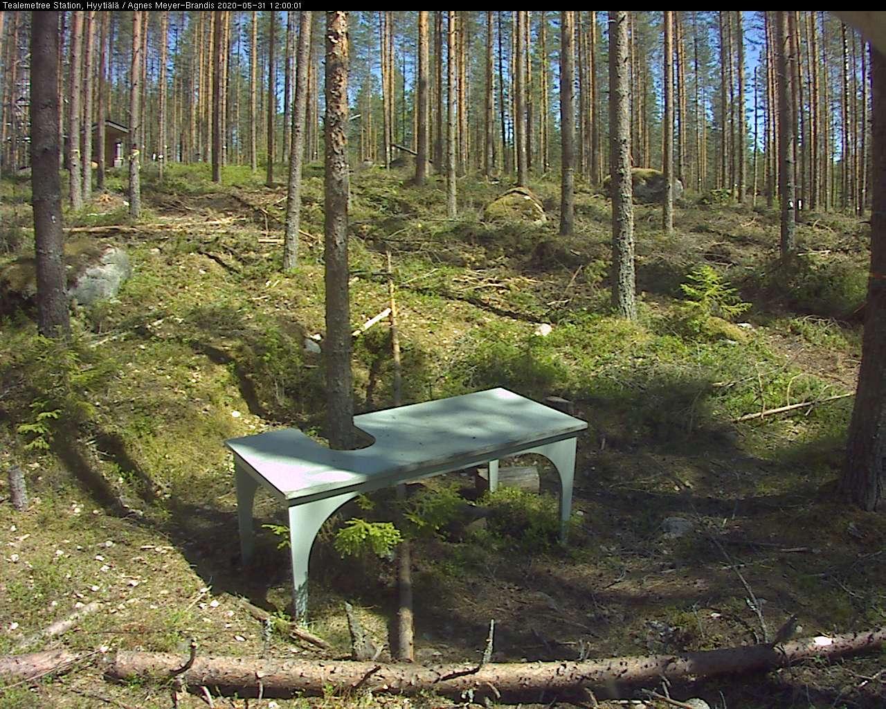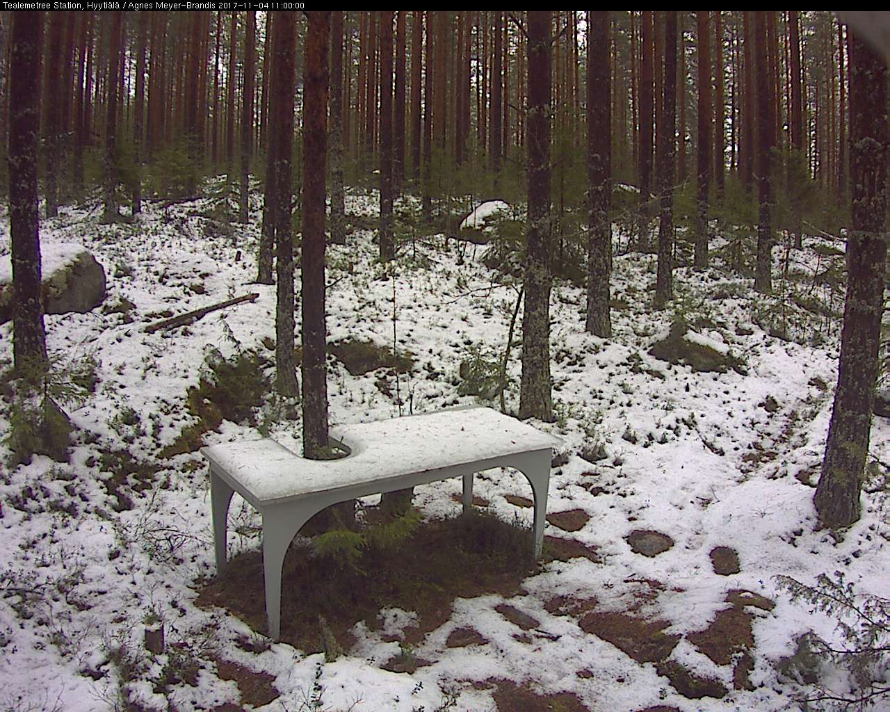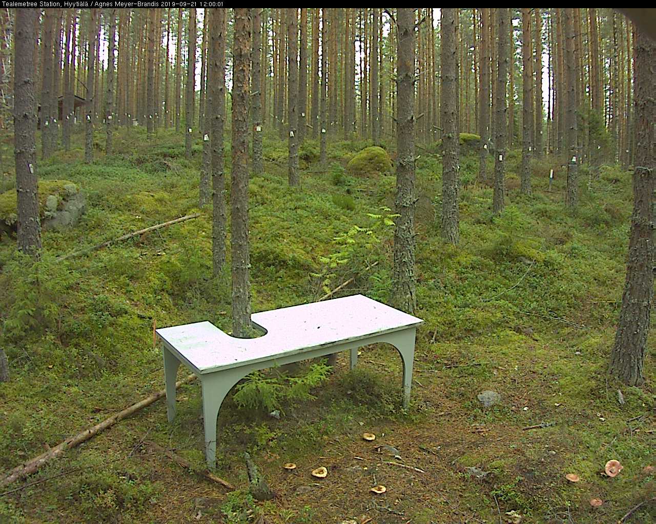 Agnes Meyer-Brandiksen työ Hyytiälässä alkoi tutustumalla aseman muihin tutkijoihin. Pystyäkseen tapaamaan ihmisiä metsässä, hän rakensi pöydän, josta muodostui kohtauspiste ja paikka teehetkille Agneksen ja puun kanssa.