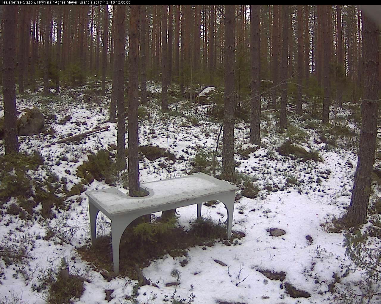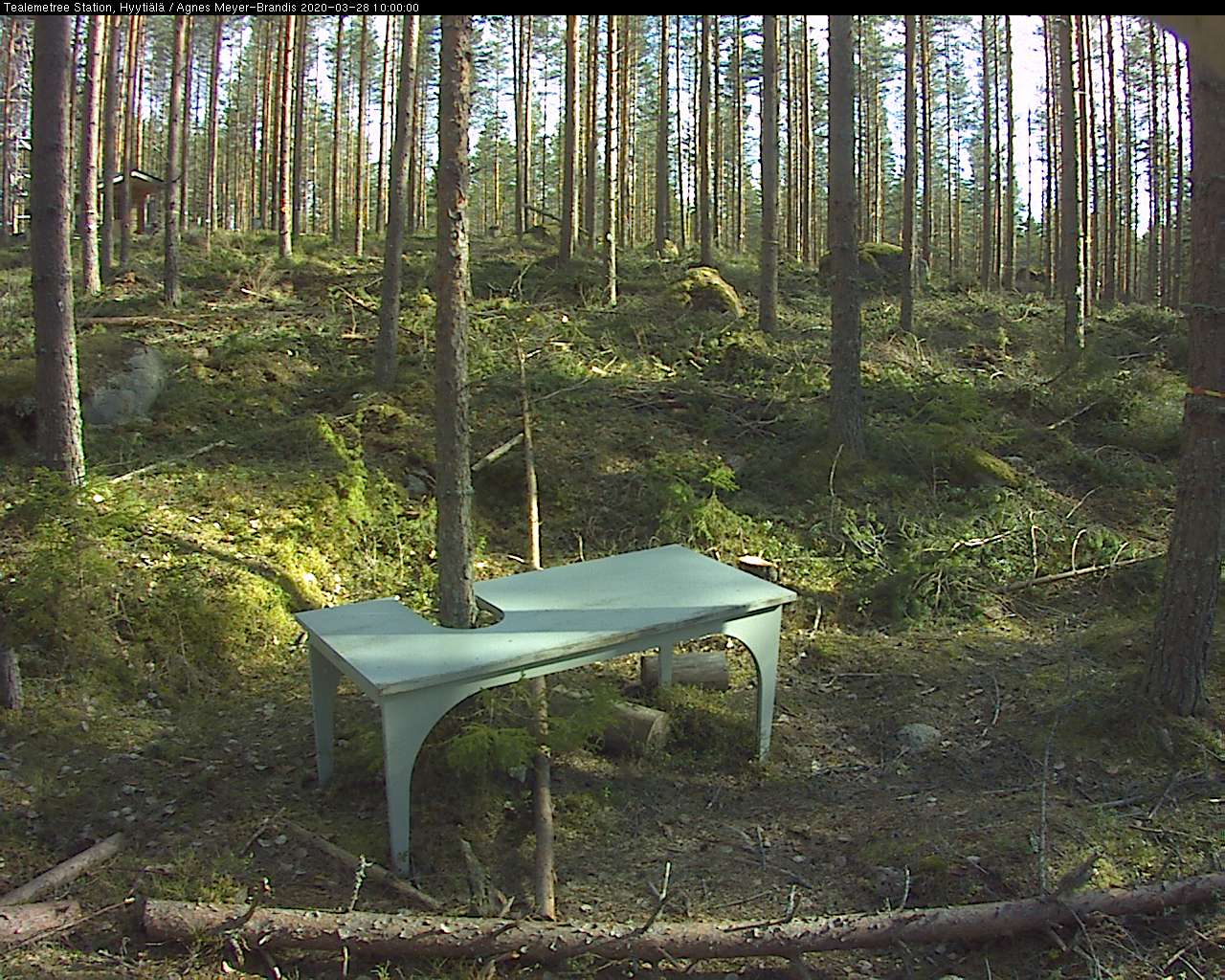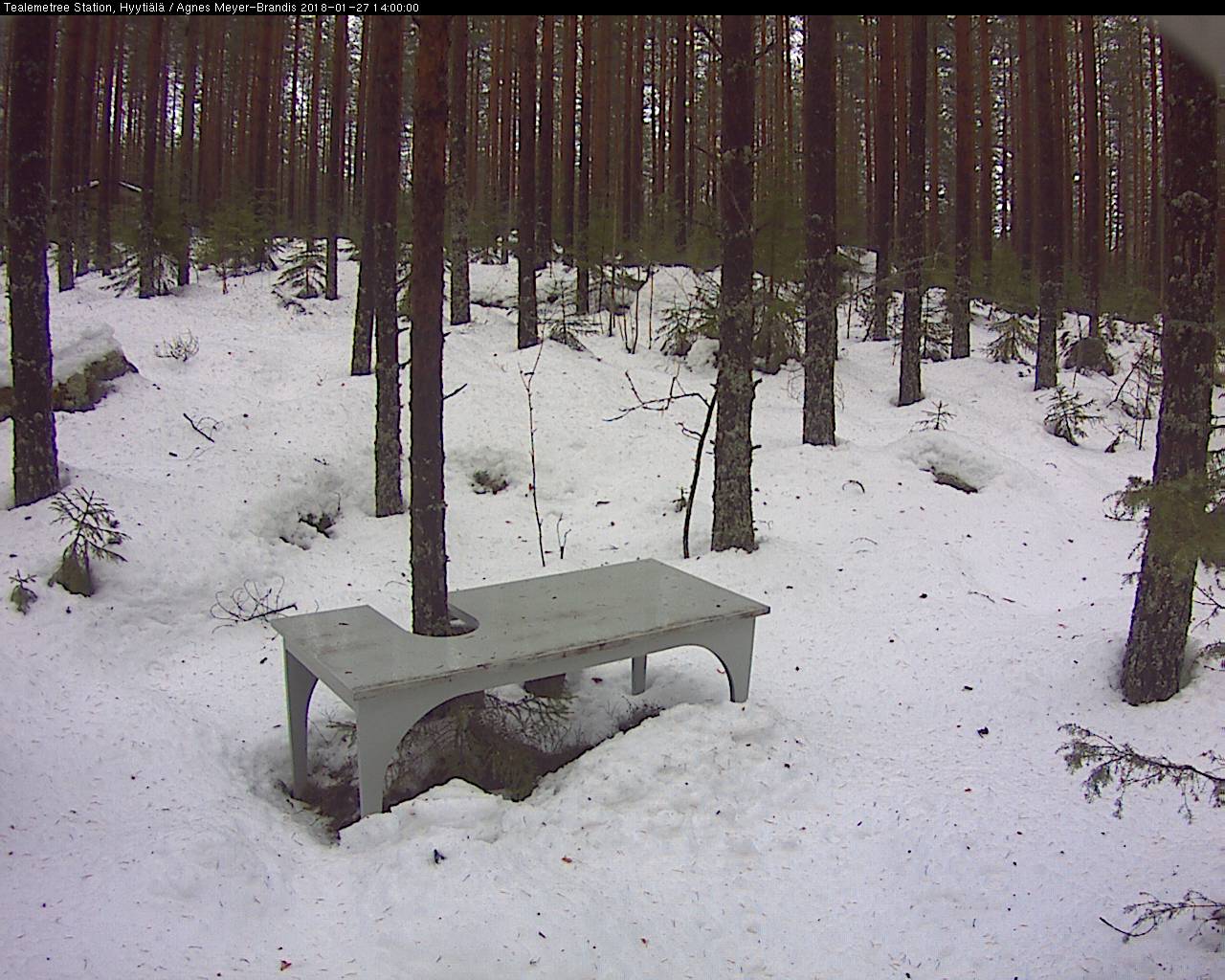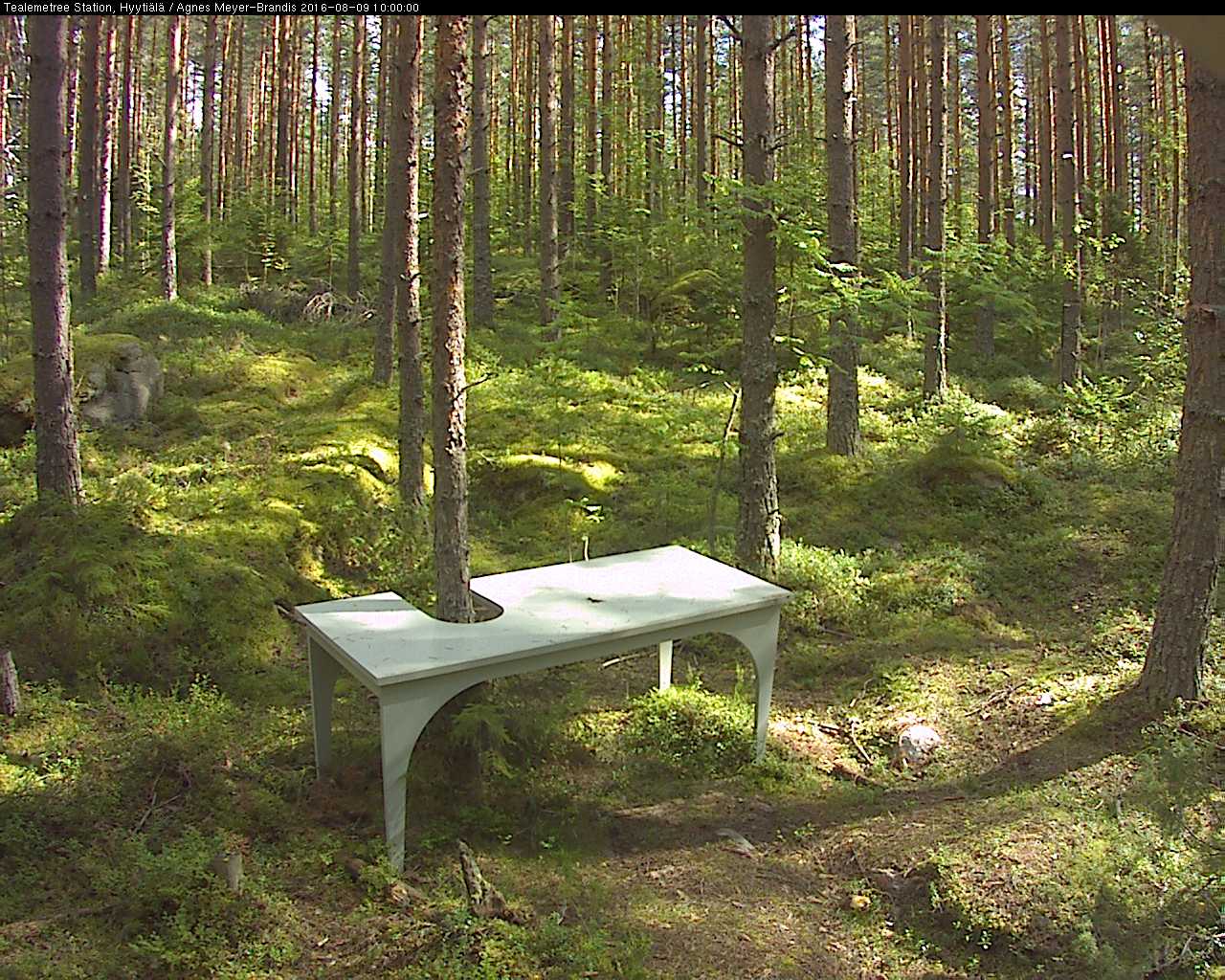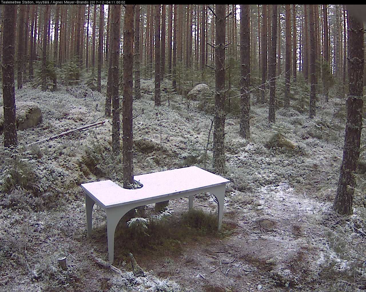 Agnes Meyer-Brandiksen työ Hyytiälässä alkoi tutustumalla aseman muihin tutkijoihin. Pystyäkseen tapaamaan ihmisiä metsässä, hän rakensi pöydän, josta muodostui kohtauspiste ja paikka teehetkille Agneksen ja puun kanssa.