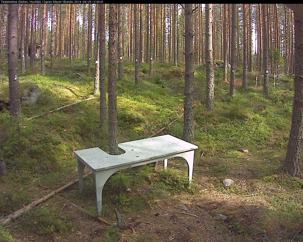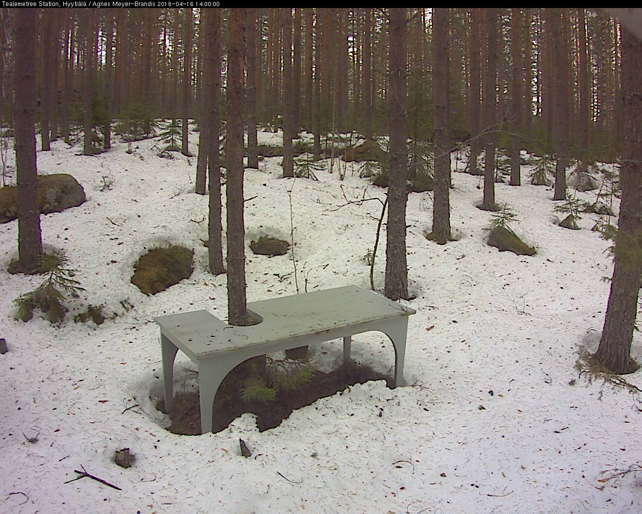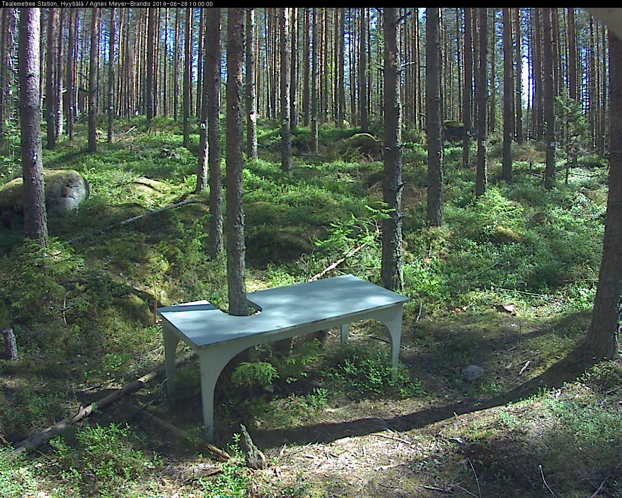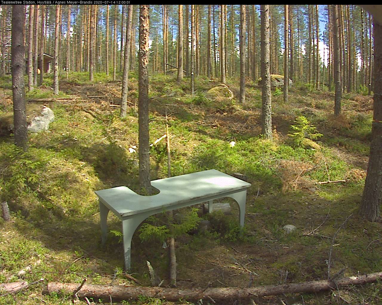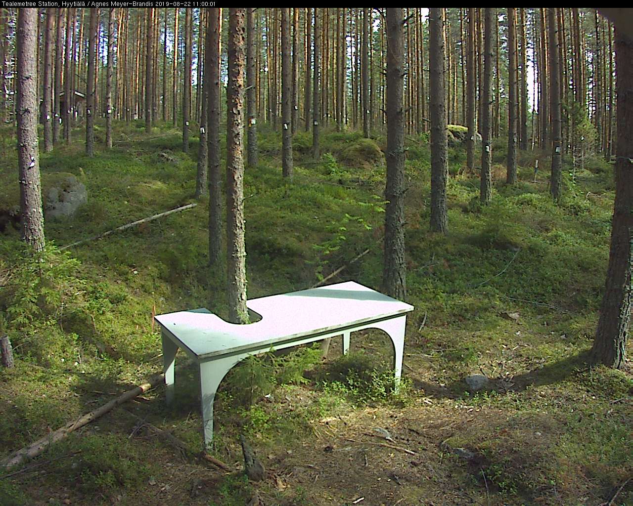 Agnes Meyer-Brandiksen työ Hyytiälässä alkoi tutustumalla aseman muihin tutkijoihin. Pystyäkseen tapaamaan ihmisiä metsässä, hän rakensi pöydän, josta muodostui kohtauspiste ja paikka teehetkille Agneksen ja puun kanssa.
