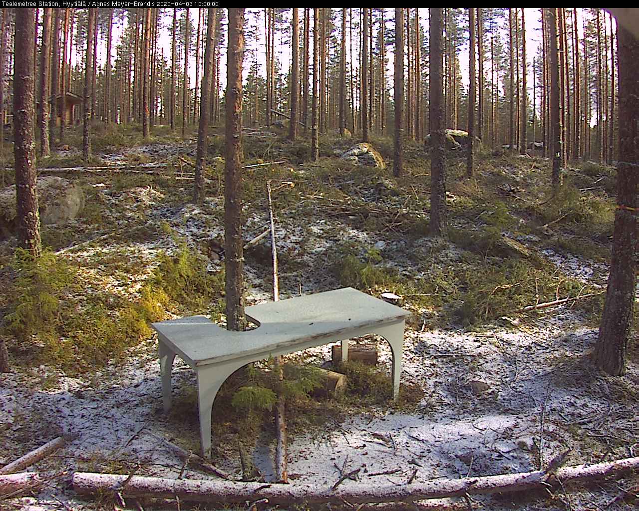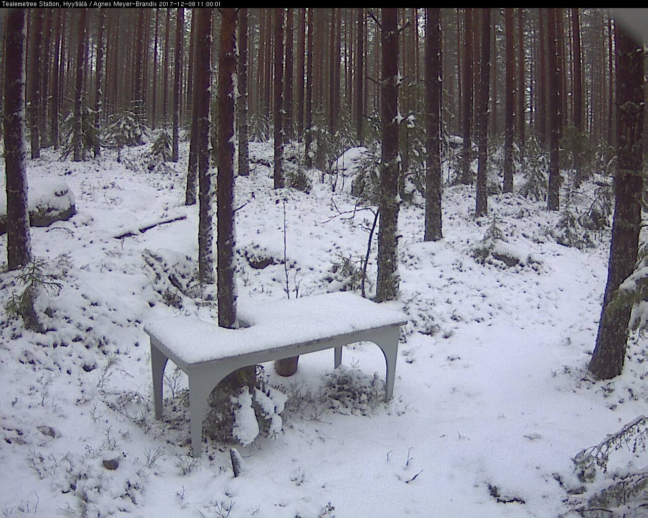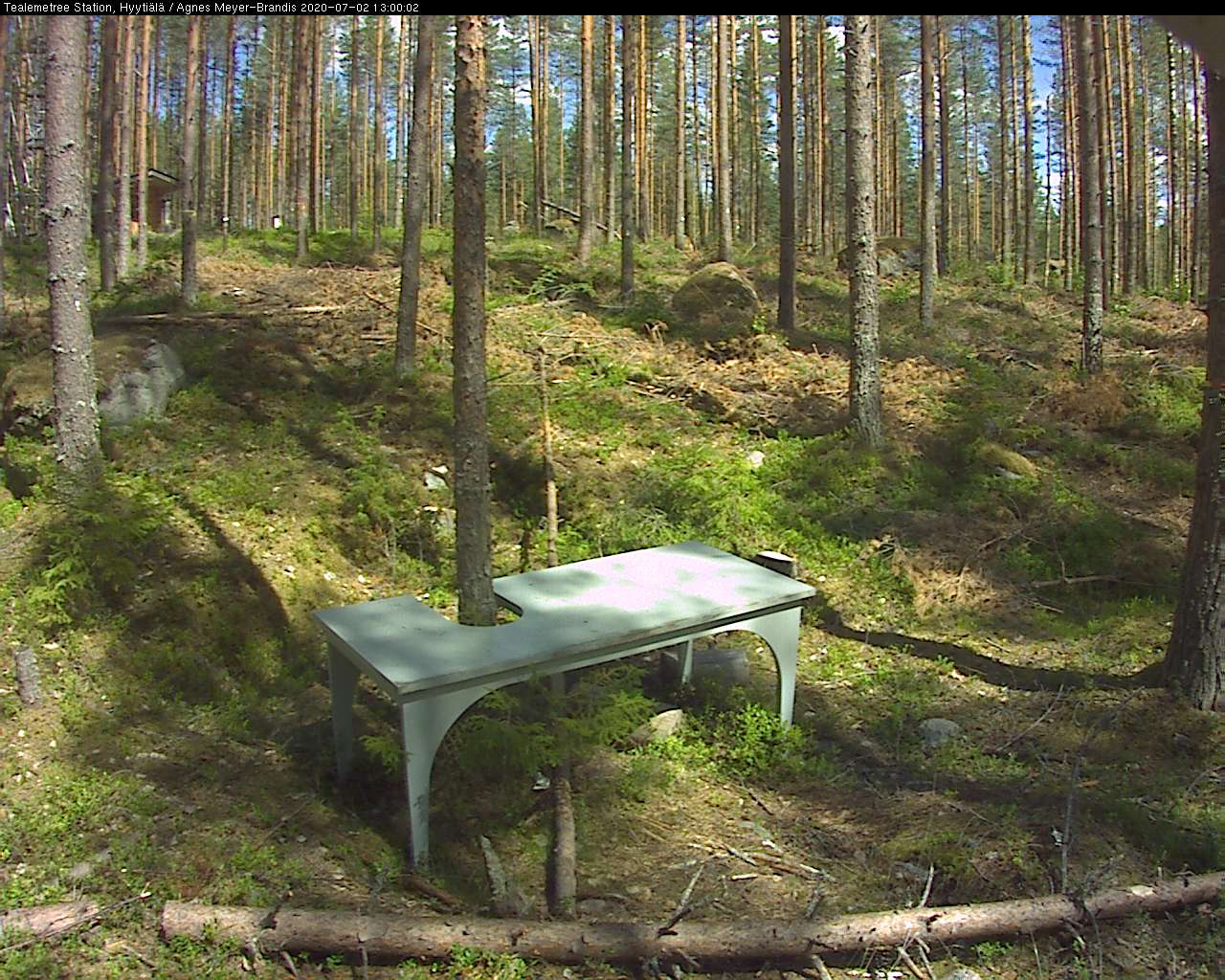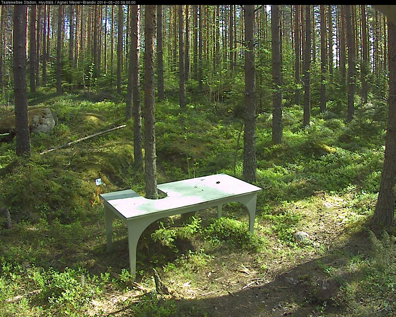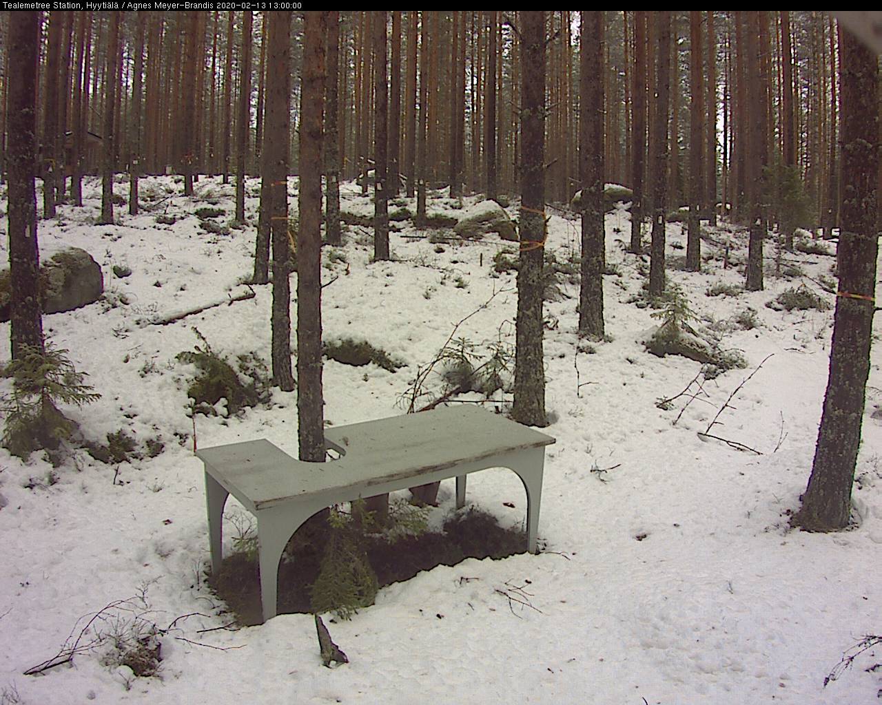 Agnes Meyer-Brandiksen työ Hyytiälässä alkoi tutustumalla aseman muihin tutkijoihin. Pystyäkseen tapaamaan ihmisiä metsässä, hän rakensi pöydän, josta muodostui kohtauspiste ja paikka teehetkille Agneksen ja puun kanssa.