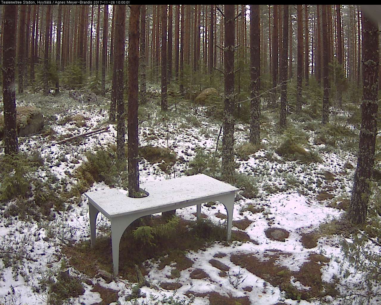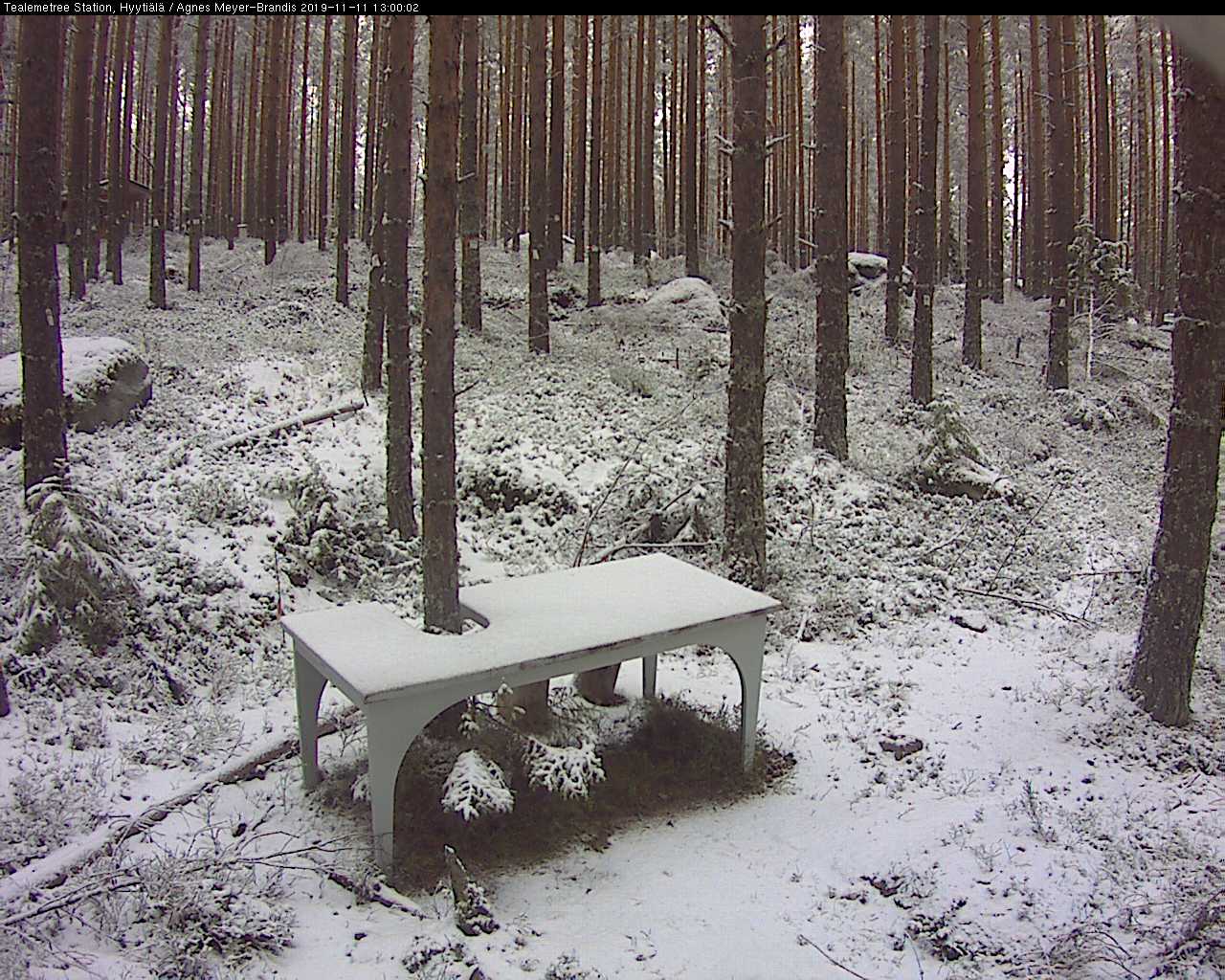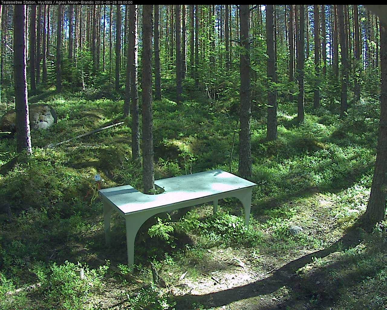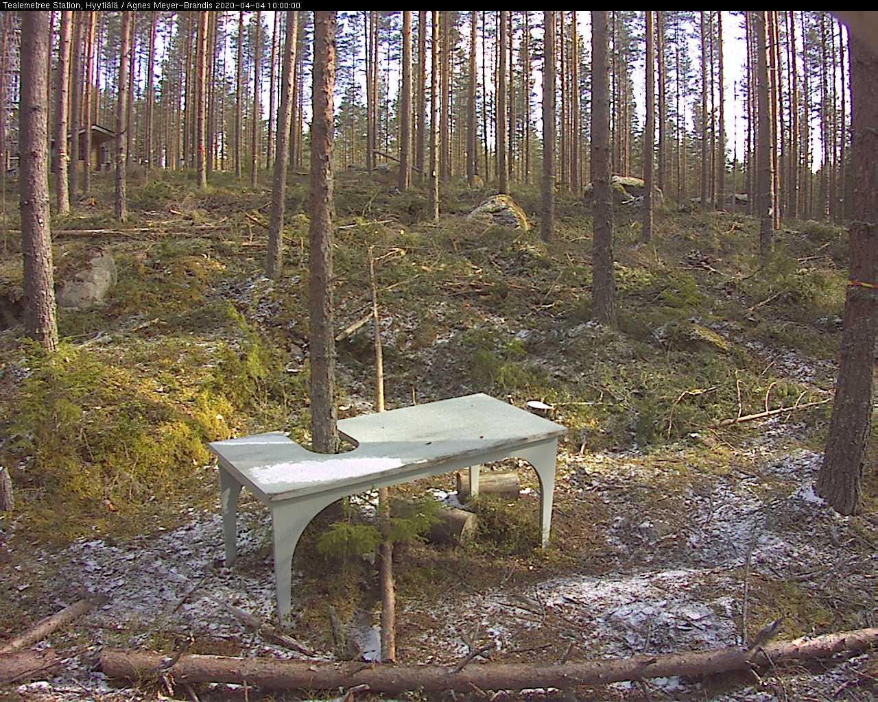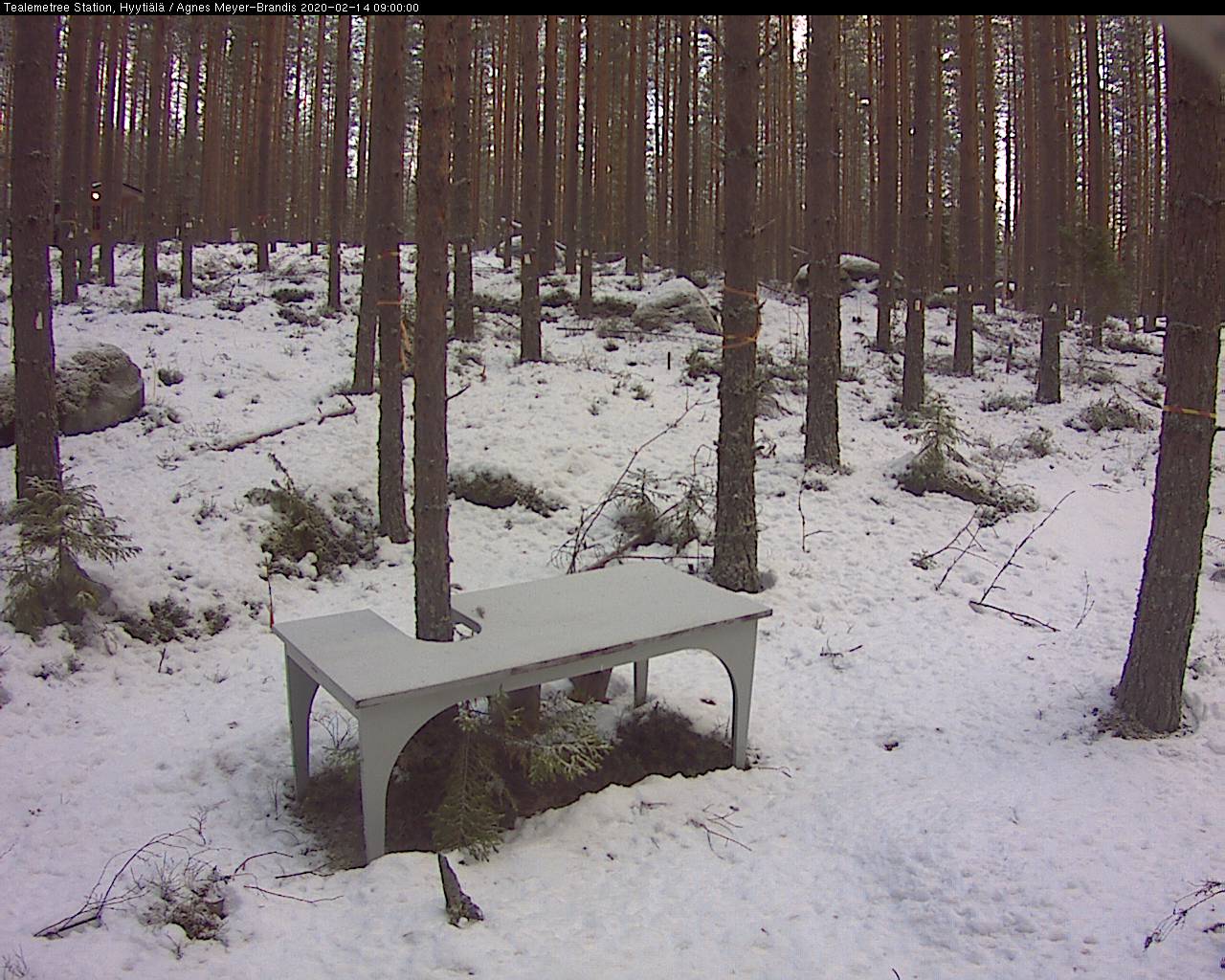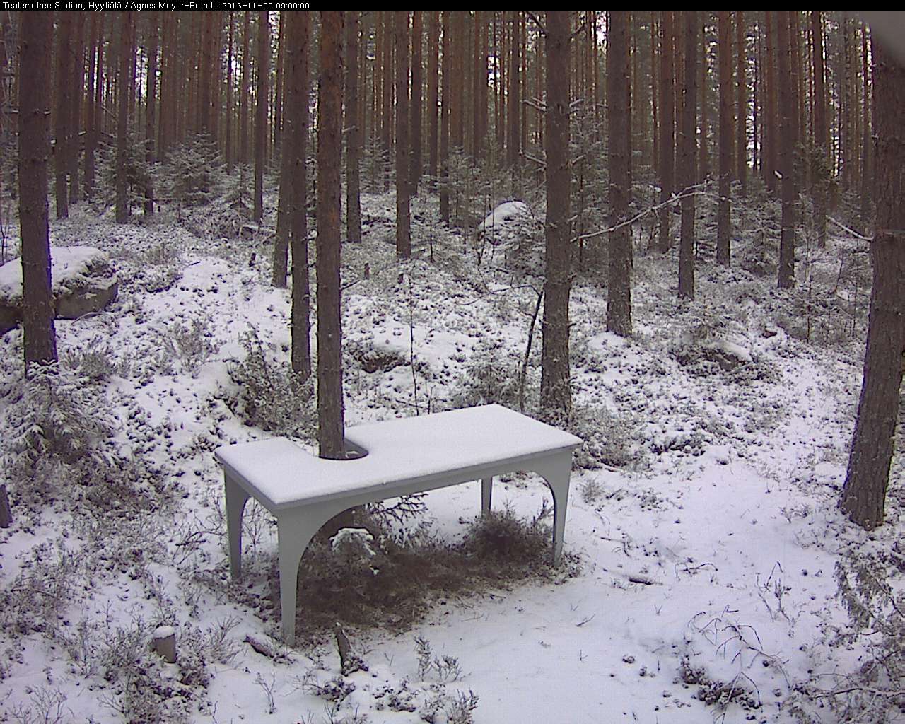 Agnes Meyer-Brandiksen työ Hyytiälässä alkoi tutustumalla aseman muihin tutkijoihin. Pystyäkseen tapaamaan ihmisiä metsässä, hän rakensi pöydän, josta muodostui kohtauspiste ja paikka teehetkille Agneksen ja puun kanssa.
