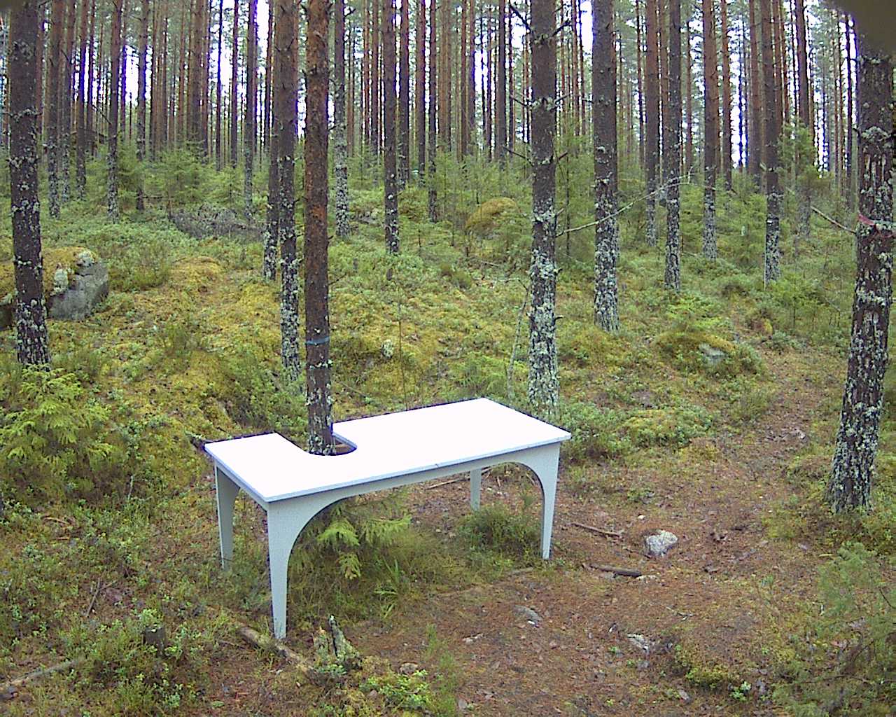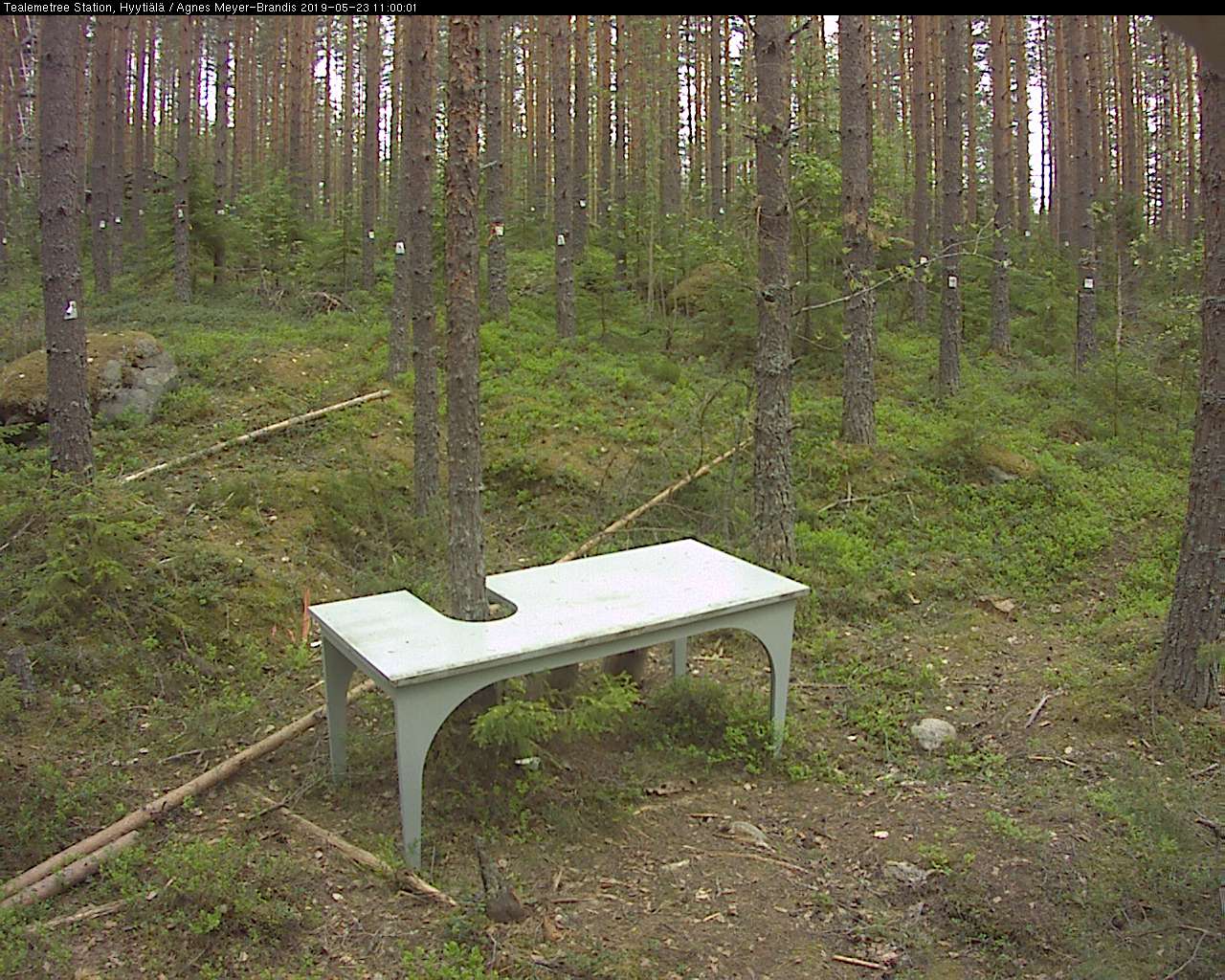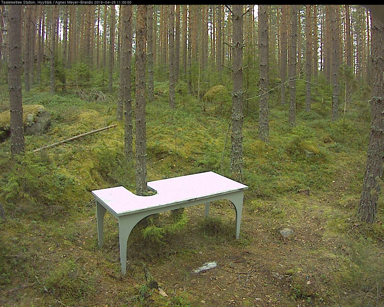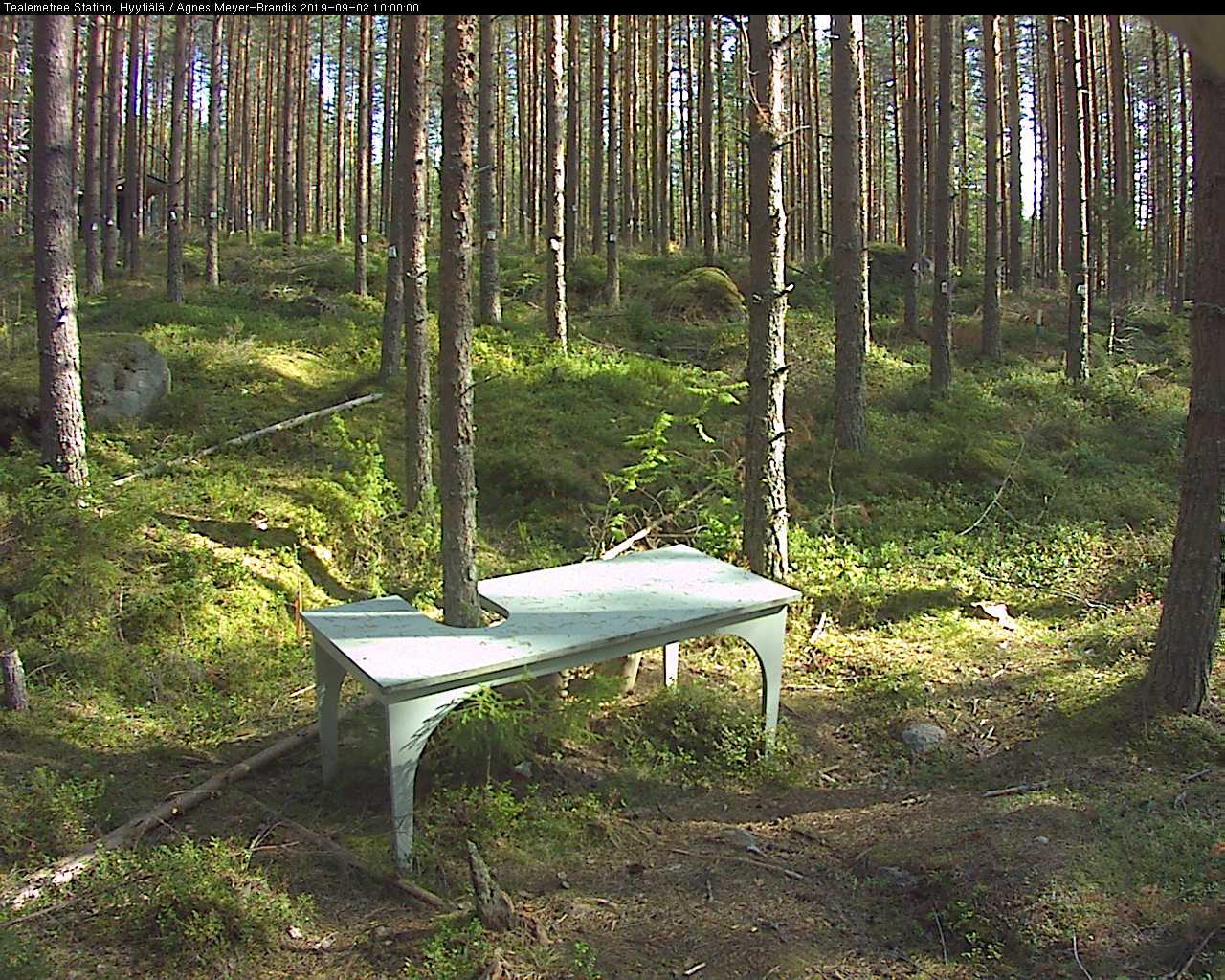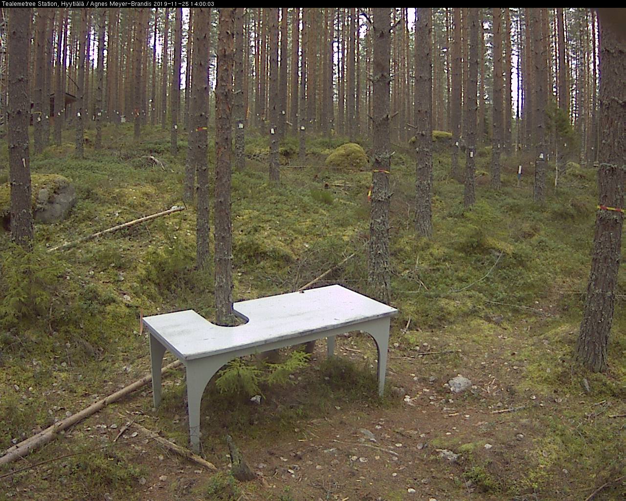 Agnes Meyer-Brandiksen työ Hyytiälässä alkoi tutustumalla aseman muihin tutkijoihin. Pystyäkseen tapaamaan ihmisiä metsässä, hän rakensi pöydän, josta muodostui kohtauspiste ja paikka teehetkille Agneksen ja puun kanssa.