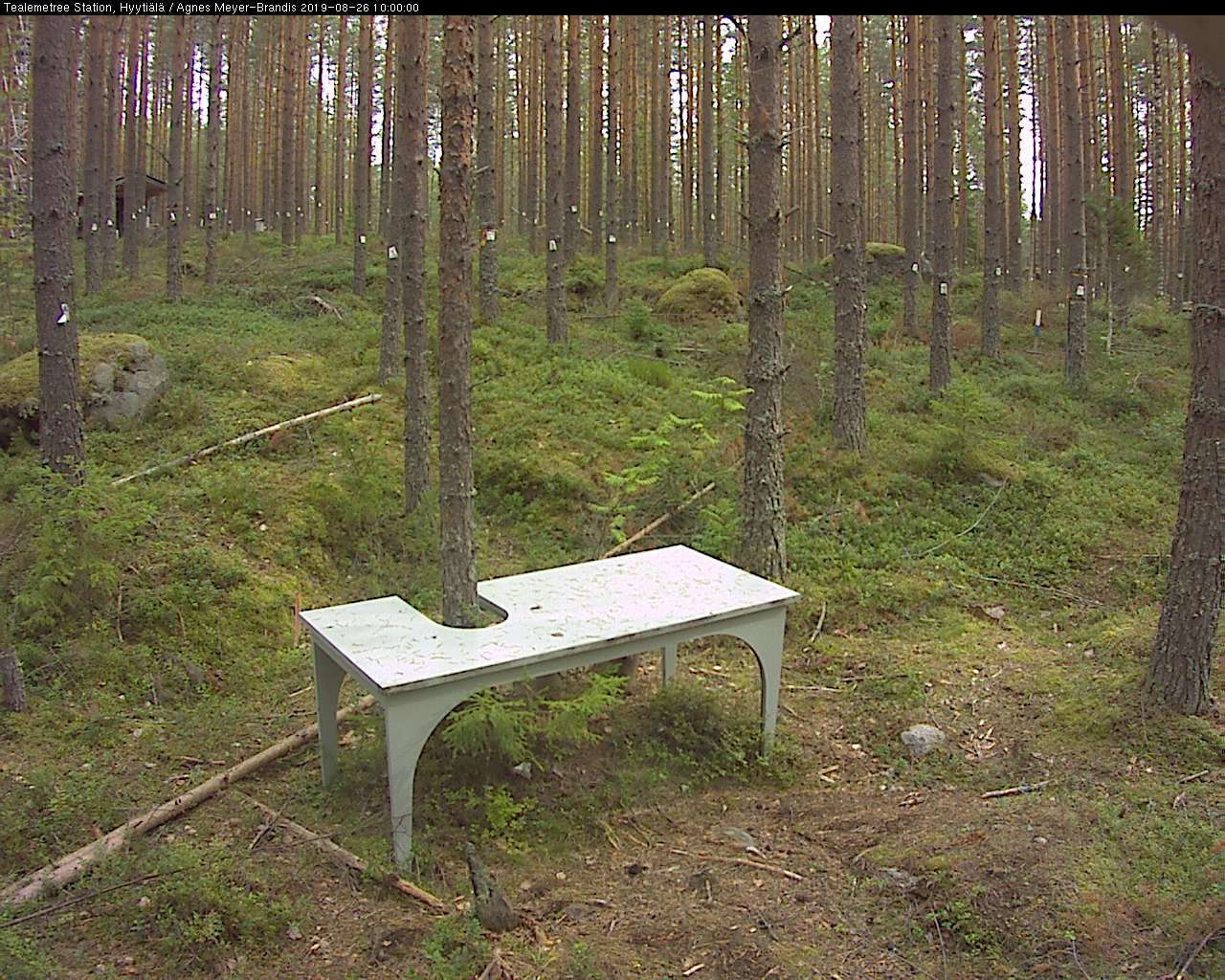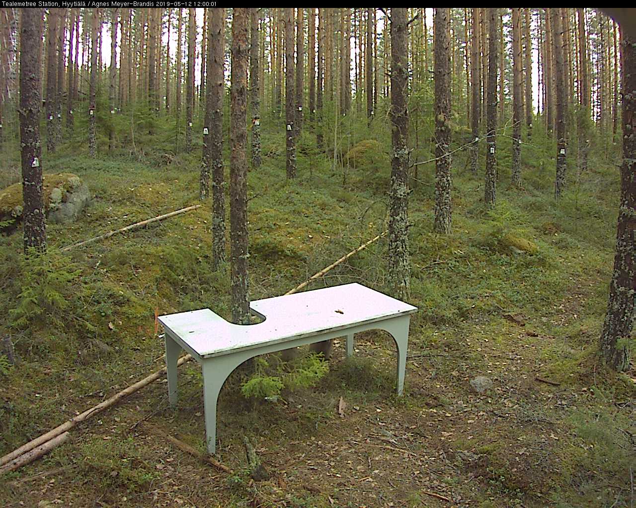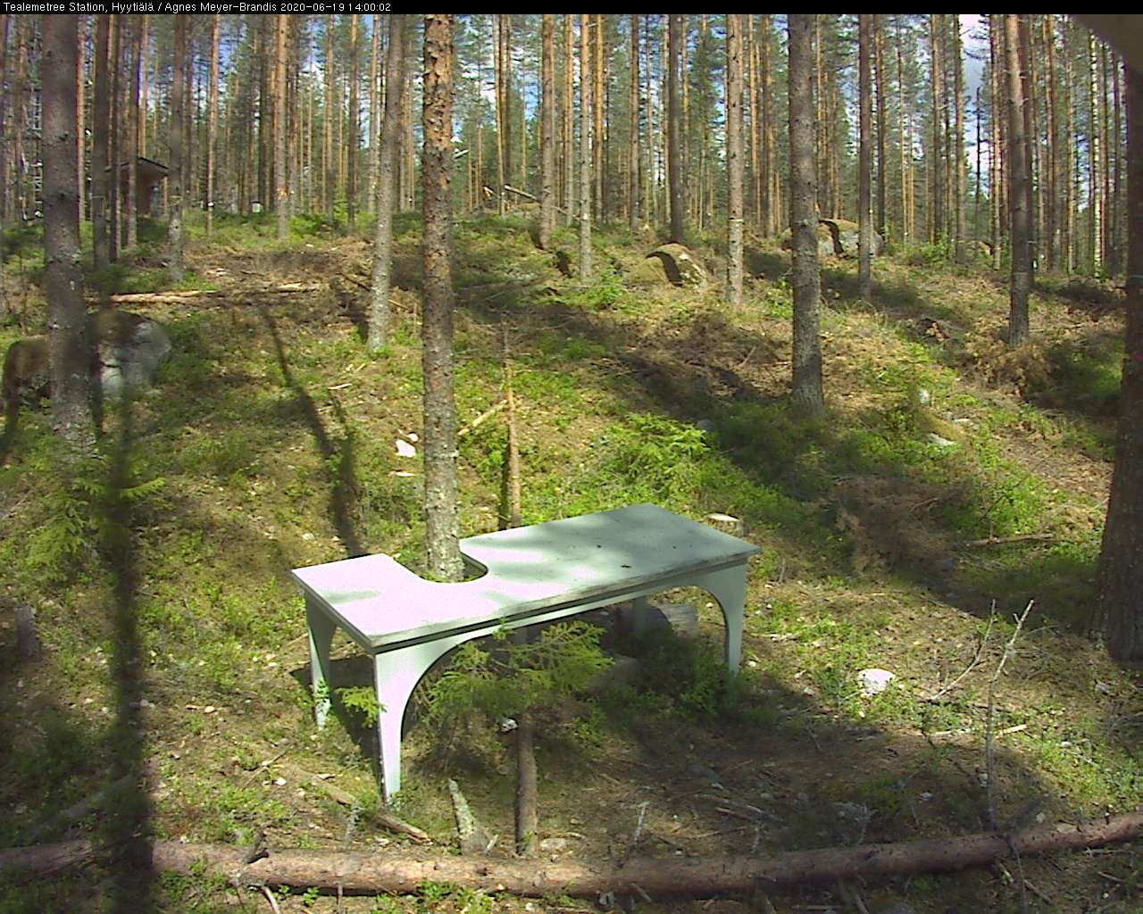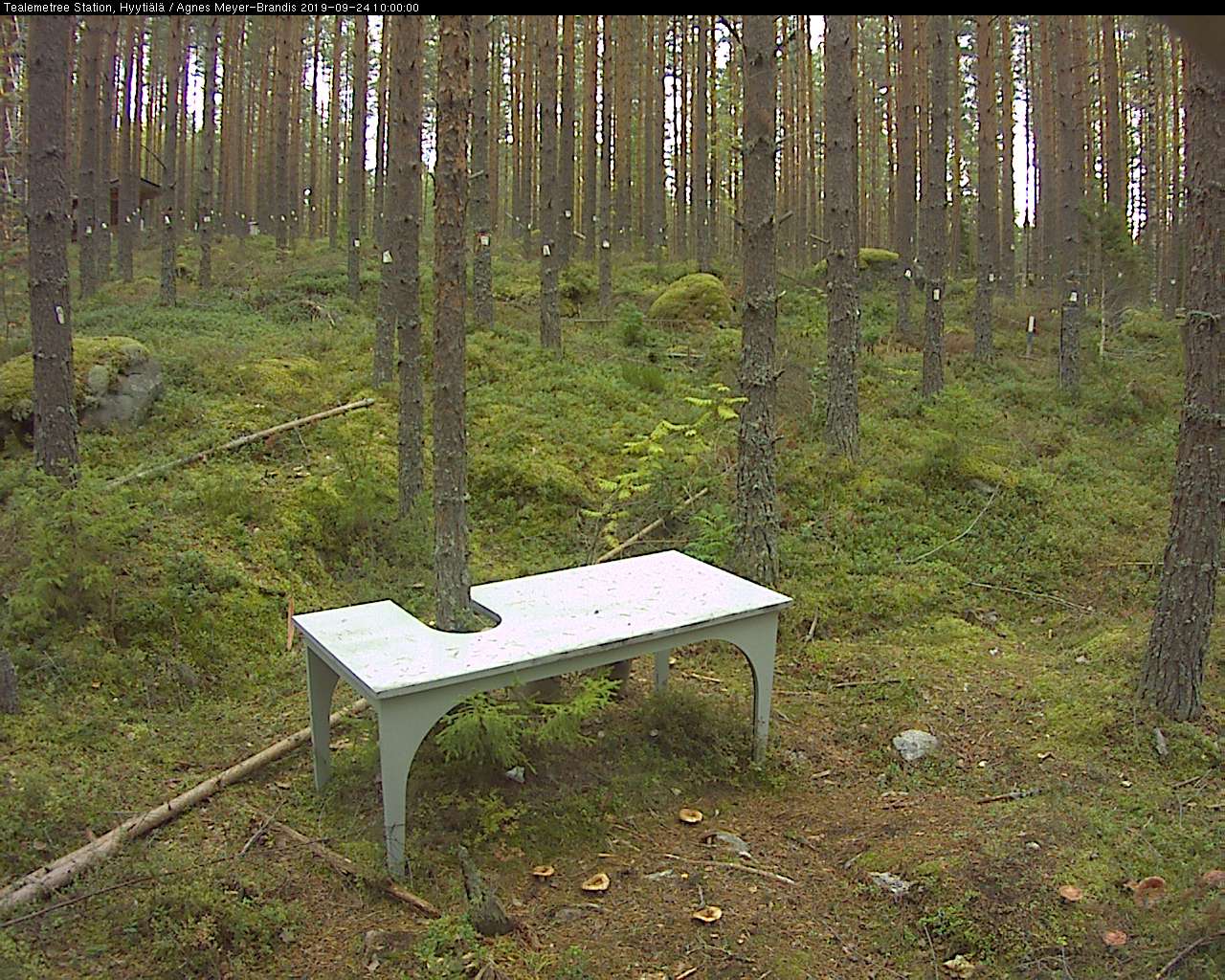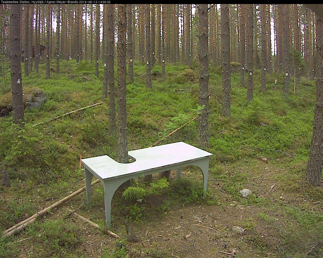 Agnes Meyer-Brandiksen työ Hyytiälässä alkoi tutustumalla aseman muihin tutkijoihin. Pystyäkseen tapaamaan ihmisiä metsässä, hän rakensi pöydän, josta muodostui kohtauspiste ja paikka teehetkille Agneksen ja puun kanssa.