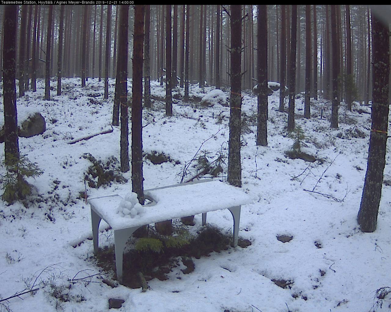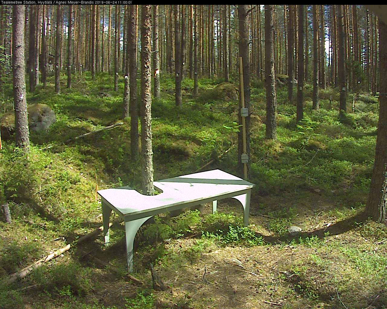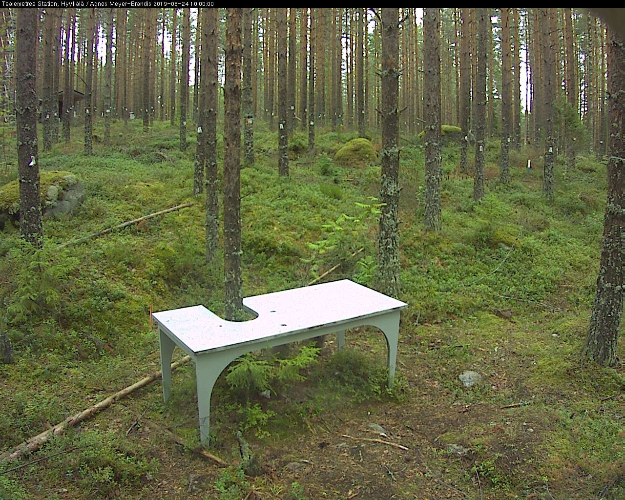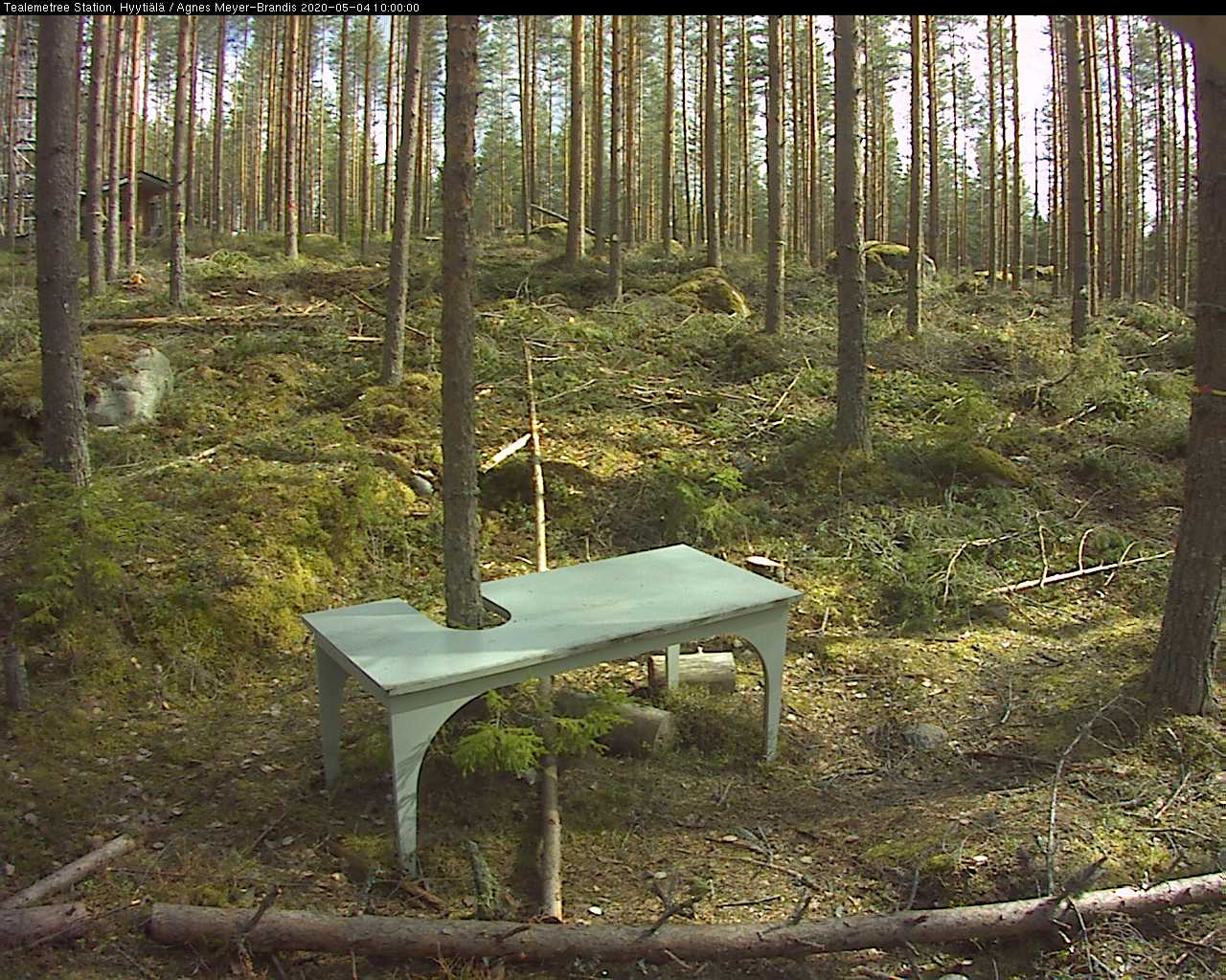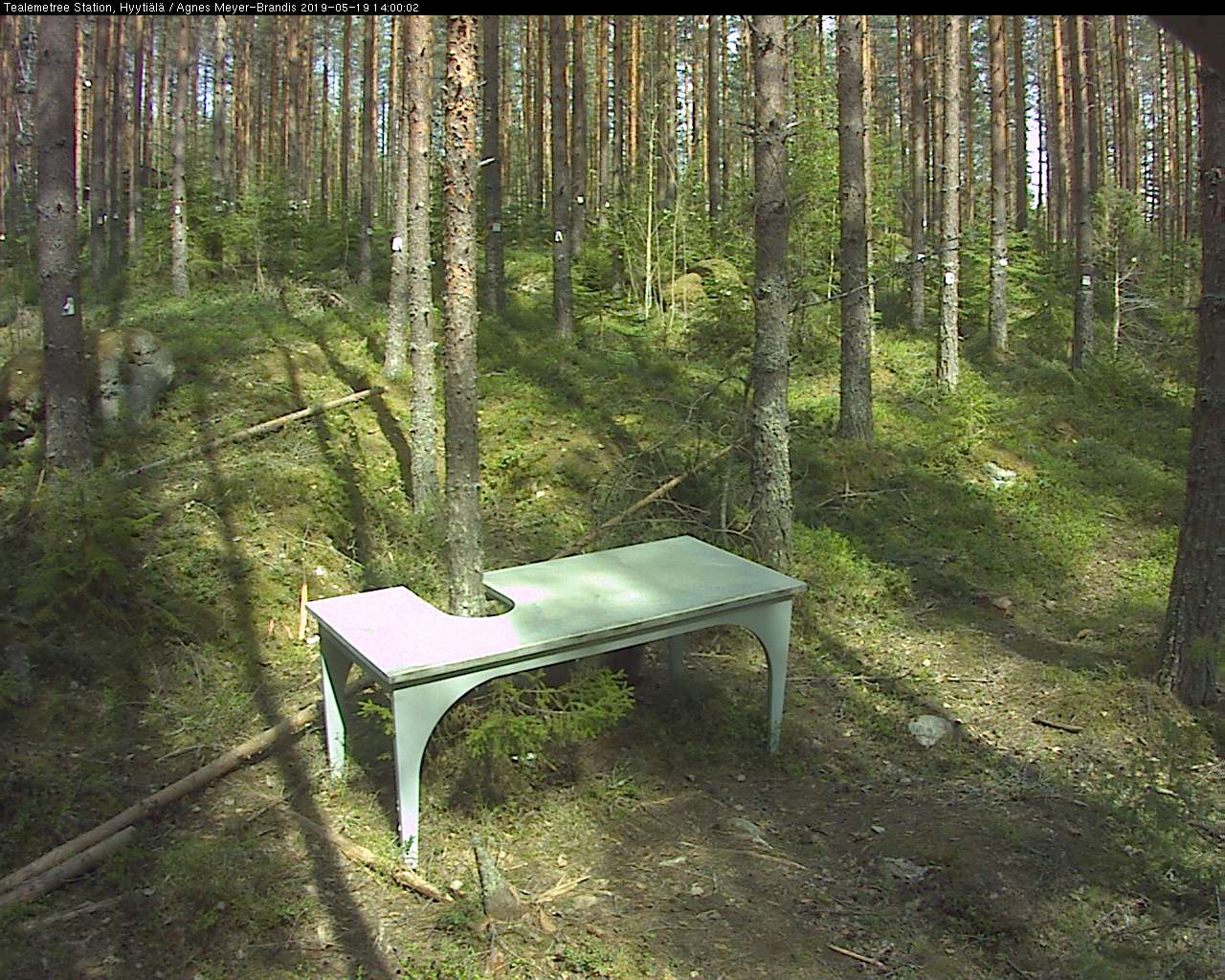 Agnes Meyer-Brandiksen työ Hyytiälässä alkoi tutustumalla aseman muihin tutkijoihin. Pystyäkseen tapaamaan ihmisiä metsässä, hän rakensi pöydän, josta muodostui kohtauspiste ja paikka teehetkille Agneksen ja puun kanssa.