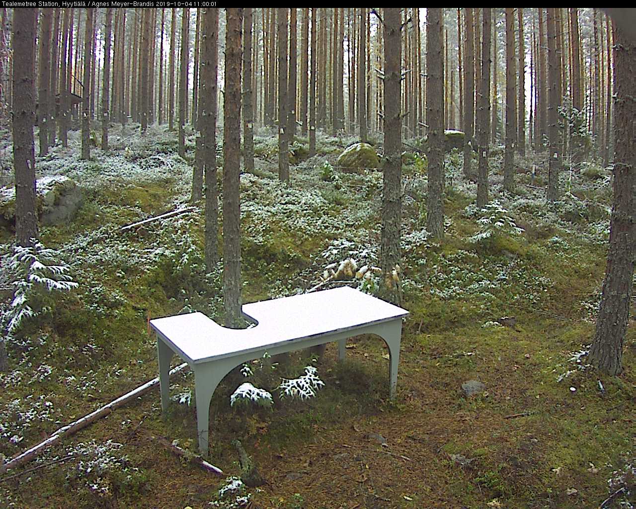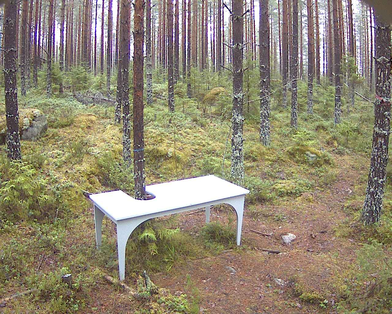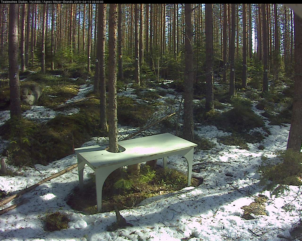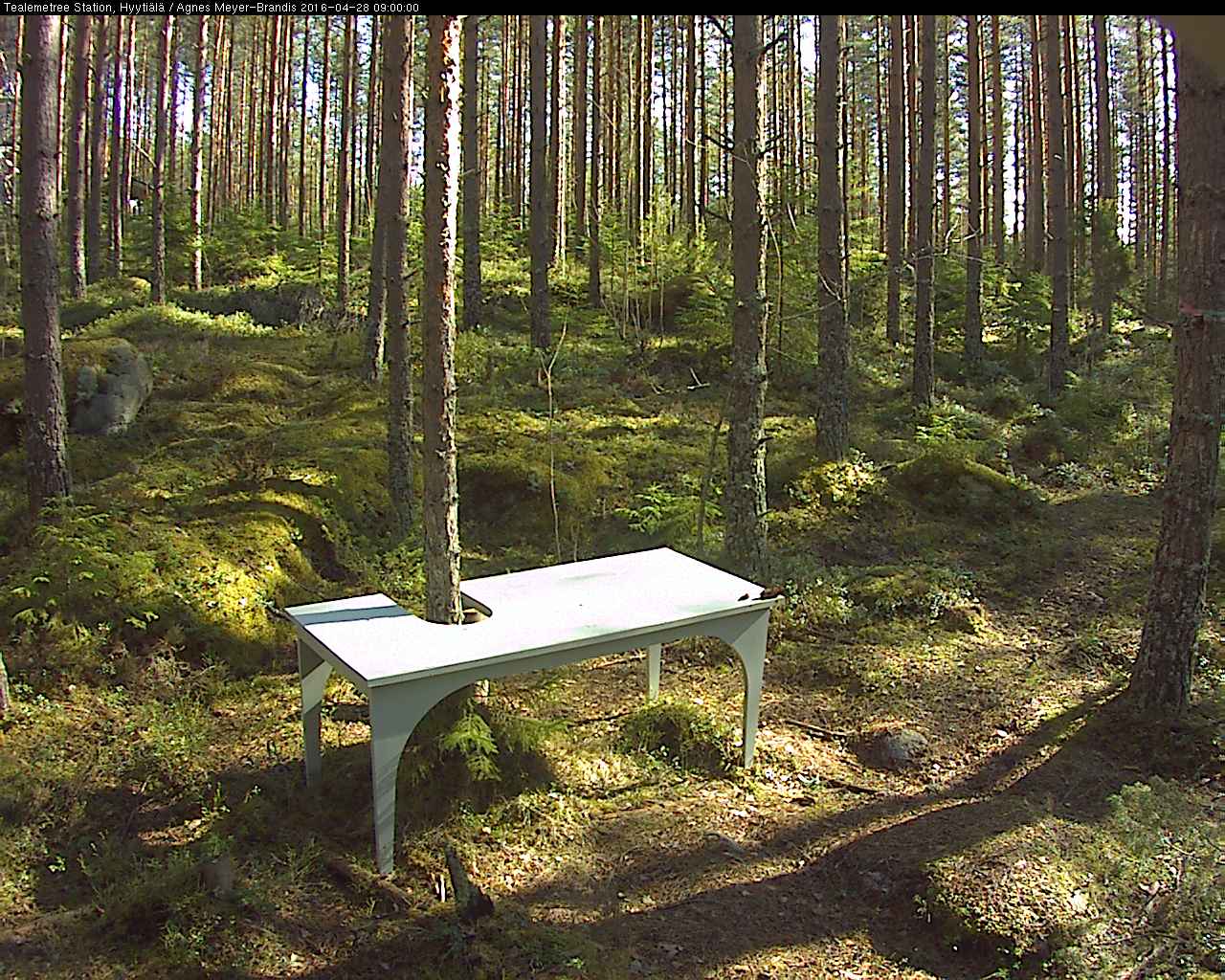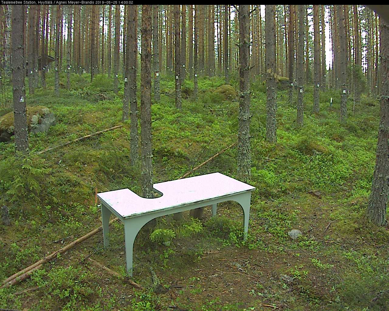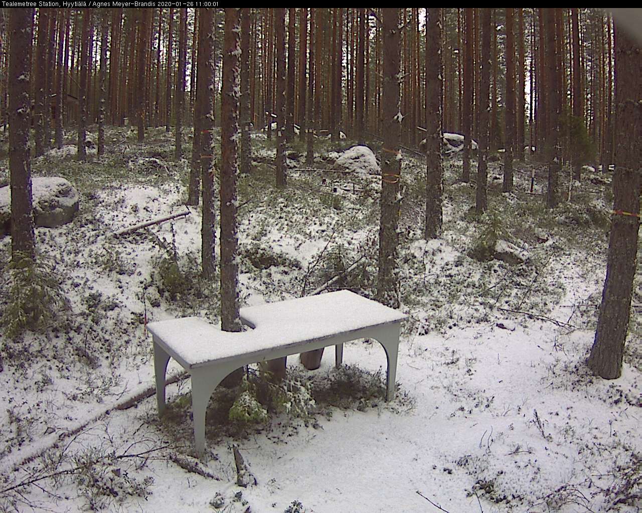 Agnes Meyer-Brandiksen työ Hyytiälässä alkoi tutustumalla aseman muihin tutkijoihin. Pystyäkseen tapaamaan ihmisiä metsässä, hän rakensi pöydän, josta muodostui kohtauspiste ja paikka teehetkille Agneksen ja puun kanssa.
