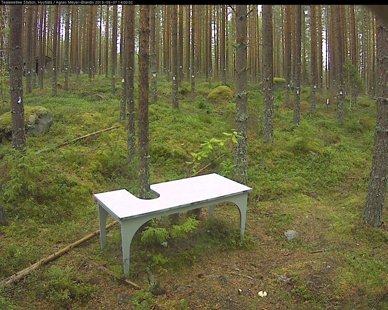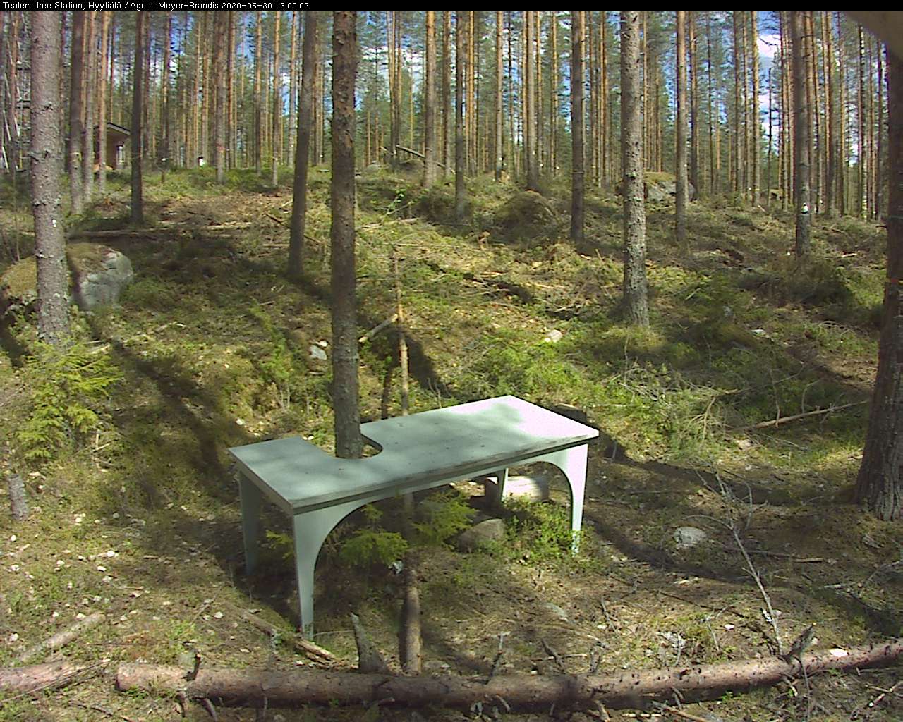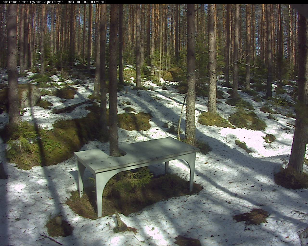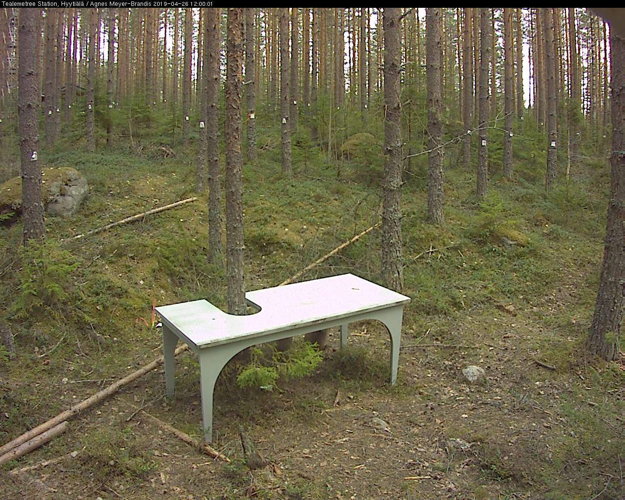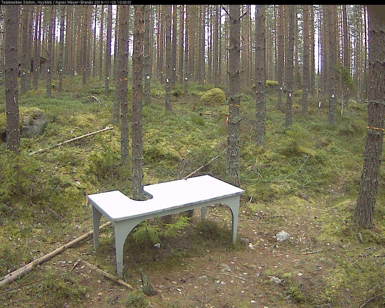 Agnes Meyer-Brandiksen työ Hyytiälässä alkoi tutustumalla aseman muihin tutkijoihin. Pystyäkseen tapaamaan ihmisiä metsässä, hän rakensi pöydän, josta muodostui kohtauspiste ja paikka teehetkille Agneksen ja puun kanssa.