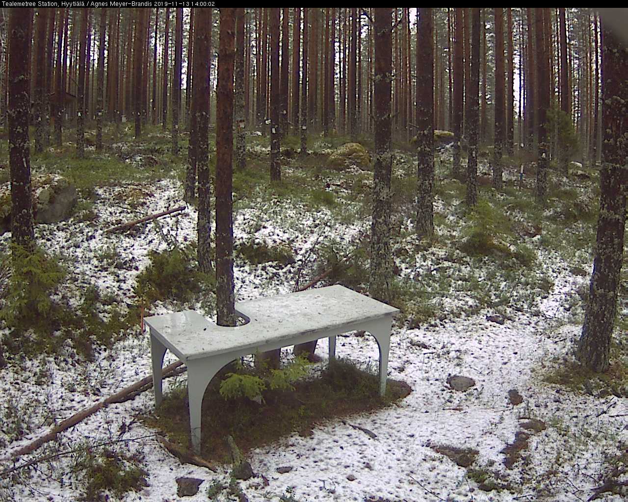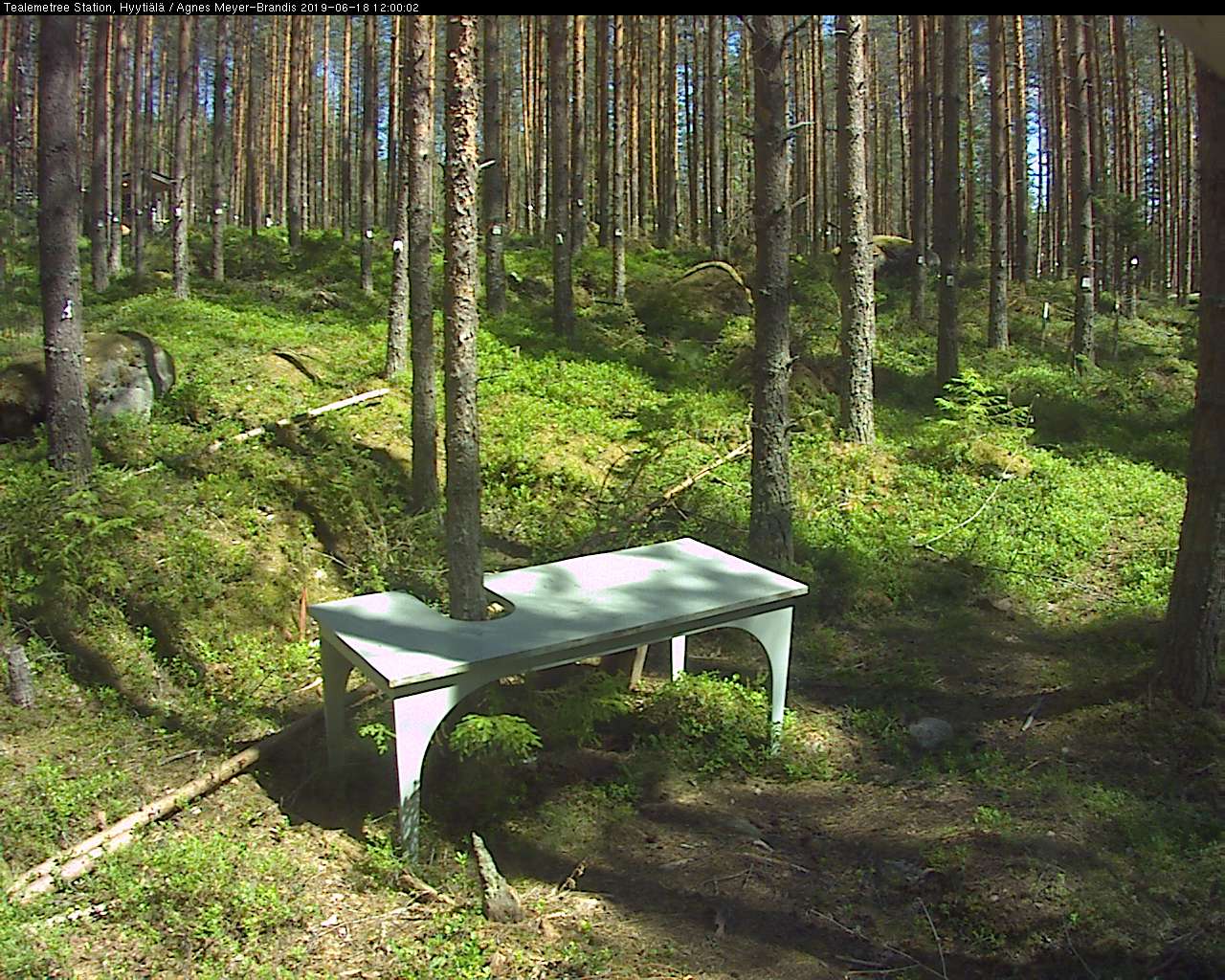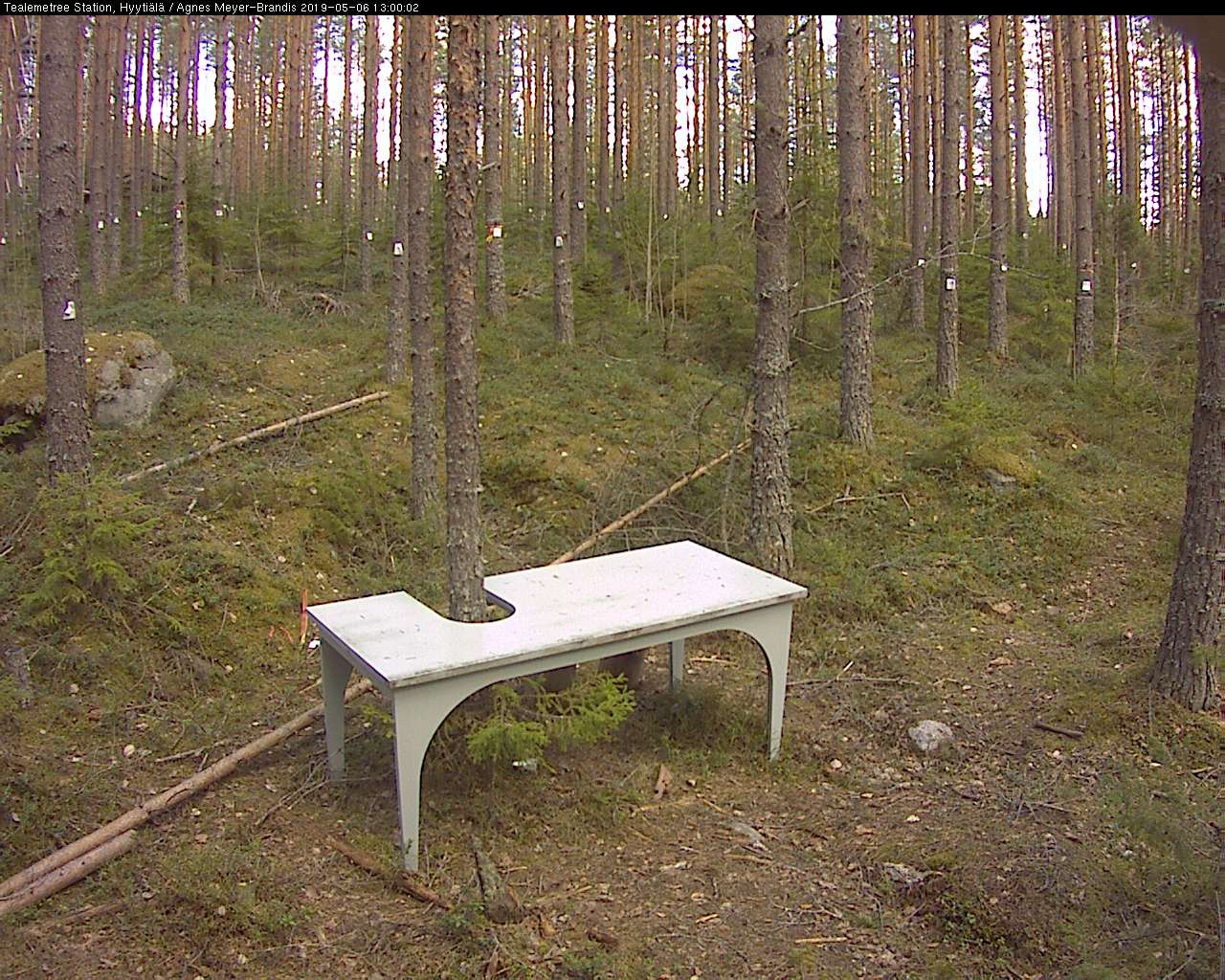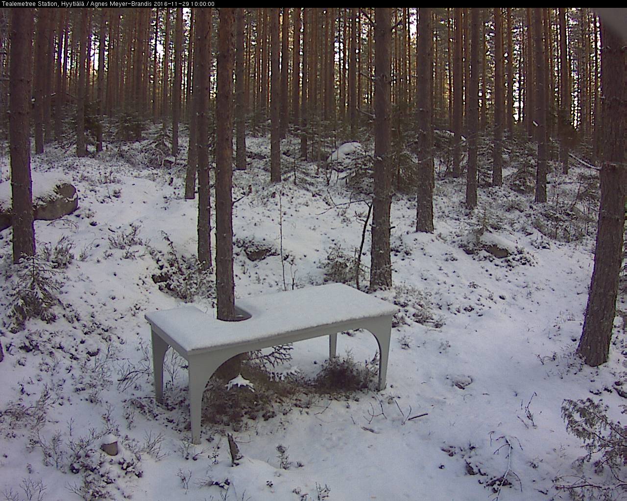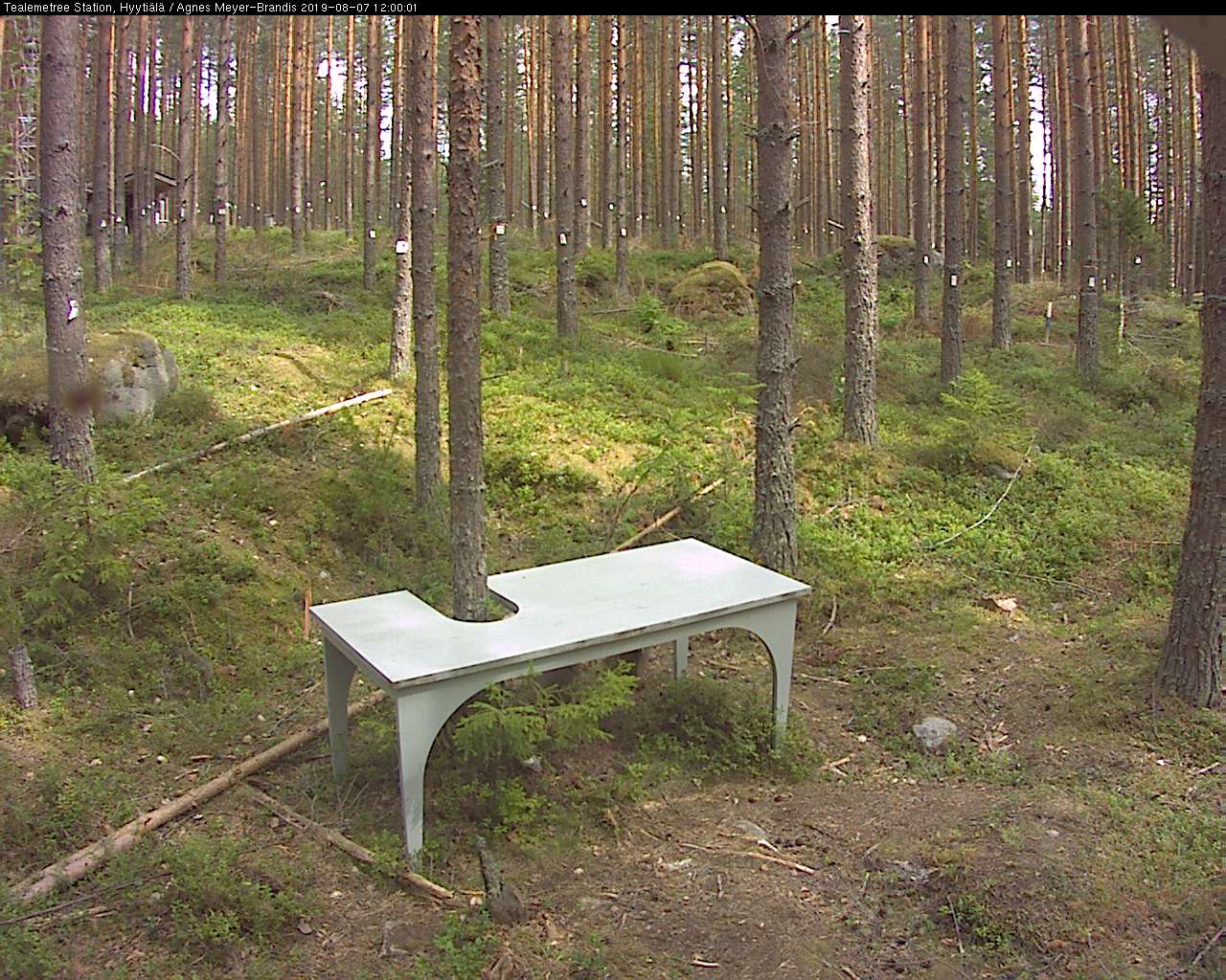 Agnes Meyer-Brandiksen työ Hyytiälässä alkoi tutustumalla aseman muihin tutkijoihin. Pystyäkseen tapaamaan ihmisiä metsässä, hän rakensi pöydän, josta muodostui kohtauspiste ja paikka teehetkille Agneksen ja puun kanssa.