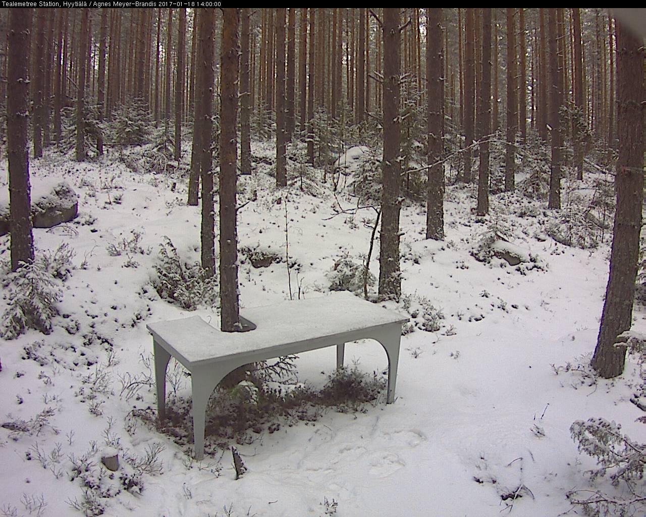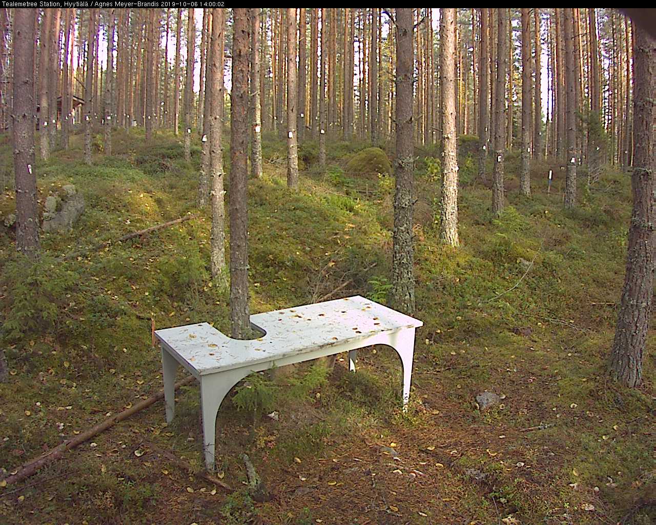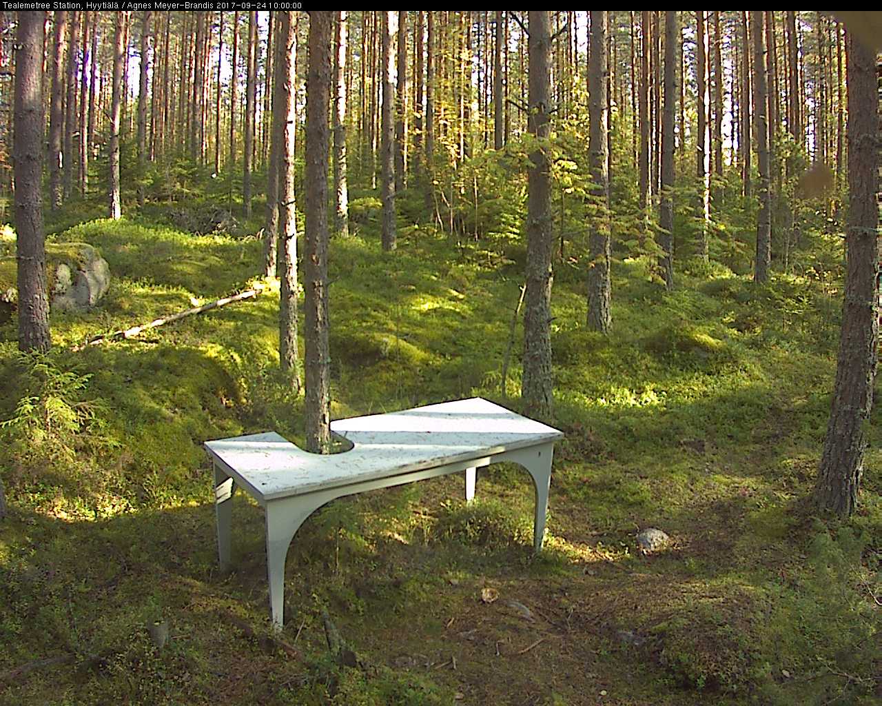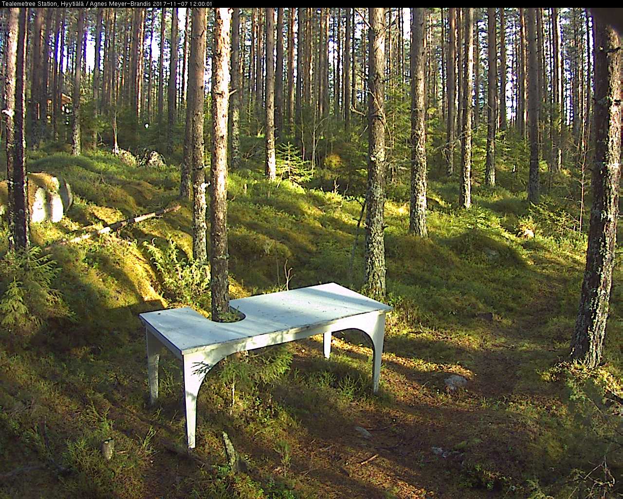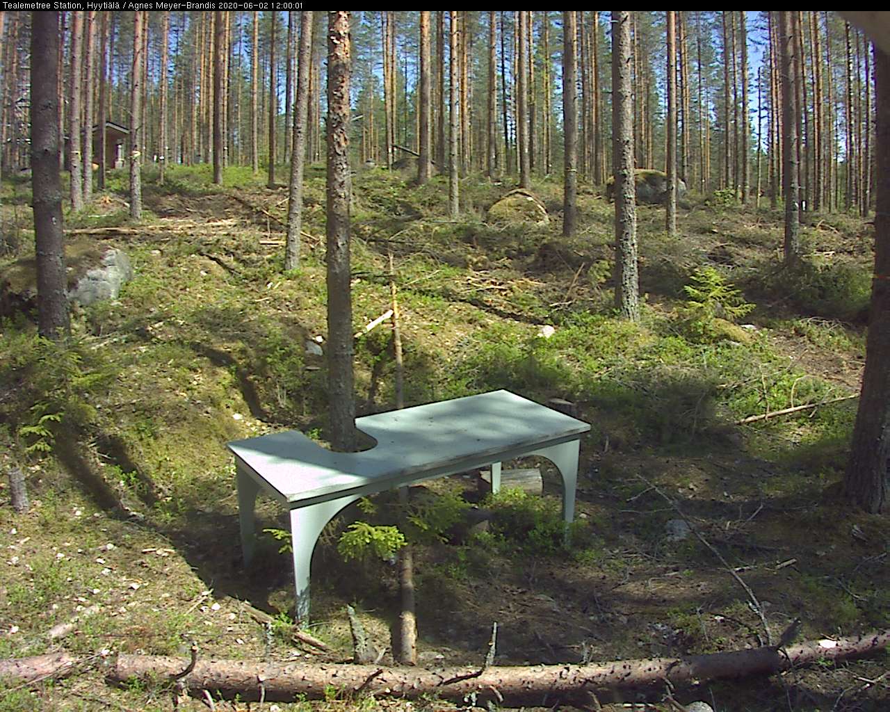 Agnes Meyer-Brandiksen työ Hyytiälässä alkoi tutustumalla aseman muihin tutkijoihin. Pystyäkseen tapaamaan ihmisiä metsässä, hän rakensi pöydän, josta muodostui kohtauspiste ja paikka teehetkille Agneksen ja puun kanssa.