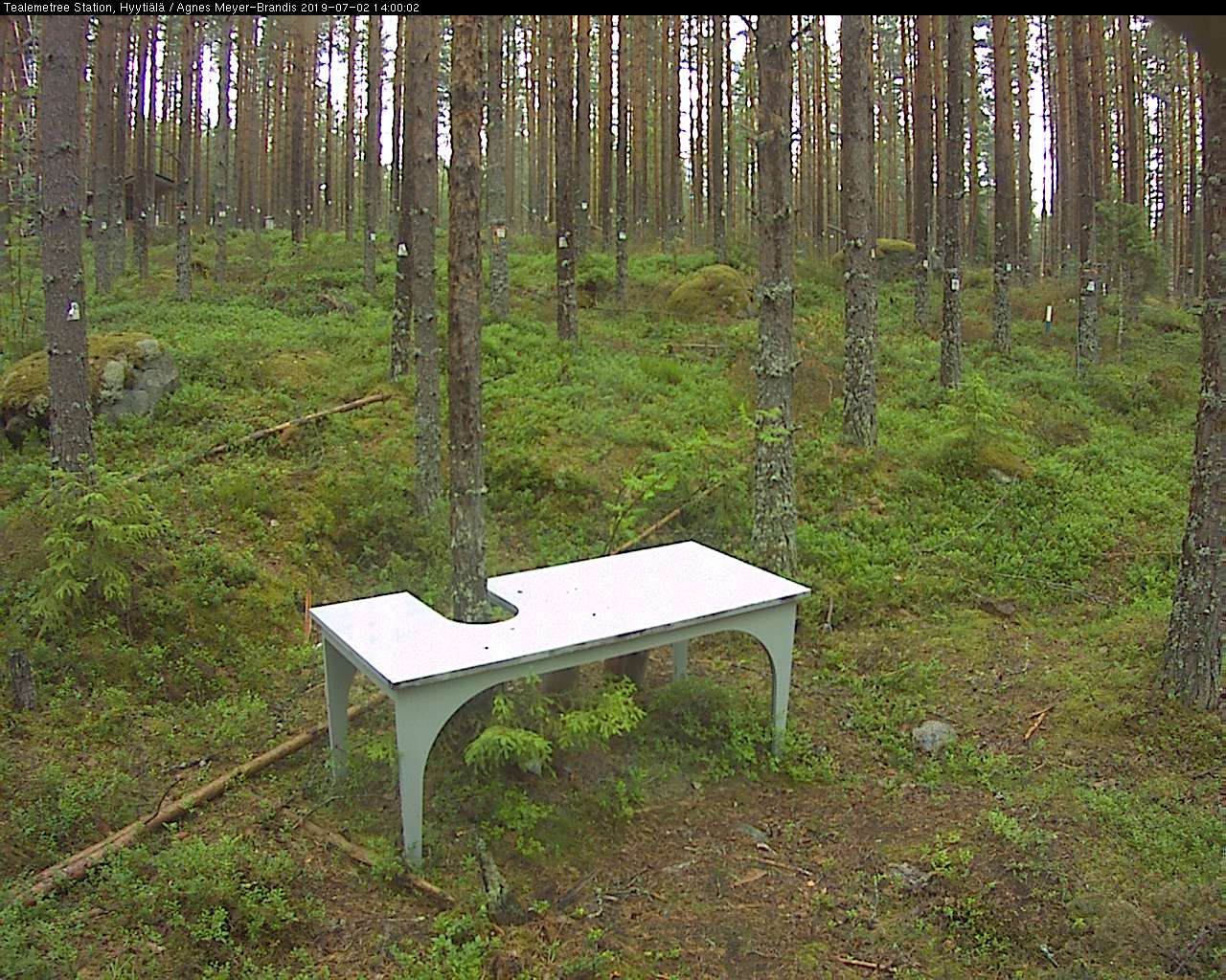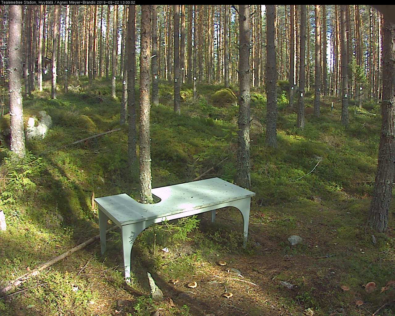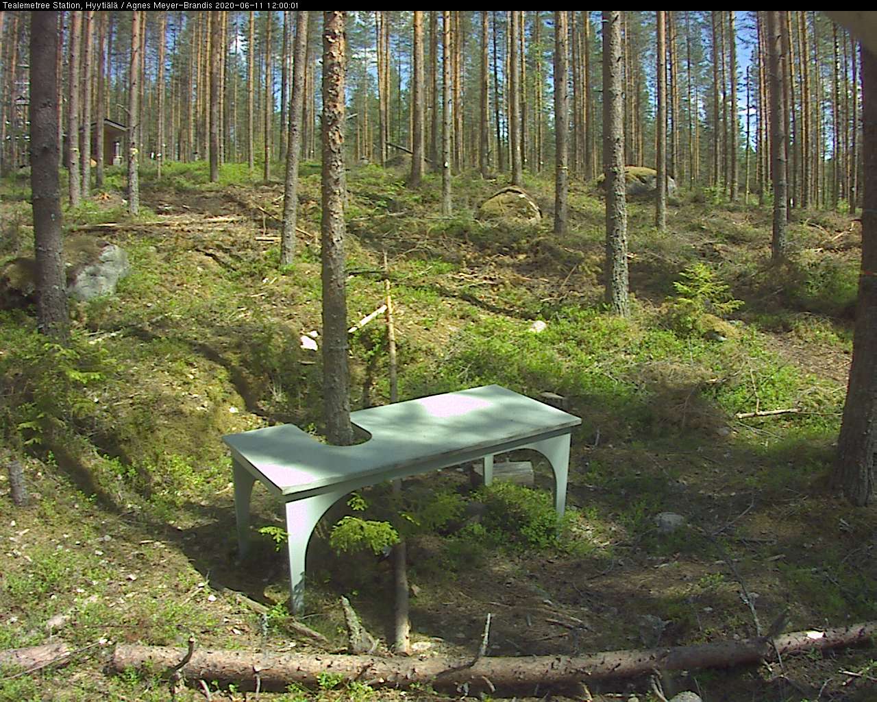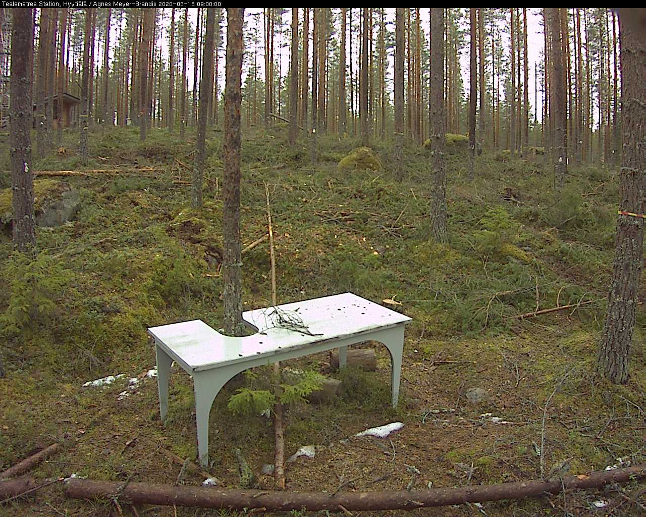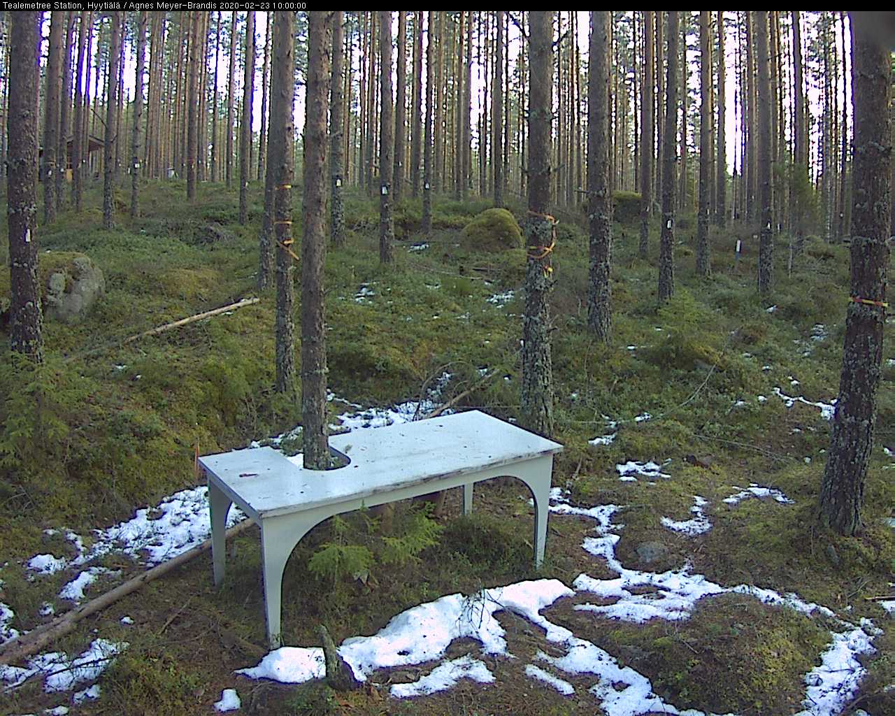 Agnes Meyer-Brandiksen työ Hyytiälässä alkoi tutustumalla aseman muihin tutkijoihin. Pystyäkseen tapaamaan ihmisiä metsässä, hän rakensi pöydän, josta muodostui kohtauspiste ja paikka teehetkille Agneksen ja puun kanssa.