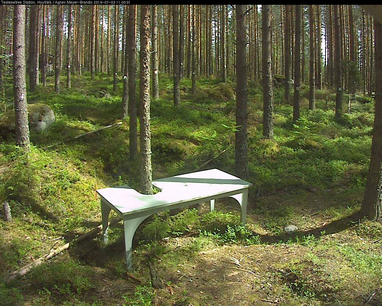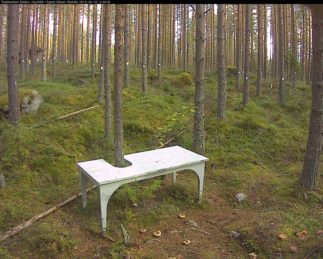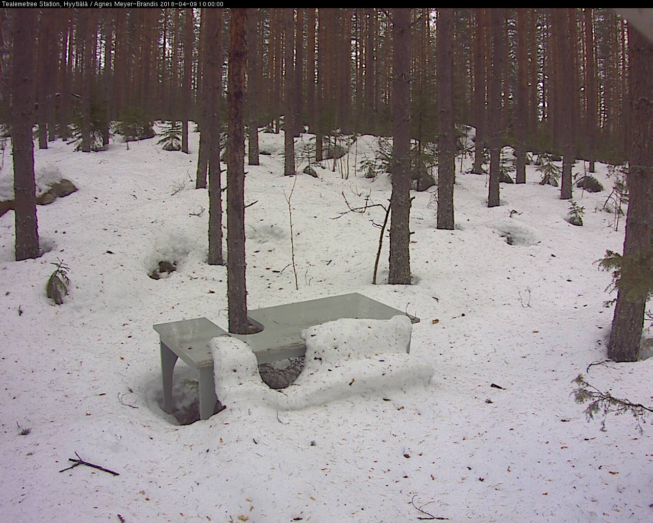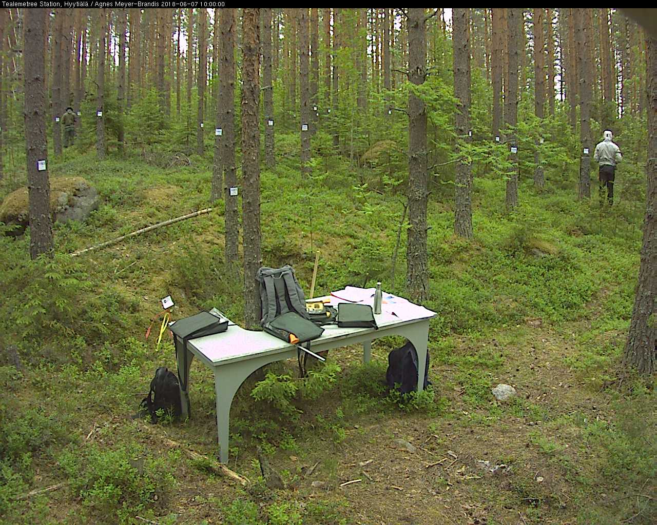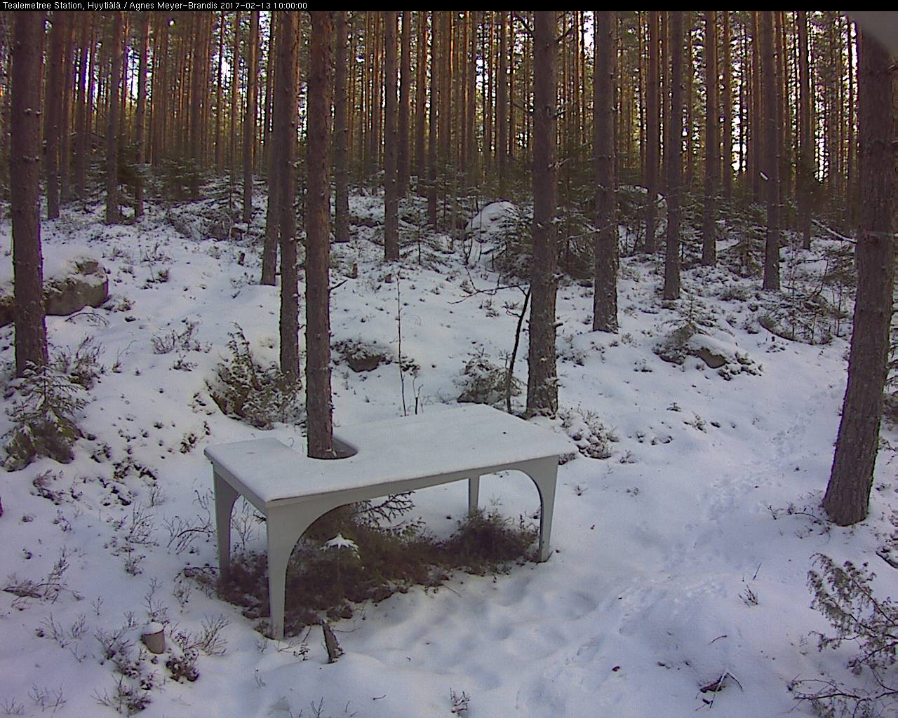 Agnes Meyer-Brandiksen työ Hyytiälässä alkoi tutustumalla aseman muihin tutkijoihin. Pystyäkseen tapaamaan ihmisiä metsässä, hän rakensi pöydän, josta muodostui kohtauspiste ja paikka teehetkille Agneksen ja puun kanssa.