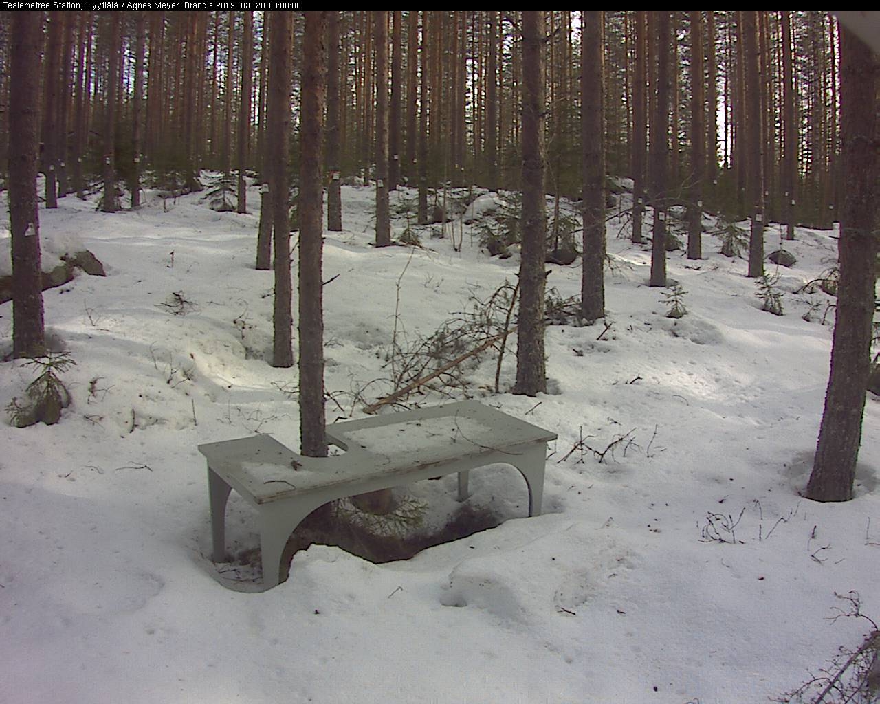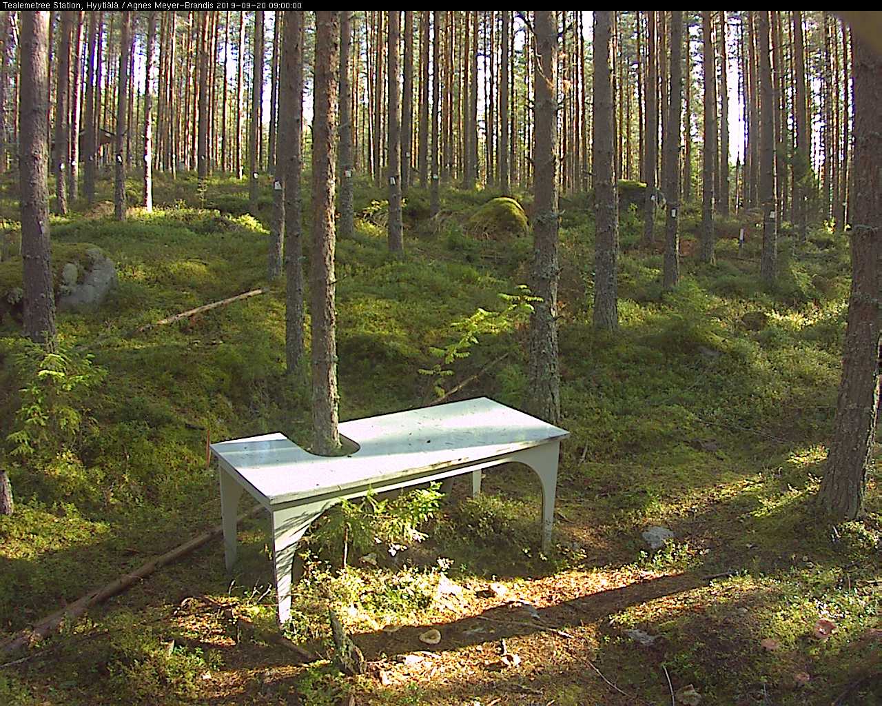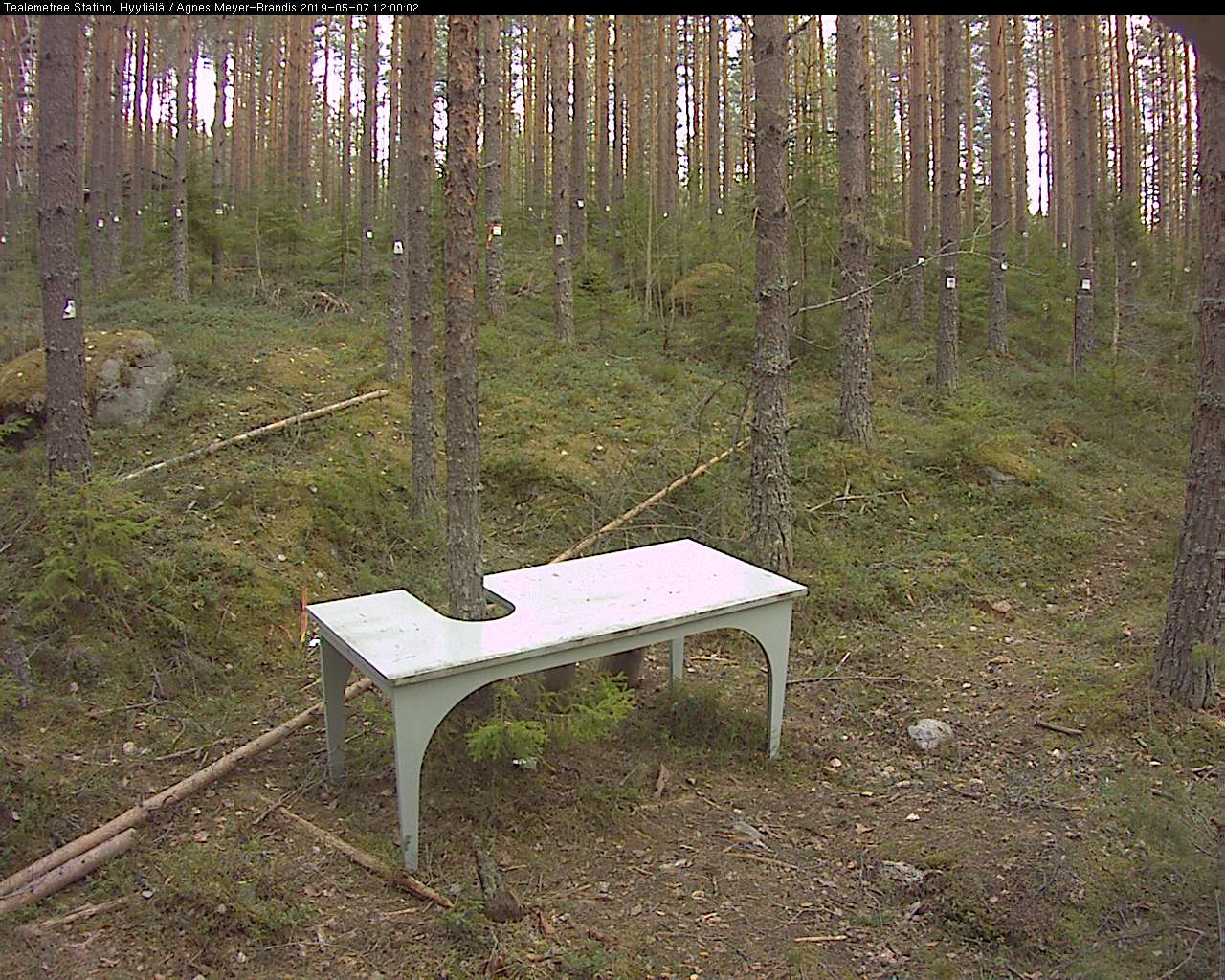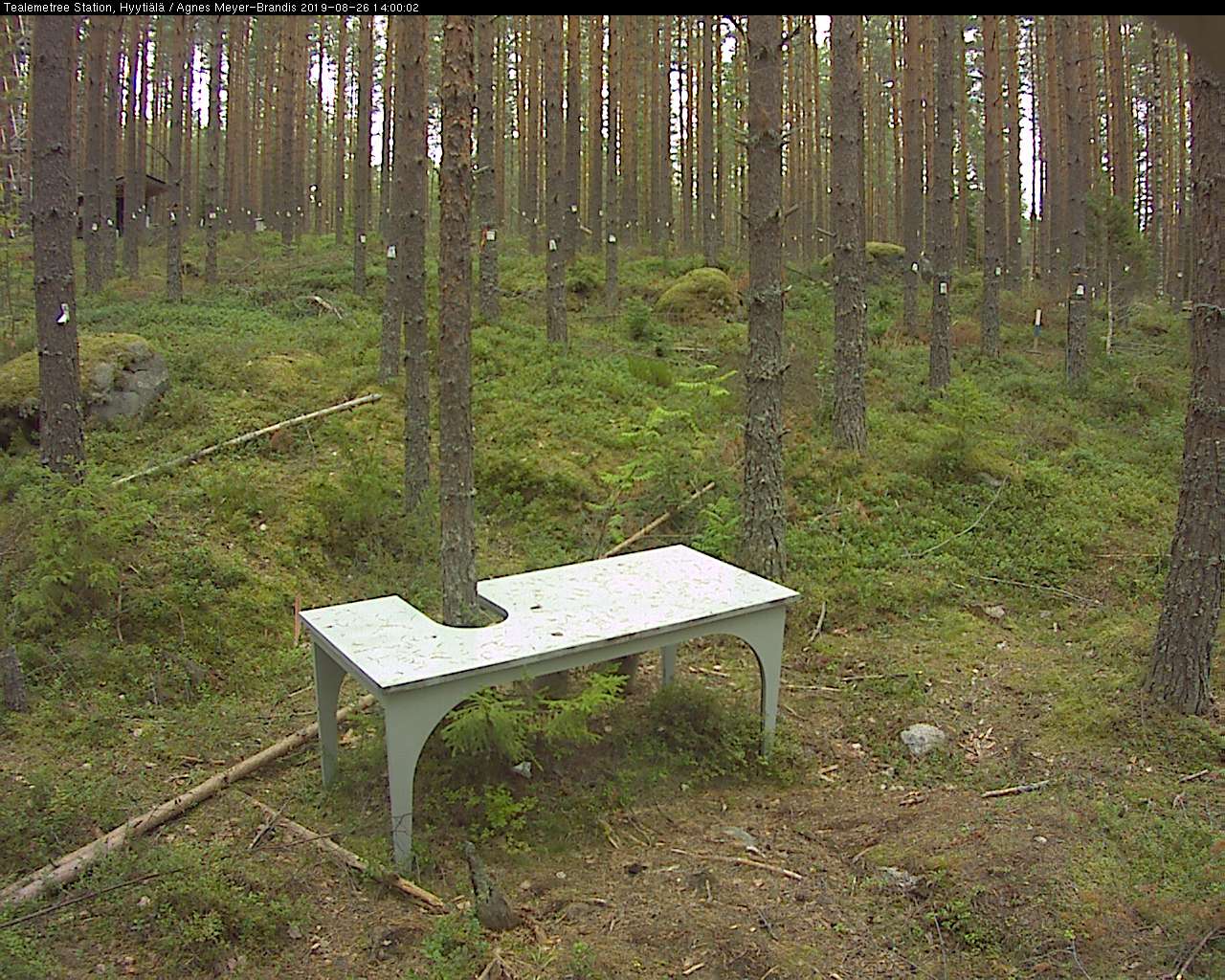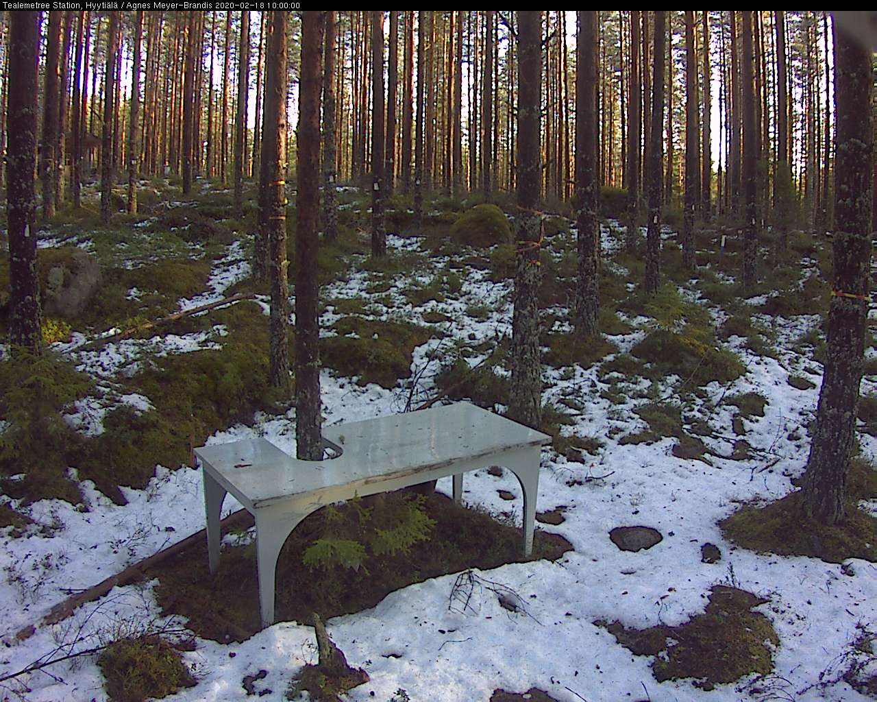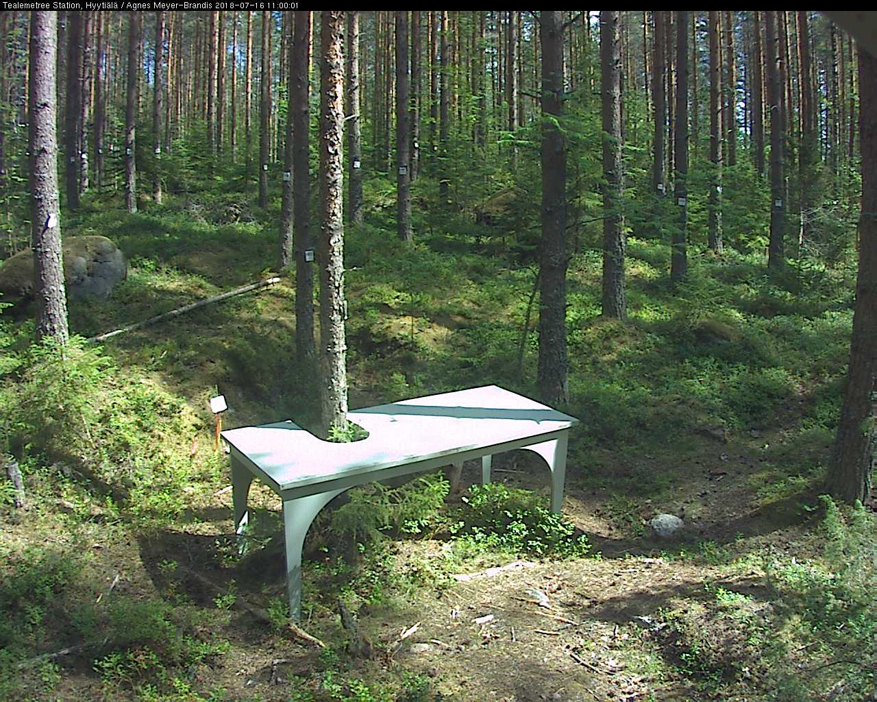 Agnes Meyer-Brandiksen työ Hyytiälässä alkoi tutustumalla aseman muihin tutkijoihin. Pystyäkseen tapaamaan ihmisiä metsässä, hän rakensi pöydän, josta muodostui kohtauspiste ja paikka teehetkille Agneksen ja puun kanssa.