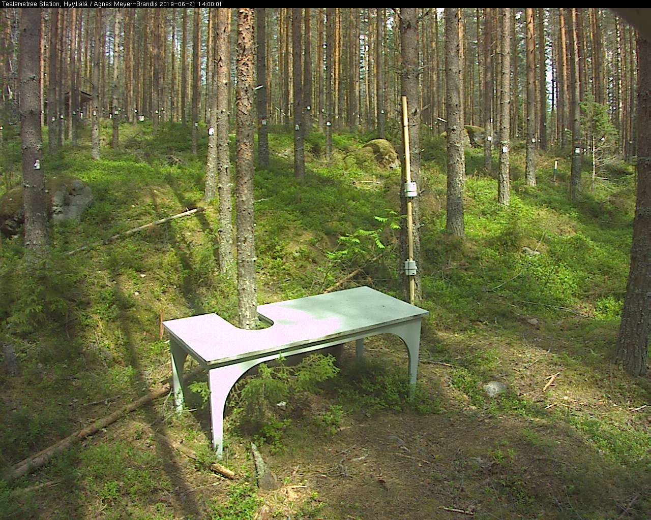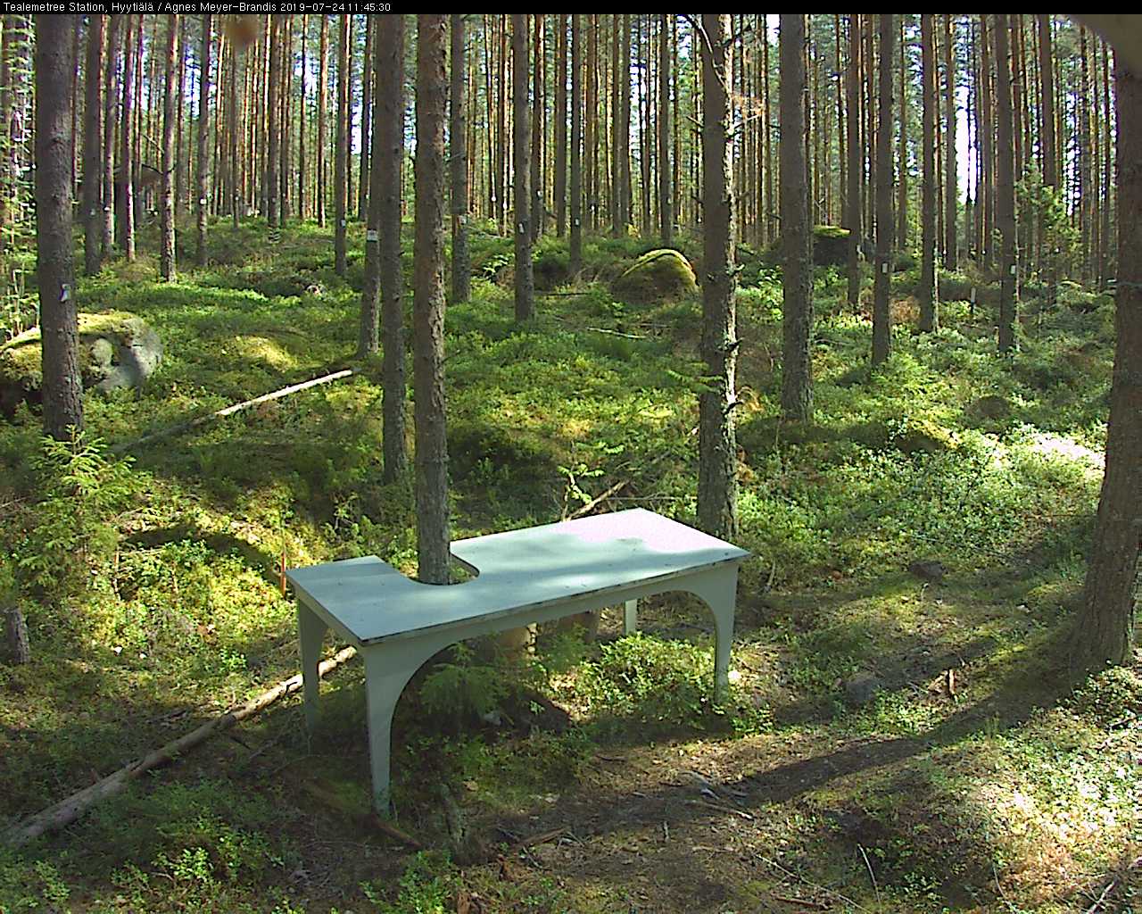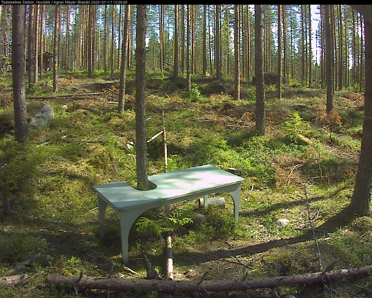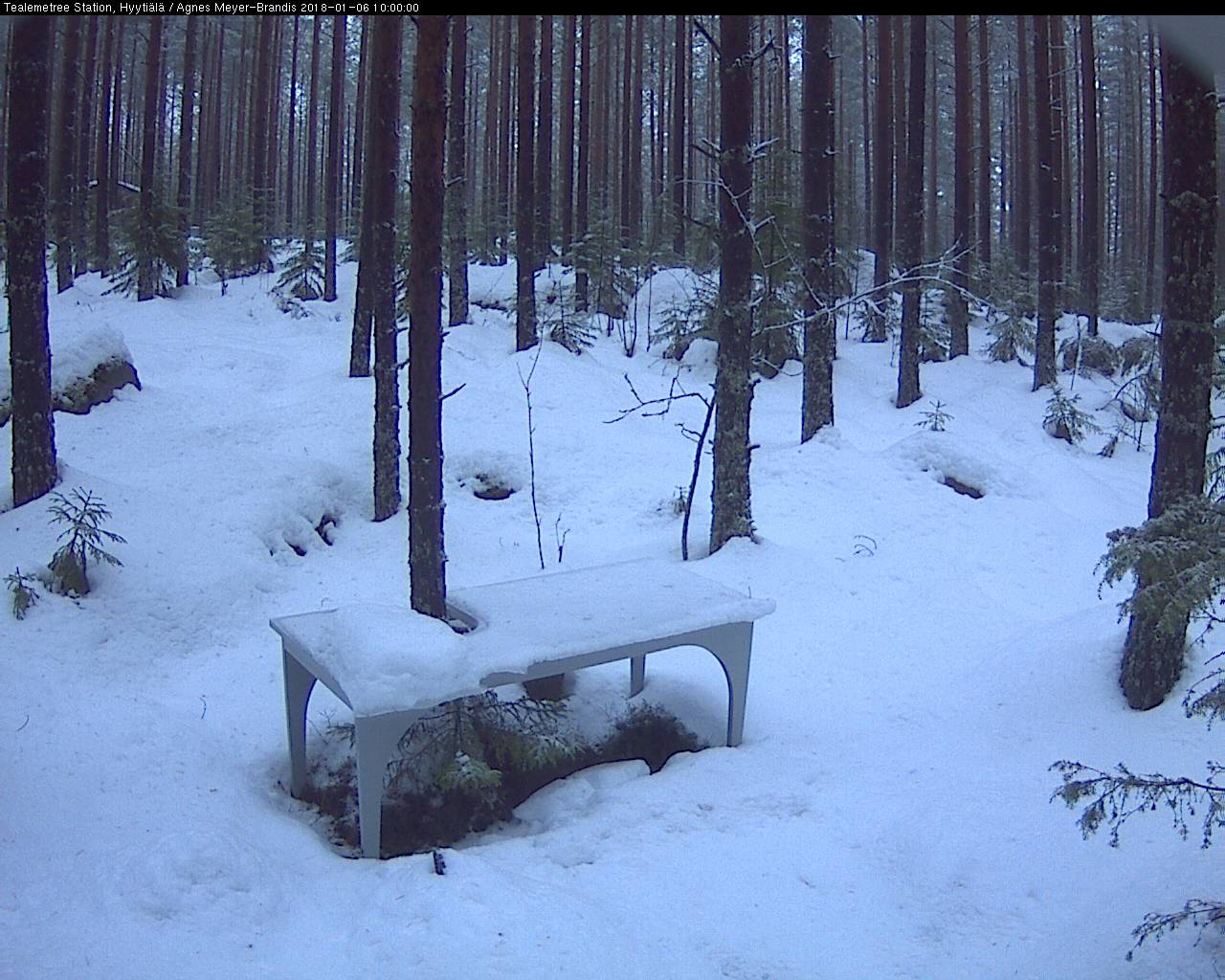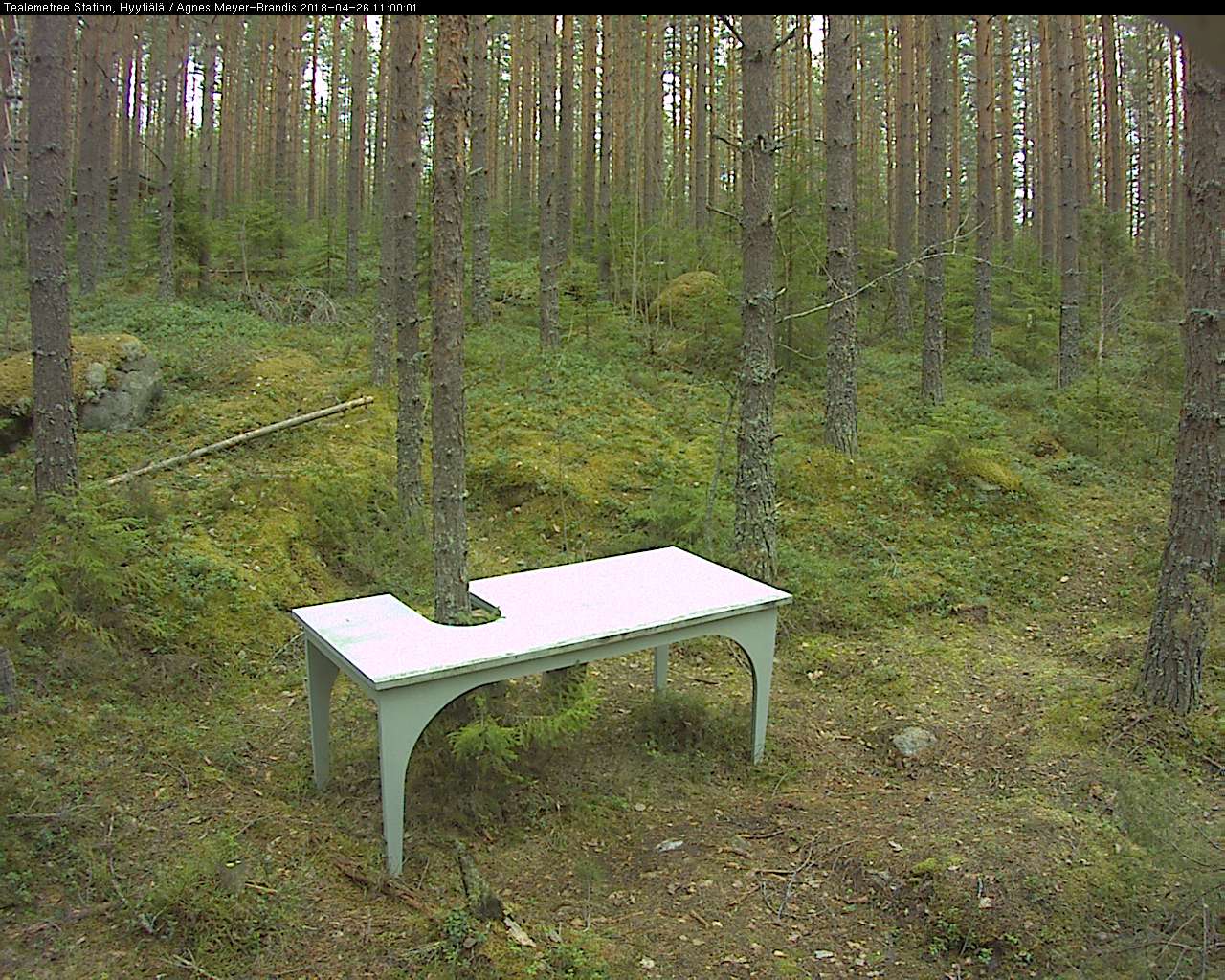 Agnes Meyer-Brandiksen työ Hyytiälässä alkoi tutustumalla aseman muihin tutkijoihin. Pystyäkseen tapaamaan ihmisiä metsässä, hän rakensi pöydän, josta muodostui kohtauspiste ja paikka teehetkille Agneksen ja puun kanssa.