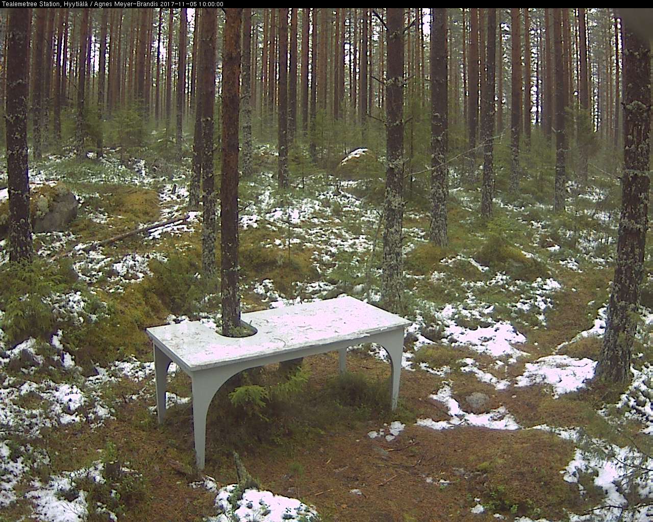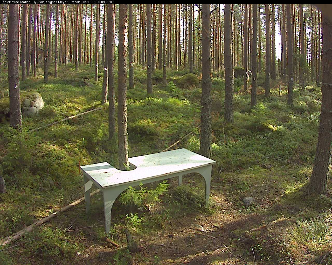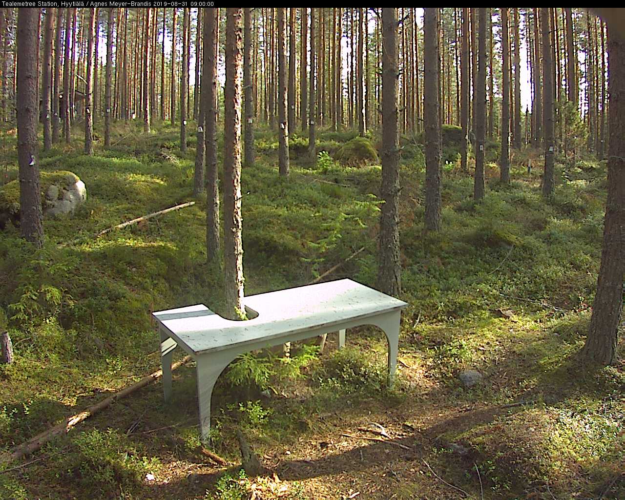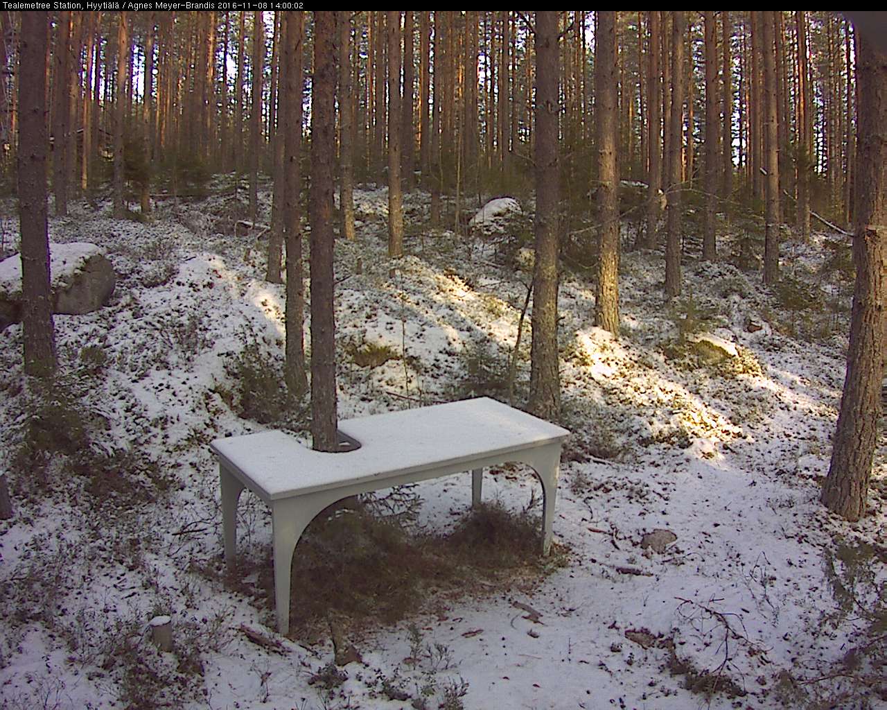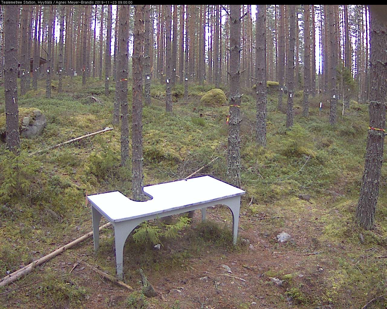 Agnes Meyer-Brandiksen työ Hyytiälässä alkoi tutustumalla aseman muihin tutkijoihin. Pystyäkseen tapaamaan ihmisiä metsässä, hän rakensi pöydän, josta muodostui kohtauspiste ja paikka teehetkille Agneksen ja puun kanssa.