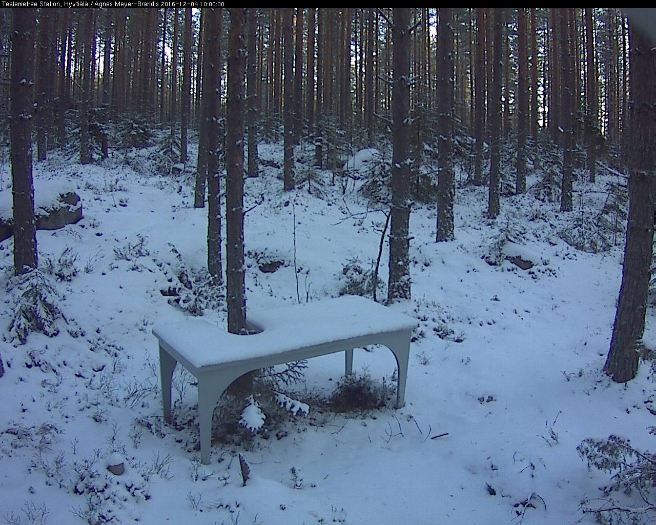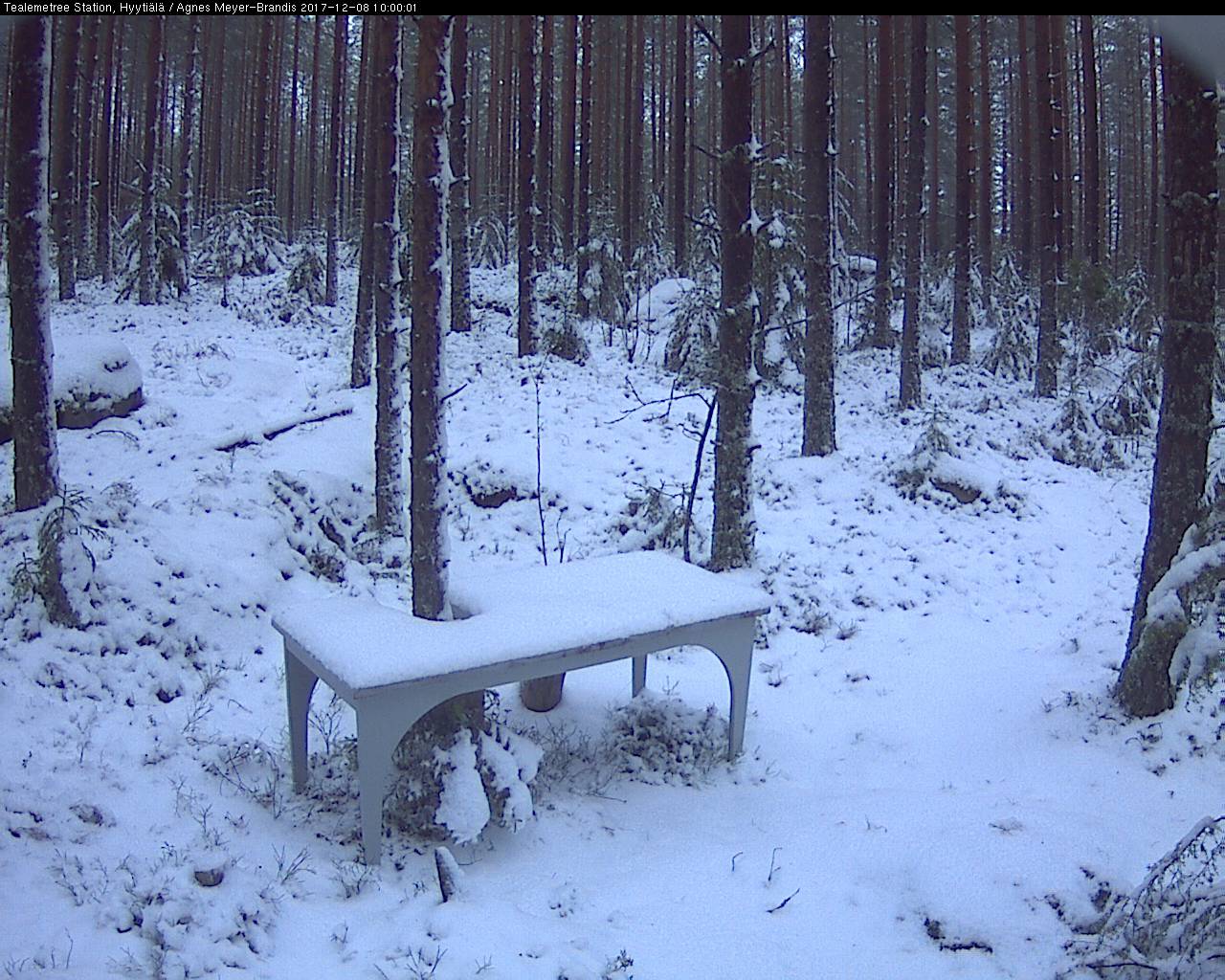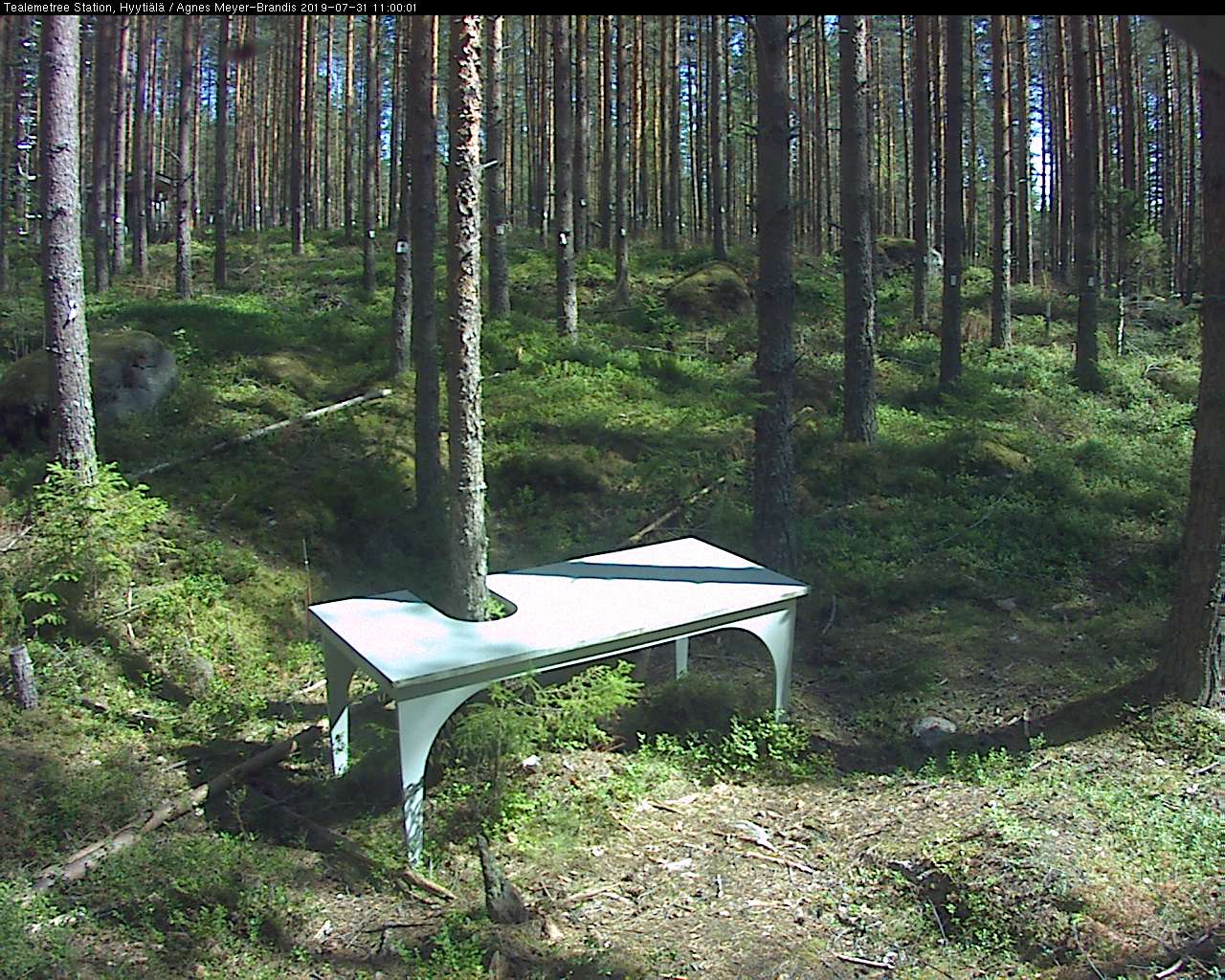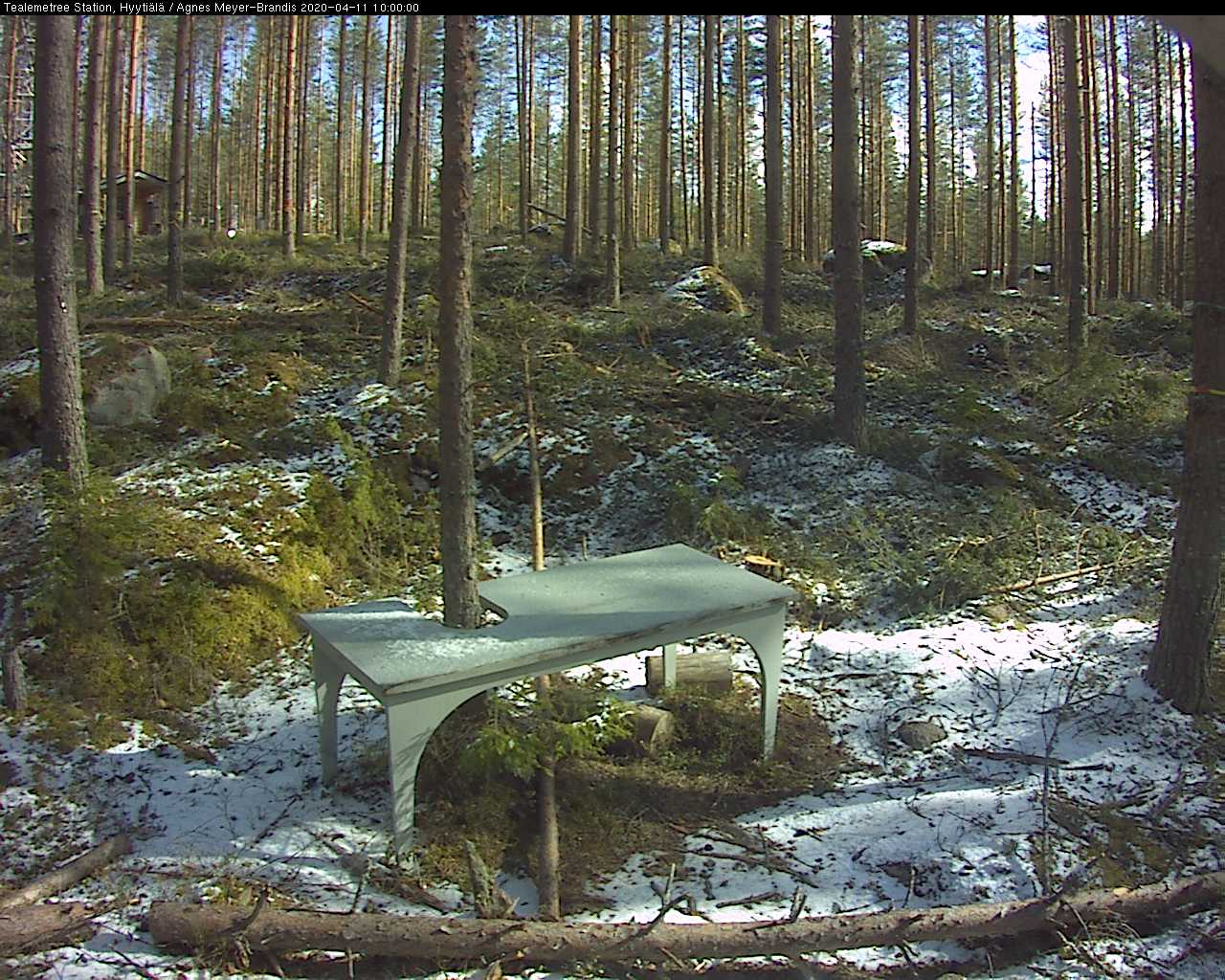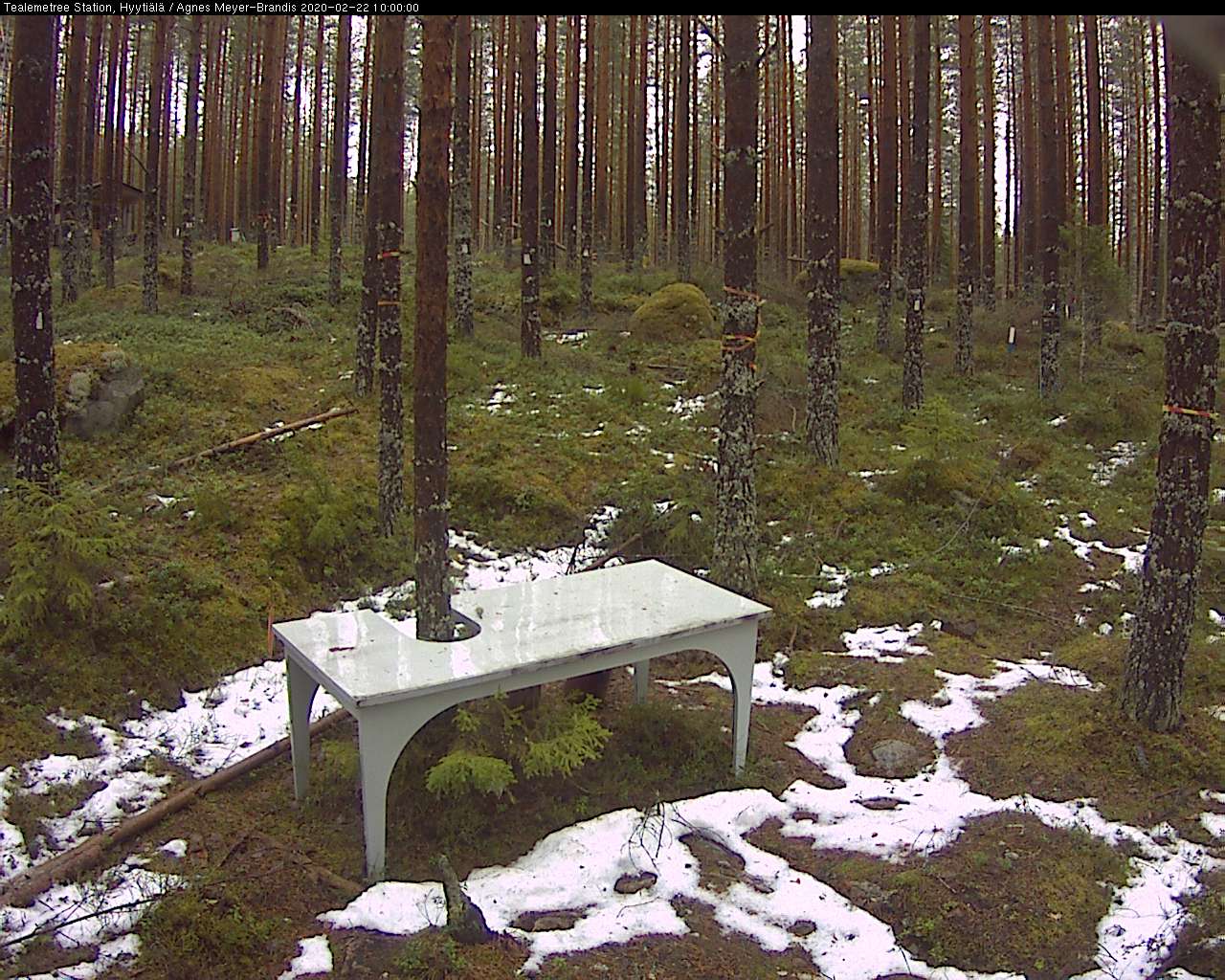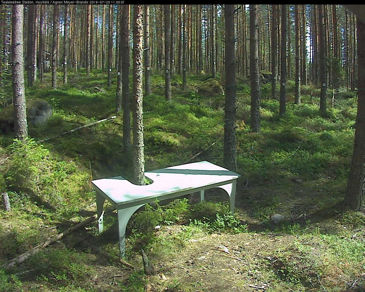 Agnes Meyer-Brandiksen työ Hyytiälässä alkoi tutustumalla aseman muihin tutkijoihin. Pystyäkseen tapaamaan ihmisiä metsässä, hän rakensi pöydän, josta muodostui kohtauspiste ja paikka teehetkille Agneksen ja puun kanssa.