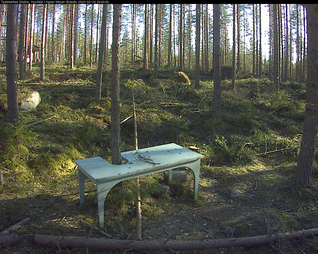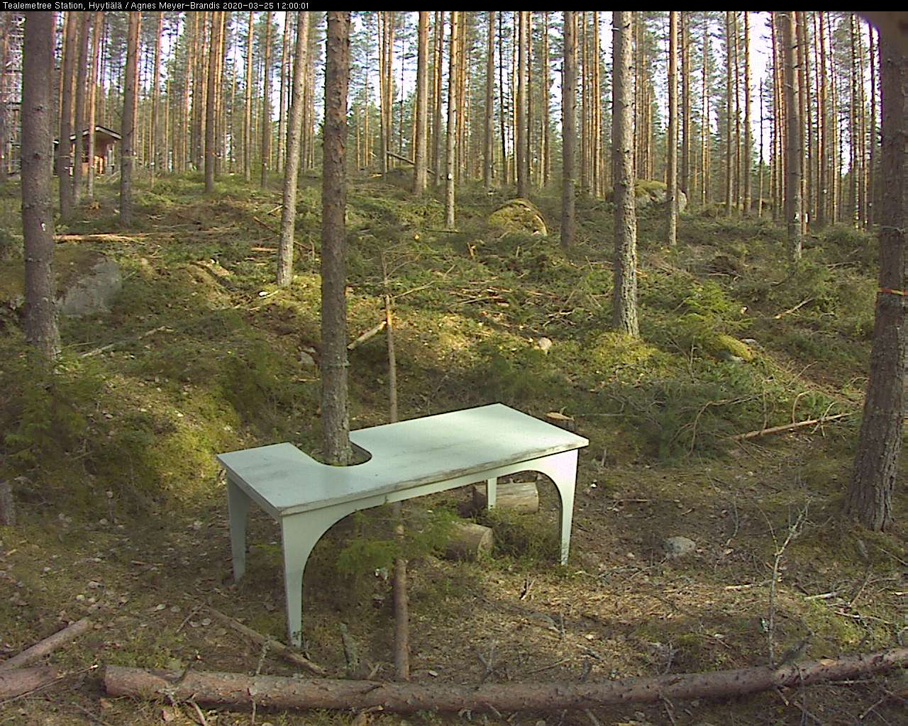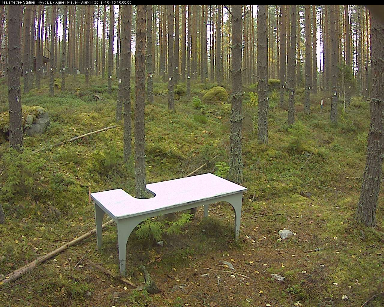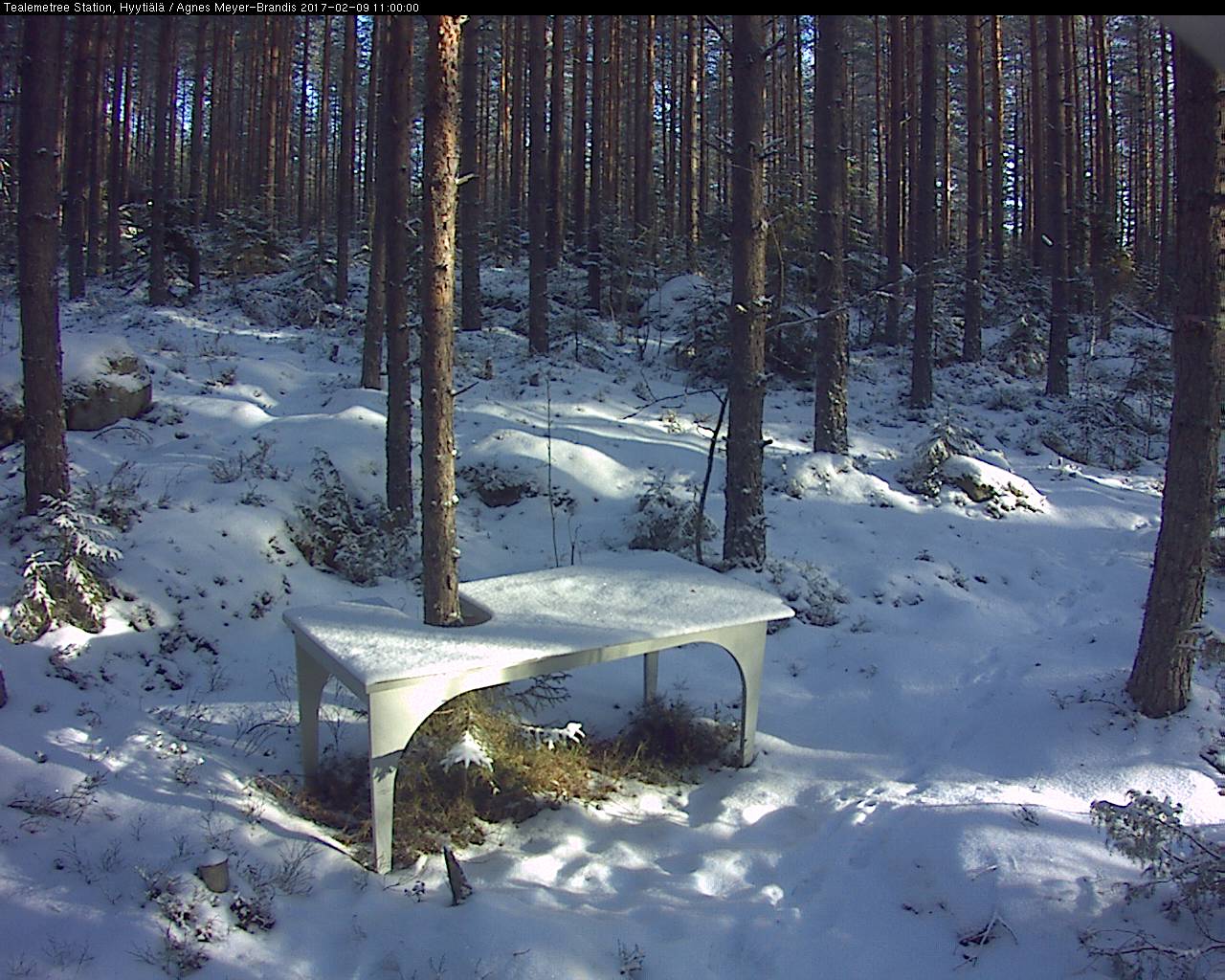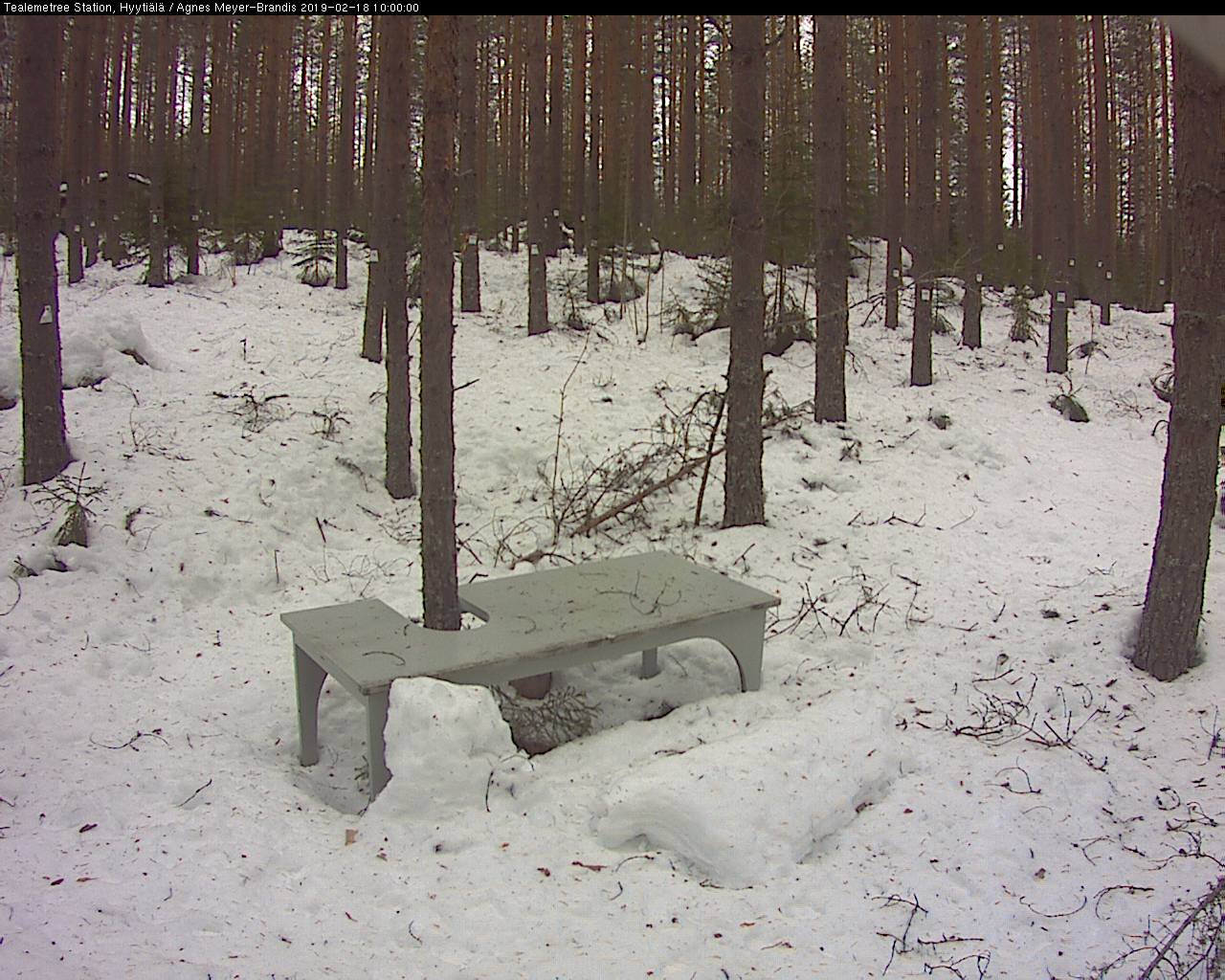 Agnes Meyer-Brandiksen työ Hyytiälässä alkoi tutustumalla aseman muihin tutkijoihin. Pystyäkseen tapaamaan ihmisiä metsässä, hän rakensi pöydän, josta muodostui kohtauspiste ja paikka teehetkille Agneksen ja puun kanssa.