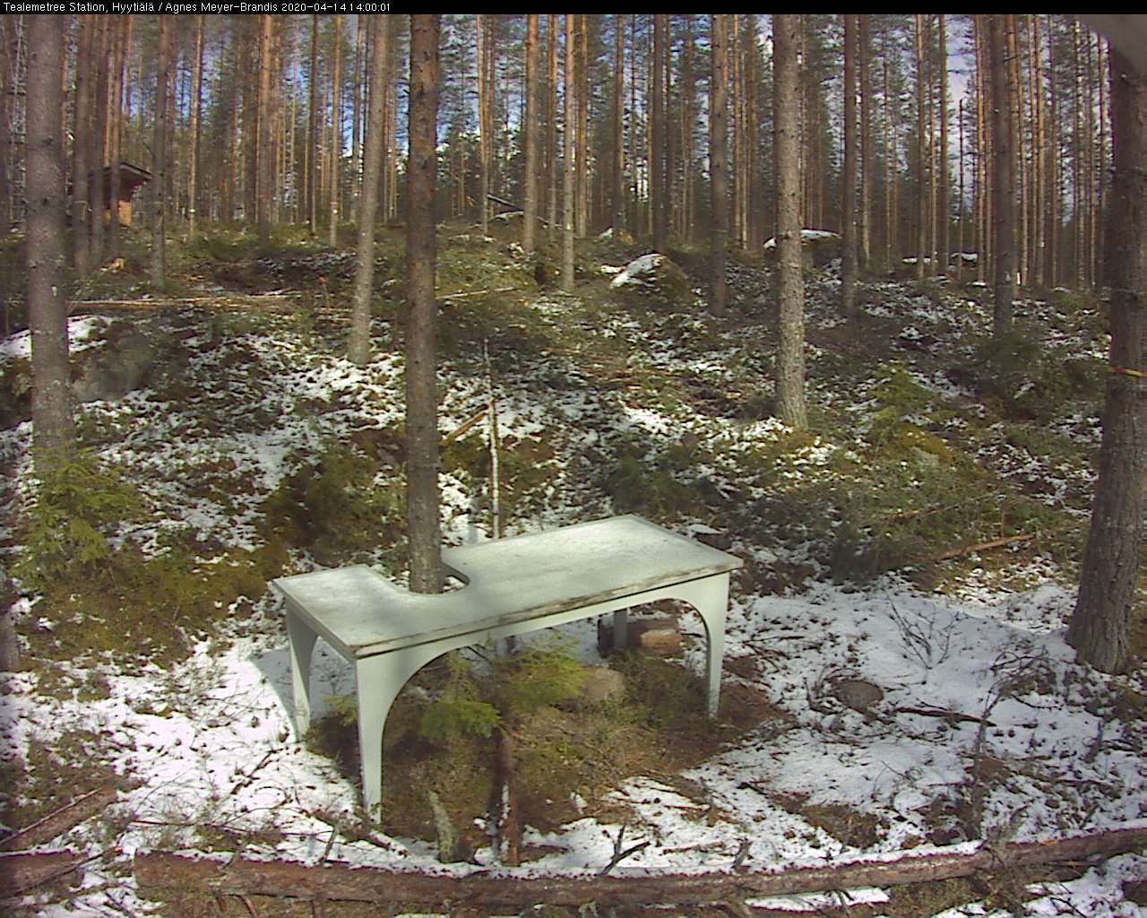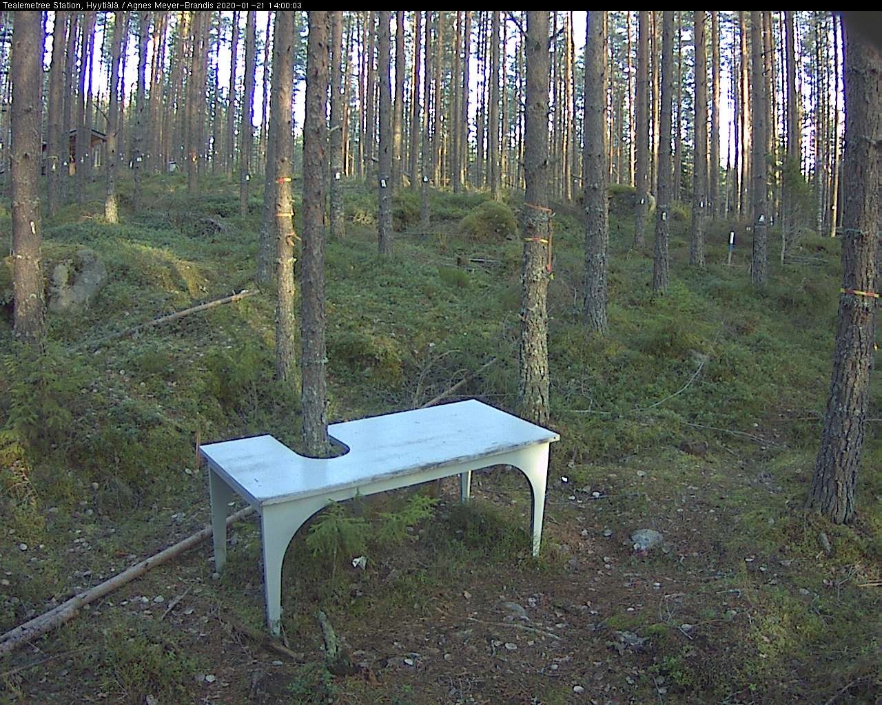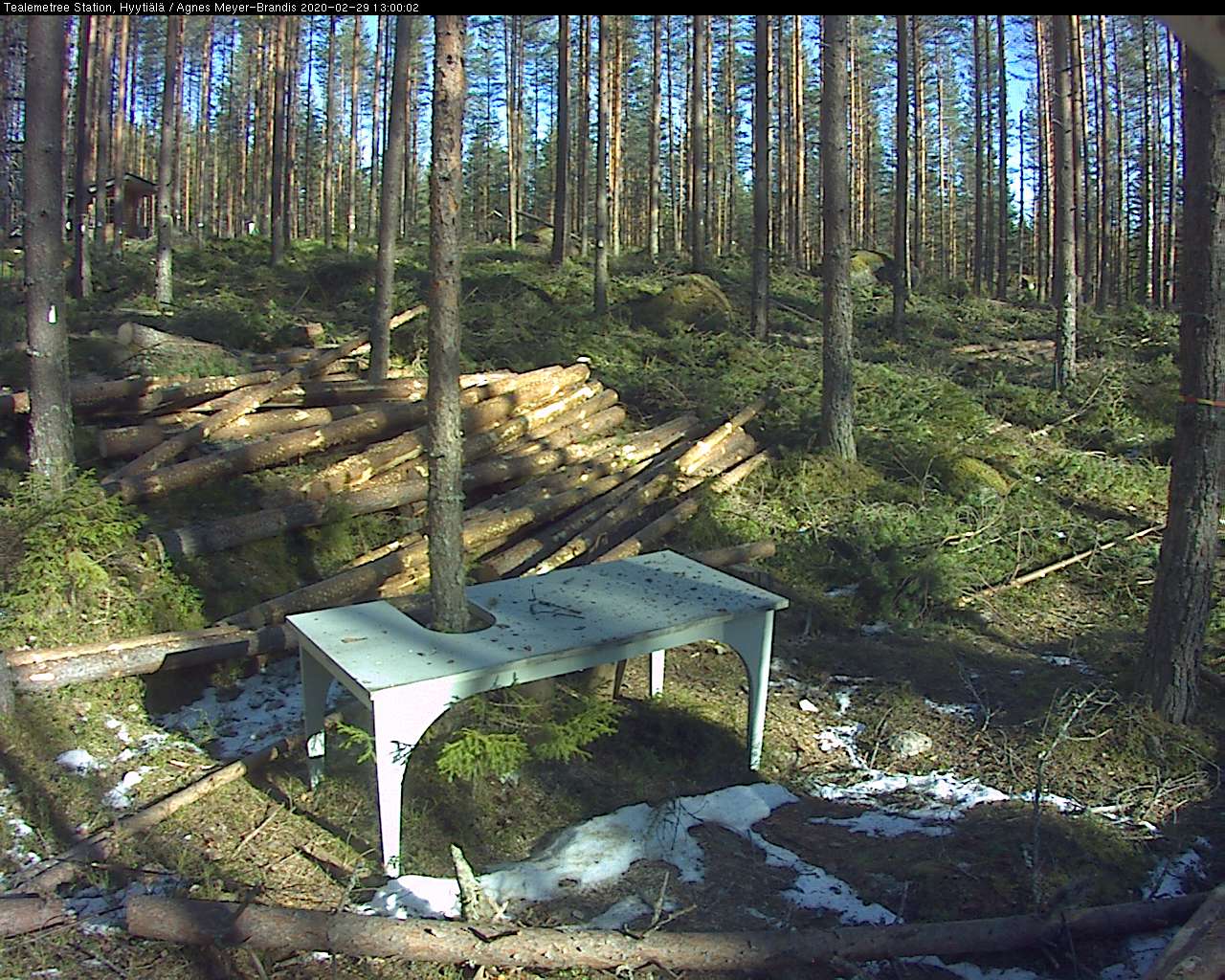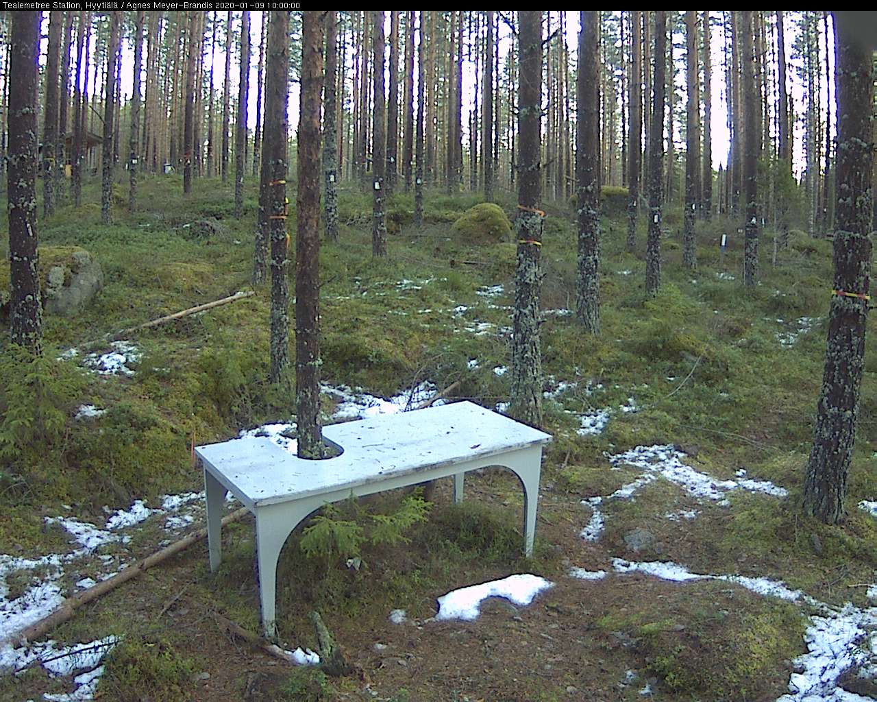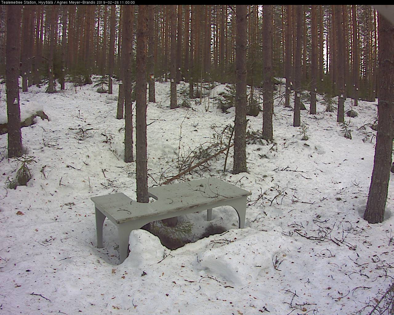Agnes Meyer-Brandiksen työ Hyytiälässä alkoi tutustumalla aseman muihin tutkijoihin. Pystyäkseen tapaamaan ihmisiä metsässä, hän rakensi pöydän, josta muodostui kohtauspiste ja paikka teehetkille Agneksen ja puun kanssa.
