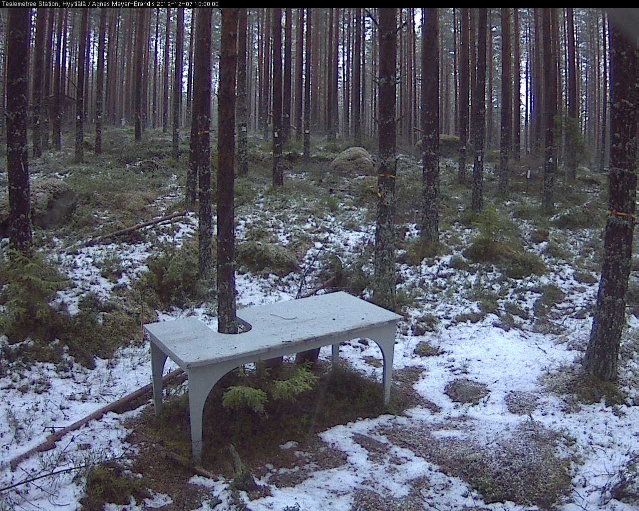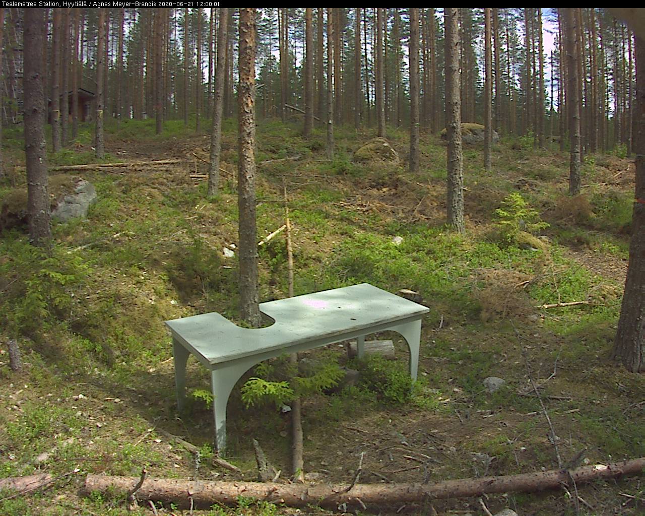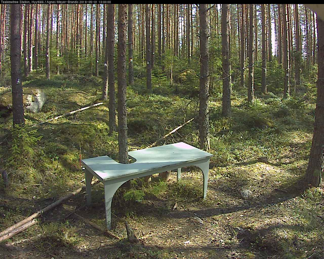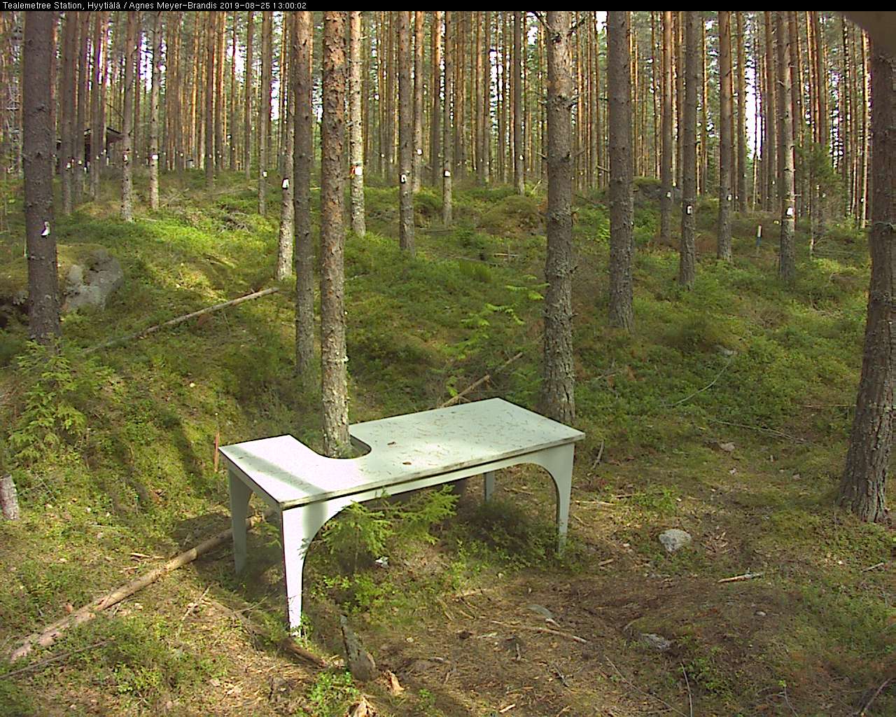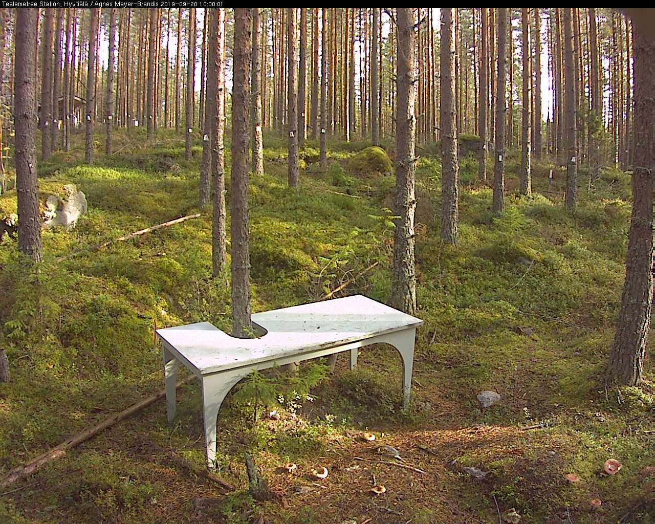 Agnes Meyer-Brandiksen työ Hyytiälässä alkoi tutustumalla aseman muihin tutkijoihin. Pystyäkseen tapaamaan ihmisiä metsässä, hän rakensi pöydän, josta muodostui kohtauspiste ja paikka teehetkille Agneksen ja puun kanssa.