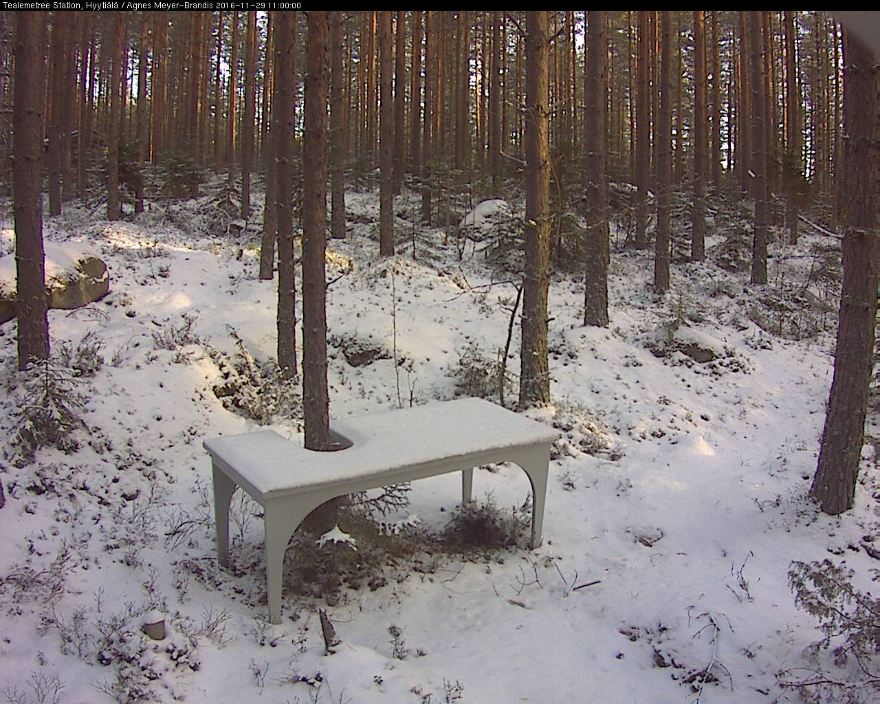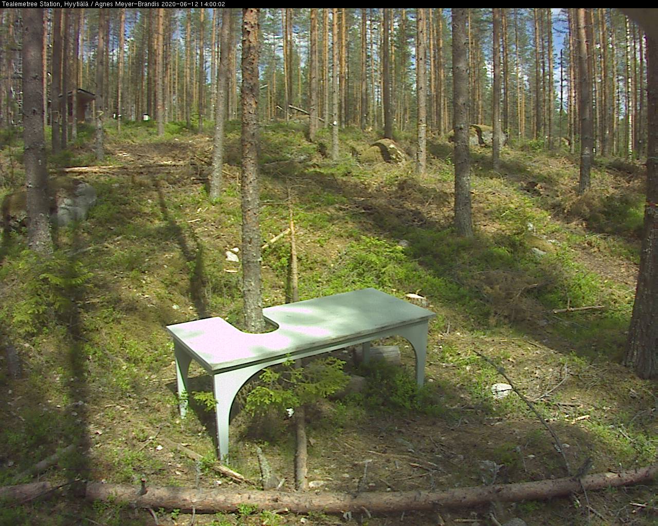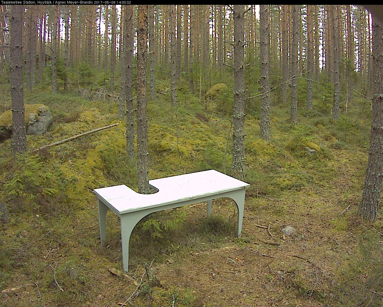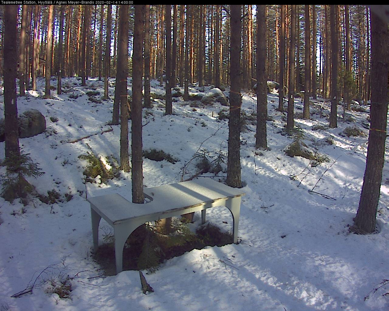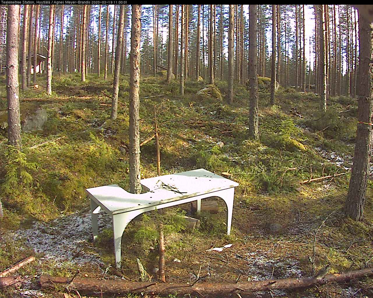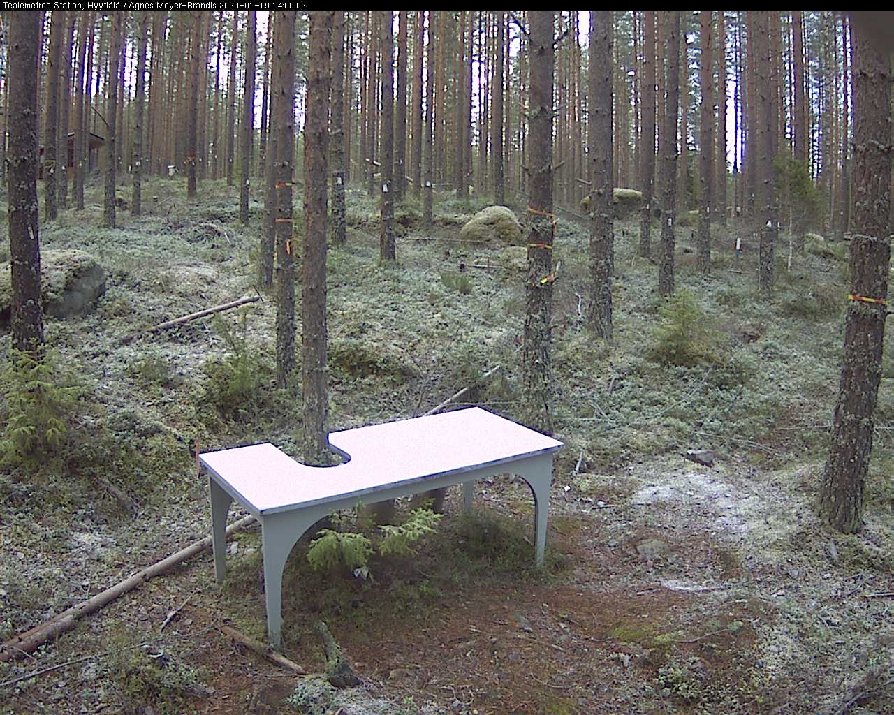 Agnes Meyer-Brandiksen työ Hyytiälässä alkoi tutustumalla aseman muihin tutkijoihin. Pystyäkseen tapaamaan ihmisiä metsässä, hän rakensi pöydän, josta muodostui kohtauspiste ja paikka teehetkille Agneksen ja puun kanssa.