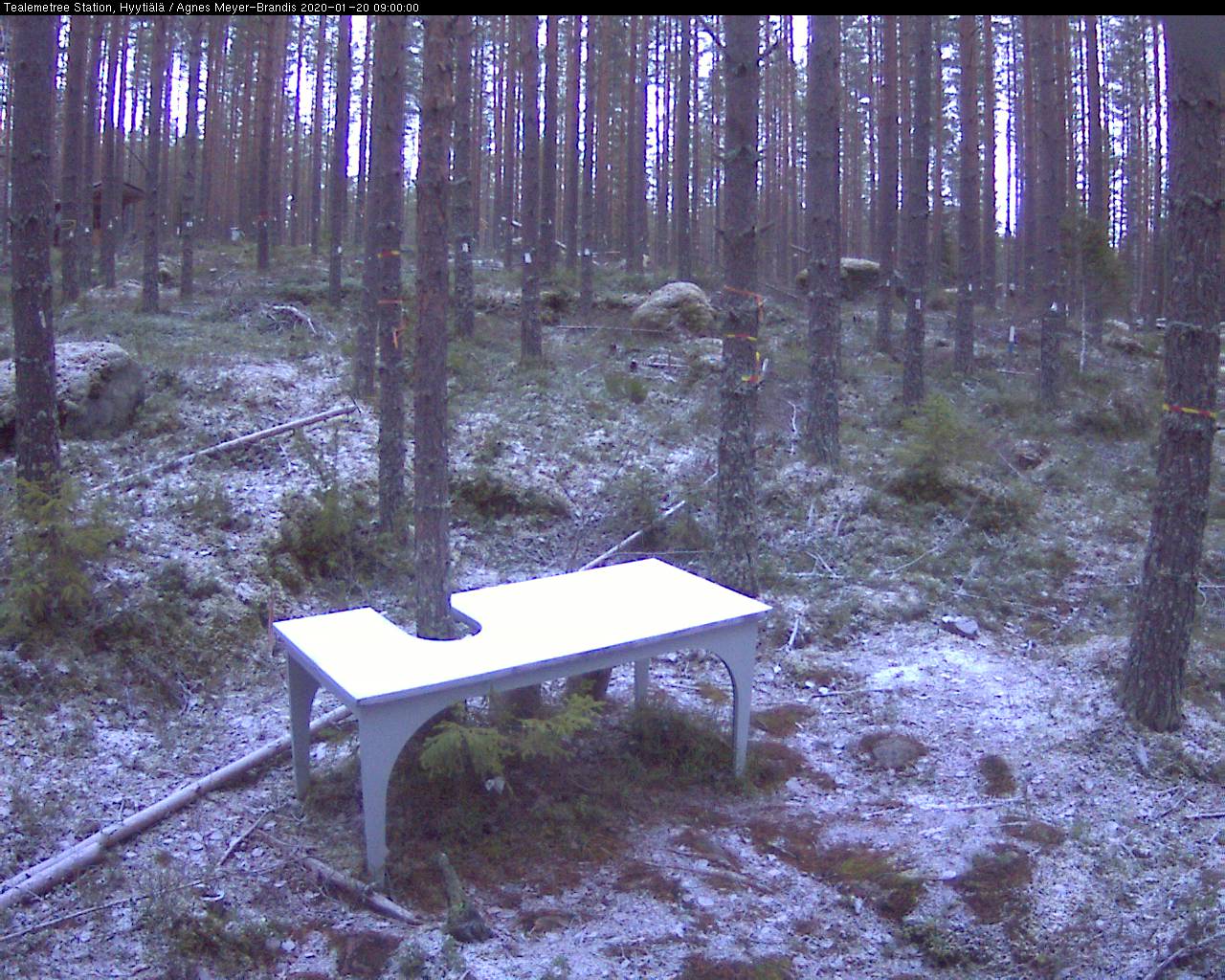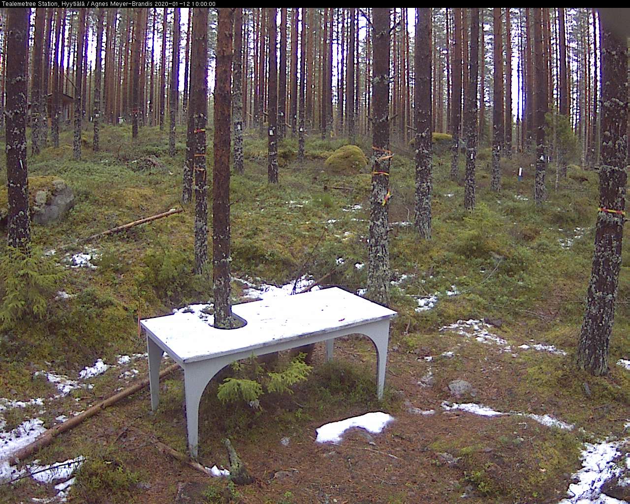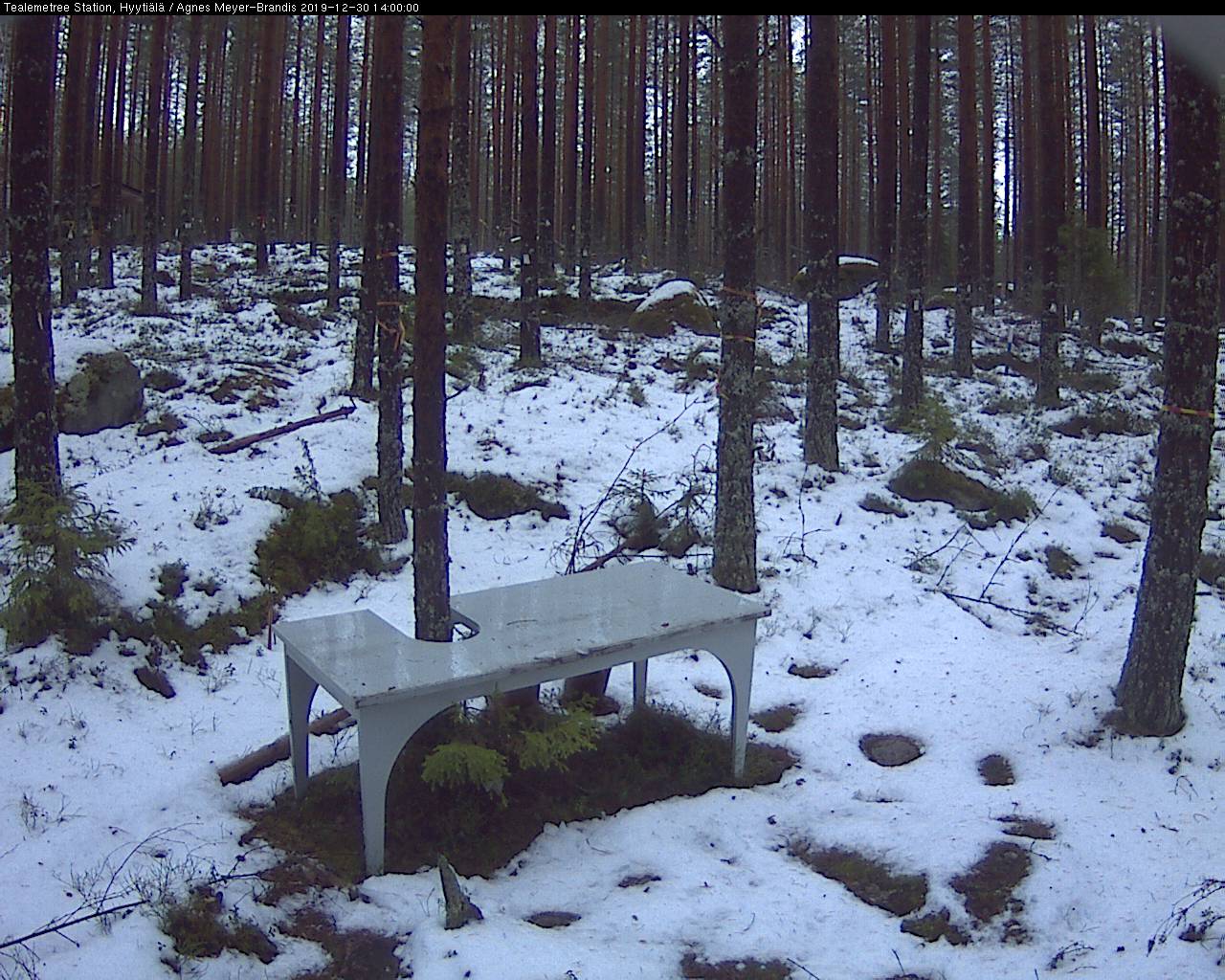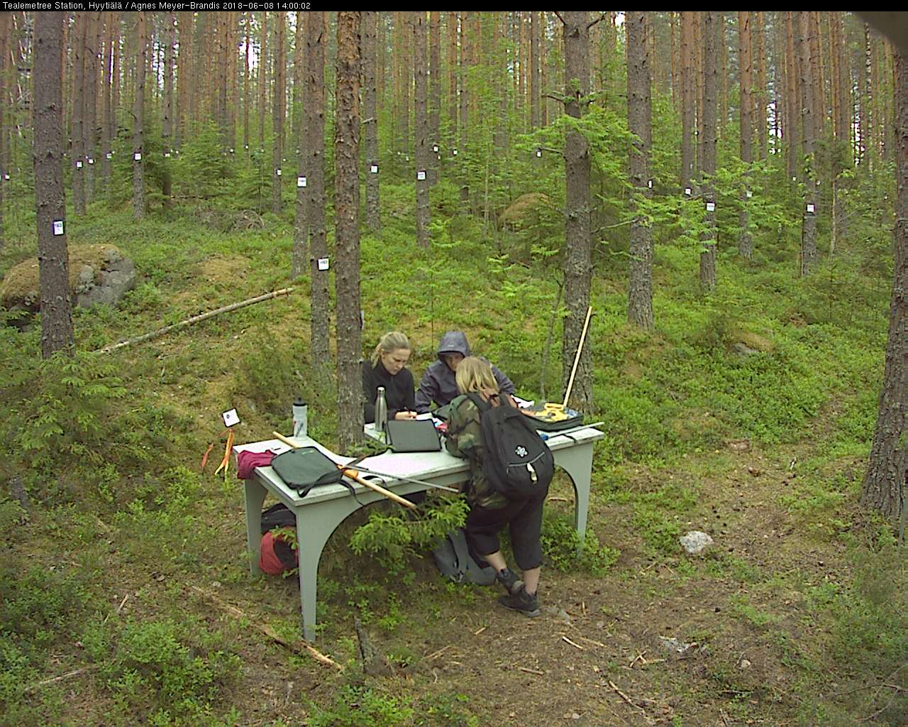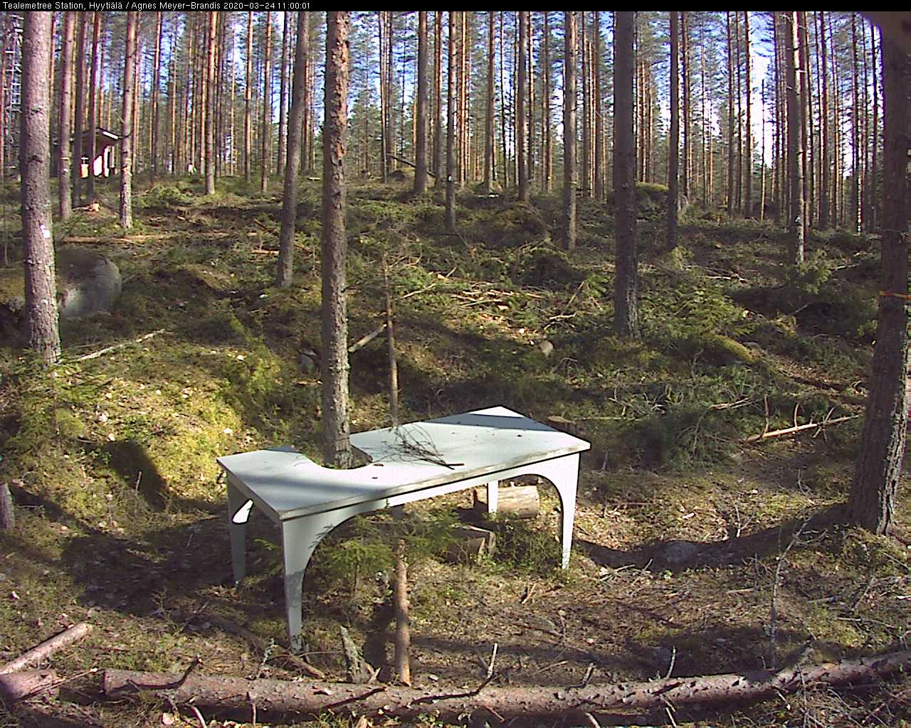 Agnes Meyer-Brandiksen työ Hyytiälässä alkoi tutustumalla aseman muihin tutkijoihin. Pystyäkseen tapaamaan ihmisiä metsässä, hän rakensi pöydän, josta muodostui kohtauspiste ja paikka teehetkille Agneksen ja puun kanssa.