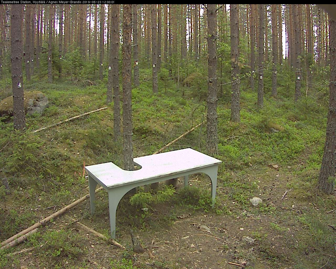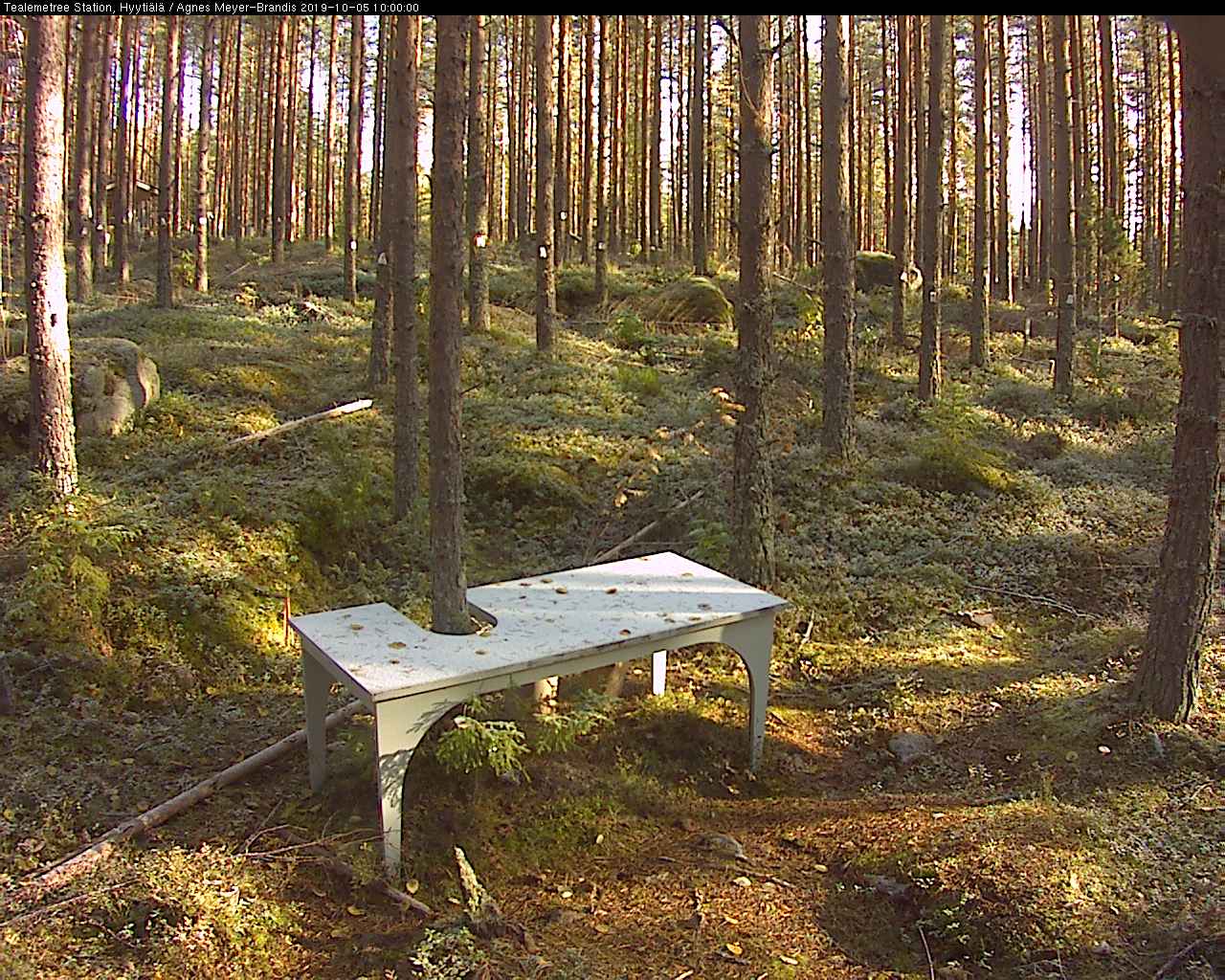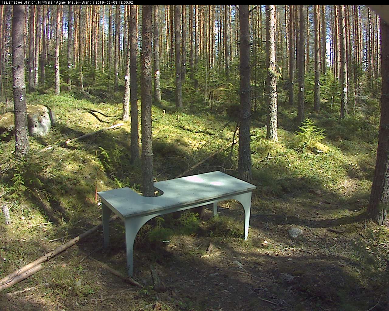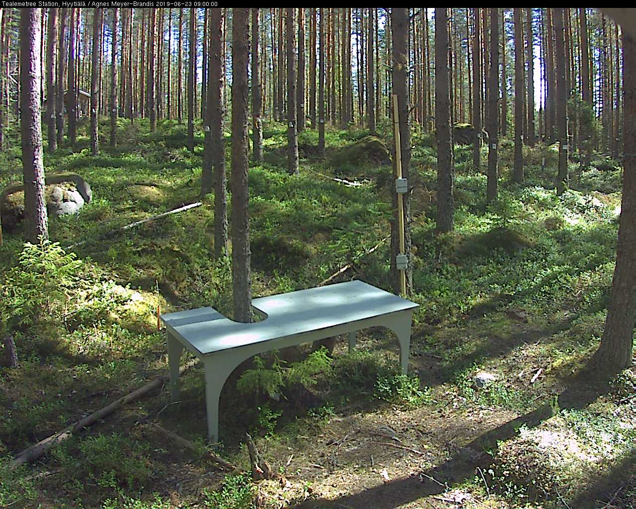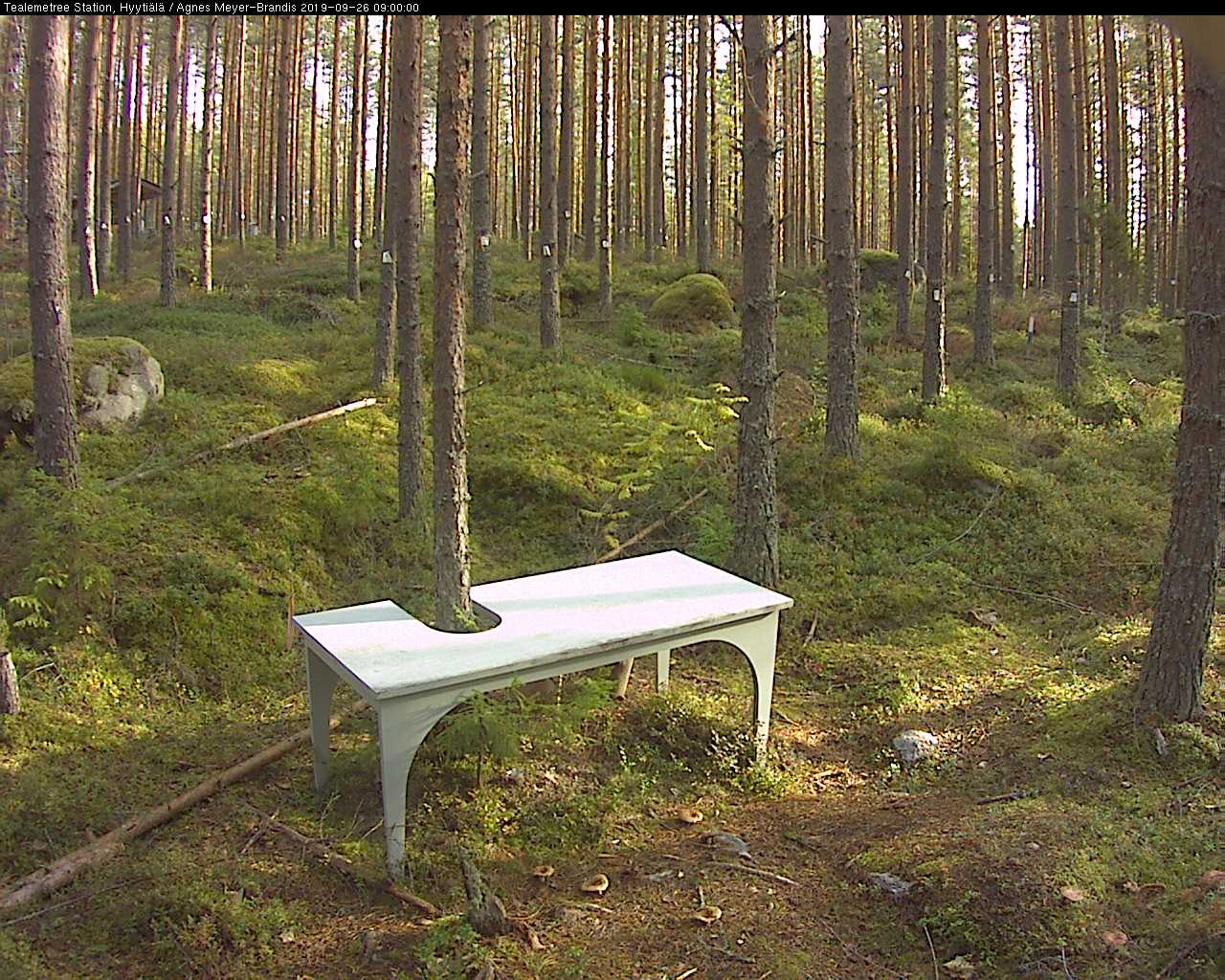 Agnes Meyer-Brandiksen työ Hyytiälässä alkoi tutustumalla aseman muihin tutkijoihin. Pystyäkseen tapaamaan ihmisiä metsässä, hän rakensi pöydän, josta muodostui kohtauspiste ja paikka teehetkille Agneksen ja puun kanssa.
