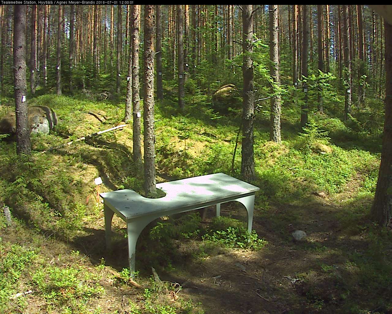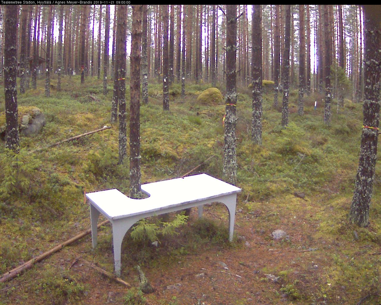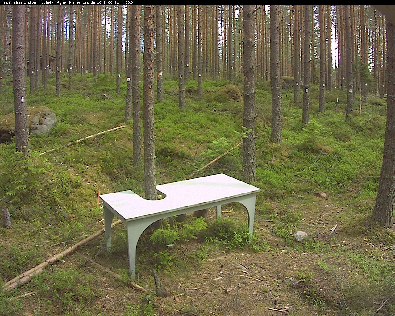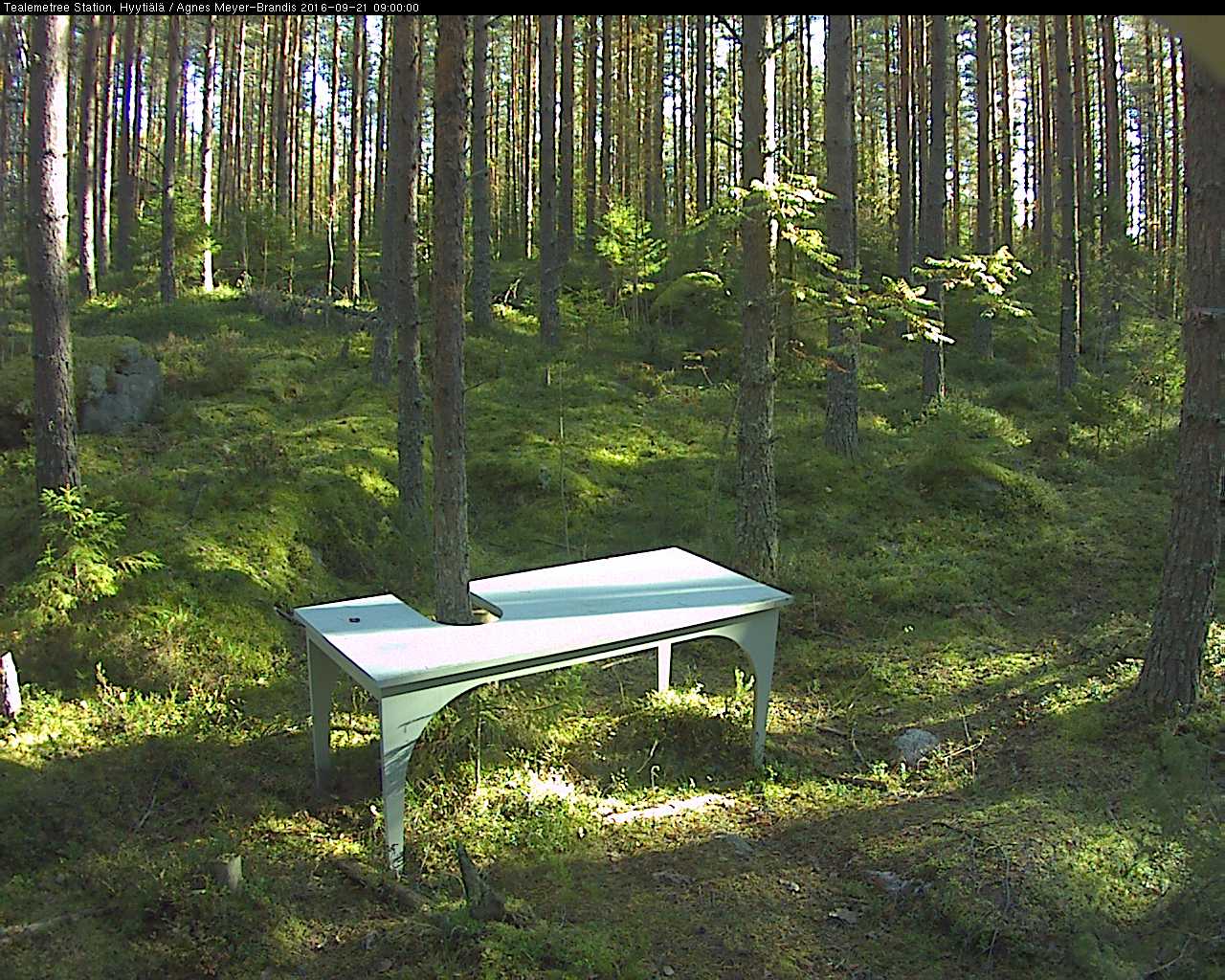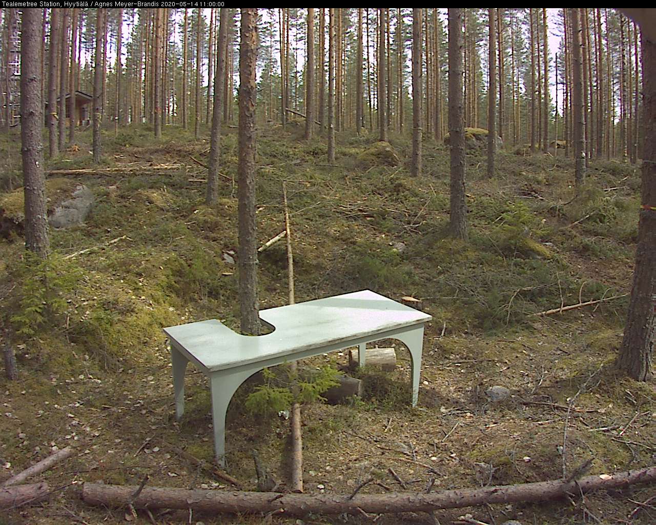 Agnes Meyer-Brandiksen työ Hyytiälässä alkoi tutustumalla aseman muihin tutkijoihin. Pystyäkseen tapaamaan ihmisiä metsässä, hän rakensi pöydän, josta muodostui kohtauspiste ja paikka teehetkille Agneksen ja puun kanssa.
