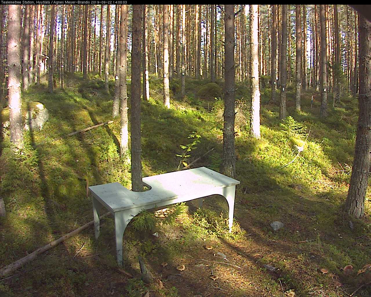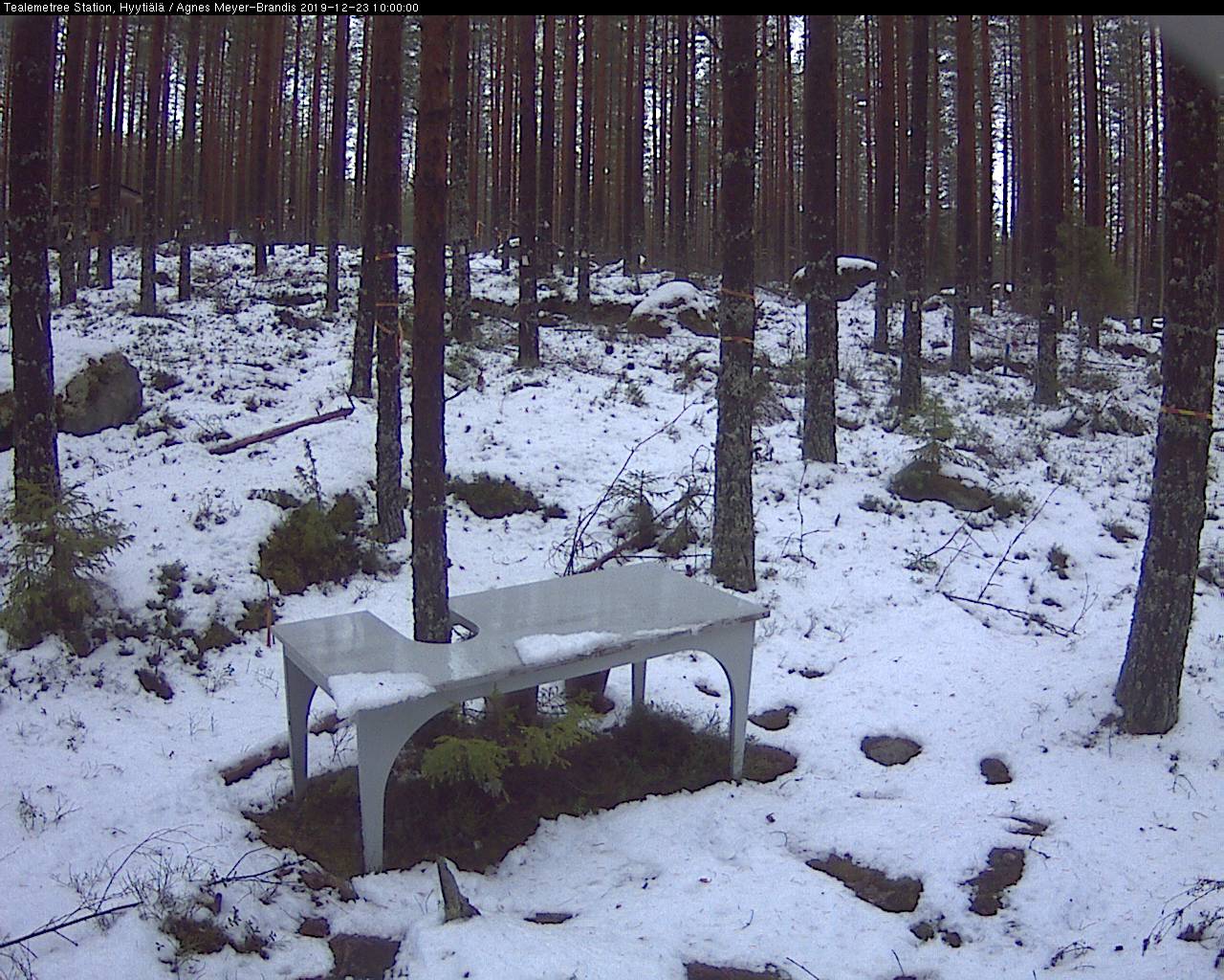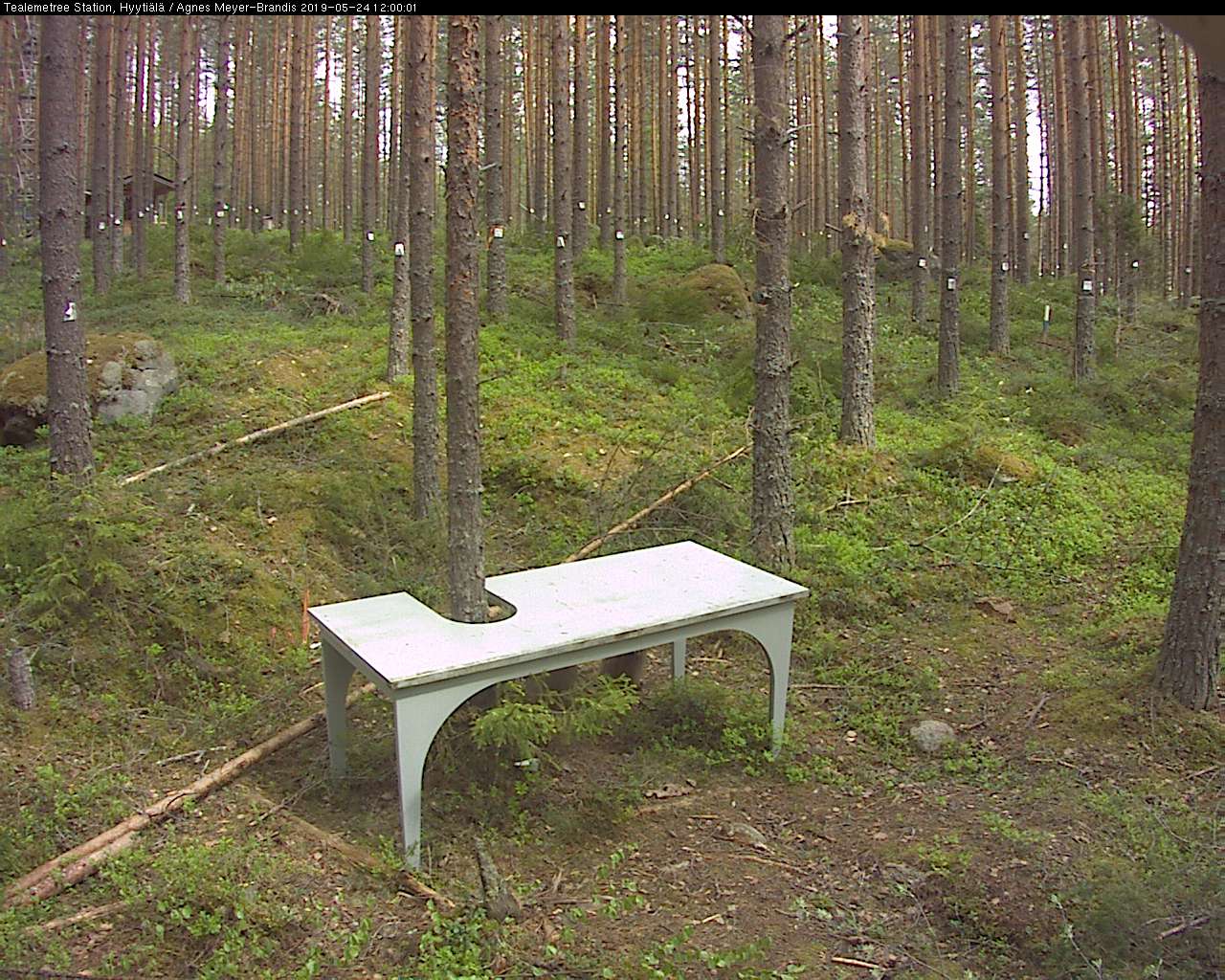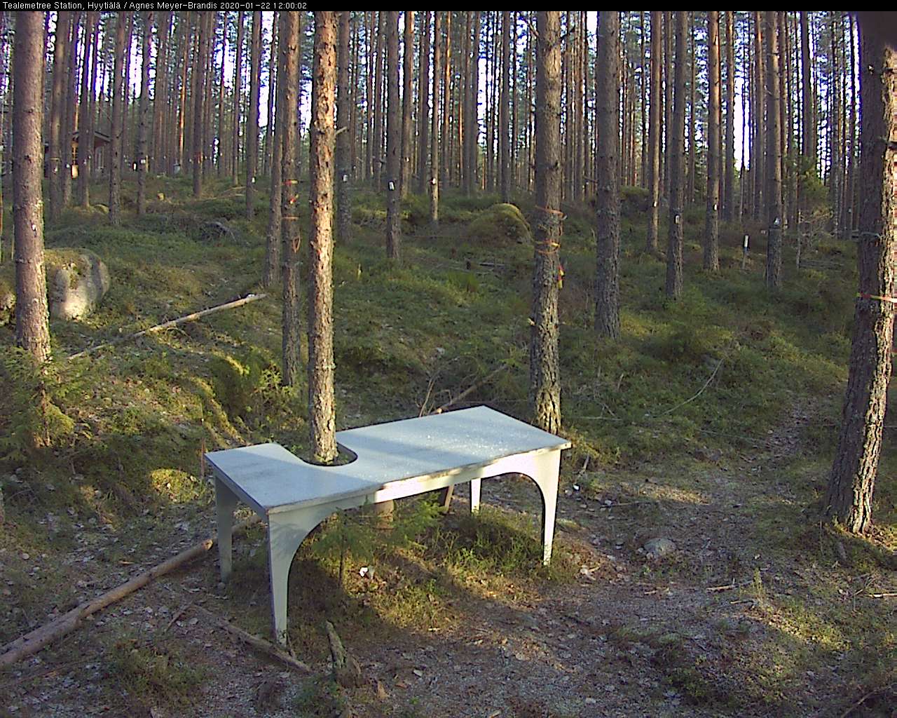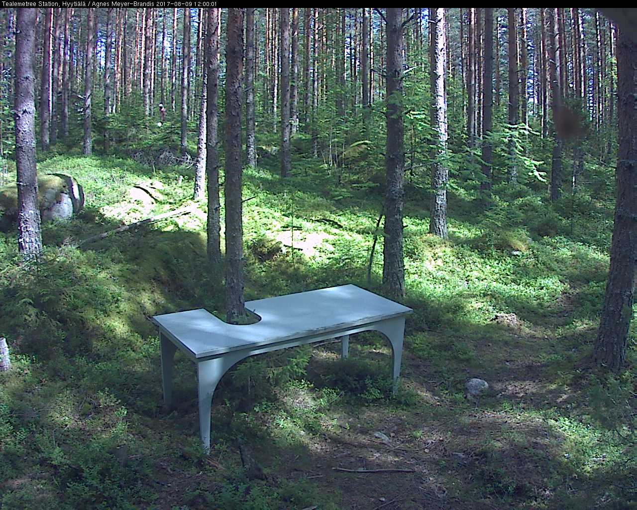 Agnes Meyer-Brandiksen työ Hyytiälässä alkoi tutustumalla aseman muihin tutkijoihin. Pystyäkseen tapaamaan ihmisiä metsässä, hän rakensi pöydän, josta muodostui kohtauspiste ja paikka teehetkille Agneksen ja puun kanssa.