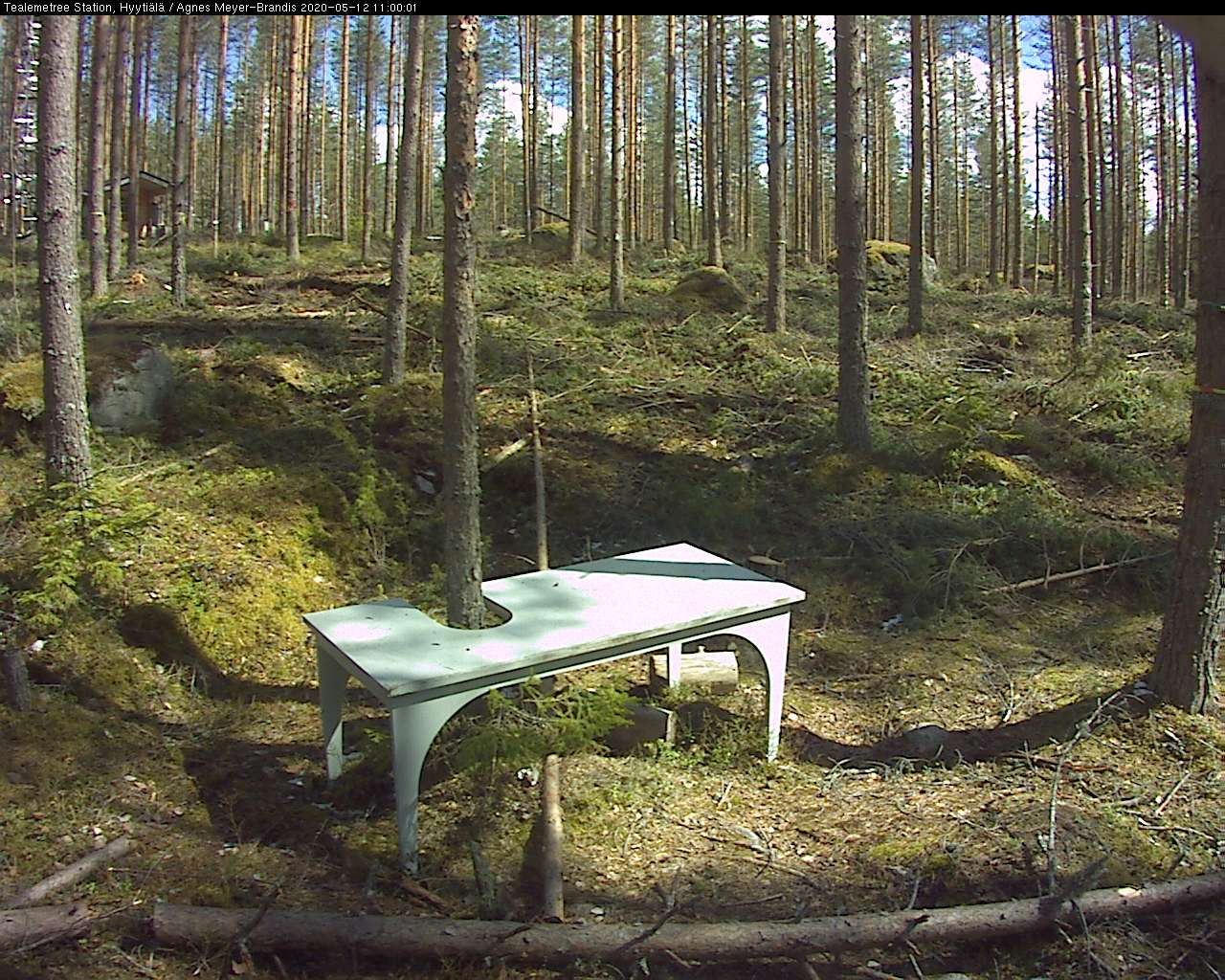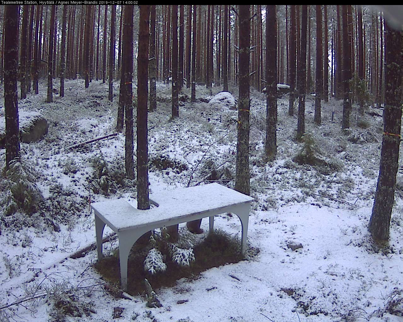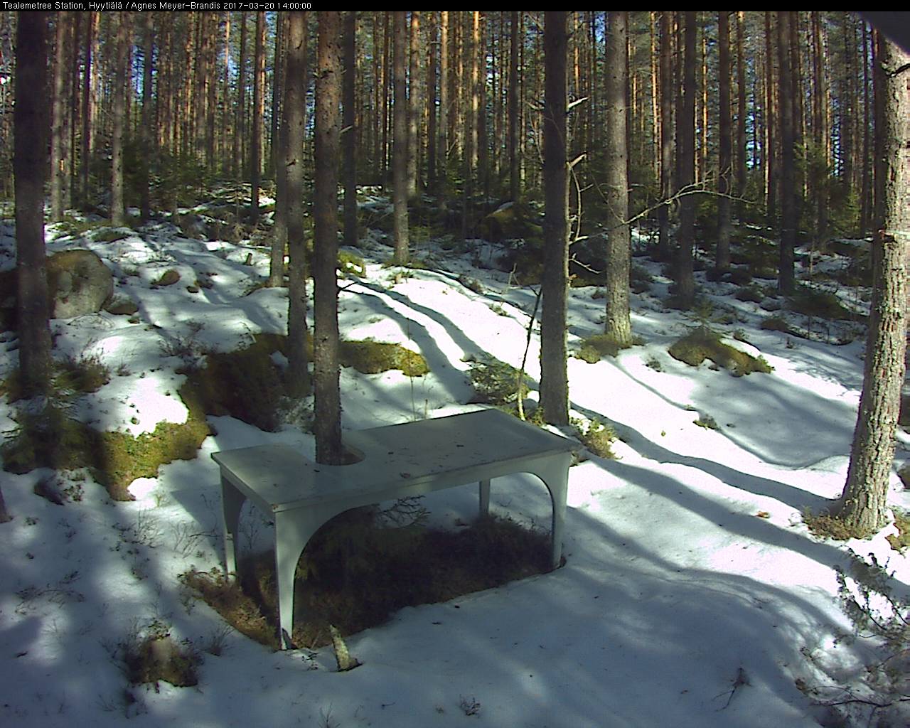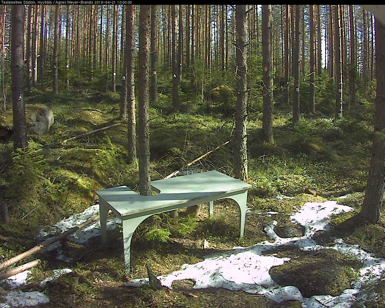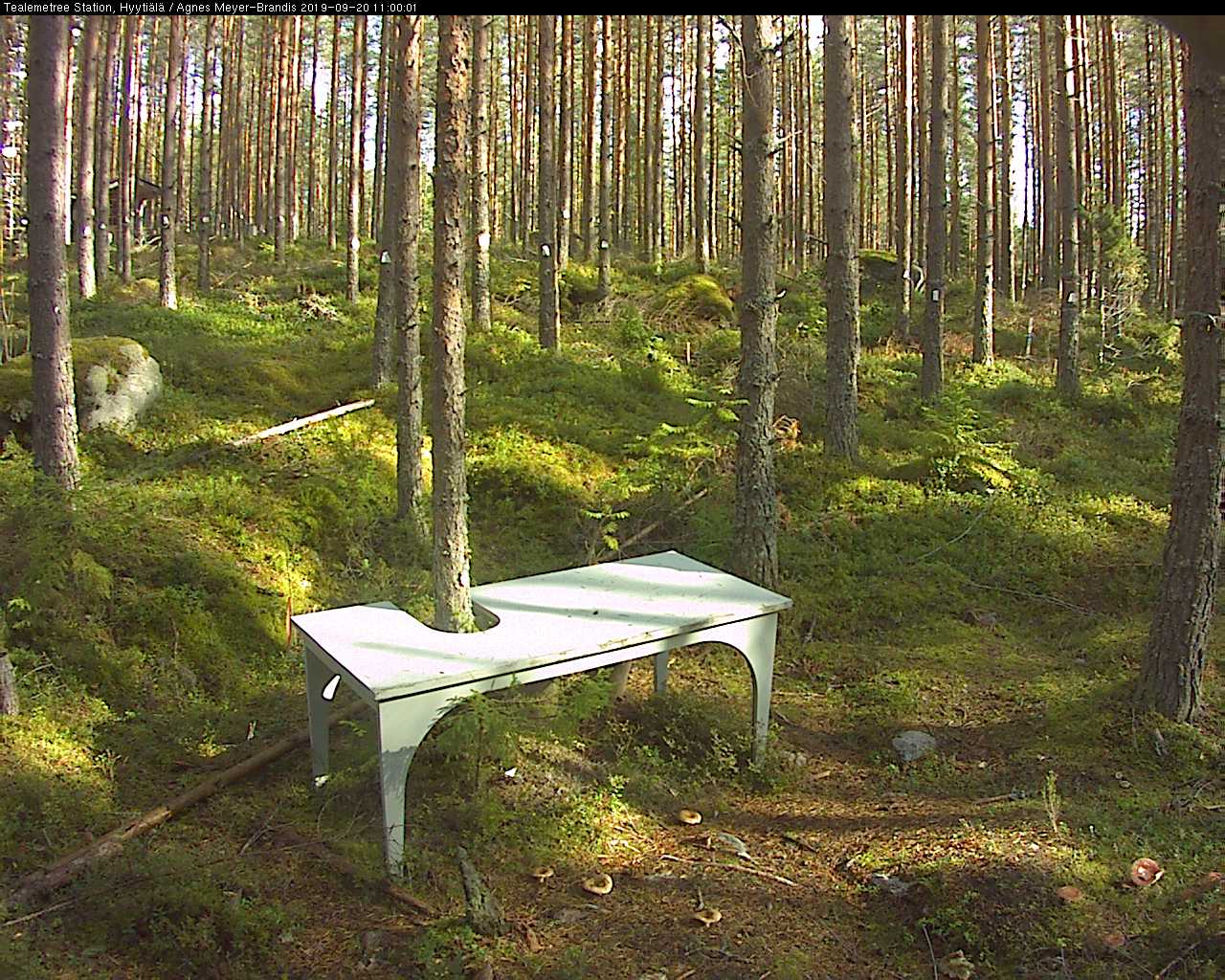 Agnes Meyer-Brandiksen työ Hyytiälässä alkoi tutustumalla aseman muihin tutkijoihin. Pystyäkseen tapaamaan ihmisiä metsässä, hän rakensi pöydän, josta muodostui kohtauspiste ja paikka teehetkille Agneksen ja puun kanssa.