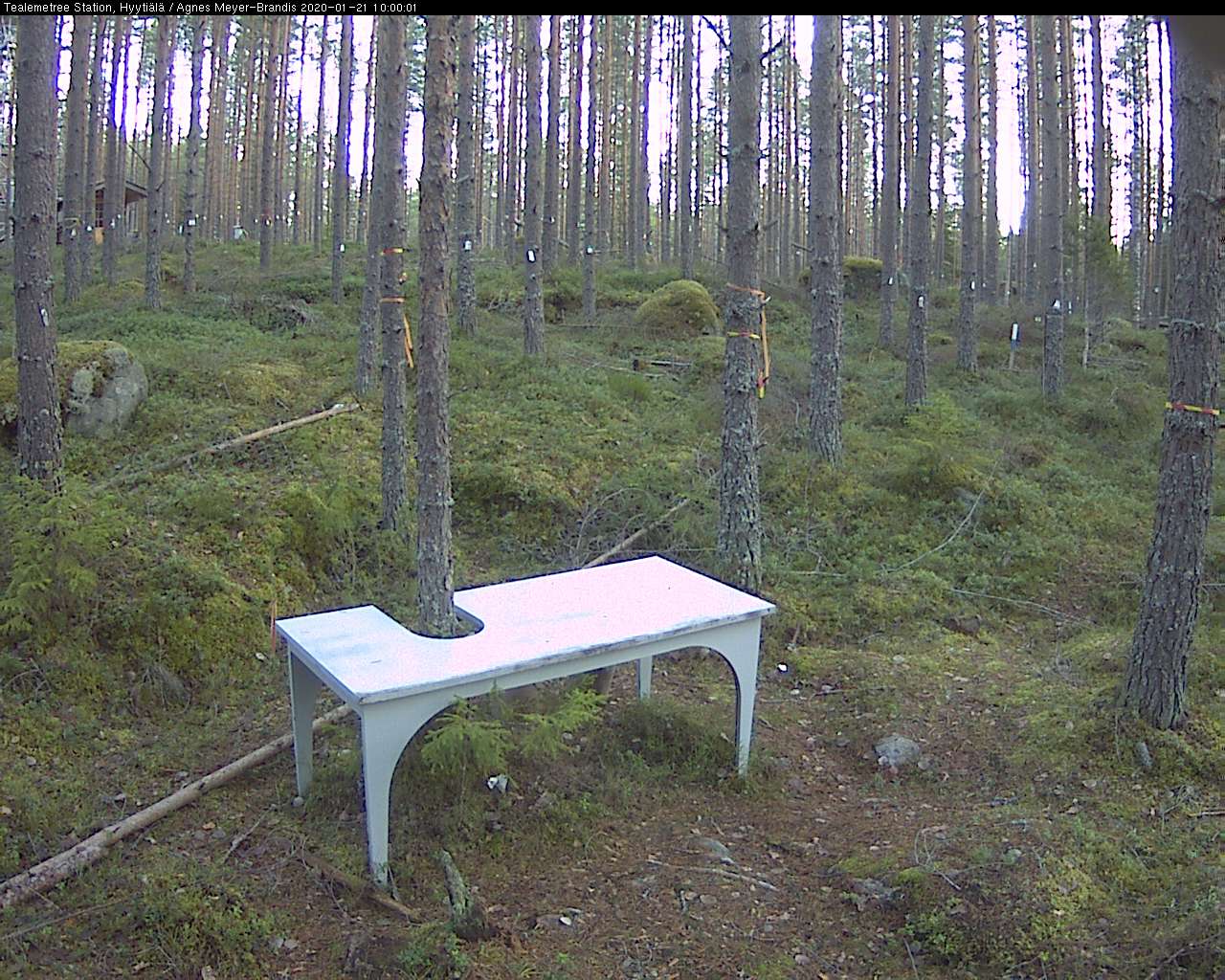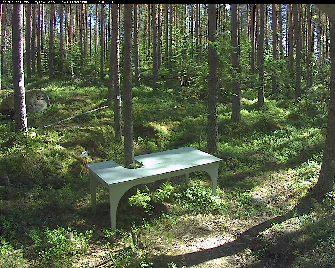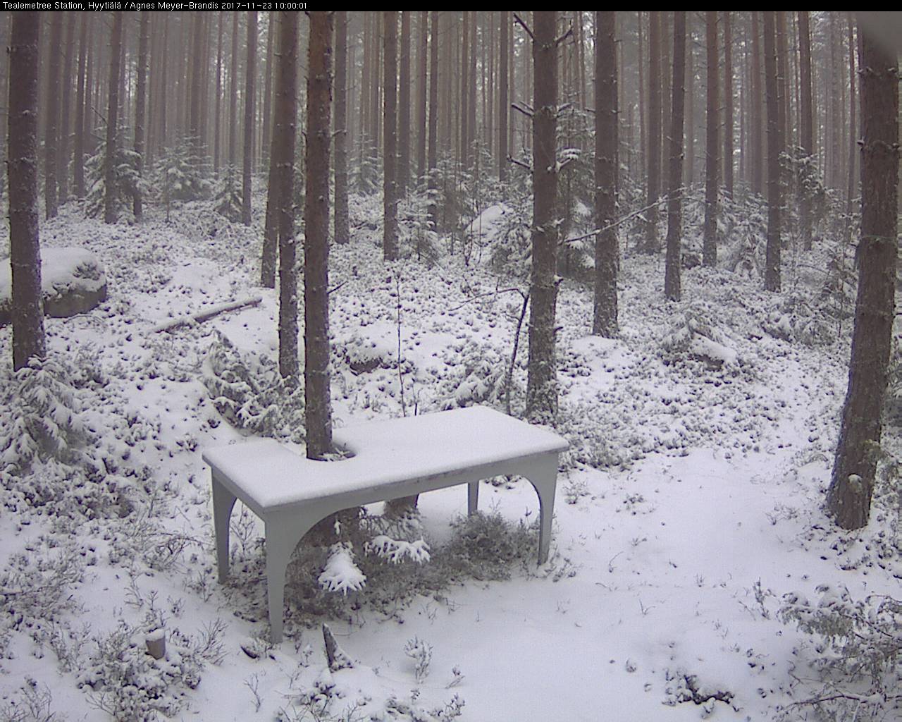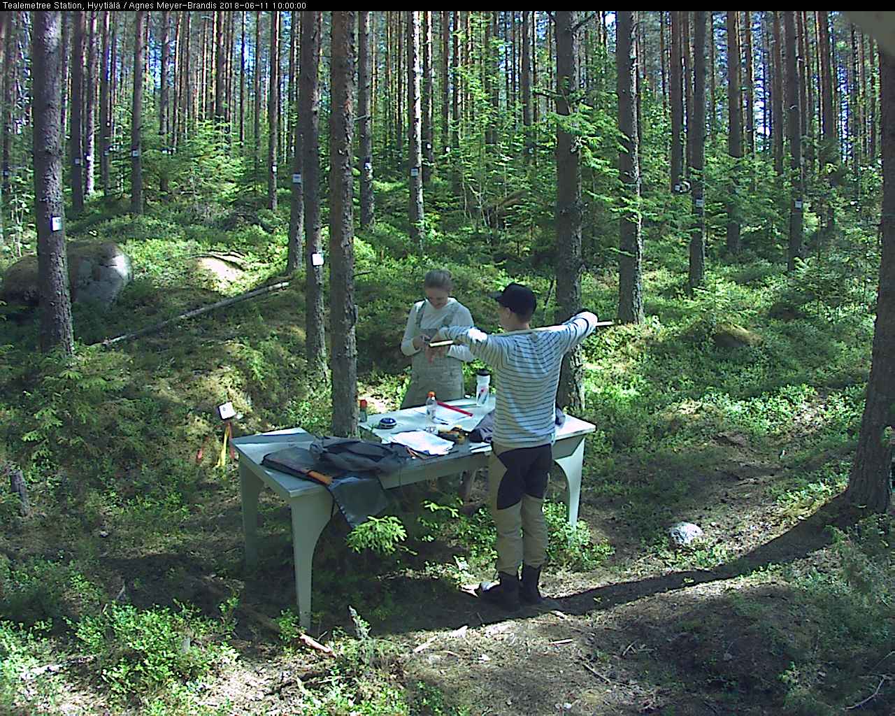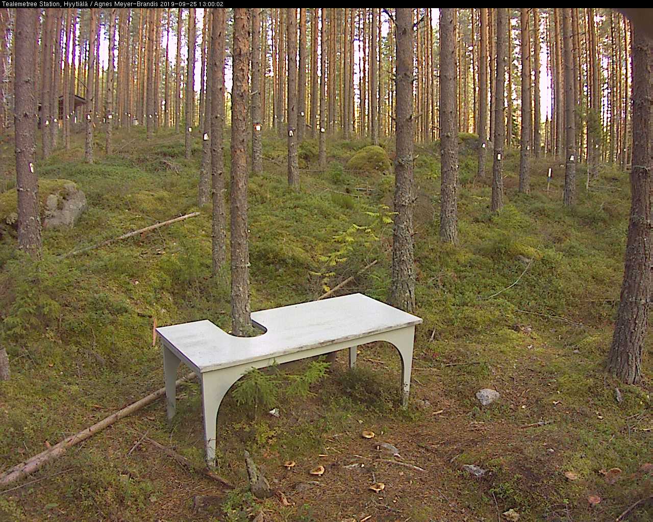 Agnes Meyer-Brandiksen työ Hyytiälässä alkoi tutustumalla aseman muihin tutkijoihin. Pystyäkseen tapaamaan ihmisiä metsässä, hän rakensi pöydän, josta muodostui kohtauspiste ja paikka teehetkille Agneksen ja puun kanssa.