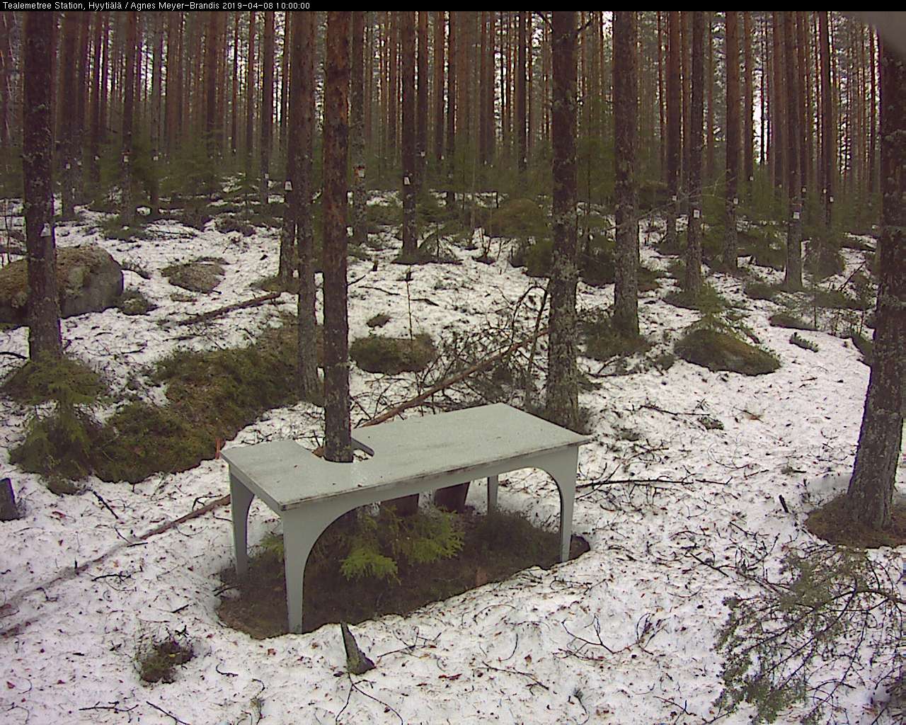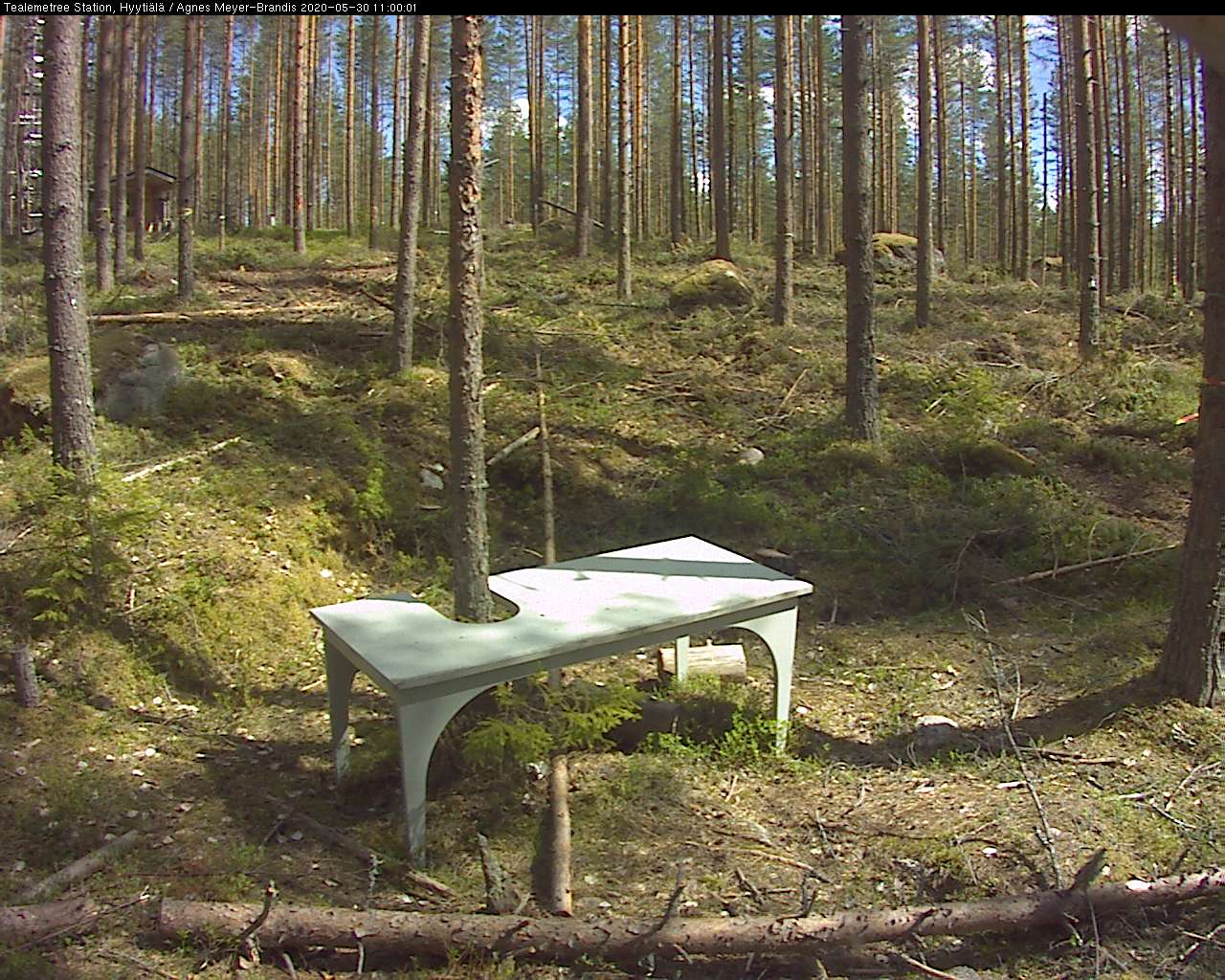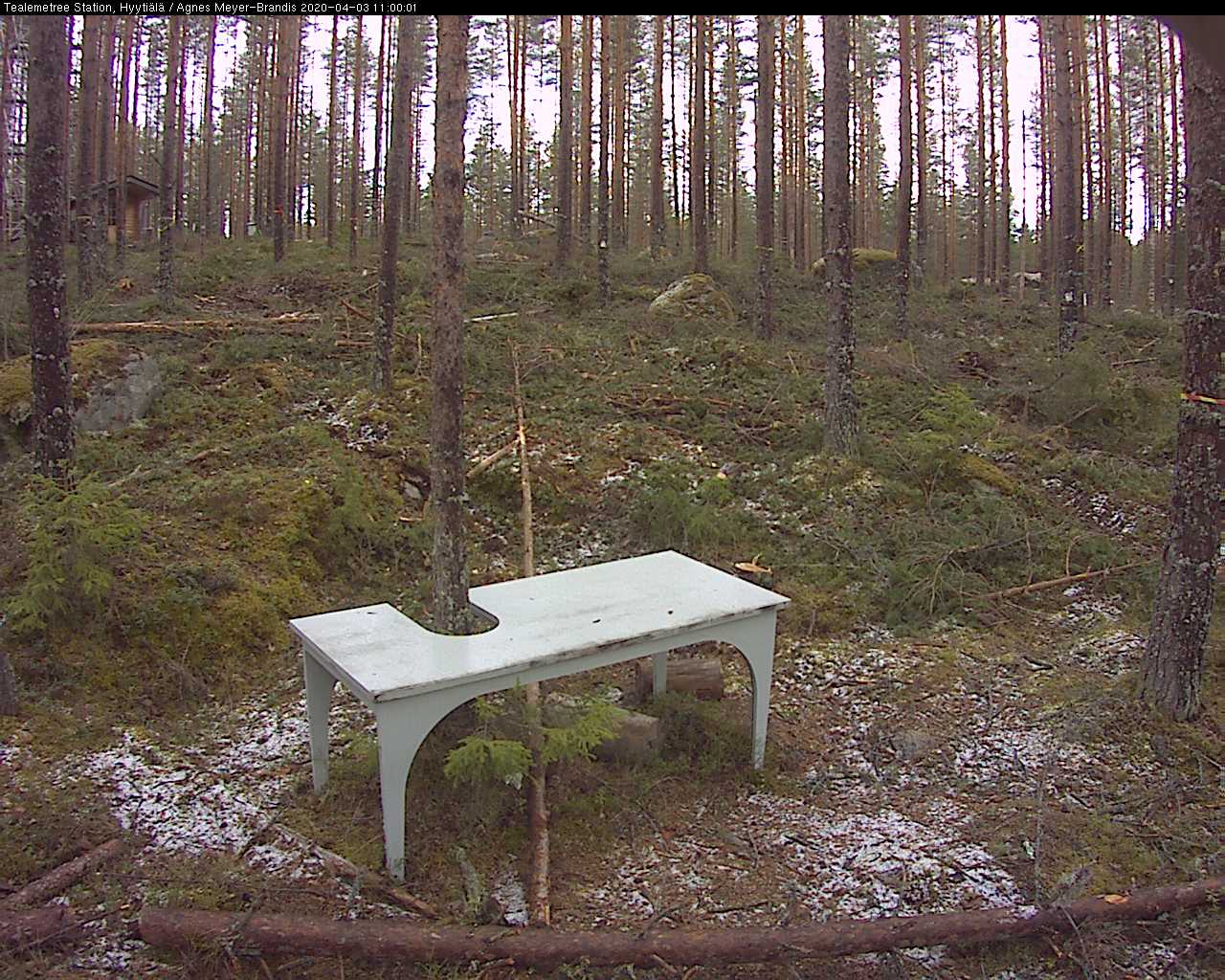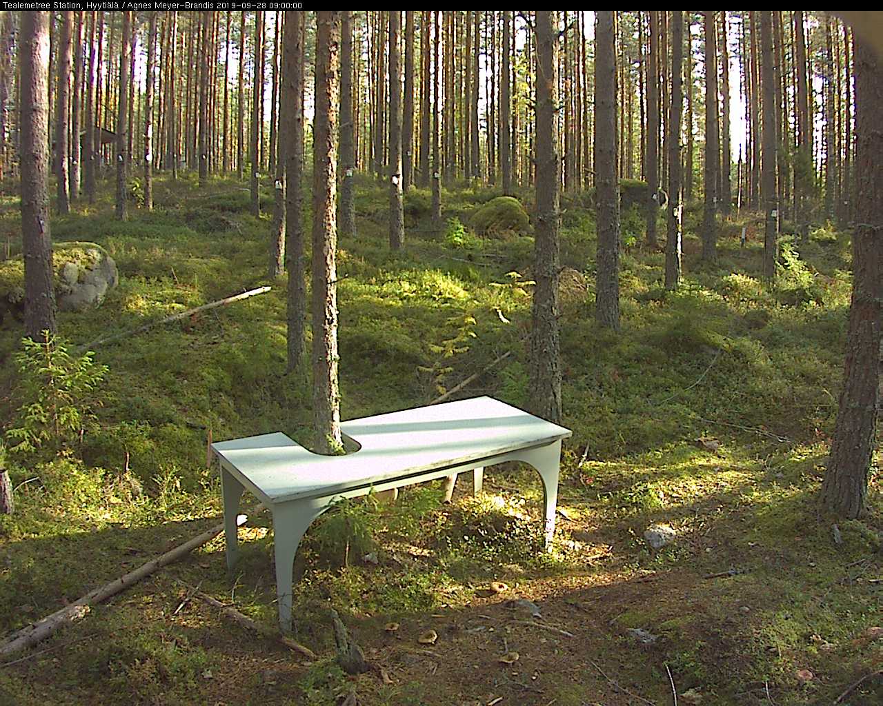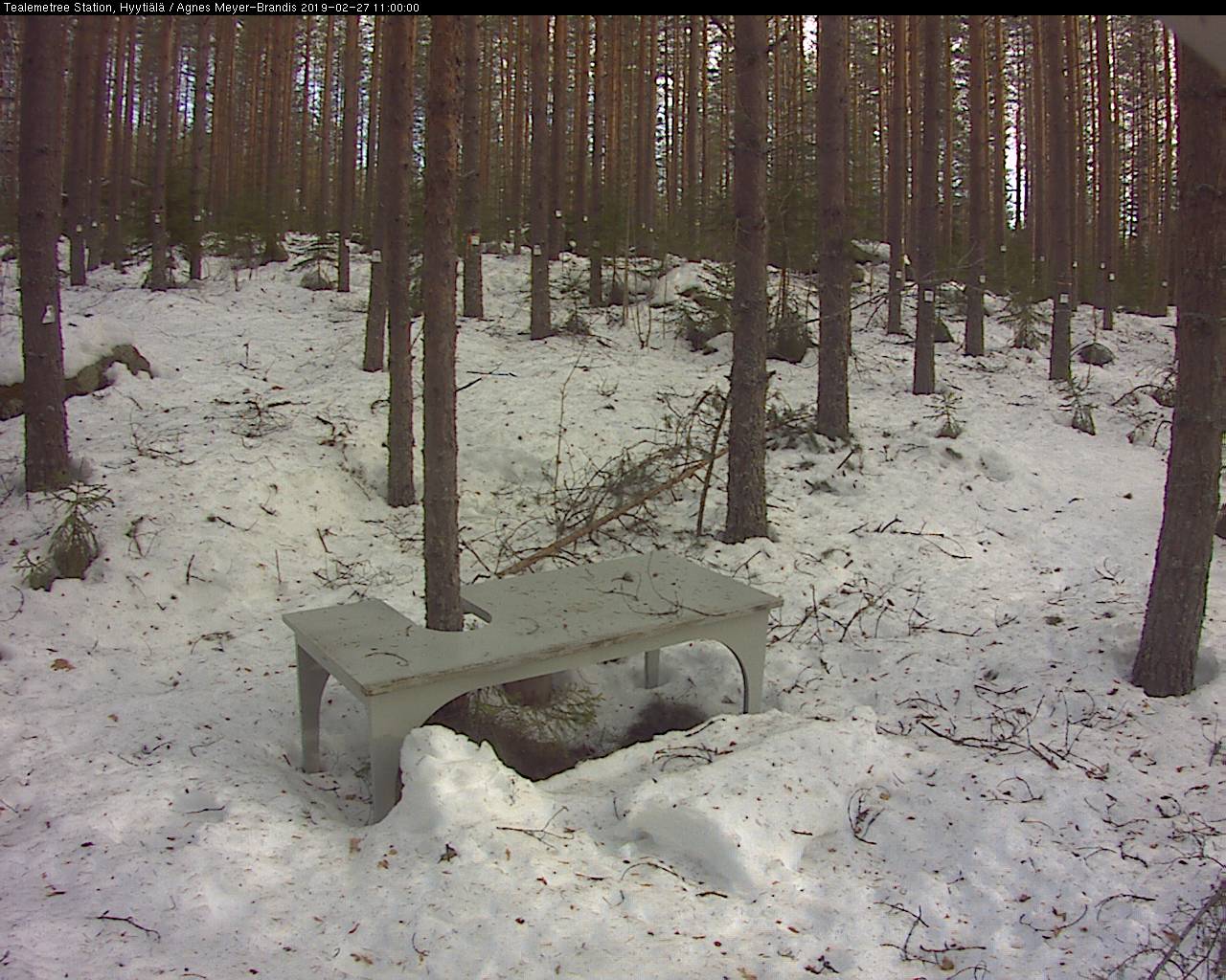 Agnes Meyer-Brandiksen työ Hyytiälässä alkoi tutustumalla aseman muihin tutkijoihin. Pystyäkseen tapaamaan ihmisiä metsässä, hän rakensi pöydän, josta muodostui kohtauspiste ja paikka teehetkille Agneksen ja puun kanssa.