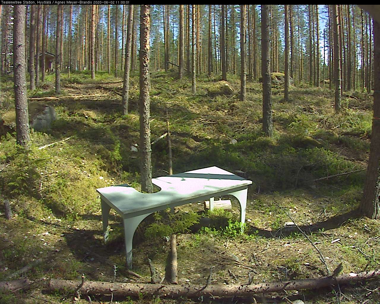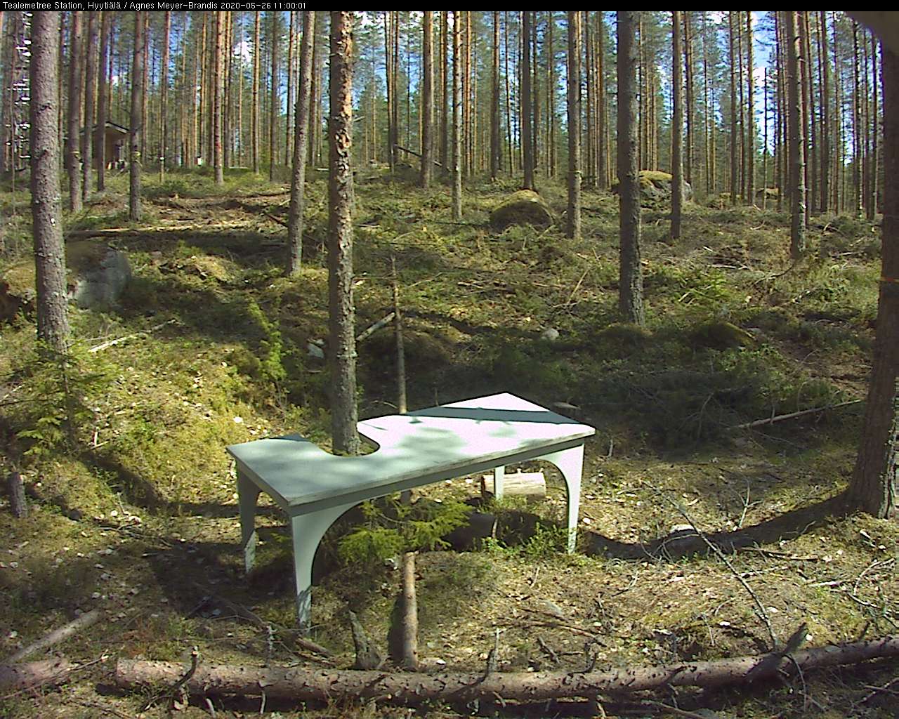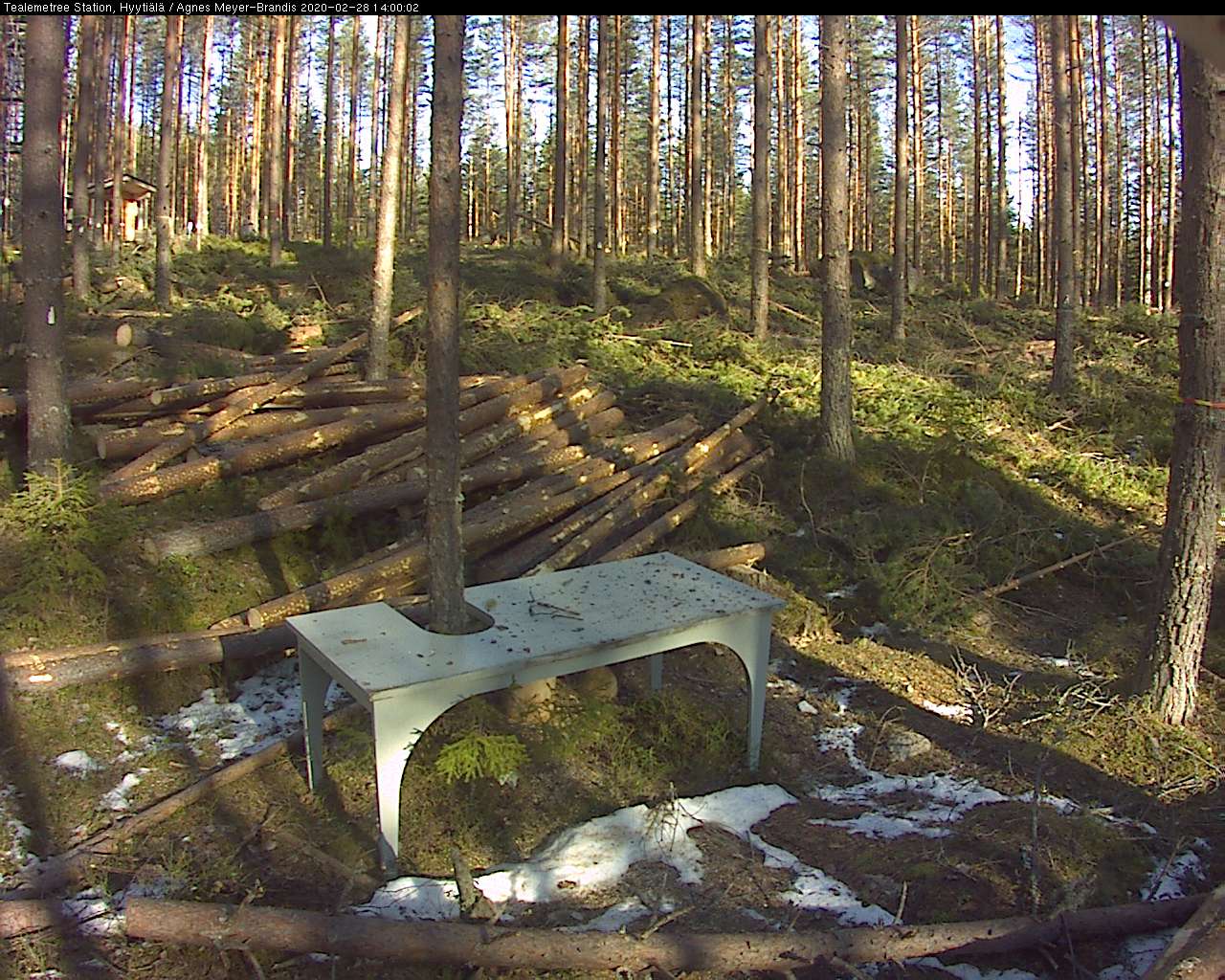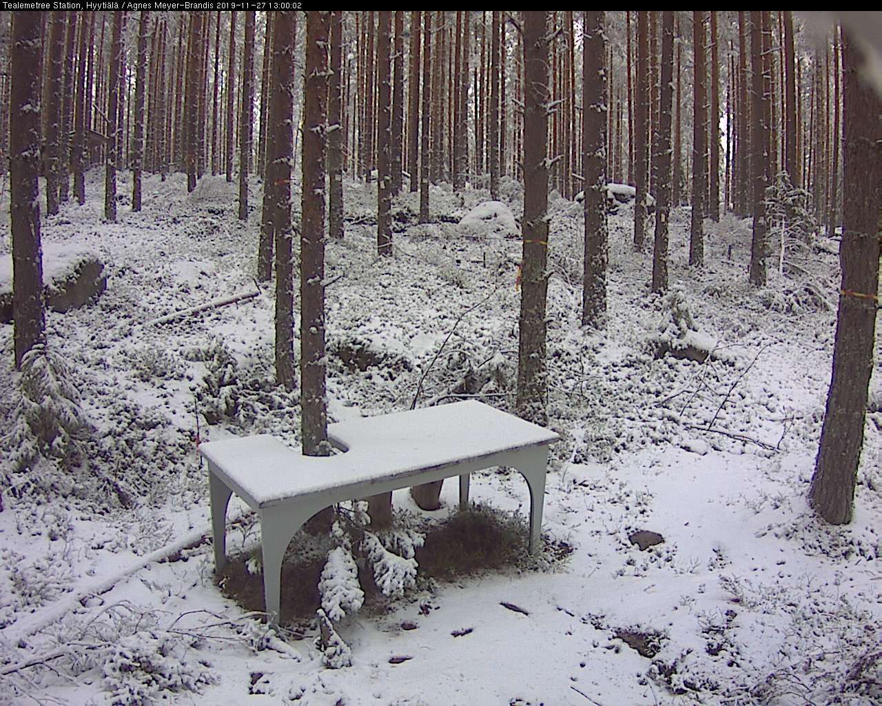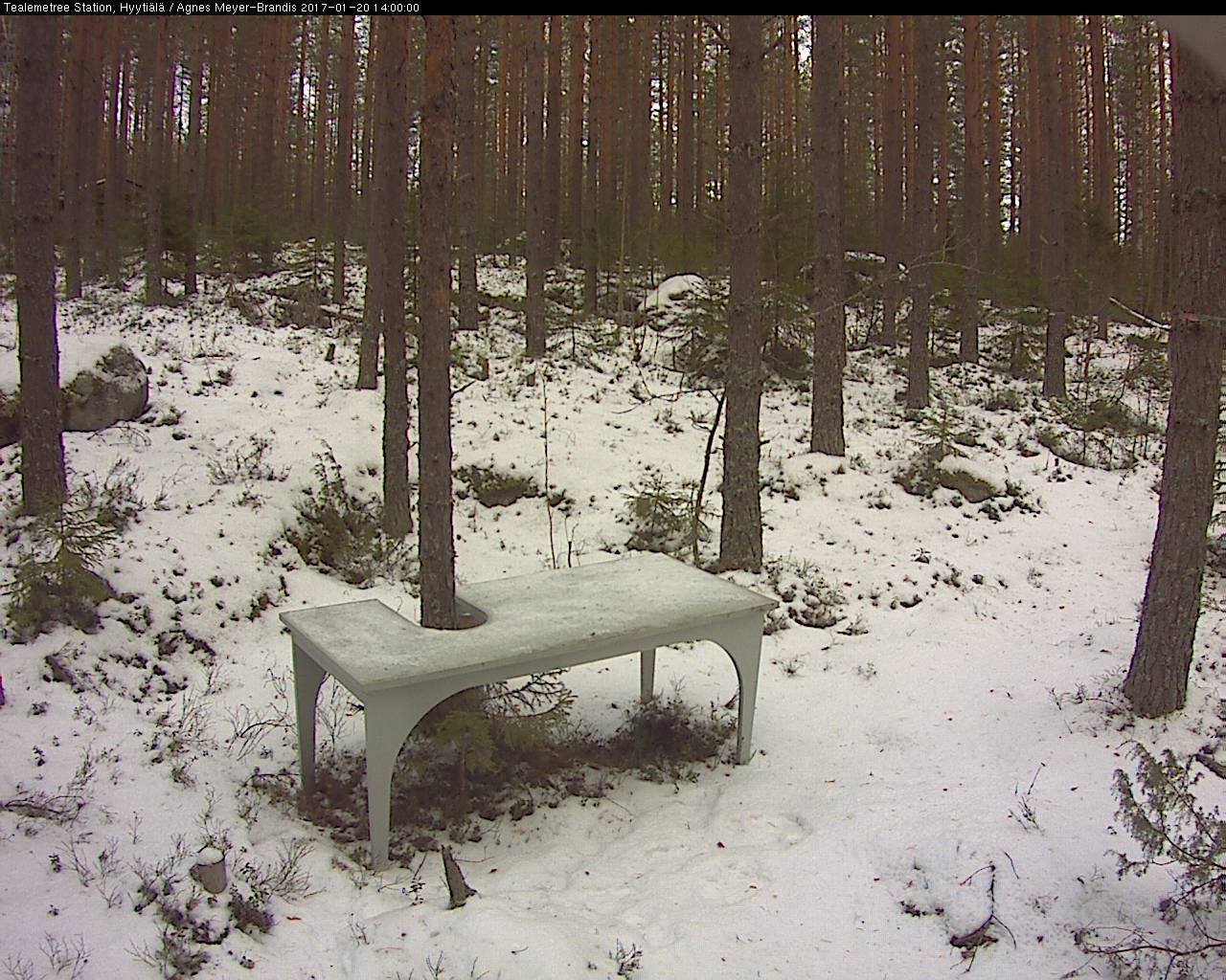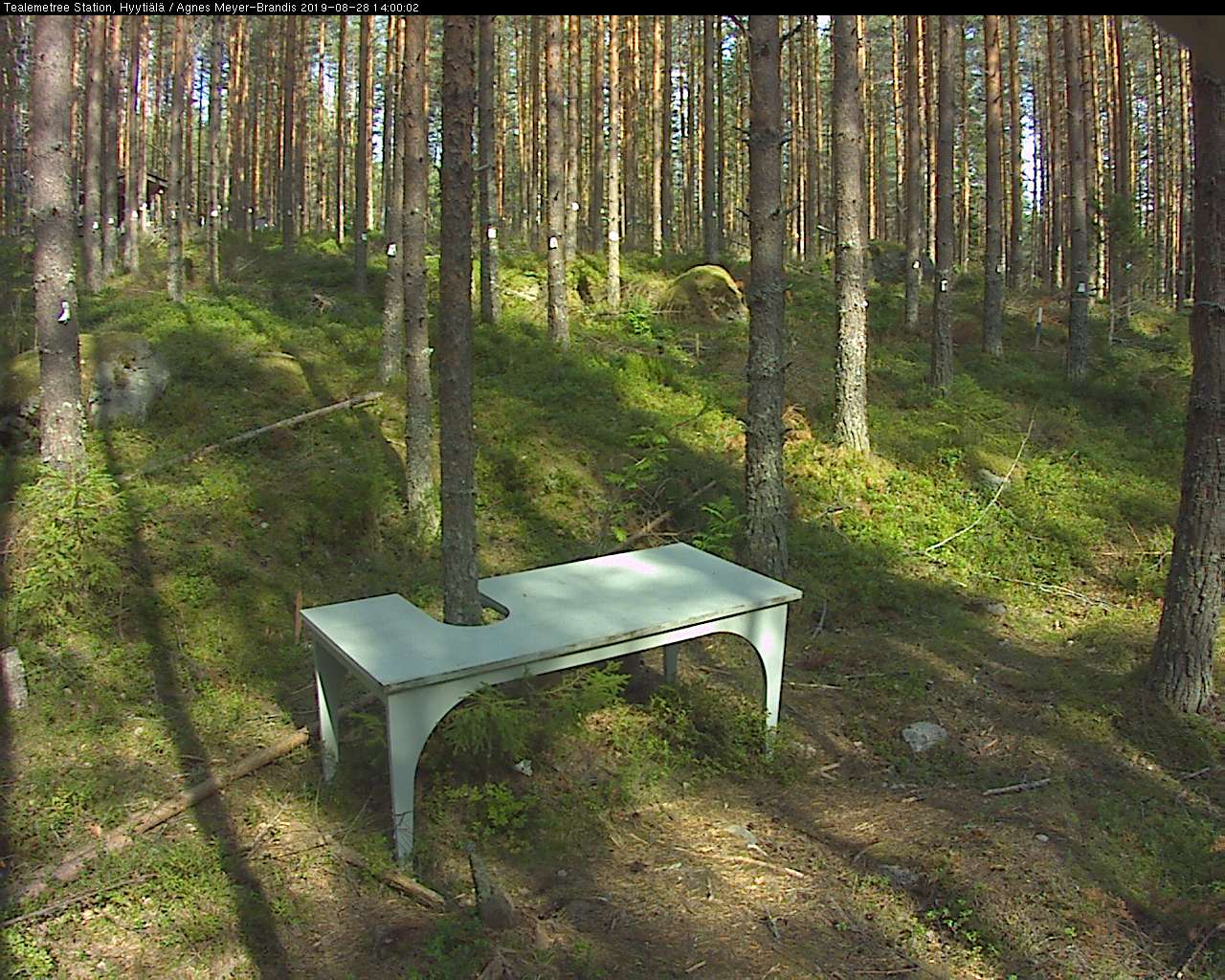 Agnes Meyer-Brandiksen työ Hyytiälässä alkoi tutustumalla aseman muihin tutkijoihin. Pystyäkseen tapaamaan ihmisiä metsässä, hän rakensi pöydän, josta muodostui kohtauspiste ja paikka teehetkille Agneksen ja puun kanssa.
